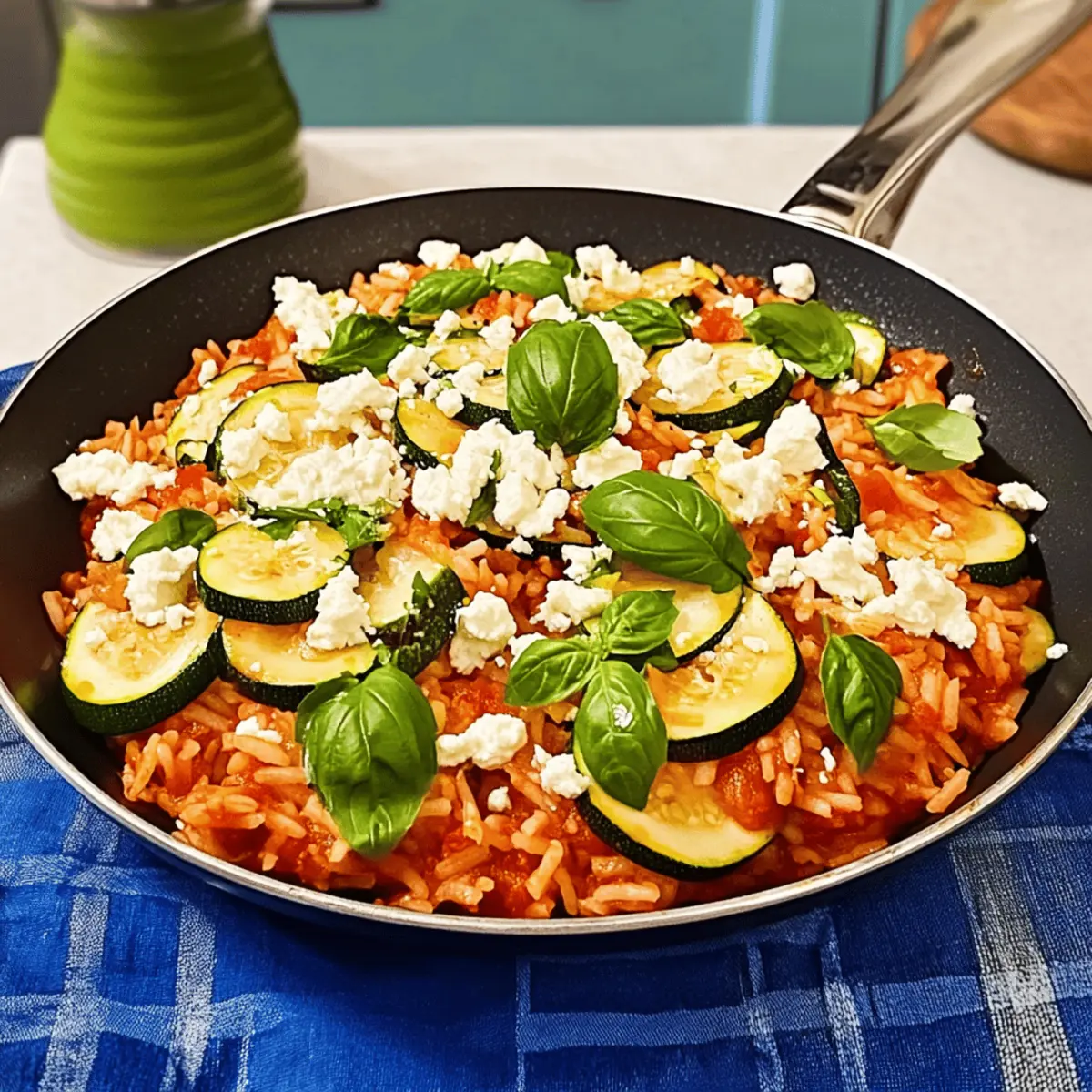 Stell dir vor, du sitzt an einem sonnigen Tag in einem kleinen Café an der italienischen Riviera, umgeben von den verlockenden Aromen mediterraner Küche. Jetzt kannst du dieses Gefühl ganz einfach in deine eigene Küche bringen! Mit meiner Mediterranen Zucchini-Pfanne mit Tomatenreis, Feta und Basilikum zauberst du im Handumdrehen ein Gericht, das nicht nur schnell zuzubereiten ist, sondern auch frisch und leicht schmeckt – perfekt für den Sommer. Dieses Rezept vereint die knackige Zucchini mit aromatischem Tomatenreis und cremigem Feta, wodurch es zu einer echten Geschmacksreise wird. Warum sich mit der Fleischerzeugung von Fast Food zufrieden geben, wenn du mit ein paar einfachen Zutaten ein köstliches und nahrhaftes Essen kreieren kannst? Mach dich bereit, deine Geschmacksknospen zu überraschen – bist du bereit, den Kochlöffel zu schwingen? Warum wirst du dieses Rezept lieben? Einfachheit, Die Zubereitung ist unkompliziert und ideal für schnelle Sommergerichte. Frischer Genuss, Die knackige Zucchini und der aromatische Feta bringen das mediterrane Flair direkt auf deinen Teller. Vielfältige Variationen, Du kannst ganz einfach mit anderen Gemüsesorten oder Käsesorten experimentieren, um das Gericht deinen Vorlieben anzupassen. Schnell und lecker, In nur 30 Minuten zauberst du ein Gericht, das deine Familie und Freunde begeistern wird. Entdecke auch unsere anderen köstlichen Zucchini-Rezepte, um noch mehr Inspiration für deine Sommergerichte zu finden! Mediterrane Zucchini-Pfanne Zutaten • Entdecke die Zutaten für deine Mediterrane Zucchini-Pfanne mit Tomatenreis und erlebe, wie einfach du ein köstliches Gericht zaubern kannst. Für die Pfanne Zucchini – bringt Frische und knusprige Textur; du kannst auch gelbe Zucchini als Alternative verwenden. Zwiebel – fügt Süße und Tiefe hinzu; Schalotten sind eine milde Ersatzoption. Öl (2 Esslöffel) – wichtig für das Anbraten und um den Geschmack zu intensivieren; verwende Olivenöl für den typischen mediterranen Geschmack. Für den Reis Langkornreis (200 g) – die Basis des Gerichts, die Struktur verleiht; ersetze ihn durch Basmati-Reis für ein anderes Geschmackserlebnis. Tomatenmark (3 Esslöffel) – verleiht einen konzentrierten Tomatengeschmack; Ajvar kann für eine würzige Variante genutzt werden. Gemüsebrühe (600 ml) – fügt beim Kochen Geschmack hinzu; verwende natriumarme Brühe für eine leichtere Option. Für das Topping Feta (200 g) – sorgt für Cremigkeit und salzigen Geschmack; Ziegenkäse kann für eine herzhaftere Note eingesetzt werden. Basilikum (½ Bund) – bringt ein frisches Aroma ins Gericht; du kannst auch frische Petersilie nutzen, wenn Basilikum nicht verfügbar ist. Gewürze Salz und Pfeffer – wichtige Gewürze, die du nach Geschmack hinzufügen kannst. Schritt-für-Schritt-Anleitung für Mediterrane Zucchini-Pfanne mit Tomatenreis Schritt 1: Zucchini vorbereiten Wasche die Zucchini gründlich und schneide sie in dünne Runden. Währenddessen die Zwiebel schälen und in zarte Spalten schneiden. Diese Vorbereitung sorgt dafür, dass die Aromen beim Kochen optimal zur Geltung kommen. Schritt 2: Gemüse anbraten Erhitze 1 Esslöffel Olivenöl in einer großen Pfanne bei mittlerer Hitze. Gib die Zucchinischeiben und die Zwiebelspalten dazu und brate sie etwa 4 Minuten lang an, bis sie leicht gebräunt und zart sind. Nimm das Gemüse anschließend aus der Pfanne und stelle es beiseite. Schritt 3: Reis kochen In derselben Pfanne erhitzt du einen weiteren Esslöffel Olivenöl. Füge den Langkornreis hinzu und röste ihn für etwa 1 Minute, bis er leicht glasig erscheint. Rühre das Tomatenmark ein und füge dann die Gemüsebrühe hinzu. Bringe alles zum Kochen, decke die Pfanne ab und lasse den Reis bei geringer Hitze etwa 20 Minuten lang köcheln. Rühre ab und zu um. Schritt 4: Zutaten kombinieren Sobald der Reis gar ist und die Brühe vollständig aufgesogen wurde, nimm die Pfanne vom Herd. Füge die zuvor angebratenen Zucchini, den zerbröckelten Feta und den gehackten Basilikum hinzu. Mische alles gut durch und schmecke die Mediterrane Zucchini-Pfanne mit Tomatenreis mit Salz und Pfeffer ab. Schritt 5: Anrichten und servieren Richte die Zucchini-Pfanne auf Tellern an und garniere sie mit ganzen Basilikumblättern für einen extra Frischekick. Diese Kombination aus Zucchini und aromatischem Tomatenreis ist nicht nur sättigend, sondern bringt auch die besten mediterranen Aromen direkt auf deinen Tisch. Expert Tips für Mediterrane Zucchini-Pfanne Zucchini knusprig halten: Füge die Zucchini erst am Ende des Kochvorgangs hinzu, um ihre Frische und den Biss zu erhalten. So wird deine Mediterrane Zucchini-Pfanne besonders aromatisch. Aromatische Brühe: Verwende eine hochwertige Gemüsebrühe, um den Geschmack des Tomatenreises zu intensivieren. Eine leicht gesalzene Brühe sorgt für ein ausgewogenes Aroma in deinem Gericht. Variiere mit Käse: Experimentiere mit verschiedenen Käsesorten wie Mozzarella oder Parmesan, um unterschiedliche Geschmäcker in deine Mediterrane Zucchini-Pfanne zu bringen. Zusätzliche Gewürze: Für einen zusätzlichen Kick kannst du Chili-Flocken oder geräuchertes Paprikapulver hinzufügen. Achte darauf, es vorsichtig zu dosieren, um die perfekte Balance zu finden. Frisches Basilikum: Frisches Basilikum ist der Schlüssel zu einem herrlich aromatischen Gericht. Wenn du es hinzufügen möchtest, tu dies am besten kurz vor dem Servieren, um das volle Aroma zu bewahren. Was passt perfekt zur Mediterranen Zucchini-Pfanne mit Tomatenreis? Stell dir vor, wie die Aromen einer mediterranen Küche deinen Essensmoment verzaubern. Diese köstliche Zucchini-Pfanne lässt sich wunderbar mit verschiedenen Beilagen kombinieren. Knuspriges Baguette: Ideal, um die restlichen Säfte aufzusaugen und ein knusprigen Kontrast zur Zucchini-Pfanne zu bieten. Frischer Garten-Salat: Ein einfacher grüner Salat mit Olivenöl und Zitronensaft bringt eine erfrischende Leichtigkeit
