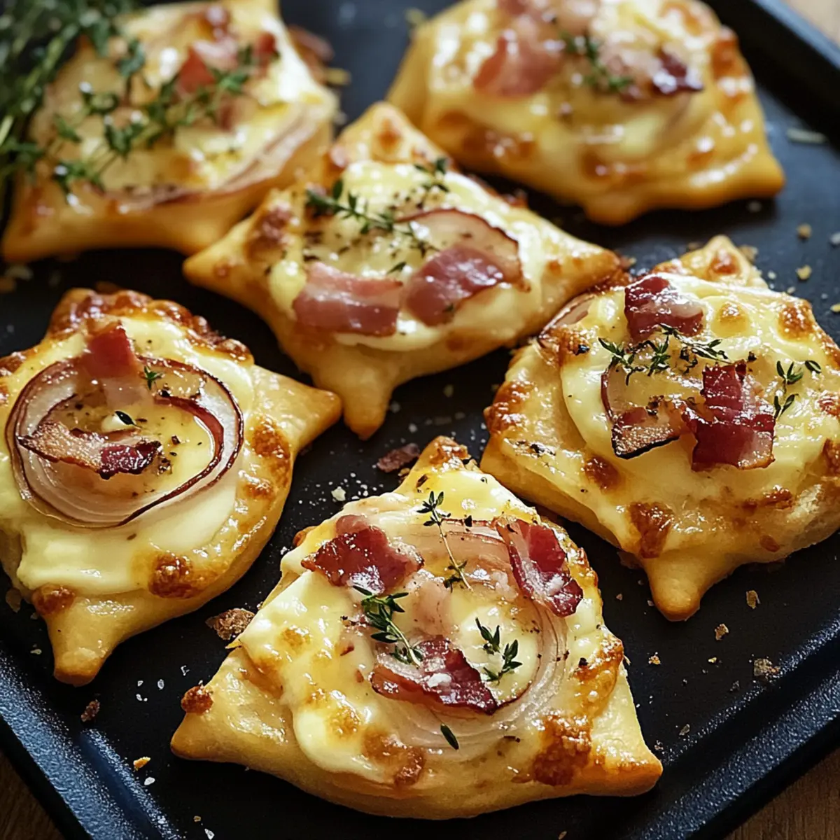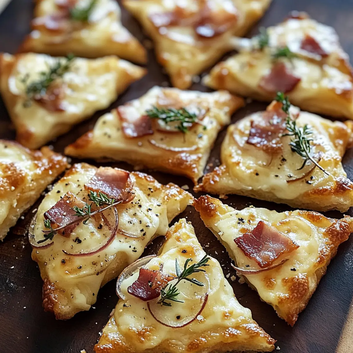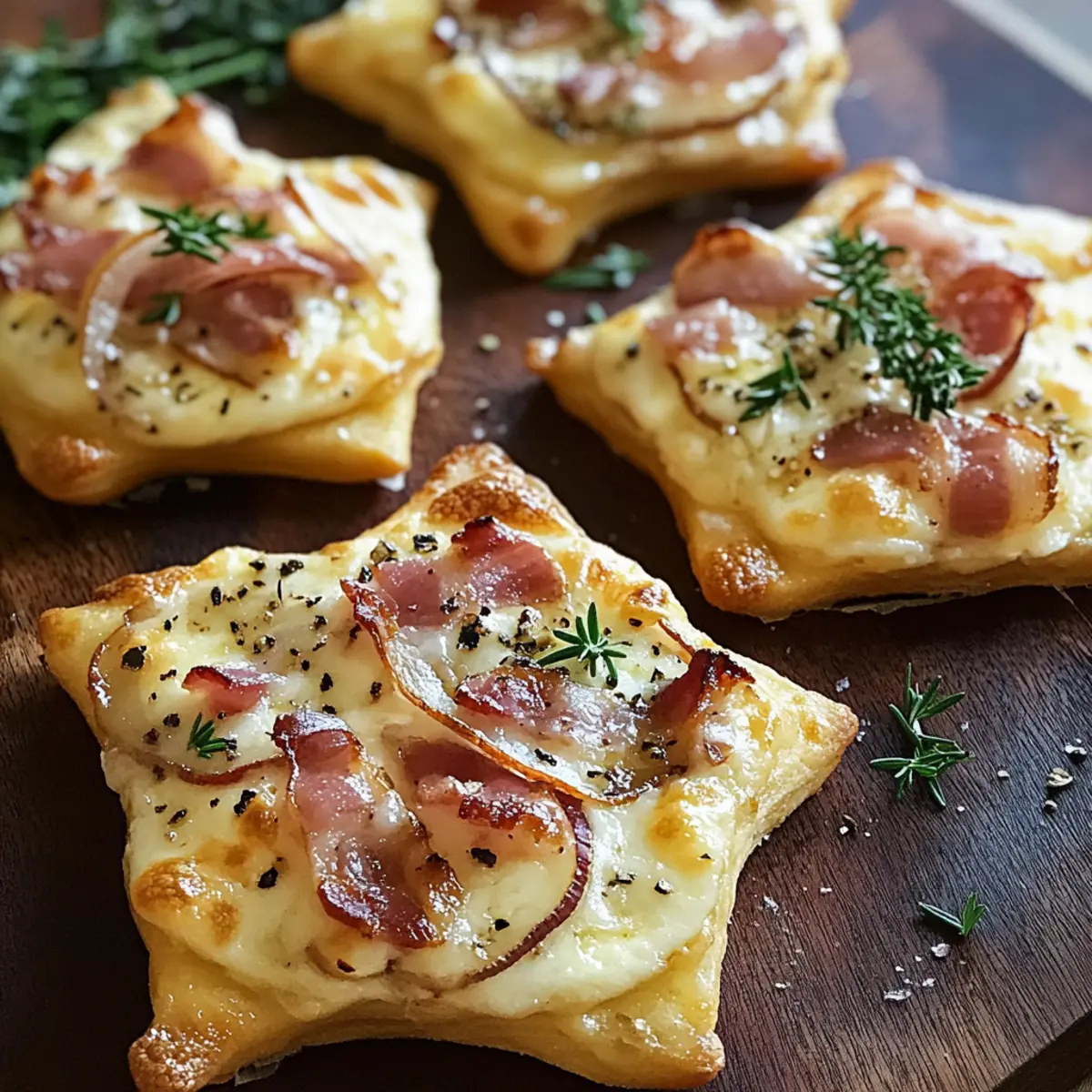 Es war einmal ein Abend, an dem ich eine gemütliche Feier mit Freunden plante und nichts weniger als etwas Besonderes auf den Tisch bringen wollte. Da kam mir die Idee zu den Mini Flammkuchen Sternen. Diese kleinen, mundgerechten Snacks sind nicht nur optisch ein Hit, sondern auch unglaublich vielseitig. Mit einem knusprigen Boden und einer cremigen Füllung – kombiniert mit herzhaftem Speck und süßen Zwiebeln – sind sie der perfekte Gesprächsstoff auf jeder Party. Die Zubereitung ist schnell und einfach, und das Beste: Du kannst sie nach Herzenslust mit verschiedenen Toppings anpassen, auch für vegetarische Gäste! Bist du bereit, deine nächste Feier mit einem kulinarischen Highlight zu bereichern? Lass uns gemeinsam die Küche erkunden! Warum Mini Flammkuchen Sterne so beliebt sind Einzigartigkeit: Diese Mini Flammkuchen Sterne bringen frischen Wind auf deine Party-Tafel und bezaubern durch ihre auffällige Form. Vielseitig: Ob mit vegetarischen Toppings oder herzhaftem Speck – du kannst sie ganz nach deinem Geschmack anpassen. Einfache Zubereitung: Dank des vorgefertigten Teigs sind sie im Nu zubereitet, ideal für spontane Feiern oder gemütliche Abende. Gemeinschaftsgefühl: Perfekt als Fingerfood animieren sie die Gäste, miteinander zu plaudern und diese leckeren Snacks zu teilen. Zufriedene Gäste: Die köstliche Kombination aus knusprigem Boden und cremigem Belag sorgt für zufriedene Gesichter – jeder wird nach mehr verlangen! Kombiniere sie mit tollen Dips oder anderen Snacks, wie herzhaften Dips für die perfekte Party, und verwandle deine Feier in ein kulinarisches Erlebnis! Mini Flammkuchen Sterne Zutaten • Diese kleinen Snacks sind nicht nur ein Hit, sondern auch einfach zuzubereiten! Für den Teig • Flammkuchenteig – Der Basis deiner Snacks, vorgefertigt ermöglicht eine schnelle Zubereitung. Für die Füllung • Schmand – Fügt Cremigkeit hinzu, kann für eine gesündere Variante durch griechischen Joghurt ersetzt werden. • Speckwürfel – Sorgen für einen herzhaften Geschmack, vegetarisch ersetzt du sie durch geräucherten Tofu. • Zwiebel – Bringt Süße und Tiefe ins Spiel, nutze Schalotten für einen milderen Geschmack. • Frischkäse – Erhöht die Cremigkeit, kann durch Ricotta oder eine pflanzliche Frischkäse-Alternative ersetzt werden. • Gouda (gerieben) – Verleiht Reichtum, für vegane Alternativen einfach einen pflanzlichen Käse verwenden. • Frischer Rosmarin – Fügt aromatische Kräuteraromen hinzu, kann durch Thymian oder Oregano ersetzt werden, falls frisch nicht verfügbar ist. • Salz und Pfeffer – Zum Würzen, um die Aromen zu intensivieren; je nach Geschmack anpassen. Entdecke die köstlichen Mini Flammkuchen Sterne und überrasche deine Gäste mit diesen aufregenden Snacks! Schritt-für-Schritt-Anleitung für Mini Flammkuchen Sterne Step 1: Teig vorbereiten Roll den Flammkuchenteig gleichmäßig auf einem mit Backpapier ausgelegten Backblech aus. Mit einem Ausstechförmchen in Form von Sternen ausstechen, um etwa 12–16 Sterne zu erhalten. Achte darauf, dass die Teigstücke gleichmäßig sind, damit sie gleichmäßig backen. Heize den Ofen auf 200°C vor, während du den Teig vorbereitest. Step 2: Füllung anrühren Vermenge in einer Schüssel den Schmand und Frischkäse, bis eine cremige Masse entsteht. Schmecke die Mischung mit einer Prise Salz und Pfeffer ab, sodass sie gut gewürzt ist. Diese cremige Füllung wird gleichmäßig auf den Teigsternen verteilt und sorgt für eine leckere Basis für die Mini Flammkuchen Sterne. Step 3: Mit Zwiebeln und Speck belegen Verteile die gewaschenen und in Ringe geschnittenen Zwiebeln gleichmäßig auf der Schmand-Frischkäse-Mischung. Füge nun die Speckwürfel hinzu und achte darauf, dass jeder Stern gut bedeckt ist. Dies gibt den Mini Flammkuchen Sternen einen herzhaften Geschmack und ergänzt die Crema mit der süßen Zwiebelnote. Step 4: Käse und Kräuter hinzufügen Streue den geriebenen Gouda gleichmäßig über die belegten Sterne. Die Käseschicht sollte nicht zu dick sein, damit die Sterne beim Backen knusprig bleiben. Füge anschließend frisch gehackten Rosmarin hinzu; dieser bringt ein tolles Aroma und macht die Mini Flammkuchen Sterne zu einem wahren Geschmackserlebnis. Step 5: Backen Backe die Mini Flammkuchen Sterne in deinem vorgeheizten Ofen für etwa 10–12 Minuten. Achte darauf, dass die Ränder goldbraun und knusprig sind, bevor du sie aus dem Ofen nimmst. Lass sie kurz abkühlen, bevor du sie auf einer Servierplatte anrichtest. So sind sie perfekt für deine Gäste bereit! Step 6: Servieren Serviere die Mini Flammkuchen Sterne warm, entweder als Fingerfood auf einer Feier oder als leckeren Snack für zwischendurch. Deine Gäste werden von diesen herzhaften und cremigen Köstlichkeiten begeistert sein! Verleihe den Sternen einen letzten Schliff, indem du sie mit frischen Kräutern garnierst. Was passt zu Mini Flammkuchen Sternen? Entdecke köstliche Begleiter, die deine Mini Flammkuchen Sterne noch mehr zur Geltung bringen und ein unvergessliches Festmahl schaffen. Frische Salate: Ein leichter grüner Salat bringt Frische und einen knackigen Kontrast zu den dekadenten Flammkuchen. Cremige Dips: Serviere einen selbstgemachten Joghurtdip, um den Geschmack der Flammkuchen Sterne zu ergänzen und eine tolle Textur zu bieten. Knuspriges Baguette: Ein warmes, knuspriges Baguette ist perfekt, um die köstlichen Saucen und Reste aufzutunken. Süß-sauer eingelegtes Gemüse: Diese bieten ein spritziges Element und harmonieren wunderbar mit den herzhaften Aromen der Sterne. Mocktails oder Säfte: Erfrischende alkoholfreie Getränke wie Limonade oder fruchtige Spritzer sorgen für einen fruchtigen Ausgleich. Zartes Käsebrett: Kombiniere verschiedene Käsesorten, die den cremigen Geschmack der Flammkuchen Sterne bereichern und gleichzeitig für Abwechslung sorgen. Mini Flammkuchen Sterne Variationen Entdecke, wie du mit diesen köstlichen Snacks kreativ we