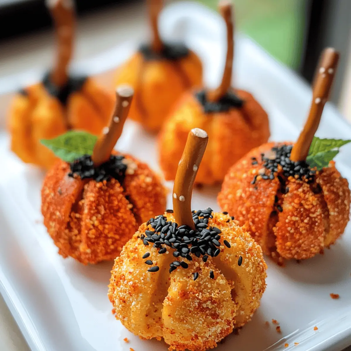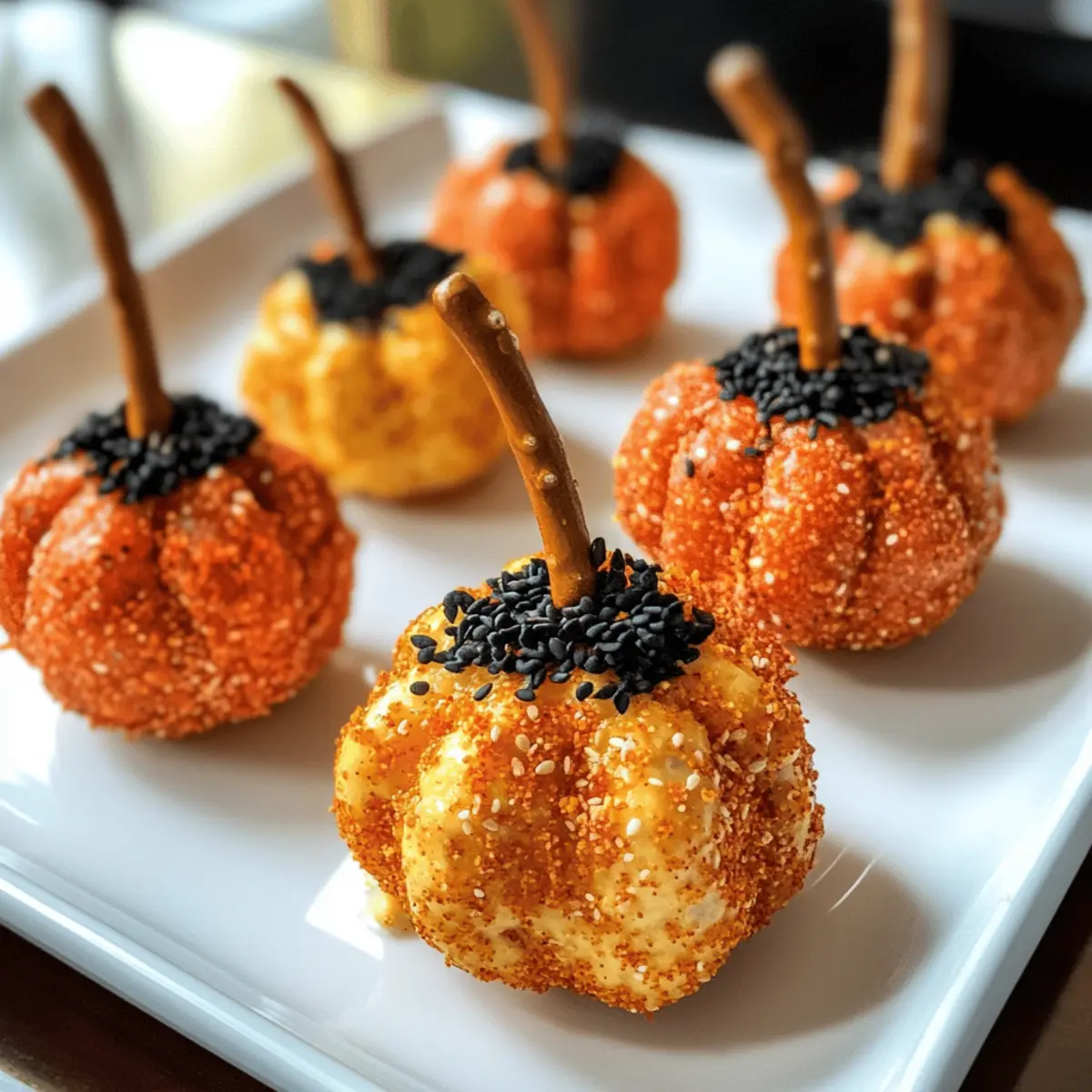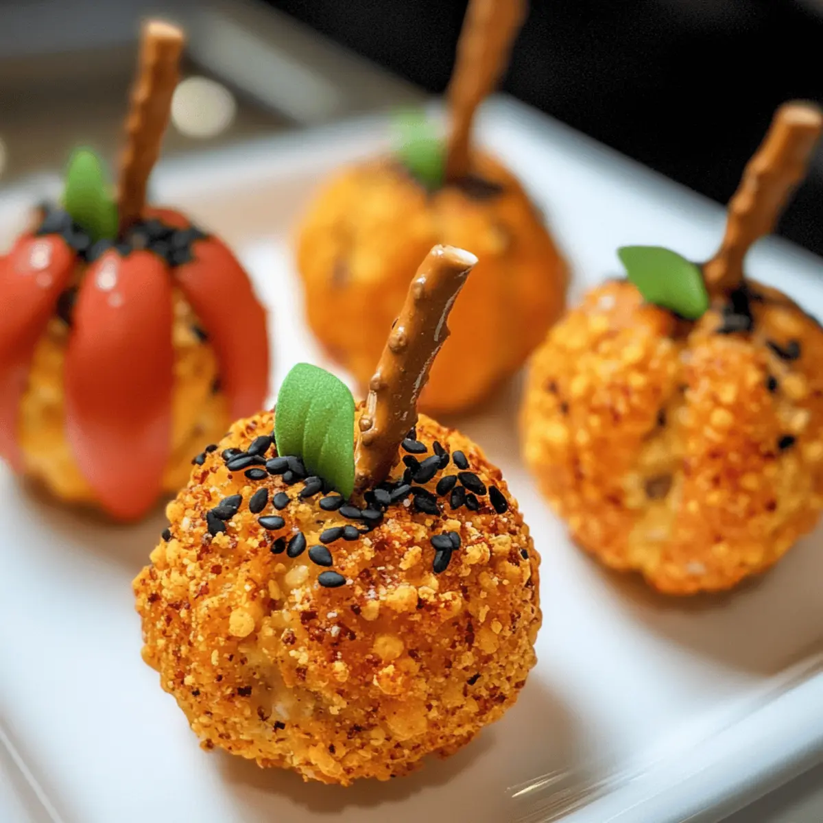 Spürst du bereits das Herbstgefühl, das in der Luft liegt? Diese Mini-Kürbis-Käsebällchen sind das perfekte herbstliche Appetithäppchen, das sowohl das Auge als auch den Gaumen erfreut. Sie sind nicht nur kinderleicht zuzubereiten, sondern lassen sich auch wunderbar im Voraus machen, was sie ideal für Halloween-Feiern oder Thanksgiving macht. Mit verschiedenen Überzügen aus Paprika, schwarzen Sesamkörnern oder sogar zerbrochenen Nacho-Käse-Doritos verwandeln sie sich in kleine, charmante Kürbisse, die eure Gäste garantiert zum Staunen bringen werden. Bist du bereit, deine nächste Herbstfeier mit diesem kreativen Rezept zu bereichern? Warum sind diese Käsebällchen so besonders? Einfachheit: Die Zubereitung der Mini-Kürbis-Käsebällchen ist unkompliziert und erfordert nur grundlegende Kochkenntnisse, sodass jeder sie meistern kann. Vielfältiger Geschmack: Dank der verschiedenen Überzüge, wie Paprika und Käse-Doritos, verleihen sie jedem Biss eine aufregende Geschmacksnote. Perfekte Präsentation: Ihre charmante Kürbisform macht sie zum Hingucker auf jedem Buffet, besonders bei Halloween- und Erntedankfesten. Schnelles Vorbereiten: Diese Appetithäppchen lassen sich hervorragend im Voraus zubereiten, ideal für stressfreie Partys. Crowd-Pleaser: Egal, ob bei Freunden oder der Familie, diese Käsebällchen kommen immer gut an und sorgen für begeisterte Gesichter! Ergänze dein Buffet mit einer Auswahl an Crackern und leckeren Dips, um die Geschmackserlebnisse zu variieren und deine Gäste zu beeindrucken! Mini-Kürbis-Käsebällchen Zutaten • Bereite dich vor, etwas Einzigartiges zu schaffen mit diesen köstlichen Mini-Kürbis-Käsebällchen! Für die Käsemischung Frischkäse – Sorgt für eine cremige Basis; verwende Vollfett für die beste Konsistenz. Geriebener Cheddar – Fügt Schärfe und Geschmack hinzu; Gouda oder Monterey Jack sind ebenfalls leckere Alternativen. Fein gehackte geröstete rote Paprika – Bringt Süße und Farbe ins Spiel; achte darauf, dass sie gut abgetropft sind. Grüne Zwiebeln – Für einen milden Zwiebelgeschmack; du kannst auch Schnittlauch verwenden. Knoblauchpulver – Verstärkt das Geschmacksprofil; frischer Knoblauch kann auch verwendet werden (Menge anpassen). Cayennepfeffer – Gibt einen Hauch von Schärfe; bei milden Käsebällchen einfach weglassen. Salz und Pfeffer – Für die nötige Würze; nach persönlichem Geschmack anpassen. Für die Überzüge Zerstoßene Nacho-Käse-Doritos – Sorgt für zusätzlichen Crunch und Geschmack; ersetze sie durch Cracker, wenn gewünscht. Paprika – Verleiht Farbe und eine leicht rauchige Note; ideal für eine herbstliche Präsentation. Schwarze Sesamkörner – Fügen eine hübsche Textur und einen nussigen Geschmack hinzu; sorgen für einen tollen Kontrast. Dekoration und Servieren Pretzel-Sticks – Dienen als Stängel für die Kürbisse; du kannst auch Brotsticks oder Gemüsesticks verwenden. Frische Petersilie – Optional als Garnierung für einen schönen Farbkontrast; kann weggelassen werden, wenn gewünscht. Ausgewählte Cracker – Ideal zum Servieren; wähle eine Mischung, die gut mit den Käsebällchen harmoniert. Schritt-für-Schritt-Anleitung für Mini-Kürbis-Käsebällchen Step 1: Käsemischung zubereiten In einer mittelgroßen Schüssel Frischkäse, geriebenen Cheddar, fein gehackte geröstete rote Paprika, grüne Zwiebeln und Knoblauchpulver vermengen. Mit Salz und Pfeffer abschmecken. Rühre alles gründlich um, bis eine homogene Masse entsteht. Diese Käsemischung bildet die Grundlage für deine köstlichen Mini-Kürbis-Käsebällchen und wird eine cremige Konsistenz haben. Step 2: Kühlen Decke die Schüssel mit Frischhaltefolie ab und stelle sie für etwa eine Stunde in den Kühlschrank. Dies hilft der Käsemischung, fest zu werden, sodass sie sich leichter formen lässt. Die Kälte sorgt auch dafür, dass die Aromen gut durchziehen und die Käsebällchen den perfekten Biss erhalten. Step 3: Überzüge vorbereiten Während die Käsemischung kühlt, bereite die Überzüge vor. Lege getrennte kleine Teller mit den gewünschten Überzügen wie zerstoßenen Nacho-Käse-Doritos, Paprika und schwarzen Sesamkörnern bereit. So hast du alles griffbereit, wenn es darum geht, deine Mini-Kürbis-Käsebällchen zu formen und zu dekorieren. Step 4: Käsebällchen formen Nimm die gekühlte Käsemischung und forme mit einem Esslöffel kleine Bällchen. Setze die Käsebällchen auf ein mit Backpapier belegtes Blech oder eine Platte. Achte darauf, gleichmäßige Portionen zu gestalten, damit deine Mini-Kürbis-Käsebällchen später ansprechend aussehen und leicht zu servieren sind. Step 5: Käsebällchen beschichten Rolle jedes Käsebällchen vorsichtig in einem der vorbereiteten Überzüge, sodass sie gleichmäßig bedeckt sind. Dies sorgt für einen schönen Crunch und eine attraktive Optik. Überlege dir, mehrere Käsebällchen mit verschiedenen Überzügen zu versehen, um eine bunte und einladende Präsentation zu schaffen. Step 6: Kürbis-Design erstellen Verwende einen Holzspieß, um gleichmäßige Rillen auf den Käsebällchen zu ziehen, damit sie wie kleine Kürbisse aussehen. Setze einen Pretzel-Stick oben als Stängel ein. Dies verleiht den Mini-Kürbis-Käsebällchen nicht nur eine charmante Form, sondern auch eine praktische Möglichkeit, sie zu essen. Step 7: Wieder kühlen Bewahre die fertigen Mini-Kürbis-Käsebällchen bis zum Servieren im Kühlschrank auf. Dadurch bleibt die Konsistenz frisch und kühl, und die Aromen intensiveren sich. Du kannst die Käsebällchen auch bis zu zwei Tage im Voraus zubereiten, um dir an deinem Serviertag Stress zu ersparen. Mini-Kürbis-Käsebällchen Variationen & Substitutionen Entdecke die vielseitigen Möglichkeiten, diese köstlichen Mini-Kürbis-Käsebällchen nach deinem Geschmack anzupassen und zu verfeinern! Käsevariationen: Experimentiere mit Ziegenkäse oder Kräuterfrischkäse für einen abwechslungsreichen Geschmac