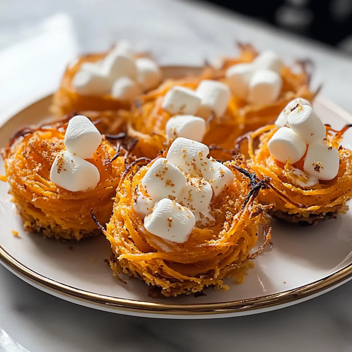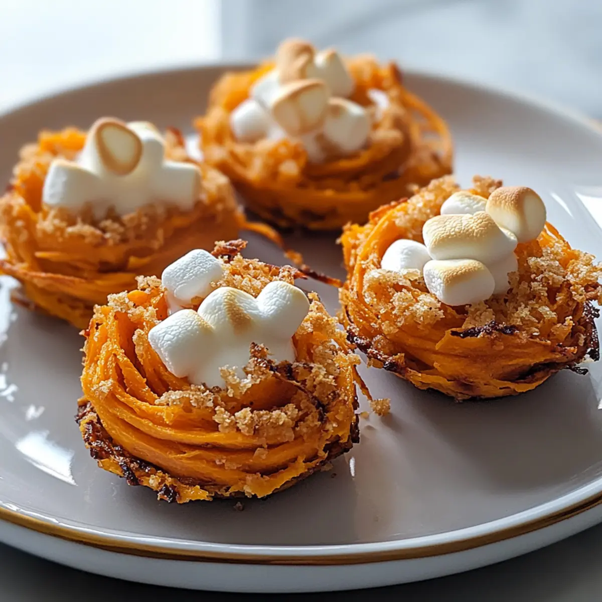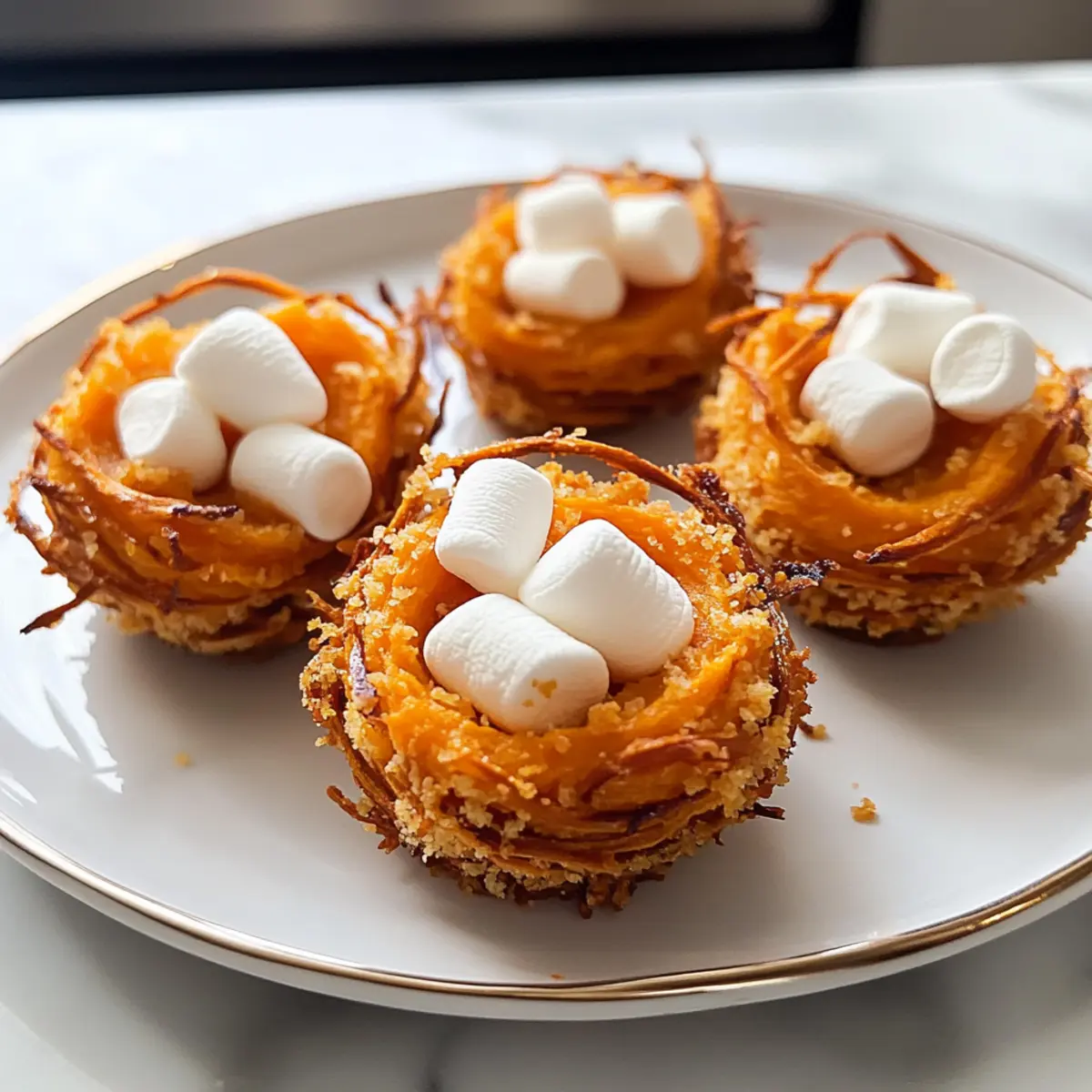 Hast du schon einmal von einer kleinen feinen Überraschung auf deinem Festtagstisch geträumt? Diese Mini-Süßkartoffelauflauf-Nester sind nicht nur ein wahrer Blickfang, sondern auch eine geschmackliche Offenbarung! Mit der erdigen Süße von gerösteten Süßkartoffeln und einer cremigen Füllung, verfeinert mit einer Prise Zimt, versprechen sie, deine Gäste zu begeistern. Und das Beste daran? Sie sind nicht nur schnell zubereitet, sondern auch ein perfektes Mitbringsel, das sich hervorragend vorbereiten lässt. Ideal als vegetarische Beilage oder sogar glutenfreundlich, sättigen sie beim nächsten Familienessen oder deiner nächsten Feier. Neugierig, wie du diese köstlichen Nester herstellen kannst? Lass uns gemeinsam in die Zubereitung eintauchen! Warum wirst du diese Nester lieben? Einfachheit: Die Zubereitung dieser Mini-Süßkartoffelauflauf-Nester ist unkompliziert und verlangt nur grundlegende Kochkünste. Köstlicher Geschmack: Die Kombination aus gerösteten Süßkartoffeln, Zimt und knackigen Toppings sorgt für ein unvergleichlich geschmackvolles Erlebnis, das alle begeistert. Vielseitigkeit: Du kannst die Füllung nach Belieben anpassen und vielleicht sogar Butternusskürbis oder verschiedene Gewürze verwenden, um deinen eigenen Twist zu kreieren. Perfekte Beilage: Diese Nester sind eine beachtenswerte Ergänzung zu jedem Festessen und machen sich hervorragend als vegetarische oder glutenfreundliche Beilage. Vorbereitungsfreundlich: Leicht im Voraus zuzubereiten, kannst du sie einfach im Kühlschrank aufbewahren und dann zum Festtagsessen aufwärmen, was dir Zeit spart. Wunderbare Präsentation: Ihre ansprechende Form und die bunten Toppings machen sie zu einem echten Hingucker auf jedem Tisch, perfekt für festliche Anlässe. Mini-Süßkartoffelauflauf-Nester Zutaten Hinweis: Die Zutaten für diese Mini-Süßkartoffelauflauf-Nester sind einfach und bieten viele Anpassungsmöglichkeiten für alternative Geschmäcker! Für die Füllung • Süßkartoffeln – Diese sind die Hauptzutat und liefern natürliche Süße sowie Cremigkeit, ideal zum Pürieren. Du kannst als Variante auch Butternusskürbis verwenden. • Ungesalzene Butter – Sie sorgt für einen reichhaltigen, feuchten Geschmack; verwende pflanzliche Butter für eine milchfreie Option. • Brauner Zucker – Dieser Süßstoff verstärkt die Karbonisierung beim Rösten und eignet sich hervorragend für die Zubereitung der Füllung. Ersetze ihn durch Ahornsirup für eine andere süße Note. • Zimt – Um ein warmes, gemütliches Aroma zu verleihen, das perfekt zur Jahreszeit passt; andere Gewürze wie Muskatnuss können für zusätzliche Tiefe hinzugefügt werden. Für die Toppings • Panko-Brösel – Diese sorgen für eine knusprige Kruste oben drauf; das ist die Geheimzutat für den perfekten Texturkontrast. Für glutenfreie Optionen verwende glutenfreie Brösel. • Grobhackige Pekannüsse (oder Walnüsse) – Sie bringen einen nussigen Geschmack und zusätzlichen Crunch ins Spiel; lass sie bei einer nussefreien Diät einfach weg. • Mini-Marshmallows – Sie sind die süße, klebrige Krönung, die das Gesamtbild dieser Leckerei aufwertet; du kannst sie weglassen, wenn du eine weniger süße Variante möchtest. Step-by-Step Instructions für Mini-Süßkartoffelauflauf-Nester Step 1: Ofen vorheizen Heize den Ofen auf 190°C (375°F) vor und fette ein Muffinblech gründlich ein, um ein Ankleben der Mini-Süßkartoffelauflauf-Nester zu verhindern. Dies sorgt dafür, dass sie gleichmäßig backen und eine schöne Form behalten. Step 2: Süßkartoffeln rösten Schäle die Süßkartoffeln und schneide sie in kleine Würfel. Verteile die Würfel auf einem mit Backpapier ausgelegten Blech und beträufle sie mit Olivenöl. Röste die Süßkartoffeln für 25-30 Minuten im vorgeheizten Ofen, bis sie weich und leicht karamellisiert sind. Step 3: Zutaten pürieren Nimm die gerösteten Süßkartoffeln aus dem Ofen und gib sie in eine große Schüssel. Füge ungesalzene Butter, braunen Zucker, Zimt und eine Prise Salz hinzu. Püriere die Mischung grob, sodass sie eine leicht stückige Konsistenz behält, um zusätzlichen Geschmack zu erzeugen. Step 4: Nester formen Nimm zwei Esslöffel der Süßkartoffelmischung und drücke sie fest in jede Muffinmulde des gefetteten Blechs, um nestartige Formen zu kreieren. Achte darauf, dass die Nester gut geformt sind, damit sie beim Backen stabil bleiben und die Füllung nicht ausläuft. Step 5: Topping vorbereiten In einer separaten Schüssel vermische Panko-Brösel, geschmolzene Butter und grob gehackte Nüsse. Rühre alles gut um, sodass die Brösel gleichmäßig mit Butter überzogen sind, und streue großzügig die Mischung über jedes Nest, um eine knusprige Textur zu erhalten. Step 6: Nester backen Backe die Mini-Süßkartoffelauflauf-Nester im Ofen für 15-20 Minuten, bis sie goldbraun und knusprig sind. Behalte die Nester gegen Ende der Backzeit im Auge, um ein Verbrennen der Toppings zu vermeiden, und füge die Mini-Marshmallows in den letzten 5 Minuten hinzu, damit sie weich und leicht geschmolzen sind. Vorbereitungen für die Mini-Süßkartoffelauflauf-Nester Die Mini-Süßkartoffelauflauf-Nester sind perfekt für die Vorbereitung im Voraus, was dir wertvolle Zeit an hektischen Tagen spart! Du kannst die Süßkartoffeln bis 24 Stunden im Voraus rösten. Nach dem Rösten einfach die pürierte Füllung in einem luftdichten Behälter im Kühlschrank aufbewahren. Um die Qualität zu erhalten, achte darauf, die Nester erst kurz vor dem Backen zu formen, damit die Brösel knusprig bleiben. Die fertigen Nester können bis zu 3 Tage im Kühlschrank gelagert werden; einfach im Ofen bei 190°C für 15-20 Minuten aufwärmen und in den letzten 5 Minuten die Mini-Marshmallows hinzufügen. So genießt du frische, köstliche Nester mit minimalem Aufwand! Expertentipps für Mini-Süßkartoffelauflauf-Nester Süßkartoffeln richtig rösten: Achte darauf, die Süßkartoffeln bis zur op