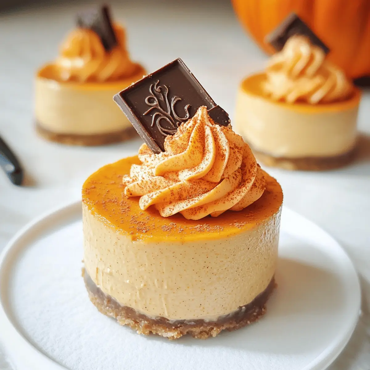 Die Herbstsaison bringt nicht nur bunte Blätter und kühle Brisen, sondern auch die unvergleichliche Vorfreude auf herzhafte Leckereien! Während ich durch die Märkte schlendere, verfalle ich immer wieder dem Zauber der Kürbisse. Deshalb ist es an der Zeit, meine Mini-vegane Kürbis-Käsekuchen vorzustellen – eine verführerische Kreation, die nicht nur einfach zuzubereiten ist, sondern auch mit ihrem no-bake Ansatz perfekt für entspannte Nachmittage ist. Diese kleinen, cremigen Träume bieten eine glutenfreie Option und sind ideal für deines nächsten Fest oder eine gemütliche Kaffeetafel mit Freunden. Stellt euch vor, wie das Aroma von Kürbisgewürzen durch eure Küche zieht, während die leckeren Törtchen im Kühlschrank auf ihren großen Auftritt warten. Seid ihr bereit, gemeinsam in die herbstliche Genusswelt einzutauchen? Warum werden diese Mini-Käsekuchen begeistern? Einfache Zubereitung: Mit einem no-bake Ansatz sind diese Mini-vegane Kürbis-Käsekuchen im Handumdrehen fertig. Vielseitig: Ob als Dessert für Gäste oder für einen gemütlichen Abend allein, sie passen immer! Wunderbarer Geschmack: Die Kombination von Kürbis und Gewürzen sorgt für ein unvergleichliches Aroma, das sofort in Herbststimmung versetzt. Gesundheitsbewusst: Vegan und glutenfrei, bieten sie eine leckere Alternative zu traditionellen Desserts. Perfekte Präsentation: Mit Dekorationsideen verwandelt ihr sie in kleine Kunstwerke, die nicht nur lecker schmecken, sondern auch wunderschön aussehen – ideal für eure nächste Feier! Mini-vegane Kürbis-Käsekuchen Zutaten • Eine perfekte Gelegenheit für herbstliche Genüsse! Für den Boden Plain Biscuits – Diese bilden die perfekte Basis für unseren Käsekuchen; glutenfreie Kekse sind eine großartige Alternative. Mixed All Spice – Fügt dem Boden Wärme und Komplexität hinzu; optional, aber sehr empfehlenswert für verbesserten Geschmack. Dairy-Free Butter/Margarine – Bindet die Keksbrösel zusammen; vegane Margarine kann verwendet werden. Für die Füllung Cashew Nuts – Sorgt für eine cremige Konsistenz; unbedingt über Nacht einweichen für die optimale Textur; kann durch eingeweichte Seidentofu ersetzt werden, wenn nussfrei gewünscht. Vegan Cream Cheese – Verleiht der Füllung eine cremige Textur und einen leicht säuerlichen Geschmack; jede pflanzliche Frischkäsemarke ist geeignet. Icing Sugar – Süßt die Käsekuchenfüllung; Puderzucker kann ebenfalls verwendet werden. Coconut Cream – Fügt der Füllung Reichhaltigkeit hinzu; kann durch andere pflanzliche Cremes ersetzt werden (ähnliche Konsistenz beachten). Ground Pumpkin Spice – Bringt den klassischen Herbstgeschmack; eine Mischung aus Zimt und Muskatnuss kann ebenfalls genutzt werden, wenn nicht verfügbar. Pumpkin Purée – Verwöhnt mit Geschmack und Feuchtigkeit; frischer oder konservierter Kürbis kann verwendet werden. Califia Farms Pumpkin Spice Cold Brew – Fügt der Füllung einen einzigartigen Kürbisschmack hinzu; andere pflanzliche Kürbisgetränke können auch ersetzen. Für das Topping Dairy-Free Whipping Cream – Sorgt für das luftige Topping; qualitativ hochwertig, um die Form zu halten; einige verwenden Aquafaba als Alternative. Orange Food Gel – Gibt dem Sahnetopping Farbe; optional, natürliche Farbstoffe sind ebenfalls möglich. Chocolate (for Stalk) – Ein dekoratives Element; jede vegane Schokolade kann genutzt werden. Diese Mini-vegane Kürbis-Käsekuchen werden ein Highlight bei jedem festlichen Anlass sein! Schritt-für-Schritt-Anleitung für Mini-vegane Kürbis-Käsekuchen Step 1: Biscuit-Boden vorbereiten Schmelze die pflanzliche Butter in einem kleinen Topf bei niedriger Hitze. In einer Küchenmaschine oder einem Mixer die Kekse mit dem gemischten Gewürz zu feinen Bröseln verarbeiten. Die geschmolzene Butter zu den Keksbröseln hinzufügen und gut vermischen. Drücke die Mischung fest in Muffinförmchen und stelle sie für 30 Minuten in den Gefrierschrank, damit der Boden fest wird. Step 2: Käsekuchenfüllung herstellen Die über Nacht eingeweichten Cashewkerne abtropfen lassen und in einen Hochgeschwindigkeitsmixer geben. Füge den veganen Frischkäse, Puderzucker, Kokosnusscreme, Kürbisgewürz, Kürbispüree und Califia Farms Pumpkin Spice Cold Brew hinzu. Alles gut mixen, bis die Mischung vollkommen glatt und cremig ist, was etwa 2-3 Minuten dauern sollte. Gieße die Füllung gleichmäßig auf die gekühlten Biscuit-Böden und stelle sie über Nacht in den Kühlschrank, damit sie fest wird. Step 3: Sahnetopping kreieren Am nächsten Tag die pflanzliche Schlagsahne in einer Rührschüssel steif schlagen, was etwa 3-4 Minuten in Anspruch nehmen kann. Sobald die Sahne die gewünschte Konsistenz hat, das orange Lebensmittelfarbe-Gel vorsichtig unterheben, um eine gleichmäßige Farbe zu erreichen. Verwende einen Spritzbeutel, um die Sahne in kleinen Tupfen oder Spitzen auf die abgekühlten Mini-vegane Kürbis-Käsekuchen zu spritzen. Step 4: Servieren & Dekorieren Die Mini-vegane Kürbis-Käsekuchen aus dem Kühlschrank nehmen und auf einem Servierteller anrichten. Optional kannst du kleine Stücke von veganer Schokolade als dekorative „Stängel“ auf die Käsekuchen setzen. Die kleinen Köstlichkeiten sind nun bereit, genossen zu werden und lassen sich hervorragend mit einem Glas Califia Farms Pumpkin Spice Cold Brew servieren. Was serviert man zu Mini-vegane Kürbis-Käsekuchen? Die herbstlichen Aromen dieser cremigen Köstlichkeiten laden dazu ein, ein ganzes Menü zu kreieren, das eure Sinne verzaubert. Cremige Kartoffelbrei: Diese samtige Beilage harmoniert perfekt mit den kräftigen Kürbiskräften und sorgt für einen schönen Kontrast in der Textur. Die Aromen ergänzen sich wunderbar. Gewürzter Apfelschaum: Eine süße und spritzige Beilage aus frischen Äpfeln, die mit Zimt und Muskatnuss verfeinert werden, bringt eine erfrischende Note und passt zum Herbstthema. Küchenkräuter-Salat: Ein frischer Salat mit Ru