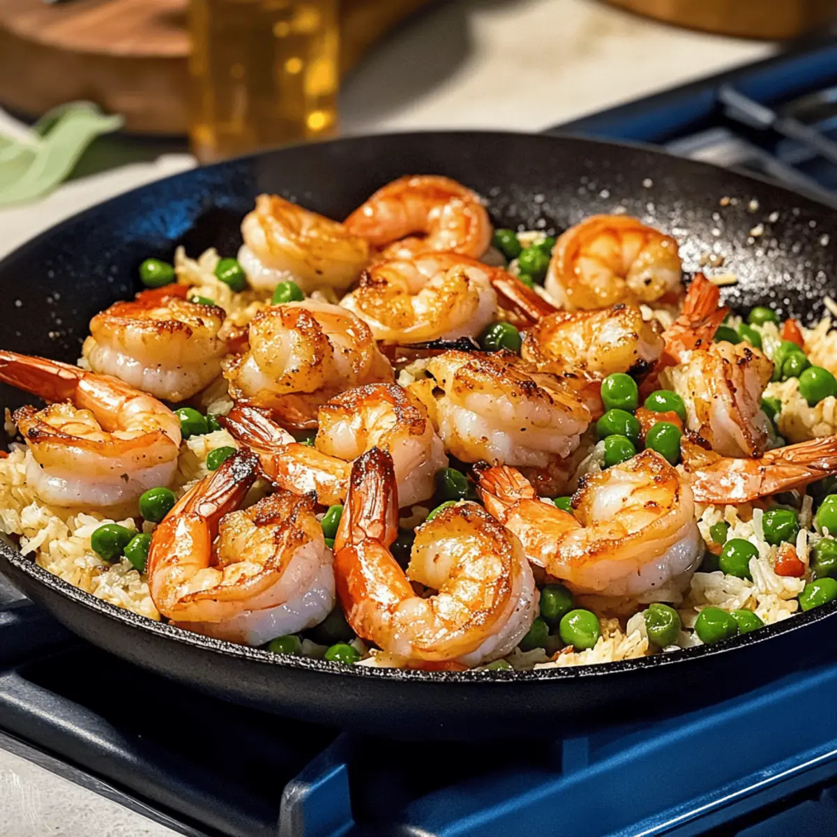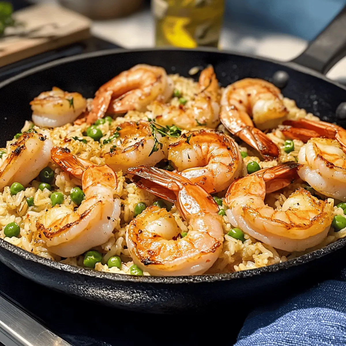 • Cremiger Erbsenreis: Die Grundlage dieses Gerichts, die die Aromen der Garnelen harmonisch aufnimmt und eine köstliche, sanfte Textur bietet.
