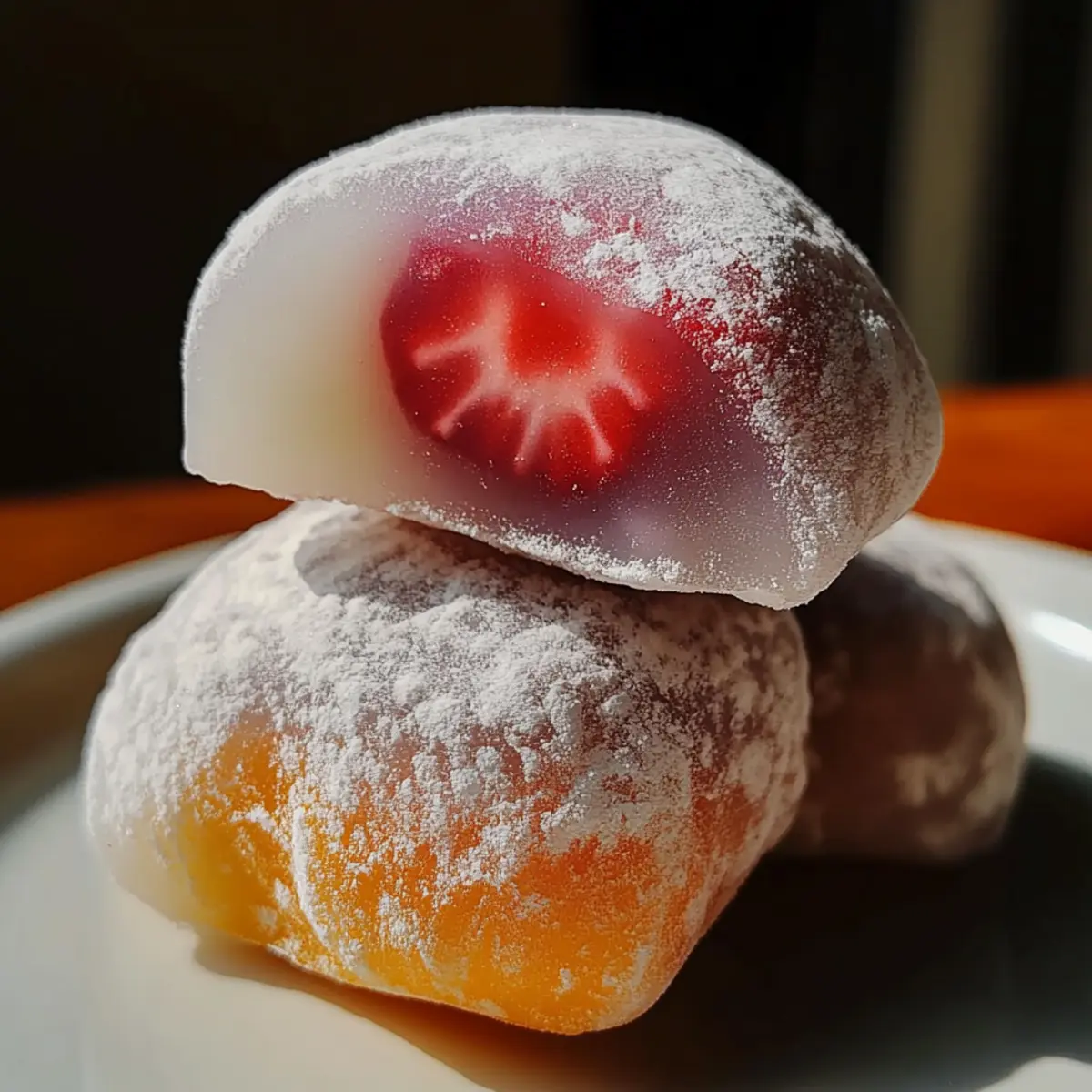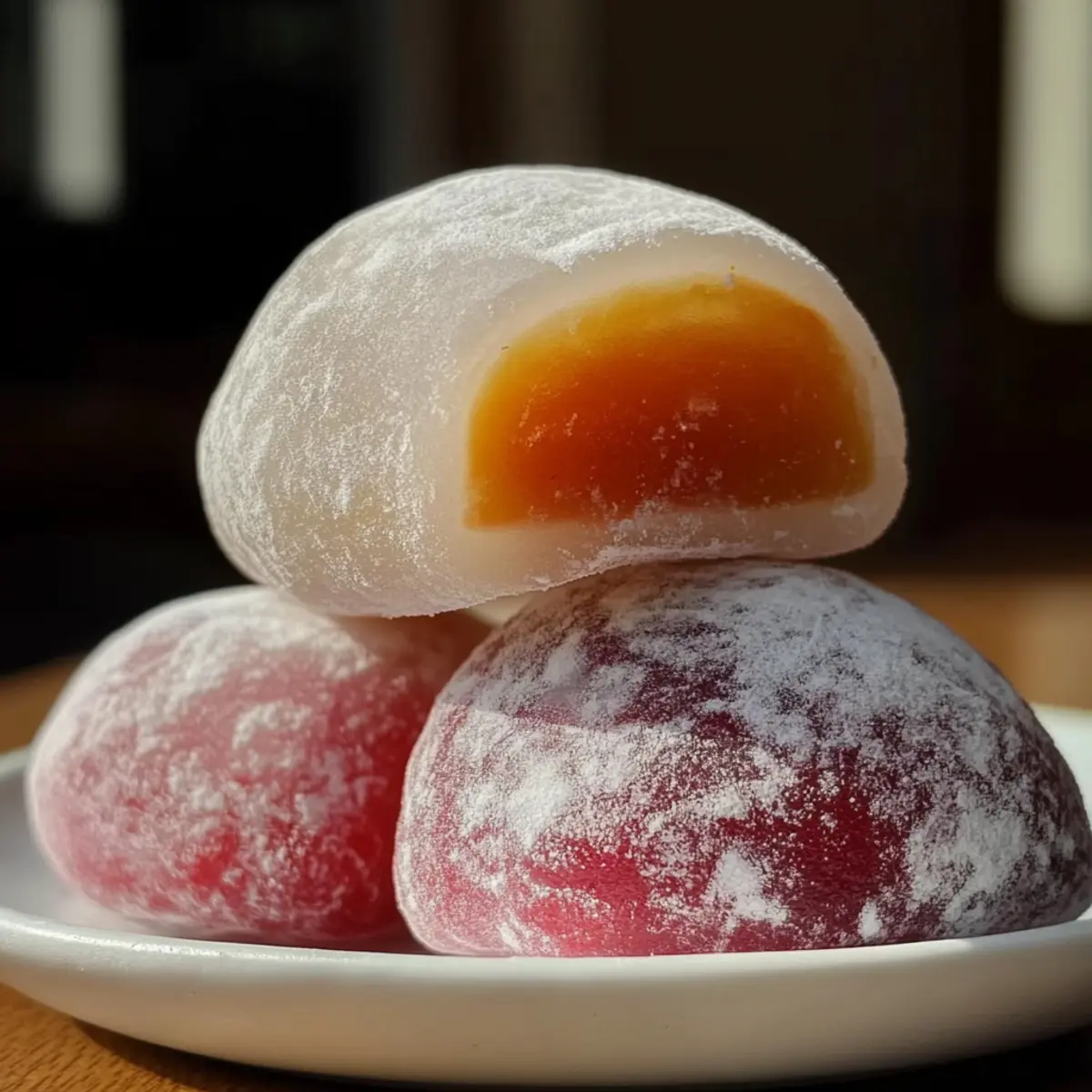 Eines der bezauberndsten Dinge an der japanischen Küche ist die Vielfalt der süßen Köstlichkeiten, und Mochi steht dabei ganz oben auf der Liste. Dieses Easy Chewy Mochi Rezept verwandelt einfache Zutaten in entzückende, weiche Leckereien, die einen Hauch von Tradition in eure Küche bringen. Mochi ist nicht nur glutenfrei, sondern auch ein schnelles Dessert, das perfekt für hektische Nachmittage geeignet ist. Egal, ob ihr sie zum Tee genießen oder als süße Überraschung für die Kinder gestalten möchtet, diese einfache Anleitung lädt dazu ein, kreativ zu werden. Seid ihr bereit, die magische Welt des Mochi zu entdecken und dabei eure Lieblingsfüllungen zu kreieren? Warum ist Mochi so besonders? Einfache Zubereitung: Mit nur wenigen Zutaten ist dieses Mochi Rezept schnell und einfach umzusetzen, perfekt für jede Köchin und jeden Koch, egal ob Anfänger oder Profi. Glutenfrei: Ideal für alle, die auf Gluten verzichten möchten, dabei bleibt der Genuss nicht auf der Strecke! Kreativität: Die Möglichkeit, mit verschiedenen Füllungen zu experimentieren, macht jeden Bissen einzigartig und anpassbar an eure Vorlieben. Von süßen roten Bohnen bis zu frischen Früchten, die Wahl gehört euch! Kulturerbe: Mochi ist nicht nur ein köstliches Dessert, sondern auch ein Teil der japanischen und koreanischen Tradition, was eurer Küche eine kulturelle Note verleiht. Schnell und lecker: In weniger als 30 Minuten seid ihr bereit, diese köstlichen Leckerbissen zu genießen oder euren Gästen zu servieren. Macht es euch einfach und überrascht eure Freunde mit diesen süßen Snacks! Mochi Rezept Zutaten • Für das Grundrezept: Klebreismehl – Essentiell für die chewy Textur von Mochi; eine Substitution ist nicht empfehlenswert. Zucker – Fügt die nötige Süße hinzu; kann durch alternative Süßstoffe ersetzt werden. Wasser – Hydriert das Mehl und ist unverzichtbar für den Mochiteig; keine Substitutionen empfohlen. • Für das Bestäuben: Stärkemehl – Verhindert das Kleben und erleichtert die Handhabung; kann durch Reismehl ersetzt werden. • Für die Füllungen (optional): Süße rote Bohnenpaste – Klassische Füllung, die wunderbar zu Mochi passt; für authentischen Geschmack nutzen. Erdbeeren – Frisches Obst für einen fruchtigen Twist; ideal für die Frühlings- und Sommervariante. Maronenpüree – Eine herbstliche Füllung, die jedem Bissen Tiefe verleiht. • Für den visuellen Reiz: Lebensmittelfarbe (optional) – Für eine farbenfrohe Präsentation; Geschmacklich nicht notwendig, aber sehr dekorativ. Schritt-für-Schritt-Anleitung für Mochi Rezept Step 1: Zutaten vermengen In einer großen Schüssel das Klebreismehl und den Zucker gründlich vermengen. Achte darauf, dass keine Klumpen entstehen, um eine gleichmäßige Textur zu gewährleisten. Diese Mischung bildet die Grundlage für das köstliche Mochi Rezept, das dir gleich gelingen wird. Step 2: Wasser hinzufügen Jetzt füge langsam die gesamte Menge Wasser hinzu, während du die Mischung stetig rührst. Mit einem Schneebesen oder einer Gabel gut umrühren, bis der Teig vollkommen glatt und klumpenfrei ist. Das Wasser ist entscheidend, um den Teig geschmeidig zu machen und die chewy Textur des Mochis zu erreichen. Step 3: Teigmischung in Form gießen Gieße die gut vermischte Teigmischung in eine hitzebeständige Form. Stelle sicher, dass die Form gut gefettet oder leicht mit Stärke bestäubt ist, damit der Teig nach dem Dampfen nicht anklebt. Der sich bildende Teig wird der Hauptbestandteil deines Mochi Rezeptes sein. Step 4: Dampfen Setze die Form auf einen Dampfer und lasse den Teig etwa 20 Minuten lang dampfen. Der Teig sollte am Ende fest und durchscheinend sein. Halte Ausschau nach einer elastischen Textur, um sicherzustellen, dass der Mochi perfekt gegart ist. Diese Methode bewahrt die Feuchtigkeit und sorgt für die charakteristische Konsistenz. Step 5: Abkühlen lassen Nach dem Dampfen nimm die Form vorsichtig vom Herd und lasse den Teig etwas abkühlen. Sobald er handwarm ist, kannst du ihn auf eine saubere, mit Stärke bestäubte Arbeitsfläche legen. Dieser Schritt ist wichtig, um das Kleben zu verhindern und das zukünftige Arbeiten mit dem Mochi zu erleichtern. Step 6: Teig vorbereiten und schneiden Bestäube die Oberfläche des abgekühlten Teigs leicht mit Stärke, um das Kleben zu vermeiden. Verwende ein scharfes Messer, um den Teig in gleichmäßige Stücke zu schneiden; die Größe hängt von deiner Vorliebe ab. Diese vorbereitenden Schritte sind entscheidend für dein Mochi Rezept, um eine angenehme Handhabung zu gewährleisten. Step 7: Mochi formen Nimm eines der Teigstücke und forme es vorsichtig mit deinen Händen flach. Achte darauf, dass der Rand gut verarbeitet ist, damit er später die Füllung gut halten kann. Dies ist der Moment, in dem du kreativ werden kannst; die Formung ist ein wichtiger Teil des Mochi Rezeptes und macht Spaß! Step 8: Füllung hinzufügen und verschließen Lege eine kleine Menge deiner gewünschten Füllung in die Mitte des flachen Teigstücks. Fasse die Ränder des Teigs zusammen und drücke sie vorsichtig, um das Mochi zu verschließen. Achte darauf, dass die Füllung gut eingewickelt ist, um das Beste aus dem leckeren Geschmack deines Mochis herauszuholen. Step 9: Mit Stärke bestäuben Roll das gefüllte Mochi vorsichtig in Stärkemehl, um sicherzustellen, dass es nicht kleben bleibt. Die Stärke hilft, die äußerste Schicht des Mochis zu schützen und gibt ihm eine ansprechende, pudrige Textur. Dies ist ein wichtiger Schritt in deinem Mochi Rezept, um ein perfektes Endresultat zu erzielen. Step 10: Lagern und genießen Bewahre die fertigen Mochis in einem luftdichten Behälter auf, um ihre Frische zu bewahren. Sie sind am besten innerhalb von 1-2 Tagen zu genießen, damit die Textur und der Geschmack auf höchstem Niveau bleiben. Mit diesen letzten Schritten ist dein Mochi Rezept nun bereit, dein Dessert zu verschönern! Perfekte Vorbereitung 