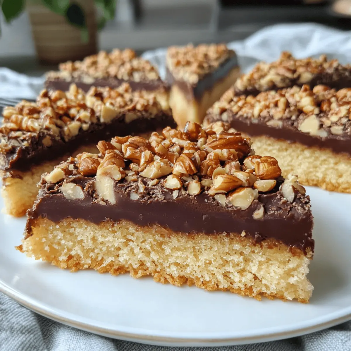 Hast du jemals das Gefühl, dass die besten Momente mit einem köstlichen Gebäck beginnen? Nussecken selbst machen bringt nicht nur den zeitlosen Charme deutscher Backtradition in deine Küche, sondern zaubert auch ein genussvolles Erlebnis, das alle begeistert. Diese besonders einfachen und dennoch geschmackvollen Nussecken mit einer wunderbar knusprigen Nusskruste und köstlicher Schokoladenschicht sind die perfekten Begleiter für gemütliche Nachmittage oder festliche Anlässe. Egal, ob du sie mit Haselnüssen, Walnüssen oder Mandeln zubereitest, sie versprechen eine unvergessliche Geschmacksexplosion, die keiner widerstehen kann. Bist du bereit, deine eigenen leckeren Nussecken zu kreieren? Lass uns anfangen! Was macht Nussecken so besonders? Unvergleichlicher Genuss: Die Kombination aus einem buttrigen Boden und einer knusprigen Nusskruste sorgt für ein Geschmackserlebnis, das jeden begeistert. Einfache Zubereitung: Mit minimalem Aufwand kannst du köstliche Nussecken selbst machen. Diese Rezeptur ist perfekt für Backanfänger! Vielseitige Varianten: Egal, ob du eine Vorliebe für Haselnüsse, Walnüsse oder Mandeln hast, die Variationsmöglichkeiten machen diese Leckerei noch spannender. Festliche Stimmung: Nussecken bringen nicht nur die deutsche Backtradition in dein Zuhause, sondern eignen sich auch hervorragend für festliche Anlässe oder gemütliche Nachmittage mit Freunden und Familie. Kombinierbar mit Kaffee: Diese Leckereien passen perfekt zu einer warmen Tasse Kaffee oder Tee, und machen jeden Moment zu einem besonderen Genuss! Nutze auch die Tipps im Abschnitt über Expertentipps und Warnhinweise, um das beste Ergebnis zu erzielen! Nussecken Zutaten • Hier ist, was du brauchst! Für den Teig 450 g Weizenmehl – sorgt für die Struktur der Kekse; verwende alternativ Allzweckmehl für ähnliches Ergebnis. 1 TL Backpulver – wichtig für die Leichtigkeit; nicht weglassen! 175 g Zucker – verleiht dem Teig Süße; kann durch Kokosblütenzucker als weniger glykemische Alternative ersetzt werden. 1 Päckchen Vanillezucker – verbessert den Geschmack; ersetze durch 1 TL Vanilleextrakt. 2 Eier – binden die Zutaten; nutze Flachseier als vegane Alternative. 125 g Butter – sorgt für reichen Geschmack und Zartheit; kann durch vegane Butter ersetzt werden. 1 Prise Salz – balanciert die Süße; essenziell; nicht weglassen. Für die Nussfüllung 400 g brauner Zucker – süßt die Nussfüllung mit Karamellgeschmack; verwende weißen Zucker, falls nötig. 1 Vanilleschote – gibt der Nussmischung Vanille-Aroma; ersetze durch 2 TL Vanilleextrakt. 400 g gemahlene Haselnüsse (oder Walnüsse/Mandeln) – der Hauptgeschmacksträger; nutze die Nuss deiner Wahl oder eine Mischung. 400 g gehackte Nüsse (oder Mandeln) – sorgt für Textur; nutze die gleiche Nusssorte wie oben für Konsistenz. 6 EL Aprikosenmarmelade – wirkt als Glasur, um die Nüsse zu binden; ersetze durch jede Fruchtmarmelade deiner Wahl. Für die Schokoladenglasur 400 g Zartbitterkuvertüre – verleiht Fülle und Reichtum; kann durch halbsüße oder Vollmilchschokolade ersetzt werden. Mit diesen Zutaten bist du auf dem besten Weg, deine eigenen köstlichen Nussecken selbst zu machen! Schritt-für-Schritt-Anleitung für Nussecken selbst machen Step 1: Ofen vorheizen und Backblech vorbereiten Heize den Ofen auf 180°C (350°F) vor und lege ein Backblech mit Backpapier aus. Das Backpapier sorgt dafür, dass die Nussecken beim späteren Herausnehmen nicht haften bleiben. Achte darauf, dass der Ofen die Temperatur erreicht hat, bevor du mit dem Backen beginnst. Step 2: Teig vorbereiten In einer großen Schüssel vermischst du das Weizenmehl, das Backpulver, den Zucker, den Vanillezucker, die Eier, die weiche Butter und das Salz. Knete die Zutaten mit einem Handrührgerät oder deinen Händen, bis ein glatter Teig entsteht. Dies sollte etwa 3-5 Minuten dauern. Der Teig sollte weich und gut formbar sein. Step 3: Teig backen Verteile den Teig gleichmäßig auf dem vorbereiteten Backblech, sodass er etwa 1 cm dick ist. Achte darauf, dass die Oberfläche glatt ist. Schiebe das Blech in den vorgeheizten Ofen und backe ihn für 15-20 Minuten, bis der Boden leicht goldbraun ist. Beobachte den Teig, um ein Überbacken zu vermeiden. Step 4: Nussfüllung vorbereiten Während der Boden backt, erhitze in einem Topf den braunen Zucker zusammen mit der aufgeschlitzten Vanilleschote, bis der Zucker schmilzt. Rühre die gemahlenen und gehackten Nüsse unter, bis alles gut vermischt ist. Dies dauert etwa 5 Minuten. Die Mischung sollte klebrig und aromatisch sein. Step 5: Nussecken zusammenstellen Nach dem Backen des Teigs, lasse ihn etwas abkühlen. Bestreiche die Oberfläche gleichmäßig mit Aprikosenmarmelade. Verteile dann die vorbereitete Nussfüllung gleichmäßig darauf und drücke sie leicht an, damit sie gut haftet. Das Zusammenspiel von Marmelade und Nüssen gibt den Nussecken ihren charakteristischen Geschmack. Step 6: Endgültiges Backen Setze das Backblech wieder in den Ofen und backe die Nussecken für weitere 20-25 Minuten, bis die Nussfüllung fest und goldbraun geworden ist. Achte darauf, dass die Nüsse nicht zu dunkel werden, um einen bitteren Geschmack zu vermeiden. Der köstliche Duft wird dich ermuntern! Step 7: Schokoladenglasur zubereiten Schmelze in einem Wasserbad die Zartbitterkuvertüre, bis sie glatt und klumpenfrei ist. Dies dauert etwa 5-7 Minuten. Rühre die Schokolade gut um, bevor du sie gleichmäßig über die gebackenen Nussecken gießt. Verwende einen Spatel, um die Oberfläche glänzend und gleichmäßig zu machen. Step 8: Abkühlen und schneiden Lasse die Nussecken vollständig abkühlen, damit die Schokolade fest wird. Dies kann bis zu einer Stunde dauern. Sobald sie abgekühlt sind, benutze ein scharfes Messermesser, um die Nussecken vorsichtig in Dreiecke zu schneiden. Achte darauf, sanft zu schneiden, damit die Schokolade nicht bricht. Nussecken selbst machen: Variationen und Substi