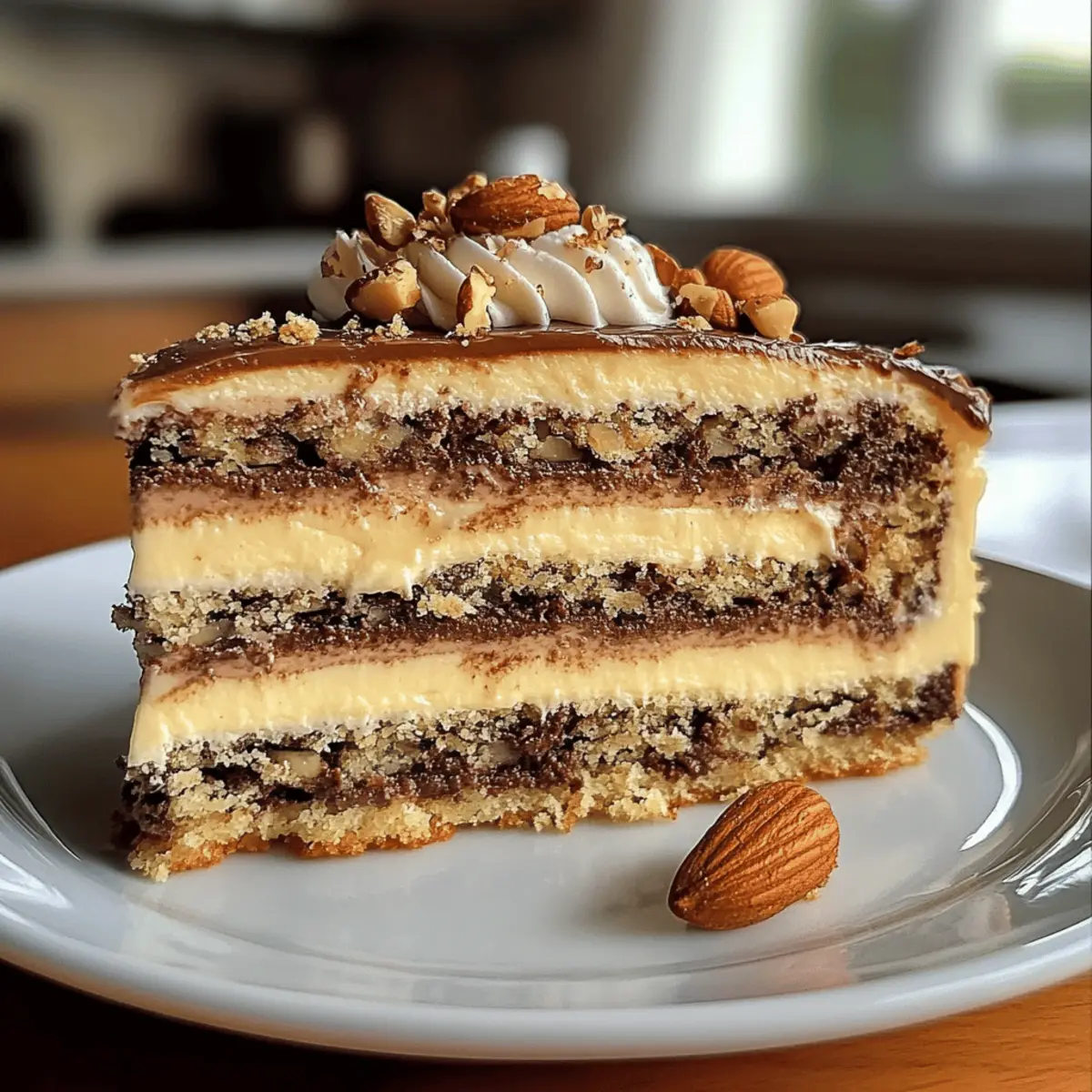 Die Aromen der Schweizer Alpen kommen in jedem Bissen dieser köstlichen Nusstorte zurück! Wenn ich in meiner Küche stehe und die Zutaten für die traditionelle Schweizer Nusstorte backen, durchströmt mich eine wohlige Vorfreude. Diese Torte verbindet die köstliche Knusprigkeit von Nüssen mit einer samtigen Schokoladenfüllung, die einfach unwiderstehlich ist. Sie ist nicht nur ein echtes Highlight für festliche Anlässe, sondern auch ein wunderbarer Begleiter für einen gemütlichen Kaffeenachmittag. Mit ihrer Anpassungsfähigkeit lässt sich die Nusstorte ganz nach deinem Geschmack variieren – sei es mit Walnüssen, Haselnüssen oder gar einem Hauch Zimt. Bist du bereit, dich in eine süße Genusswelt zu stürzen und deine eigenen Backkünste auf die Probe zu stellen? Warum ist diese Nusstorte so besonders? Traditionell: Die Nusstorte bringt die Aromen der Schweizer Alpen direkt in deine Küche und feiert eine langjährige Backtradition. Veränderbar: Ob mit Walnüssen, Haselnüssen oder zusätzlichen Füllungen wie Schokolade und Trockenfrüchten – diese Torte passt sich deinem Geschmack an! Einfach: Mit klaren Schritten und wenigen Zutaten kannst du auch als Anfänger großartige Ergebnisse erzielen. Ansprechend: Das Zusammenspiel von texturiertem, nussigem Keksboden und einer cremigen Füllung wird deine Familie und Freunde begeistern. Schneller: In weniger als 90 Minuten kannst du ein köstliches Dessert zaubern, das perfekt für jedes Fest ist. Genussvoll: Serviere die Nusstorte mit einer Tasse Kaffee oder Tee für ein unvergleichliches Geschmackserlebnis – ein Muss für jeden Kaffeeklatsch! Nusstorte Zutaten Für den Teig • Butter (250 g) – sorgt für Reichhaltigkeit und Feuchtigkeit; bei Zimmertemperatur für einfaches Mischen verwenden. • Zucker (250 g) – fügt Süße hinzu und unterstützt das Auflockern; brauner Zucker sorgt für ein intensiveres Aroma. • Eier (5) – wichtig für die Struktur und Feuchtigkeit; auf Zimmertemperatur bringen für optimale Ergebnisse. • Vanillezucker (1 Paket) – verleiht Vanillegeschmack und hebt die Süße hervor; kann durch 1 TL Vanilleextrakt ersetzt werden. • Mehl (500 g) – das Hauptstrukturmittel für den Teig; für glutenfreie Varianten einen speziellen Mix verwenden. • Backpulver (1 Paket) – das Treibmittel für eine fluffige Konsistenz; sicherstellen, dass es frisch ist. • Gemahlene Haselnüsse (200 g) – bringen nussigen Geschmack und Textur; andere Nüsse können als Variation verwendet werden. • Prise Salz – verstärkt den Geschmack und balanciert die Süße. Für die Füllung • Schlagsahne (200 g) – sorgt für eine leichte und luftige Füllung; gut gekühlt aufschlagen für bessere Ergebnisse. • Zartbitterschokolade (200 g) – fügt der Füllung einen reichen Schokoladengeschmack hinzu; kann durch Milchschokolade ersetzt werden für eine süßere Variante. • Puderzucker (optional) – für das Bestäuben der Torte, um eine ästhetische Note und zusätzliche Süße zu verleihen. Dieses Rezept für Nusstorte backen wird deiner Familie und deinen Freunden ein wahres Geschmackserlebnis bieten! Schritt-für-Schritt-Anleitung für Nusstorte backen Schritt 1: Ofen vorheizen und Backform vorbereiten Heize den Ofen auf 180 °C vor. Für die Zubereitung der Nusstorte fette eine 26 cm Springform gut ein oder lege sie mit Backpapier aus, damit der Kuchen später leicht herausgelöst werden kann. Achte darauf, dass die Form gut vorbereitet ist, um ein Ankleben des Teiges zu vermeiden. Schritt 2: Butter und Zucker cremig rühren Gib die weiche Butter (250 g), den Zucker (250 g) und den Vanillezucker in eine große Rührschüssel. Schlage die Mischung mit einem Handrührgerät oder einer Küchenmaschine für etwa 5-7 Minuten, bis die Masse hell und luftig ist. Diese fluffige Konsistenz sorgt dafür, dass die Nusstorte nach dem Backen schön leicht wird. Schritt 3: Eier hinzufügen Füge die Eier (5) nacheinander in die Butter-Zucker-Mischung hinzu. Mische nach jedem Ei gut, damit es vollständig eingearbeitet wird. Dies sorgt für Stabilität und Feuchtigkeit in deinem Teig. Achte darauf, dass die Eier Zimmertemperatur haben, um die besten Ergebnisse zu erzielen. Schritt 4: Trockene Zutaten mischen In einer separaten Schüssel siebe das Mehl (500 g), das Backpulver (1 Paket) und eine Prise Salz zusammen. Dies stellt sicher, dass die Backtriebmittel gut verteilt sind. Füge die trockenen Zutaten dann langsam zur Butter-Ei-Mischung hinzu und falte sie vorsichtig unter, bis alles gut kombiniert ist. Schritt 5: Nüsse unterheben Füge die gemahlenen Haselnüsse (200 g) zur Teigmischung hinzu und falte sie vorsichtig ein, bis sie gleichmäßig verteilt sind. Dies verleiht der Nusstorte ihren charakteristischen Geschmack und die nussige Textur. Achte darauf, den Teig nicht zu übermixen, damit er flauschig bleibt. Schritt 6: Teig in die Form füllen Gieße den fertigen Teig in die vorbereitete Springform und streiche die Oberfläche mit einem Teigschaber glatt. Dies hilft, eine gleichmäßige Backoberfläche zu erhalten. Stelle sicher, dass der Teig gleichmäßig verteilt ist, um ein gleichmäßiges Backergebnis zu erzielen. Schritt 7: Backen Backe die Nusstorte für 40-45 Minuten im vorgeheizten Ofen. Überprüfe nach etwa 30 Minuten mit einem Zahnstocher, ob der Kuchen durch ist – er sollte sauber herauskommen. Achte darauf, dass die Oberseite goldbraun ist, um die perfekte Konsistenz zu erreichen. Schritt 8: Abkühlen lassen Lass die Nusstorte nach dem Backen etwa 15 Minuten in der Form abkühlen. Danach kannst du den Kuchen vorsichtig aus der Form nehmen und auf einem Kuchengitter vollständig auskühlen lassen. Dies verhindert, dass die Torte zu feucht wird und hilft, die Textur zu bewahren. Schritt 9: Füllung zubereiten Während die Torte abkühlt, schlage die gut gekühlte Schlagsahne (200 g) bis steife Spitzen entstehen. Schmelze die Zartbitterschokolade (200 g) und lass sie leicht abkühlen. F