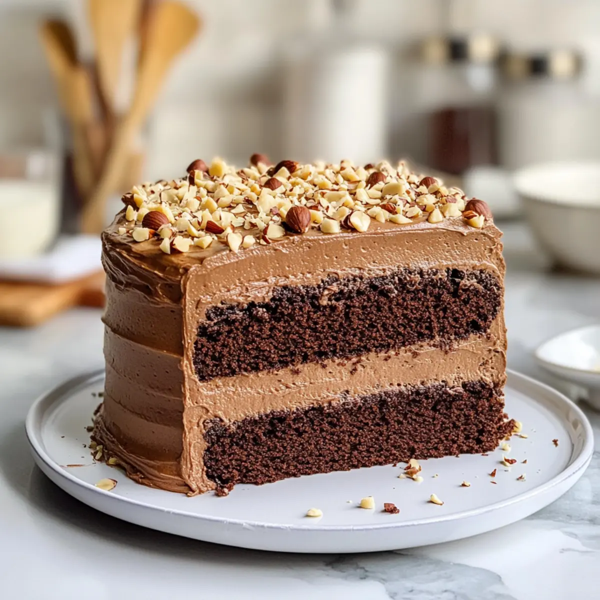 Während ich heute in meiner Küche stand, überkam mich die Vorfreude auf einen ganz besonderen Leckerbissen: den Nutella-Kuchen. Dieser Kuchen ist nicht nur eine Explosion aus zartem Schokoladenteig, sondern auch ein wahres Meisterwerk der Buttercreme, die auf der Grundlage von lieblich-cremigem Nutella zubereitet wird. Das Beste daran? Er ist sowohl für Anfänger als auch für erfahrene Bäcker eine wahre Freude und lässt sich im Handumdrehen zubereiten! Ob als Festtagsüberraschung oder einfach nur, um sich selbst zu verwöhnen – dieser Nutella-Kuchen wird garantiert zum Star jeder Kaffeetafel. Bist du bereit, mit mir in die Welt des süßen Genusses einzutauchen? Warum ist dieser Nutella-Kuchen so besonders? Einfachheit: Die Rezeptanleitung ist unkompliziert und eignet sich perfekt für alle, die mit wenig Aufwand ein köstliches Dessert zaubern möchten. Sinnlicher Genuss: Jeder Bissen enthüllt eine harmonische Kombination aus zartem Schokoladenteig und himmlisch cremiger Nutella-Buttercreme. Vielfältige Anpassungsmöglichkeiten: Experimentiere mit verschiedenen Nusssorten oder füge aromatisierte Extrakte für eine persönliche Note hinzu. Zeitersparnis: Dieser Kuchen kann im Voraus zubereitet werden, sodass er ideal für spontane Gäste oder Feierlichkeiten ist. Großer Publikumsliebling: Egal, ob du Freunde einlädst oder einen besonderen Anlass feierst – der Nutella-Kuchen wird sicherlich die Herzen aller erobern! Mit dieser Zusammenstellung wird dein Backerlebnis zum Fest der Sinne. Falls du noch mehr Inspiration brauchst, schau dir auch unser Rezept für Schokoladentorte an! Nutella-Kuchen Zutaten • Entdecke die perfekten Zutaten für deinen himmlischen Nutella-Kuchen! Für den Teig Warmes Wasser oder Kaffee (240g) – Fügt Feuchtigkeit hinzu und verstärkt den Schokoladengeschmack; für einen intensiveren Geschmack kann auch aufgebrühter Kaffee verwendet werden. Allzweckmehl (240g) – Gibt Struktur; für eine glutenfreie Option verwende ein 1:1 glutenfreies Mehl. Maisstärke (4 Teelöffel) – Verbessert die Textur des Kuchens und macht ihn luftiger; keine Substitution nötig, es sei denn, du bist allergisch. Zucker (200g) – Süßt den Teig und sorgt für Feuchtigkeit; brauner Zucker kann für einen reicheren Geschmack verwendet werden. Brauner Zucker (100g) – Fügt Feuchtigkeit und Tiefe hinzu; kann durch zusätzlichen weißen Zucker ersetzt werden, falls nicht verfügbar. Ungesüßter Kakao (50g) – Trägt zum Schokoladengeschmack bei; verwende holländischen Kakao für einen milderen Geschmack. Backpulver (1 Teelöffel) & Natron (1 Teelöffel) – Treibmittel; darauf achten, dass beide frisch sind für die besten Ergebnisse. Salz (1 Teelöffel) – Verstärkt den Geschmack; keine Substitution empfohlen. Pflanzenöl (110g) – Halten den Kuchen feucht; Olivenöl kann für ein anderes Geschmacksprofil verwendet werden. Saure Sahne (180g) – Fügt Feuchtigkeit und einen leichten Säurekick hinzu; kann durch Naturjoghurt ersetzt werden. Große Eier (2) – Binden die Zutaten und bereichern den Geschmack; achte darauf, dass sie Zimmertemperatur haben. Für die Buttercreme Butter (230g, Zimmertemperatur) – Grundlage für die Buttercreme; wichtig für die Cremigkeit; vegane Butter kann für eine milchfreie Variante verwendet werden. Puderzucker (240g) – Süßt die Buttercreme und sorgt für eine glatte Textur. Nutella (170g) – Hauptgeschmacksträger und für die Reichhaltigkeit in der Buttercreme; keine Substitution empfohlen. Dunkle Schokoladenstückchen (60g) – Fügt Tiefe zur Buttercreme hinzu; Menge kann je nach gewünschtem Geschmack angepasst werden. Vanilleextrakt (½-1 Teelöffel) – Verbessert den Geschmack; je nach Vorliebe anpassen. Rohe ungesalzene Haselnüsse (20g) – Für die Dekoration; fein hacken; kann durch andere Nüsse ersetzt oder weggelassen werden. Mit diesen Zutaten bist du bestens gerüstet, um den köstlichen Nutella-Kuchen zu backen, der sowohl für seinen Geschmack als auch für seine visuelle Präsenz bewundert wird! Schritt-für-Schritt-Anleitung für den leckeren Nutella-Kuchen Step 1: Ofen vorheizen Heize deinen Ofen auf 170ºC vor und lege zwei runde 20 cm (8 Zoll) Backformen mit Backpapier aus. Dies sorgt dafür, dass der Nutella-Kuchen nicht anhaftet und gleichmäßig gebacken wird. Wenn der Ofen heiß ist, kannst du mit den restlichen Vorbereitungen beginnen. Step 2: Trockene Zutaten vermischen Bereite eine Tasse Kaffee oder heißes Wasser vor und lasse es etwas abkühlen. Siebe dann in eine große Schüssel das Mehl, die Maisstärke, den Zucker, den Kakao, das Backpulver, das Natron und das Salz. Mische die trockenen Zutaten gründlich, da sie die Grundlage für die lockere Textur deines Kuchens bilden. Step 3: Feuchte Zutaten kombinieren In einer separaten Schüssel vermischst du die feuchten Zutaten: Gekühlten Kaffee, Pflanzenöl, saure Sahne, Eier und Vanilleextrakt. Verquirle alles sanft, bis eine homogene Masse entsteht. Die Kombination dieser Zutaten sorgt für einen saftigen Nutella-Kuchen. Step 4: Mischen der Zutaten Falte die feuchte Mischung vorsichtig in die trockenen Zutaten, bis keine Klumpen mehr sichtbar sind. Achte darauf, nicht zu übermixen, um die Luftigkeit des Kuchens zu bewahren. Die perfekte Mischung führt zu einem schönen, gleichmäßigen Teig, der die Grundlage deiner leckeren Kreation bildet. Step 5: Teig backen Teile den Teig gleichmäßig auf die vorbereiteten Backformen auf und backe ihn etwa 28–30 Minuten lang. Überprüfe die Garheit mit einem Holzstäbchen – es sollte sauber herauskommen. Lass die Kuchen nach dem Backen auf einem Kuchengitter abkühlen; sie müssen vollständig abkühlen, bevor du die Buttercreme aufträgst. Step 6: Buttercreme zubereiten Schmelze die dunklen Schokoladenstückchen vorsichtig in der Mikrowelle oder über einem Wasserbad. In einer großen Schüssel vermischt du dann die Zimmertemperatur-Butter mit dem Puderzucker, bis sie leicht und luftig ist.