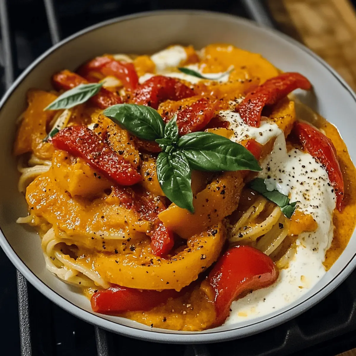 Der Herbst ist nicht nur die Zeit für bunte Blätter, sondern auch für die köstlichen Aromen von frisch geröstetem Gemüse. Bei der Zubereitung dieser leckeren Ofenkürbis-Paprika-Sauce treffen süße Hokkaido-Kürbisse auf geschmackvolle rote Paprika, um eine cremige Verführung zu schaffen, die jeden Gaumen erfreut. Neben ihrem unverwechselbaren Geschmack begeistert die Sauce nicht nur mit einer schnellen Zubereitung, sondern passt auch hervorragend zu einer gesunden Lebensweise. Egal, ob als Dip oder über Pasta – diese Sauce bringt das Beste aus saisonalen Zutaten auf den Tisch. Bist du bereit, deinen Küchenzauber zu entfalten und die Aromen des Herbstes zu genießen? Warum solltest du diese Sauce lieben? Einfachheit, die begeistert: Diese Ofenkürbis-Paprika-Sauce ist in wenigen Schritten zubereitet und erfordert keine ausgeklügelten Kochkünste. Vielseitigkeit, die Sinn macht: Ob als Dip für Brotsticks oder als cremige Ergänzung zu Pasta – die Anwendungsmöglichkeiten sind endlos! Wohlfühl-Geschmack: Die perfekte Harmonie aus süßem Kürbis und würzigen Paprika sorgt für ein Geschmackserlebnis, das alle begeistern wird. Gesunde Zutaten, die Freude bringen: Vegan, glutenfrei und reich an Vitaminen – diese Sauce passt ideal zu einer bewussten Ernährung. Saisonale Frische: Die Verwendung von frischem, saisonalem Gemüse bringt die Aromen des Herbstes direkt auf deinen Teller. Probier auch die köstlichen Variationen wie die Kombination mit Nüssen oder einem Schuss Kokosmilch aus, um das Rezept zu verfeinern! Ofenkürbis-Paprika-Sauce Zutaten Für die Sauce: Hokkaido- oder Butternut-Kürbis – Hauptzutat, die Süße und Cremigkeit verleiht; andere Kürbissorten können als Ersatz verwendet werden. Rote Paprika – Fügt der Sauce eine süße und leicht saure Note hinzu; gelbe oder orange Paprika sind als Alternativen geeignet. Zwiebel – Sorgt für Tiefe und Süße; kann durch Schalotten ersetzt werden, um einen milden Geschmack zu erzielen. Knoblauch – Verbessert den Gesamtgeschmack; frischer Knoblauch ist empfehlenswert für die besten Ergebnisse. Olivenöl – Wichtig fürs Rösten, unterstützt die Karamellisierung; kann durch Avocadoöl ersetzt werden. Kreuzkümmel – Verleiht einen warmen, erdigen Geschmack; gemahlener Koriander kann als Alternative dienen. Paprikapulver – Fügt Tiefe und Farbe hinzu; geräuchertes Paprikapulver bringt ein anderes Geschmacksprofil. Salz und Pfeffer – Essentielle Gewürze nach Geschmack hinzufügen; je nach Vorliebe anpassen. Gemüsebrühe – Kreiert eine herzhafte Basis für die Sauce; eine natriumarme Brühe kann für eine gesündere Option verwendet werden. Balsamico-Essig – Fügt Säure hinzu und verstärkt die Aromen; Rotweinessig kann alternativ verwendet werden. Frischer Basilikum oder Petersilie – Für die Garnitur, die einen frischen Abschluss bietet. Diese Ofenkürbis-Paprika-Sauce ist nicht nur eine geschmackvolle Ergänzung zu deinen Lieblingsgerichten, sondern unterstützt auch eine bewusste Ernährung. Lass die Aromen des Herbstes in deine Küche einziehen! Schritt-für-Schritt-Anleitung für Ofenkürbis-Paprika-Sauce Step 1: Ofen vorheizen Heize den Ofen auf 200°C vor. Dies ist wichtig für das Rösten der Gemüse, um ihre Süße und den Geschmack zu intensivieren. Ein vorgeheizter Ofen sorgt dafür, dass der Hokkaido- oder Butternut-Kürbis und die roten Paprika gleichmäßig garen und eine leichte Karamellisierung erhalten. Step 2: Kürbis vorbereiten Halbiere den Kürbis und entferne die Kerne. Schneide das Fruchtfleisch in gleichmäßige Würfel, etwa 2 cm groß. Dies stellt sicher, dass der Kürbis beim Rösten gleichmäßig gart und weich wird, was die Basis für die cremige Ofenkürbis-Paprika-Sauce bildet. Step 3: Gemüse schneiden Schneide nun die roten Paprika und die Zwiebel in grobe Stücke. Hacke den Knoblauch fein. Diese frisch geschnittenen Zutaten werden zusammen mit dem Kürbis geröstet und tragen zur Fülle der Aromen in deiner Ofenkürbis-Paprika-Sauce bei. Step 4: Gemüse rösten In einer großen Schüssel das gewürfelte Gemüse mit Olivenöl und den Gewürzen, einschließlich Kreuzkümmel, Paprikapulver, Salz und Pfeffer, vermengen. Verteile die Mischung gleichmäßig auf einem mit Backpapier belegten Blech und röste das Gemüse für etwa 25 Minuten, bis es goldbraun und zart ist. Step 5: Gemüse kombinieren und köcheln lassen Übertrage die gerösteten Gemüse in einen großen Topf und füge die Gemüsebrühe hinzu. Bringe die Mischung zum Kochen und lasse sie dann für 5 Minuten köcheln, damit sich die Aromen gut entfalten können. Dies sorgt dafür, dass die Ofenkürbis-Paprika-Sauce eine leckere und harmonische Geschmacksbasis erhält. Step 6: Pürieren Nimm den Topf vom Herd und püriere die Mischung mit einem Stabmixer, bis die Sauce schön cremig und glatt ist. Schlussfolgernd erhält die Ofenkürbis-Paprika-Sauce eine samtige Textur, die sie perfekt zu Pasta oder als Dip macht. Step 7: Fertigstellen und servieren Rühre den Balsamico-Essig ein und schmecke die Sauce mit zusätzlichem Salz und Pfeffer ab. Garniere die Ofenkürbis-Paprika-Sauce vor dem Servieren mit frischem Basilikum oder Petersilie für eine aromatische Note. Diese letzte Berührung bringt die köstlichen Herbstaromen perfekt zur Geltung. Tipps zur Vorbereitung der Ofenkürbis-Paprika-Sauce für zeitsparendes Kochen Die Ofenkürbis-Paprika-Sauce lässt sich hervorragend im Voraus zubereiten, ideal für vielbeschäftigte Wochen! Du kannst das Gemüse bis 24 Stunden vorher schneiden und in einem luftdichten Behälter im Kühlschrank aufbewahren, um die Frische zu bewahren und das Risiko des Verwelkens zu vermeiden. Ebenso kannst du die Sauce nach dem Pürieren für bis zu 3 Tage im Kühlschrank lagern oder sie bis zu 3 Monate einfrieren – so hast du jederzeit eine gesunde, hausgemachte Sauce zur Hand. Um die Qualität beim Aufwärmen zu erhalten, solltest du die Sauce langsam erhitzen und eventuell
