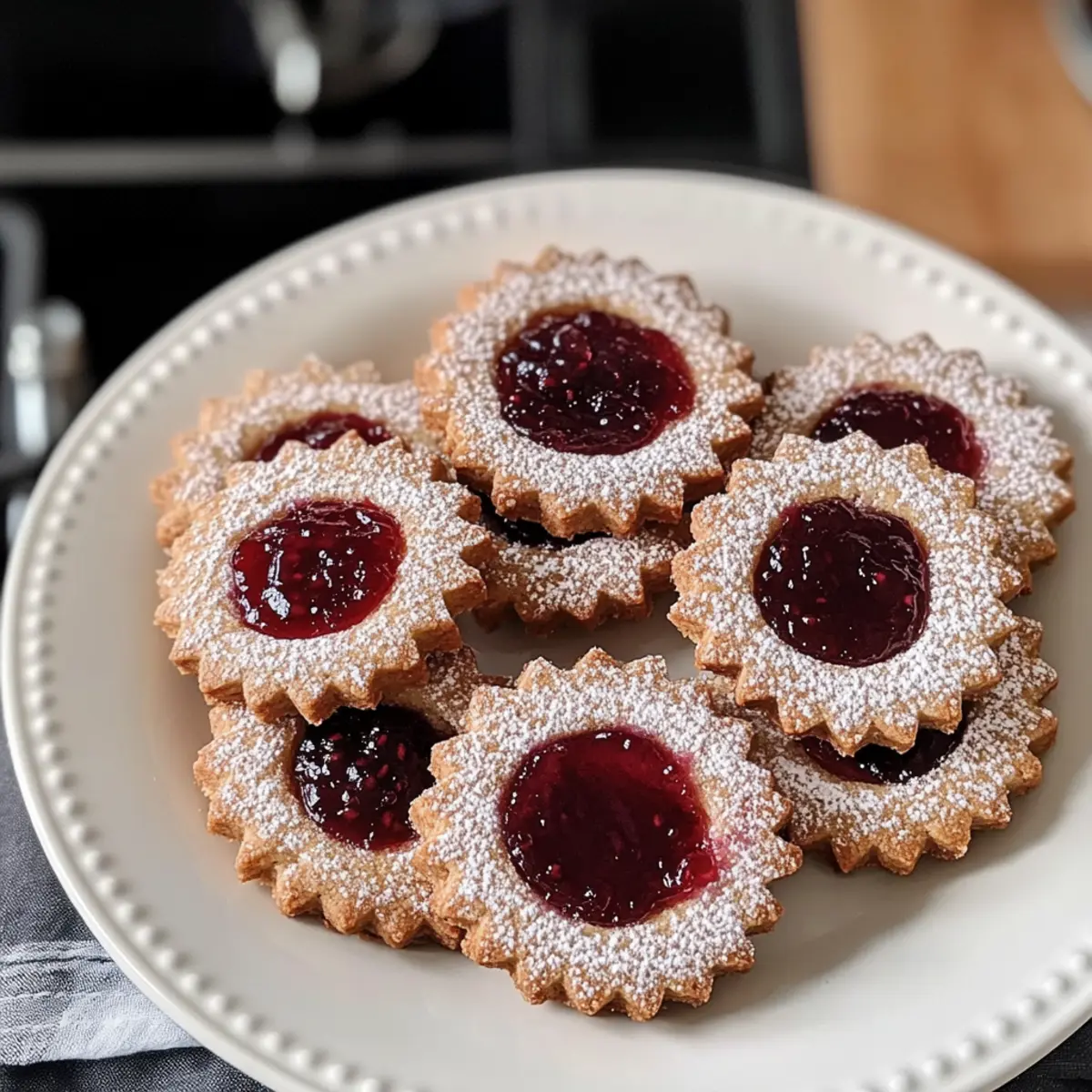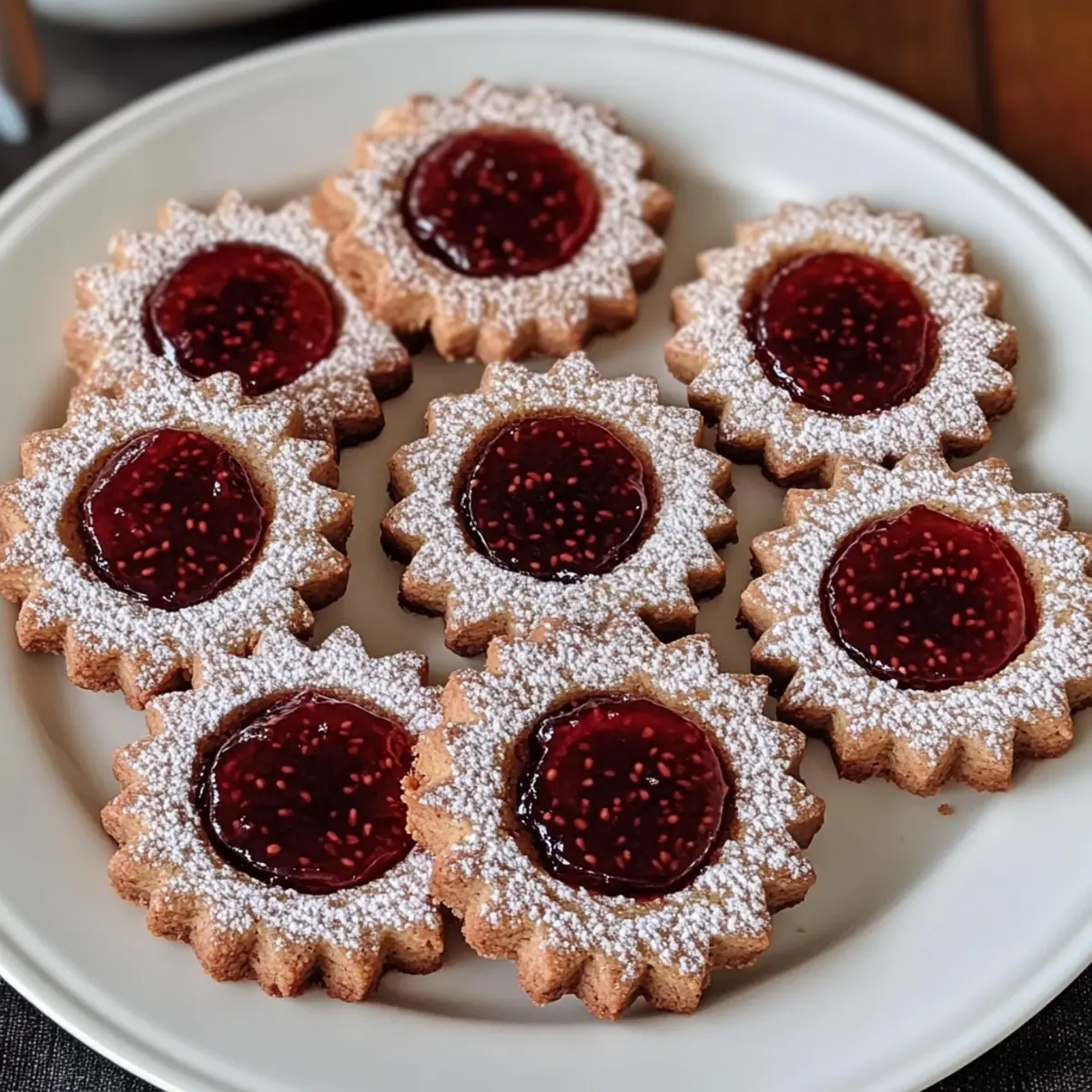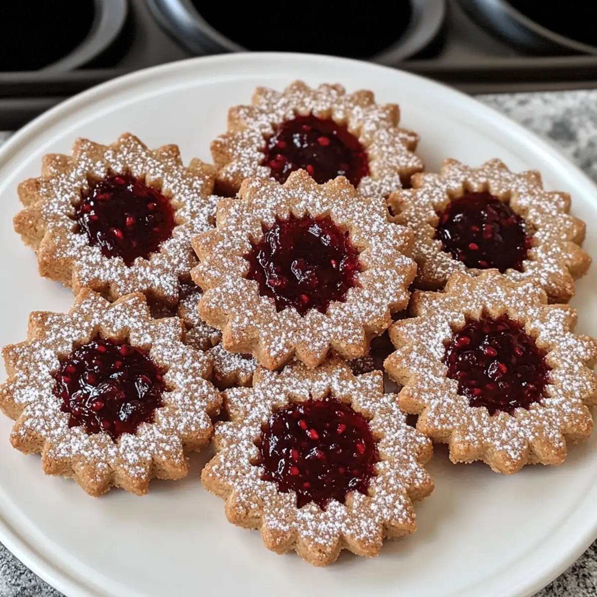 Wenn ich an meine Kindheit zurückdenke, erscheinen mir Omas Linzer Plätzchen wie kleine, süße Erinnerungen, die in der Luft schweben. Diese traditionellen Kekse, gefüllt mit dem besonders fruchtigen Johannisbeergelee, sind nicht nur ein Augenschmaus, sondern auch ein Fest für den Gaumen. Die Kombination aus nussigem Haselnussgeschmack, zartem Kakaopulver und wärmenden Gewürzen sorgt für eine köstliche Kekserfahrung. Perfekt für die festliche Jahreszeit, lassen sich diese Leckerbissen im Voraus zubereiten und erreichen ihren vollen Geschmack erst nach ein paar Tagen Ruhezeit. Wenn du auf der Suche nach einem Rezept bist, das sowohl einfach zuzubereiten ist als auch die Herzen deiner Freunde und Familie begeistert, sind Omas Linzer Plätzchen genau das Richtige. Bist du bereit, in die Welt des Backens einzutauchen und deine eigene Keks-Variante zu kreieren? Warum wirst du Omas Linzer Plätzchen lieben? Traditionell und herzhaft: Diese Kekse sind nicht nur ein Rezept, sondern ein Stück Familiengeschichte, das Freude bereitet. Einfach zuzubereiten: Der klare Prozess macht es dir leicht, auch als Backanfänger herrliche Plätzchen zu zaubern. ** Vielseitig:** Du kannst mit verschiedenen Füllungen und Nüssen experimentieren, um jedem Geschmack gerecht zu werden. Perfekt für Feste: Die zarten und nussigen Aromen machen sie zu einem Hit auf jeder Kaffeetafel oder während der Feiertage. Überraschend haltbar: Du kannst sie im Voraus backen, und ihre Aromen intensivieren sich mit der Zeit – ideal für die Planung! Lass dich von Omas Linzer Plätzchen inspirieren und entdecke auch andere Weihnachtsplätzchen-Rezepte. Omas Linzer Plätzchen Zutaten • Für jeden Keksliebhaber ein absolutes Muss: diese Zutaten sind der Schlüssel zu köstlichen Omas Linzer Plätzchen! Haselnüsse (Hazelnuts) – Verleiht einen nussigen Geschmack und eine tolle Textur; alternativ kannst du auch Mandeln verwenden. Kalte Butter (Cold Butter) – Sorgt für die zarte und flauschige Konsistenz; achte darauf, dass sie kalt ist für das perfekte Ergebnis. Eigelb (Egg Yolk) – Bindet die Zutaten und verleiht dem Teig Reichtum; für eine eifreie Variante kann Leinsamenmehl als Bindemittel dienen. Brauner Zucker (Brown Sugar) – Bringt Süße und eine angenehme Feuchtigkeit; weißer Zucker kann verwendet werden, verändert den Geschmack jedoch leicht. Vanilleextrakt (Vanilla Extract) – Betont die Aromen; ersetze es für eine Variante durch Mandel-Extrakt. Mehl (Flour) – Hauptbestandteil für die Struktur; allgemeines Weizenmehl ist standardmäßig; glutenfreie Mischungen könnten ebenfalls funktionieren. Kakaopulver (Cocoa Powder) – Fügt einen Schokoladengeschmack hinzu; kann weggelassen werden, wenn du die klassischen Linzer Plätzchen zubereiten möchtest. Zimt (Cinnamon) – Eine warme Würze, die Tiefe verleiht; passe die Menge deinem persönlichen Geschmack an. Salz (Salt) – Balanciert die Süße aus; ist für die Geschmacksentwicklung unerlässlich. Johannisbeergelee (Johannisberry Jelly) – Liefert die süß-säuerliche Füllung; du kannst auch Himbeer- oder Aprikosenmarmelade als Alternative verwenden. Puderzucker (Powdered Sugar) – Zum Bestäuben und für die Präsentation; optional für eine schöne Dekoration. Step-by-Step Instructions für Omas Linzer Plätzchen Step 1: Haselnüsse rösten Röste 100 g Haselnüsse in einer trockenen Pfanne bei mittlerer Hitze, bis sie goldbraun sind (ca. 5-7 Minuten). Achte darauf, die Nüsse regelmäßig umzurühren, damit sie nicht verbrennen. Lass sie danach abkühlen und mahle sie fein in einer Küchenmaschine oder mit einem Mixer. Step 2: Teig vorbereiten Vermische in einer großen Schüssel die gemahlenen Haselnüsse, 200 g kalte Butter, 1 Eigelb, 100 g braunen Zucker, 1 TL Vanilleextrakt, 275 g Mehl, 20 g Kakaopulver, ½ TL Zimt und eine Prise Salz. Mische die Zutaten gründlich, bis die Masse die Konsistenz von feuchtem Sand hat (ca. 5 Minuten). Step 3: Teig kneten und kühlen Knete den Teig kurz mit den Händen, bis er glatt ist. Forme ihn zu einer flachen Scheibe, wickele ihn in Frischhaltefolie und lege ihn für mindestens 1 Stunde (am besten über Nacht) in den Kühlschrank, damit er fest wird und sich besser verarbeiten lässt. Step 4: Ofen vorheizen und Backbleche vorbereiten Heize den Ofen auf 170 °C vor und lege zwei Backbleche mit Backpapier aus. Dies sorgt dafür, dass die Plätzchen gleichmäßig backen und nicht ankleben. Bereite dir auch Ausstechformen und eine Nudelrolle vor, damit du mit dem Ausstechen beginnen kannst. Step 5: Teig ausrollen und ausstechen Nimm den gekühlten Teig aus dem Kühlschrank und rolle ihn auf einer bemehlten Arbeitsfläche etwa 5-6 mm dick aus. Verwende Ausstechformen, um die Plätzchen auszustechen und achte darauf, die Formen gleichmäßig zu verteilen, um ein gleichmäßiges Backen zu gewährleisten. Step 6: Plätzchen backen Lege die ausgestochenen Plätzchen auf die vorbereiteten Backbleche und backe sie 10-12 Minuten lang im vorgeheizten Ofen, bis die Ränder leicht goldbraun sind. Lass die Plätzchen kurz auf dem Blech abkühlen, bevor du sie vorsichtig auf ein Kuchengitter zum vollständigen Abkühlen überträgst. Step 7: Füllen und dekorieren Schlage das Johannisbeergelee in einer kleinen Schüssel glatt und verteile es großzügig auf der Unterseite eines Plätzchens. Setze ein weiteres Plätzchen darauf, um ein Sandwich zu bilden. Lass die Plätzchen kurz trocknen und bestäube sie anschließend mit Puderzucker für eine elegante Präsentation. Was passt zu Omas Linzer Plätzchen? Omas Linzer Plätzchen sind nicht nur köstlich, sie bieten auch viele Möglichkeiten, um eine liebevolle und festliche Mahlzeit zu kreieren. Frisch gebrühter Kaffee: Der kräftige Geschmack von frisch gebrühtem Kaffee harmoniert wunderbar mit der süßen Note der Plätzchen und sorgt für einen perfekten Start in den Tag. Fruchtiger Tee: Ein frischer Früchtetee bringt eine erquickende Säure mit, die die s
