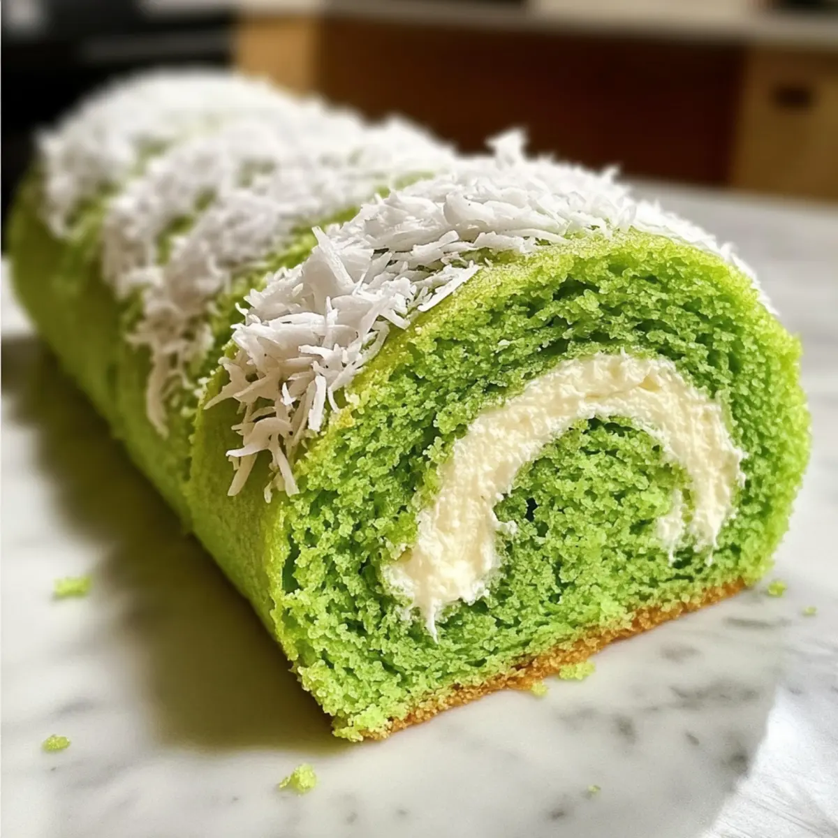 Die süße Vorfreude auf das Fest der Farben erfüllt die Küche, als ich die leuchtend grüne Pandan Schweizer Rolle zubereite. Dieses Rezept ist nicht nur ein Fest für die Augen, sondern auch ein absolutes Highlight auf jedem Ostertisch. Die Pandan Swiss Rolle vereint die zarte, luftige Textur des Kuchens mit einer himmlischen Füllung aus Kokos- oder Vanillecreme. Schnell zubereitet und einfach anpassbar, ist dieser österliche Leckerbissen nicht nur ein Genuss für den Gaumen, sondern auch für die Seele. Ob für eine fröhliche Feier oder einfach als Überraschung für die Familie – diese dezente asiatische Note bringt frischen Wind in deine Dessert-Sammlung. Welche Füllung wirst du ausprobieren: kokosnussig oder klassisch vanillig? Warum ist die Pandan Swiss Rolle so besonders? Einzigartig: Diese Pandan Swiss Rolle ist nicht nur ein visueller Höhepunkt, sondern auch eine Geschmacksexplosion mit ihrem zarten, luftigen Biskuit, der den unverwechselbaren Geschmack von Pandan trägt. Vielseitig: Du kannst sie ganz nach deinem Geschmack füllen, sei es mit einer cremigen Kokos- oder einer klassischen Vanillecreme. Schnell & Einfach: Dank einfacher Schritte gelingt diese Rolle selbst Anfängern im Handumdrehen. Festlich & Farbig: Die leuchtend grüne Farbe macht sie zum Highlight bei jeder Feier — perfekt für Ostern oder Frühlingsfeste! Beliebtheit: Die Kombination aus asiatischen Aromen und traditioneller Backkunst begeistert einfach alle. Lass dich inspirieren und entdecke auch unsere Mittelmeer Knoblauch Garnelen für ein komplettes Festmenü! Pandan Swiss Rolle Zutaten • Entdecken Sie die fruchtigen Aromen der Pandan Swiss Rolle! Für den Biskuit Pandan Extrakt – sorgt für den einzigartigen, aromatischen Geschmack von Pandan; alternativ können frische Pandanblätter mit Kokosmilch püriert werden. Eiweiße – tragen zur luftigen Konsistenz des Biskuits bei; wichtig ist, sie bis zu steifen Spitzen zu schlagen, um die optimale Fluffigkeit zu erreichen. Allzweckmehl – gibt dem Kuchen Struktur; kann für eine leichtere Textur durch 1 Esslöffel Maisstärke ersetzt werden. Kokoszucker – verleiht Süße und einen Hauch von Karamell; bei Bedarf kann auch normaler Zucker verwendet werden. Für die Füllung Kokos- oder Vanillecreme – die perfekte Füllung für die Rolle; kann je nach Vorliebe angepasst werden (verwenden Sie Kokos-Schlagsahne für eine milchfreie Option). Dekorative Toppings (optional) Mini-Schokoladeneier – verleihen der Rolle einen süßen und festlichen Akzent. Pastellfarbige Schlagsahne – machen die Präsentation noch ansprechender und fröhlicher. Essbare Blumen – bringen einen zusätzlichen, blühenden Charme auf den Tisch. Lass dich von der frischen und aufregenden Aromenvielfalt begeistern und kreiere deine eigene köstliche Pandan Swiss Rolle! Schritt-für-Schritt-Anleitung für die Pandan Swiss Rolle Step 1: Ofen vorheizen Heize deinen Ofen auf 180 °C (Umluft 160 °C) vor. Diese Temperatur sorgt dafür, dass die Pandan Swiss Rolle gleichmäßig backt und eine angenehme, leicht goldene Farbe annimmt. Während der Ofen aufheizt, kannst du dich um die weiteren Vorbereitungen kümmern. Step 2: Backblech vorbereiten Lege ein Backblech mit Backpapier aus, um ein Ankleben des Teigs zu verhindern. Achte darauf, dass das Papier die gesamten Kanten abdeckt. Um sicherzustellen, dass der Teig gleichmäßig verteilt wird, kannst du die Ecken des Papiers leicht mit etwas Öl bestreichen. Step 3: Teig für den Pandan-Biskuit zubereiten In einer großen Schüssel den Pandan Extrakt zusammen mit den anderen Zutaten vermengen. Mische alles gut, bis der Teig eine gleichmäßige grüne Farbe hat. Visuell sollte der Teig glatt und leicht flüssig sein — er sollte keine Klumpen enthalten. Step 4: Eiweiße schlagen Schlage die Eiweiße mit einem Handmixer in einer sauberen, fettfreien Schüssel, bis steife Spitzen entstehen. Dies kann etwa 3-5 Minuten dauern. Wenn du die Schüssel kopfüber neigen kannst, ohne dass die Eiweiße herausfallen, sind sie perfekt geschlagen und bereit für den nächsten Schritt. Step 5: Biskuit im Ofen backen Gieße die Teigmischung gleichmäßig auf das vorbereitete Backblech. Backe die Pandan Swiss Rolle für 10-12 Minuten, bis der Kuchen leicht goldbraun und die Oberfläche elastisch ist. Ein Zahnstocher sollte sauber herauskommen, wenn du ihn in die Mitte stichst. Step 6: Rolle & Kuchen abkühlen lassen Sobald du den Kuchen aus dem Ofen nimmst, lege ihn sofort vorsichtig auf ein weiteres Stück Backpapier. Rolle den Kuchen entlang der langen Seite auf, während er noch warm ist, und lasse ihn in dieser Position abkühlen. So behält er die perfekte Form. Step 7: Füllung vorbereiten Schlage die Kokos- oder Vanillecreme in einer separaten Schüssel, bis sie luftig und leicht ist. Dies wird etwa 2-4 Minuten in Anspruch nehmen. Achte darauf, die Creme nicht zu übermixen; sie sollte fluffig, aber stabil bleiben, um eine gute Füllung für die Pandan Swiss Rolle zu erzielen. Step 8: Swiss Rolle zusammenstellen Entroll die abgekühlte Pandan Swiss Rolle vorsichtig und verteile die aufgeschlagene Creme gleichmäßig auf der Oberfläche. Rolle den Kuchen wieder vorsichtig auf, bis er eine schöne Rolle bildet, und achte darauf, die Füllung nicht herauszudrücken. Step 9: Dekorieren & Servieren Schneide die Enden der Pandan Swiss Rolle ab und platziere sie auf einem Servierteller. Dekoriere die Oberseite nach Belieben mit Mini-Schokoladeneiern, pastellfarbener Schlagsahne oder essbaren Blumen. Diese festliche Präsentation macht deine Rolle zum perfekten Highlight für die Frühlingsfeier! Die perfekte Vorbereitung für die Pandan Swiss Rolle Diese Pandan Swiss Rolle eignet sich hervorragend für die Vorbereitung im Voraus, ideal für alle beschäftigten Köche! Du kannst die Biskuitbasis bis 24 Stunden vor dem Servieren backen und sie gut in Frischhaltefolie eingewickelt im Kühlschrank aufbewahren, um die Frische zu bewahren. Die F