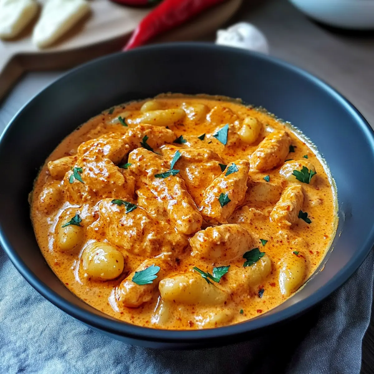 Manchmal reicht ein Blick in den Kühlschrank, und plötzlich wird ein einfaches Abendessen zu einem köstlichen Erlebnis. Bei mir war das der Moment, als ich die Idee für mein Paprika-Sahne-Hähnchen mit Gnocchi hatte. Dieses Rezept ist nicht nur ein Fest für die Sinne, sondern auch im Handumdrehen zubereitet – perfekt für hektische Wochentage! Die cremige Sauce umhüllt zarte Stücke Hähnchen, während die Gnocchi eine zufriedenstellende Basis bieten. Egal, ob du hungrige Kinder oder Gäste bewirten möchtest, diese schnelle, einfache Mahlzeit ist ein Hit für die ganze Familie. Bist du bereit, die Küche in ein kleines Restaurant zu verwandeln? Warum wirst du dieses Rezept lieben? Einfachheit pur: Die Zubereitung ist kinderleicht und benötigt nur grundlegende Kochkünste. Köstlicher Geschmack: Die Kombination aus Paprika und Sahne schafft eine reiche, aromatische Sauce, die alle begeistert. Vielseitigkeit: Ob mit Hähnchen, Pute oder sogar vegan – diese Basis ist für viele Variationen geeignet. Du kannst auch mit Alternativen wie Nudeln oder Reis experimentieren. Schnell und praktisch: In nur 30 Minuten hast du ein schmackhaftes Gericht auf dem Tisch, perfekt für einen stressigen Wochentag. Familienfreundlich: Kinder lieben die cremige Sauce, und du wirst die Freude beim Kochen und Servieren genießen! Paprika-Sahne-Hähnchen Zutaten • Diese einfachen Zutaten machen dein Gericht unvergesslich! Für das Hähnchen Pute oder Hähnchenbrust (500-600g) – Hauptproteinquelle; du kannst auch Pute oder Schweinefleisch verwenden. Zwiebel (1) – Verleiht Süße und Tiefe; jede Zwiebelart ist geeignet. Spitzpaprika oder rote Paprika (1) – Sorgen für Farbe und Geschmack; ersetze sie durch gelbe oder grüne Paprika bei Bedarf. Für die Sauce Tomatenmark (1 EL) – Steigert den umami Geschmack; optional auf 1.5 EL erhöhen, wenn kein Paprikamark vorhanden ist. Paprikamark (1 EL) – Fügt einen charakteristischen Paprikageschmack hinzu; kann weggelassen werden, wenn nicht verfügbar. Sahne oder Sahneersatz (300ml) – Schafft die cremige Sauce; benutze fettarme Sahne oder eine pflanzliche Alternative als Substitute. Öl (2 EL) – Zum Braten von Fleisch und Gemüse; Olivenöl oder neutrales Öl funktionieren gut. Salz (1 TL) und Pfeffer (1 TL) – Wichtige Gewürze zur Geschmacksauffrischung; nach Geschmack anpassen. Für die Gnocchi Gnocchi (500g) – Servieren als Grundlage für das Gericht; gekochte Pasta oder Reis sind ebenfalls Optionen. Dieses Rezept für Paprika-Sahne-Hähnchen mit Gnocchi ist so unkompliziert und lecker, dass es zur neuen Familienlieblingsspeise werden könnte! Schritt-für-Schritt-Anleitung für Paprika-Sahne-Hähnchen mit Gnocchi Step 1: Fleisch vorbereiten Das Hähnchen oder die Pute gründlich unter kaltem Wasser abwaschen und mit einem Küchentuch trocken tupfen. Anschließend in schmale Streifen schneiden. Dies sorgt für eine gleichmäßige Garung. Du solltest etwa 500–600 g Fleisch verwenden, um genügend Portionen für die Familie zuzubereiten. Step 2: Gemüse schneiden Die Zwiebel schälen und in kleine Würfel schneiden. Die Spitzpaprika oder die rote Paprika ebenfalls waschen und in feine Streifen schneiden. Diese frischen Zutaten tragen dazu bei, die Aromen im Paprika-Sahne-Hähnchen lebendig zu machen. Step 3: Fleisch anbraten In einer großen Pfanne 1 Esslöffel Öl bei mittlerer Hitze erhitzen. Die Hälfte des geschnittenen Hähnchens in die Pfanne geben und etwa 5–7 Minuten anbraten, bis es goldbraun ist. Achte darauf, die Stücke gelegentlich zu wenden, damit sie gleichmäßig bräunen. Anschließend das Fleisch aus der Pfanne nehmen und zur Seite stellen. Step 4: Restliches Fleisch braten Wiederhole den Vorgang mit dem restlichen Hähnchen und brate es in der gleichen Pfanne an, bis auch es goldbraun ist. Nach dem Braten das bereits gegarte Hähnchen wieder in die Pfanne zurückgeben und kräftig mit Salz und Pfeffer würzen. So erhält jedes Stück Fleisch den vollen Geschmack. Step 5: Gemüse hinzufügen Füge nun die gewürfelten Zwiebeln und die Paprikastreifen in die Pfanne hinzu und dünste sie für etwa 2 Minuten. Rühre die Mischung gut um, bis das Gemüse leicht weich wird und die Aromen sich entfalten. Die Farben und Düfte werden dich schon jetzt an den köstlichen Genuss erinnern. Step 6: Paste einrühren Jetzt Tomatenmark und Paprikamark in die Pfanne geben. Die Mischung für eine weitere Minute anbraten, um die Aromen zu intensivieren. Die Paste sollte beginnen, eine schöne Farbe anzunehmen, was einen tiefen Geschmack in die Sauce bringt und dem Paprika-Sahne-Hähnchen seine typische Note verleiht. Step 7: Sahne hinzufügen Gieße nun die Sahne in die Pfanne und rühre alles gut durch. Lass die Mischung auf niedriger Hitze für etwa 10-15 Minuten köcheln, bis die Sauce eindickt. Die richtige Konsistenz entsteht, wenn die Sauce leicht am Löffel haften bleibt. Achte darauf, sie gelegentlich umzurühren, damit sie nicht anbrennt. Step 8: Gnocchi zubereiten Während die Sauce köchelt, die Gnocchi nach Packungsanweisung zubereiten, entweder durch Kurzbraten in einer separaten Pfanne oder durch Kochen in gesalzenem Wasser, bis sie an die Oberfläche steigen. Das dauert meist nur ein paar Minuten. Gnocchi verleihen deinem Gericht eine wunderbare, zufriedenstellende Textur. Step 9: Anrichten und genießen Die fertige Paprika-Sahne-Hähnchen-Mischung großzügig über den Gnocchi anrichten. Alternativ kannst du die Gnocchi auch nebeneinander servieren. Diese Kombination wird deine ganze Familie begeistern und garantiert alle satt machen. Expert Tips für Paprika-Sahne-Hähnchen • Das richtige Fleisch: Achte darauf, dass du frisches Hähnchen oder Pute verwendest. Überprüfe das Fleisch auf eine schöne, rosafarbene Farbe und einen frischen Geruch. • Gemüse schnitt: Schneide das Gemüse gleichmäßig, damit es gleichmäßig gart. Zu große Stücke benötigen länger, während kleine Stücke schneller kochen. • Sahne-