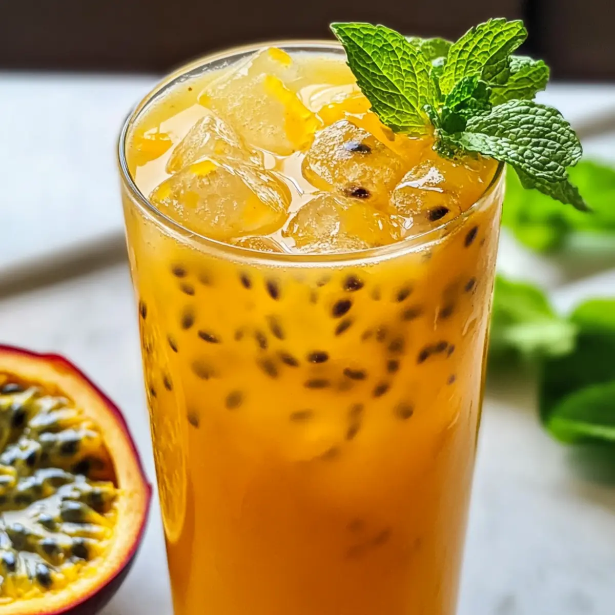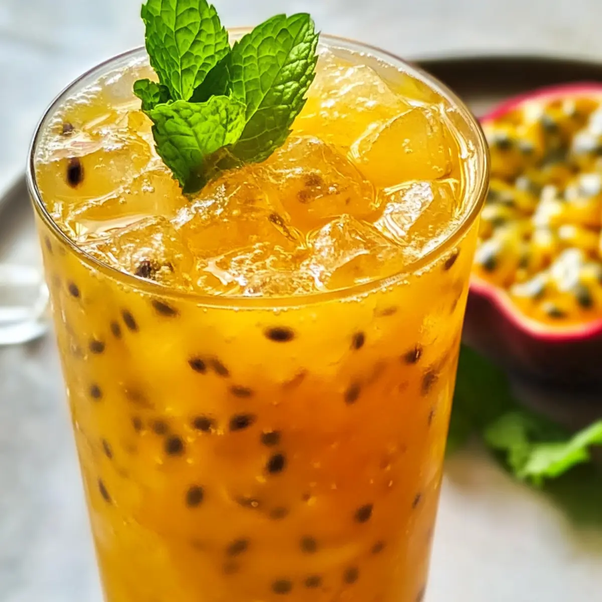 Die Sonne strahlt, die Temperaturen steigen und ich kann das Rauschen des Wassers hören, während ich an meinem erfrischenden Passionsfrucht Eistee nippe. Diese köstliche Sommergetränk bringt nicht nur die tropischen Aromen von frisch gepresster Passionsfrucht auf den Tisch, sondern auch die robusten Noten von Schwarztee, die eine unvergleichliche Ausgewogenheit schaffen. Mit nur vier einfachen Zutaten ist dieser Eistee perfekt für spontane Zusammenkünfte im Freien oder entspannte Nachmittage auf der Terrasse. In wenigen Minuten zubereitet, ist er nicht nur ein wahrer Publikumsliebling, sondern auch vegan und gesund. Wer könnte da widerstehen? Fühlen Sie sich inspiriert, Ihren eigenen Pitcher zu mixen und zu genießen? Warum ist dieser Eistee ein Must-Have? Erfrischend: Mit dem lebhaften Geschmack der Passionsfrucht bringt dieser Eistee einen Hauch von tropischem Paradies in jede Sommerfeier. Einfach: Mit nur vier Zutaten und wenigen Schritten ist die Zubereitung ein Kinderspiel, perfekt für alle, die auf aufwendige Rezepte verzichten wollen. Vegan: Dieser Passionsfrucht Eistee ist nicht nur lecker, sondern auch rein pflanzlich und daher für alle geeignet, die auf ihre Ernährung achten. Zeitersparnis: In wenigen Minuten zubereitet, ist er ideal für spontane Sommerbesuche. Ideal, um Freunde zu überraschen! Gesund: Die Passionsfrucht ist reich an Vitaminen und Ballaststoffen, sodass Sie sich nicht nur erfrischen, sondern auch etwas Gutes für Ihren Körper tun! Fühlen Sie sich inspiriert? Probieren Sie auch diesen erfrischenden Minz-Limonade für weitere sommerliche Genussmomente! Passionsfrucht Eistee Zutaten Hinweis: Für diesen erfrischenden Passionsfrucht Eistee benötigen Sie nur wenige Zutaten, die perfekt harmonieren. Für den Tee • Wasser – Essenziell für das Brühen des Tees; gefiltertes Wasser sorgt für den besten Geschmack. • Schwarzteebeutel – Sie verleihen dem Eistee eine kräftige Basis; für einen leichteren Geschmack können Sie grünen Tee oder Oolongtee verwenden. Für die Süße • Veganer Zucker – Fügt die benötigte Süße hinzu, um die Säure der Passionsfrucht auszugleichen; Alternativen wie Agave oder Stevia funktionieren ebenfalls gut. Hauptzutat • Passionsfruchtpulpe – Die Hauptzutat, die einen tropischen Geschmack verleiht; frische Passionsfrüchte sind ideal, gefrorene funktionieren aber auch – einfach vorher auftauen. Schritt-für-Schritt-Anleitungen für Passionsfrucht Eistee Step 1: Wasser kochen Bringen Sie 1,5 Tassen gefiltertes Wasser in einem Topf zum Kochen. Achten Sie darauf, dass das Wasser sprudelnd kocht, um das volle Aroma aus dem Schwarztee herauszuholen. Sobald es kocht, nehmen Sie den Topf vom Herd und lassen Sie ihn kurz abkühlen. Step 2: Teebeutel hinzufügen Fügen Sie die Schwarzteebeutel in das heiße Wasser ein und lassen Sie sie für 3-4 Minuten ziehen. Die Zeit ist entscheidend; überprüfen Sie die Farbe des Wassers, das sich in einen tiefen Braunton verwandelt, und entfernen Sie die Teebeutel, bevor der Tee bitter wird. Step 3: Zucker einrühren Nehmen Sie eine Rührschüssel und gießen Sie den heißen Tee hinein. Fügen Sie dann den veganen Zucker hinzu und rühren Sie kräftig um, bis sich der Zucker vollständig aufgelöst hat. Wenn der Tee süß und aromatisch riecht, ist er perfekt. Step 4: Tee abkühlen Mischen Sie 1,5 Tassen Raumtemperaturwasser unter den gesüßten Tee, um ihn zu verdünnen und abzukühlen. Achten Sie darauf, die Flüssigkeit sanft zu mischen, bis der Tee kühl genug ist, um ihn servieren zu können. Step 5: Passionsfruchtpulpe hinzufügen Jetzt kommt der Höhepunkt: Geben Sie die Passionsfruchtpulpe in den abgekühlten Tee. Rühren Sie sorgfältig um, damit sich der fruchtige Geschmack gleichmäßig verteilt. Der Tee erhält jetzt eine lebendige Farbe und ein einladendes Aroma. Step 6: Servieren über Eis Bereiten Sie Gläser mit Eiswürfeln vor und gießen Sie den Passionsfrucht Eistee darüber. Die Eiswürfel sollten beginnen, leicht zu schmelzen. Garnieren Sie jeden Drink mit einem frischen Minzblatt oder einer Scheibe Passionsfrucht für eine besonders ansprechende Präsentation. Step 7: Genießen Der Passionsfrucht Eistee ist nun bereit zum Genießen! Erfrischen Sie sich mit diesem lebhaften Sommergetränk, ideal für sonnige Tage oder gesellige Zusammenkünfte. Achten Sie darauf, ihn schnell zu servieren, damit er seine Frische behält! Perfekte Vorbereitung für Passionsfrucht Eistee Dieser Passionsfrucht Eistee ist ideal für die Vorbereitung, um die heißen Sommertage zu erleichtern! Sie können den Tee bis 24 Stunden im Voraus zubereiten, indem Sie die Schritte 1 bis 4 befolgen und den gesüßten Tee im Kühlschrank lagern. Wichtig ist, die Passionsfruchtpulpe erst kurz vor dem Servieren hinzuzufügen, um die Frische zu bewahren und das Aroma zu steigern. Wenn Sie den Eistee fertig zubereiten, einfach die Passionsfruchtpulpe unterrühren, über Eis gießen und mit frischer Minze garnieren. So genießen Sie auch während hektischer Tage ein köstliches und erfrischendes Getränk, das ebenso lecker bleibt wie frisch zubereitet! Was passt zu Passionsfrucht Eistee? Die Kombination aus fruchtigem Eistee und leckeren Beilagen sorgt für ein unvergessliches Geschmackserlebnis. Frische Minze: Ein paar frische Minzblätter obenauf bringen einen Hauch von Aroma und Frische, die perfekt zu den tropischen Noten passen. Fruchtige Obstplatte: Eine bunte Auswahl aus Wassermelone, Ananas und Beeren ergänzt den Eistee mit zusätzlichen, erfrischenden Aromen und Farben. Knusprige Chips: Gesunde, salzige Snacks wie Gurken- oder Süßkartoffelchips bieten einen tollen Kontrast zu dem süßen, fruchtigen Getränk. Veganer Obstkuchen: Ein leichter, luftiger Kuchen aus Früchten passt ideal zu Picknicks im Freien und harmoniert wunderbar mit dem Eistee. Eisgekühltes Wasser: Servieren Sie zusätzliches eisgekühltes Wasser für die Gäste, um die erfrischende Wirkung des Eistees zu verlä