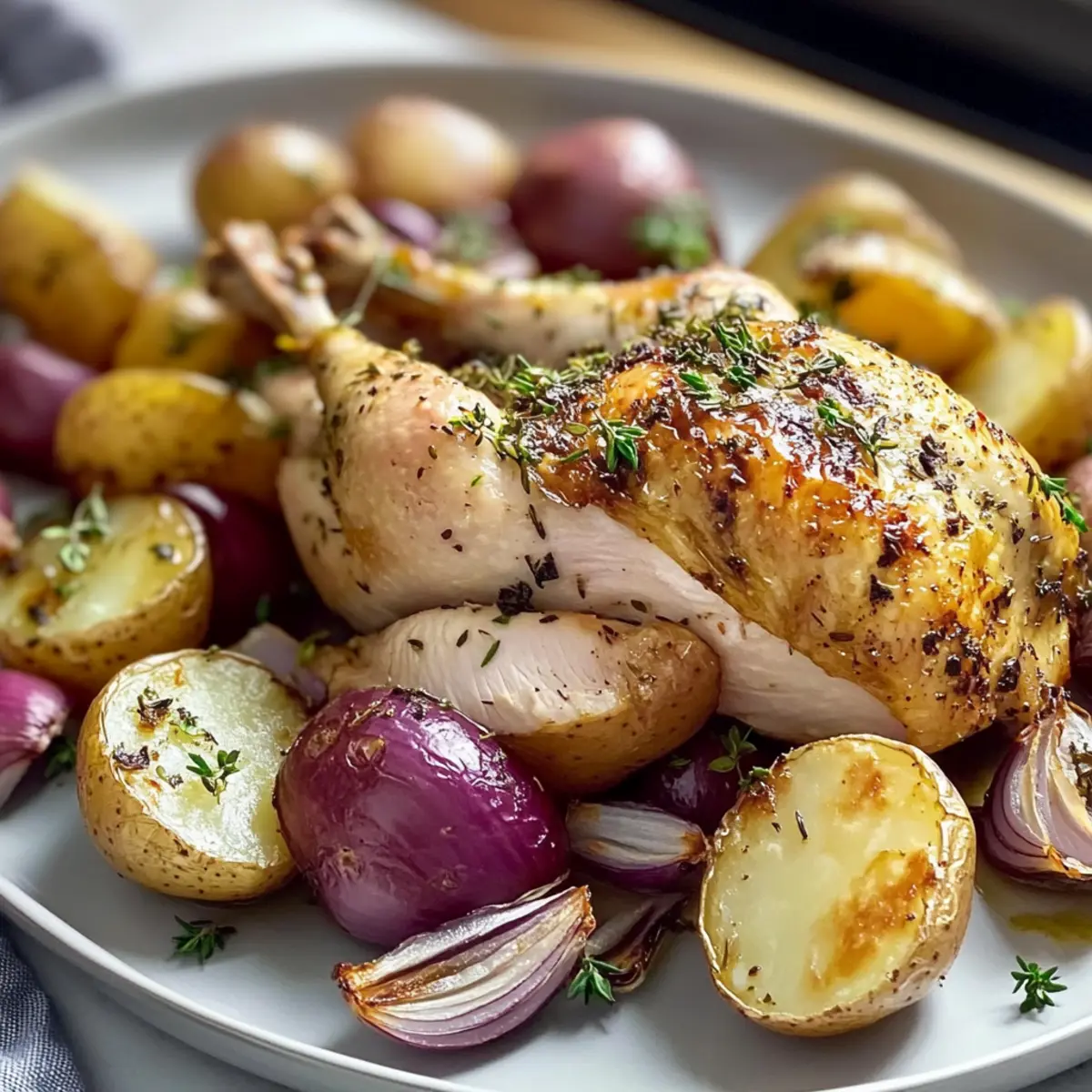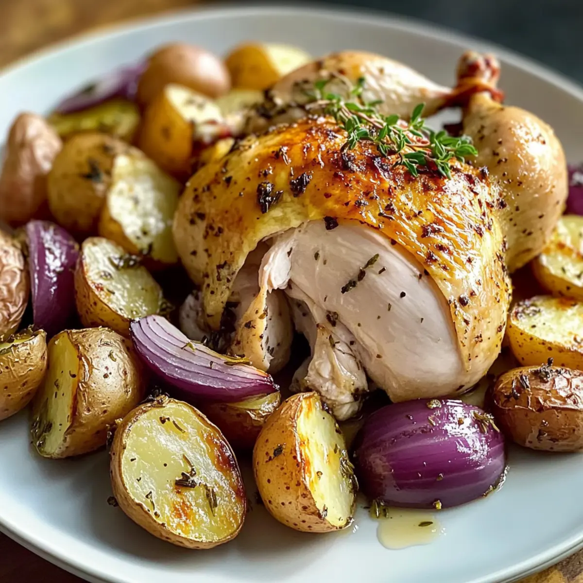 Als ich neulich in meiner Küche stand und den verlockenden Duft von bratenem Hähnchen wahrnahm, wurde mir klar: Es gibt nichts Besseres als ein perfektes Brathähnchen und Gemüse Rezept für einen gemütlichen Abend mit Freunden oder der Familie. Dieses Rezept vereint ein ganzes Hähnchen mit knuspriger, goldener Haut und zartem Fleisch, garniert mit aromatischen, perfekt gerösteten Baby-Kartoffeln, roten Zwiebeln und Knoblauch. Es ist nicht nur ein wahrer Publikumsliebling dank seiner unkomplizierten Zubereitung, sondern auch äußerst vielseitig – du kannst die Gewürze und Gemüse nach Belieben anpassen. Wer kann da widerstehen? Lass uns gemeinsam in die Welt der Aromen eintauchen und herausfinden, wie du dieses Gericht zum Strahlen bringst! Warum lieben alle dieses Rezept? Vielseitigkeit: Dieses Rezept ermöglicht es dir, mit verschiedenen Gemüsesorten und Gewürzen zu experimentieren. Du kannst es ganz nach deinem Geschmack anpassen, sei es mit saisonalen Karotten oder würzigen Kräutern wie Oregano. Einfachheit: Es ist unkompliziert in der Zubereitung und erfordert nur grundlegende Fertigkeiten, sodass du mehr Zeit für deine Gäste hast. Aromatische Kombination: Der verlockende Duft von knusprigem Hähnchen und geröstetem Gemüse zieht jeden in seinen Bann und sorgt für ein echtes Wohlfühl-Feeling. Perfekte Textur: Das Hähnchen hat eine goldene, knusprige Haut und zartes, saftiges Fleisch – der Traum eines jeden Fleischliebhabers. Du kannst es perfekt mit einer leichten Beilage wie einem frischen Salat oder quinoa kombinieren. Familienfreundlich: Dieses Gericht ist ideal für Familienessen und wird deine Liebsten begeistern! Es ist nicht nur einfach, sondern auch sättigend und gesund. Perfekte Brathähnchen und Gemüse Zutaten • Diese Zutatenliste führt alles auf, was du für das perfekte Brathähnchen und Gemüse Rezept benöt. Für das Hähnchen Ganzes Hähnchen – Die Hauptquelle für Geschmack; greife zu Bio- oder Freilandhähnchen für besten Genuss. Olivenöl – Sorgt für Feuchtigkeit und knusprige Haut; kann durch Avocadoöl ersetzt werden. Meersalz – Verbessert den Gesamtgeschmack; grobes Meersalz ist eine gute Alternative. Schwarzer Pfeffer – Bringt Wärme; frisch gemahlen für optimale Ergebnisse. Zerstoßene Fenchelsamen – Fügt einen einzigartigen, aromatischen Geschmack hinzu; Anissamen sind ein passender Ersatz. Zerstoßene rote Paprika – Gibt eine Prise Schärfe; je nach Vorliebe anpassen oder weglassen. Für das Gemüse Baby-Kartoffeln – Herzhaft und sättigend; verwende Yukon Gold oder rotfleischige Kartoffeln. Rote Zwiebel – Sorgt für Süße beim Rösten; weiße Zwiebeln sind ebenfalls brauchbar. Knoblauchzehen – Verstärkt den Geschmack mit Süße; ganze Köpfe sorgen für einen milderen Knoblauchgeschmack. Frischer Thymian – Bringt Frische und passt hervorragend zum Hähnchen; kann durch Rosmarin ersetzt werden. Frische Petersilie – Optional für ein wenig Frische; Koriander bietet eine andere Geschmacksrichtung. Zitronenschnitze – Optional beim Servieren; liefern Säure und Frische, wenn sie über das Gericht gedrückt werden. Jetzt sind wir bereit, dieses köstliche, perfekt gebratene Hähnchen zuzubereiten und die bezaubernden Aromen in deiner Küche zu genießen! Schritt-für-Schritt-Anleitung für das Perfekte Brathähnchen und Gemüse Rezept Schritt 1: Hähnchen vorbereiten Das ganze Hähnchen gut trocken tupfen, damit die Haut knusprig wird. Anschließend mit Olivenöl einreiben und großzügig mit Meersalz, schwarzem Pfeffer, zerstoßenem Fenchel und zerstoßener roter Paprika sowohl unter als auch auf der Haut würzen. Diese aromatische Vorbereitung sorgt für ein geschmackvolles und saftiges Ergebnis. Schritt 2: Gemüse zubereiten In einer Schüssel die Baby-Kartoffeln, roten Zwiebeln und Knoblauchzehen mit Olivenöl, frischem Thymian und Meersalz gut vermischen, bis alles gleichmäßig beschichtet ist. Diese aromatische Mischung wird das Gemüse während des Röstens perfekt zu dem Hähnchen ergänzen und sorgt für eine köstliche Beilage. Schritt 3: Alles braten Das gewürzte Hähnchen mit der Brustseite nach oben in eine Bratpfanne legen und das préparierte Gemüse rundherum anordnen. Den Ofen auf 220°C vorheizen und das Hähnchen für ca. 1 Stunde und 20 Minuten braten, bis die Innentemperatur des Hähnchens 74°C erreicht. Nach der Hälfte der Zeit das Gemüse vorsichtig durchmischen, um eine gleichmäßige Röstung sicherzustellen. Schritt 4: Hähnchen ruhen lassen Nach dem Braten das Hähnchen für 10-15 Minuten ruhen lassen, damit die Säfte sich gleichmäßig verteilen. Während das Hähnchen ruht, das Gemüse locker mit Folie abdecken, damit es warm und saftig bleibt. Diese Ruhezeit ist entscheidend für ein zartes und saftiges Ergebnis. Schritt 5: Servieren Das perfekte Brathähnchen in Stücke schneiden und zusammen mit dem aromatischen Gemüse anrichten. Nach Belieben mit frischen Kräutern und Zitronenschnitzen garnieren, um einen zusätzlichen Frischekick hinzuzufügen. Dieses köstliche Gericht passt hervorragend zu einem leichten Salat oder knusprigem Brot und sorgt für ein rundum gelungenes Familienessen. Lagerungstipps für das perfekte Brathähnchen und Gemüse Rezept Raumtemperatur:: Serviere das Gericht frisch und heiß, aber lasse Reste nicht länger als 2 Stunden bei Raumtemperatur stehen, um die Lebensmittelsicherheit zu gewährleisten. Kühlschrank:: Bewahre übrig gebliebene Portionen in einem luftdichten Behälter im Kühlschrank auf und genieße sie innerhalb von 3 Tagen, um die beste Qualität zu gewährleisten. Gefrierschrank:: Friere das Hähnchen und Gemüse getrennt in Gefrierbeuteln oder -behältern ein. So kannst du die Qualität bis zu 3 Monate lang bewahren, da das Gemüse beim Auftauen möglicherweise seine Textur verliert. Wiedererwärmen:: Erhitze das Gericht im Ofen bei 175°C für 15-20 Minuten, abgedeckt mit Alufolie, um die Feuchtigkeit zu halten und das Aroma d