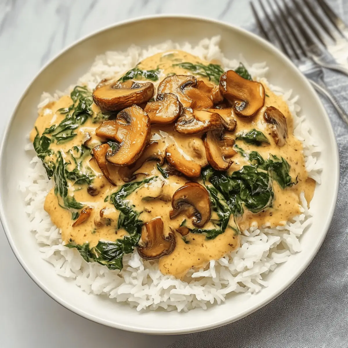 Als ich neulich durch den Wald spazierging und den erdigen Duft frischer Pfifferlinge einatmete, war ich sofort wieder in Gedanken beim Kochen. Das Rezept für Pfifferlinge mit Spinat-Rahm-Soße erfüllt meine Küche nicht nur mit den Aromen des Herbstes, sondern bietet auch die perfekte Gelegenheit, mich mit Freunden zu versammeln und ein köstliches, vegetarisches Gericht zu genießen. Diese cremige Pilz- und Spinatsauce über fluffigem Basmati-Reis ist nicht nur schnell zubereitet, sondern auch ein echter Genuss für alle, die eine Abwechslung von Fast Food suchen. Und das Beste? Es bringt Farbe und Gesundheit auf den Tisch! Möchtest du entdecken, wie du dieses herzliche Gericht zubereiten kannst? Warum sind Pfifferlinge so besonders? Einzigartige Aromen: Pfifferlinge bringen einen unvergleichlichen, nussigen Geschmack in jedes Gericht, was sie zu einem echten Highlight im Herbst macht. Schnelle Zubereitung: In nur 30 Minuten zauberst du ein köstliches Gericht, das mindestens so lange in Erinnerung bleibt! Vielseitige Kombination: Die Kombination aus cremiger Spinatsoße und aromatischen Pilzen ist eine wahre Gaumenfreude und einfach unwiderstehlich. Gesunde Wahl: Vegetarisch und nahrhaft, bietet dieses Rezept eine perfekte Mischung aus Vitaminen und gesunden Fetten, ideal für ein ausgewogenes Essen. Geselligkeit auf dem Teller: Perfekt für gesellige Abende – gemeinsam genießen und das Leben feiern, wird mit diesem Gericht zu einem Genussmoment! Genieße auch eine frische Beilage wie einen knackigen Salat oder etwas Brot, um dein Essen abzurunden. Pfifferlinge Zutaten • Die Hauptdarsteller in diesem Gericht! Für den Reis • Basmati-Reis – Sorgt für eine fluffige Basis; gut abspülen, um überschüssige Stärke zu entfernen. • Wasser – Unentbehrlich zum Kochen des Reis; Menge nach Anweisung anpassen. Für die Soße • Olivenöl – Verleiht Reichtum und hilft beim Kochen der Pfifferlinge; kann durch neutrales Öl ersetzt werden. • Zwiebel (1) – Sorgt für Süße und Tiefe in der Soße; fein hacken für gleichmäßiges Garen. • Knoblauch (2 Zehen) – Fügt aromatischen Geschmack hinzu; für mehr Intensität die Menge erhöhen. • Butter oder Margarine (40 g) – Zum Sautieren und für zusätzliche Reichhaltigkeit; pflanzliche Butter für eine vegane Version verwenden. • Mehl (40 g) – Dient zum Andicken der Soße; kann mit glutenfreiem Mehl ersetzt werden. • Sahne (200 g) – Für die Cremigkeit der Soße; pflanzliche Sahne für eine milchfreie Option nutzen. • Milch oder Sojamilch (100 g) – Passt die Konsistenz der Soße an; jede pflanzliche Milch kann funktionieren. • Tomatenmark (15 g) – Fügt Umami und Farbe zur Soße hinzu; optional verwendbar. • Salz und Pfeffer – Für die abschließende Würze; nach Geschmack anpassen. Für die Pilze • Pfifferlinge (700 g) – Die Hauptzutat, die ein einzigartiges Aroma und Textur bietet; gründlich reinigen, frische Alternativen sind auch möglich. • Spinat (200 g, frisch oder gefroren) – Steigert den Nährwert und bringt eine lebendige grüne Farbe; gefroren vorher auftauen und abtropfen lassen. Mit diesen Pfifferlingen zubereitest du eine köstliche und einladende Speise, die jeden am Tisch verweilen lässt! Step-by-Step Instructions for Pfifferlinge mit Spinat-Rahm-Soße Step 1: Reis kochen Spüle 300 g Basmati-Reis gründlich unter kaltem Wasser, um die überschüssige Stärke zu entfernen. Gib den Reis in den Dampfgarer und füge 1000 g Wasser sowie 1 Teelöffel Olivenöl und Salz in einen Topf hinzu. Stelle das Ganze auf Varoma-Temperatur und koche es für etwa 22 Minuten bei Stufe 4, bis der Reis fluffig und gar ist. Step 2: Spinat vorbereiten Lege 200 g frischen oder aufgetauten Spinat in den Varoma-Einsatz, während der Reis kocht. Der Dampf wird den Spinat zart und lebendig grün machen. Nach etwa 15 Minuten sollte der Spinat weich sein und die Farben lebhaft reflektieren, was das Gericht ergänzt. Step 3: Pfifferlinge sautieren Putze und schneide 700 g Pfifferlinge in gleichmäßige Stücke. Erhitze in einer großen Pfanne etwas Olivenöl auf mittlerer Hitze und gib die Pfifferlinge hinzu. Sauté die Pilze für etwa 8-10 Minuten, bis sie goldbraun sind und das Wasser verdampft ist, wodurch ihr intensives Aroma zur Geltung kommt. Step 4: Soße zubereiten In einer Rührschüssel die fein gehackte Zwiebel und die zwei zerdrückten Knoblauchzehen hinzufügen. Sautiere diese Mischung in 40 g Butter oder Margarine für ca. 2,5 Minuten, bis sie durchsichtig ist. Rühre 40 g Mehl ein und lasse es 2 Minuten bei 100°C leicht rösten, um eine Basis für die cremige Soße zu bilden. Step 5: Zutaten kombinieren Füge langsam 200 g Sahne und 100 g Milch (oder Sojamilch) in die Zwiebel-Mischung ein. Gieße zusätzlich die Brühe, die beim Kochen des Reises entstanden ist, hinein. Rühre 15 g Tomatenmark, einen halben Teelöffel Salz und Pfeffer unter und koche die Mischung bei 90°C für etwa 7 Minuten, bis sie leicht eindickt. Step 6: Gericht vollenden In die Soße die gegarten Spinatblätter vorsichtig einrühren, bis alles gut vermischt ist. Serviere die fluffige Reisbasis auf Tellern und toppe sie mit den sautierten Pfifferlingen und der cremigen Spinat-Rahm-Soße. Das Ergebnis ist eine köstliche und cremige Kombination, die den Herbst ins Haus bringt. Tipps für die besten Pfifferlinge mit Spinat-Rahm-Soße Frische Pilze prüfen: Achte darauf, dass die Pfifferlinge fest und ohne Flecken sind. Schimmelige oder matschige Stücke sollten ausgeschlossen werden. Richtige Konsistenz: Die Soße sollte cremig, aber nicht zu dick sein. Füge mehr Milch oder Brühe hinzu, wenn sie zu fest wird. Würzen nicht vergessen: Taste die Soße vor dem Servieren ab und passe die Würze an. Der Geschmack von Pfifferlingen entfaltet sich am besten mit etwas Salz und Pfeffer. Variationen ausprobieren: Ersetze Pfifferlinge durch andere Pilze wie Champignons oder Steinpilze für einen neuen Geschmack, je nach Verfügb