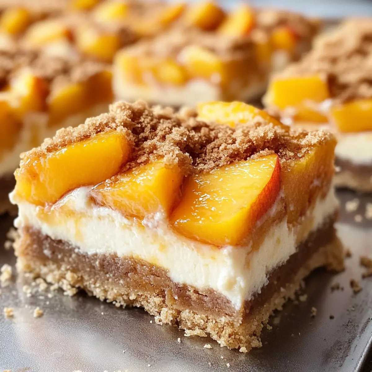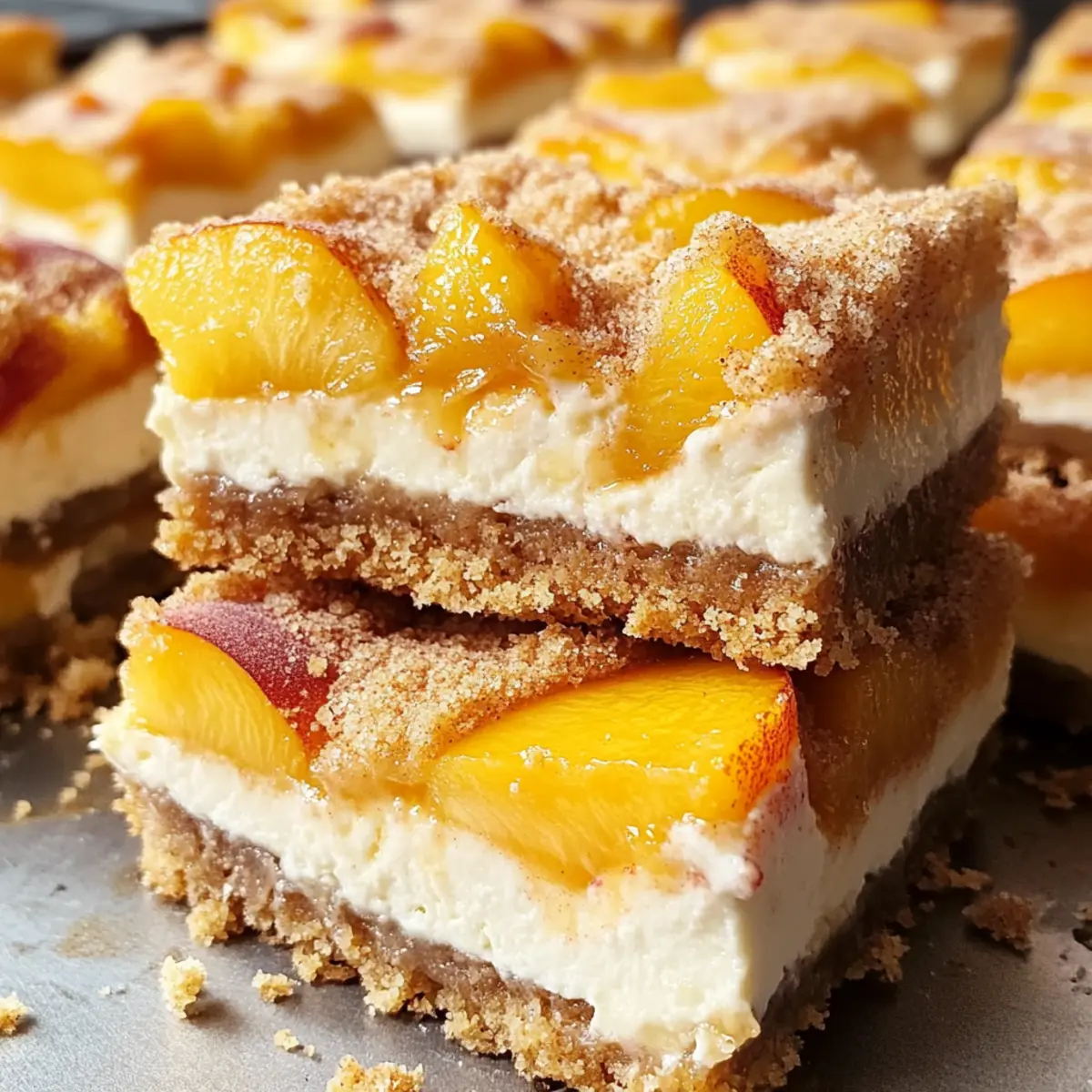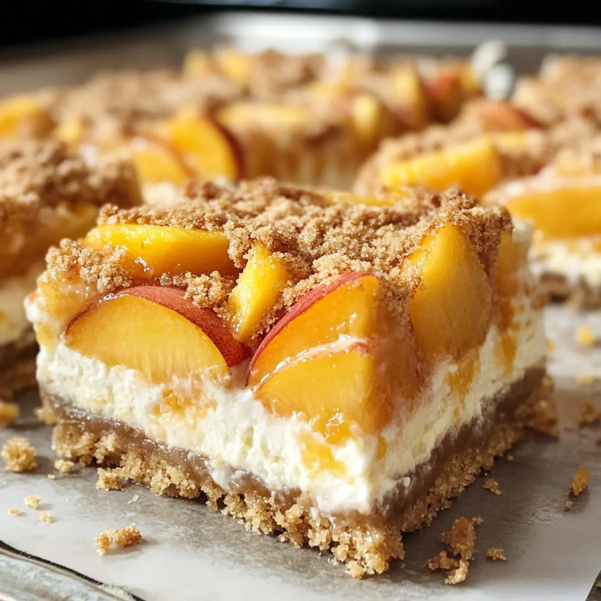 Am sonnigen Nachmittag in meinem Garten wurde ich von dem herrlichen Duft frisch gebackener Pfirsich-Cobbler-Käsekuchen-Riegel verzaubert. Diese unwiderstehlichen Leckerbissen vereinen das Beste aus zwei Welten: den süßen, saftigen Pfirsichen und der cremigen Köstlichkeit eines Käsekuchens. Perfekt für warme Sommertage, sind diese Riegel nicht nur ein wahrer Publikumsmagnet, sondern auch im Handumdrehen zubereitet. Wenn Sie eine glutenfreie Option wünschen, keine Sorge – die Rezepturen sind anpassbar. Neugierig, wie einfach Sie diese köstliche Süßigkeit zaubern können? Lassen Sie uns gleich loslegen! Warum sind diese Riegel so unwiderstehlich? Köstlicher Genuss: Die Kombination aus saftigen Pfirsichen und cremigem Käsekuchen sorgt für ein Geschmackserlebnis, das Ihre Geschmacksknospen begeistert. Einfach zu gestalten: Die Zubereitung ist leicht und schnell, sodass auch weniger erfahrene Köche große Freude daran haben werden. Anpassungsfähig: Ob mit glutenfreien Alternativen oder anderen Früchten, dieses Rezept ist vielseitig und lässt sich nach Belieben variieren. Perfekt für jeden Anlass: Egal, ob beim Sommerpicknick oder beim gemütlichen Familienessen, diese Riegel sind immer ein Hit und werden schnell verzehrt. Schnelle Zubereitung: In nur wenigen Schritten zaubern Sie ein köstliches Dessert, das Ihre Gäste beeindrucken wird – probieren Sie auch die Spitzkohl Hackfleisch Pfanne für ein herzhaftes Gericht dazu. Pfirsich-Cobbler-Käsekuchen-Riegel Zutaten Für die Kruste Graham-Cracker-Krümel – Sorgen für die Grundlage; verwenden Sie Haferkrümel für eine glutenfreie Option. Zucker – Fügt die notwendige Süße hinzu. Ungesalzene Butter (geschmolzen) – Verleiht Reichtum und hilft, die Krümel zu binden. Für die Käsekuchen-Füllung Frischkäse – Hauptbestandteil für die Cremigkeit; achten Sie darauf, dass er Zimmertemperatur hat für eine glatte Mischung. Zucker – Sorgt für die Süße der Füllung. Große Eier – Geben der Füllung Struktur; verwenden Sie Eier in Zimmertemperatur, um Klumpen zu vermeiden. Vanilleextrakt – Fügt eine tiefere Geschmacksnote hinzu. Sauerrahm – Verbessert die Cremigkeit und sorgt für einen angenehmen Geschmack. Für das Pfirsich-Cobbler-Topping Frische Pfirsiche (geschält und in Scheiben) – Primäre Geschmacksquelle; nutzen Sie reife Pfirsiche für maximalen Genuss. Allzweckmehl – Hilft, die Pfirsiche zu beschichten, um Überfeuchtigkeit zu vermeiden. Zucker – Süßt die Pfirsichschicht. Gemahlener Zimt & Muskatnuss – Fügt Wärme und aromatische Noten hinzu. Kaltes ungesalzenes Butter (in kleine Stücke geschnitten) – Sorgt für ein knuspriges Topping. Entdecken Sie mit diesen einfachen Zutaten, wie leicht Sie Ihre Gäste mit Pfirsich-Cobbler-Käsekuchen-Riegel beeindrucken können – ein unwiderstehliches Pfirsich- und Sahne-Dessert, das für jeden Anlass geeignet ist! Schritt-für-Schritt-Anleitung für Pfirsich-Cobbler-Käsekuchen-Riegel Schritt 1: Ofen vorheizen Heizen Sie Ihren Ofen auf 175 °C (350 °F) vor und bereiten Sie eine 23×33 cm große Backform vor, indem Sie sie entweder einfetten oder mit Backpapier auslegen. Dies sorgt dafür, dass die Pfirsich-Cobbler-Käsekuchen-Riegel nach dem Backen leicht herausgenommen werden können. Schritt 2: Kruste zubereiten Vermengen Sie die Graham-Cracker-Krümel mit Zucker und geschmolzener Butter in einer Schüssel, bis die Mischung gut verbunden ist. Drücken Sie diese Krümel gleichmäßig auf den Boden der vorbereiteten Backform. Stellen Sie die Form für etwa 10 Minuten in den Kühlschrank, damit die Kruste fest wird, während Sie die Füllung vorbereiten. Schritt 3: Käsekuchenfüllung zubereiten Schlagen Sie in einer großen Schüssel den Raumtemperatur-Frischkäse mit Zucker, bis die Mischung glatt und cremig ist. Fügen Sie die Eier nacheinander hinzu und mixen Sie gut, bevor Sie den Vanilleextrakt und den Sauerrahm einrühren. Gießen Sie die Käsekuchenfüllung gleichmäßig auf die gekühlte Kruste und glätten Sie die Oberfläche. Schritt 4: Pfirsichtopping vorbereiten In einer separaten Schüssel kombinieren Sie die geschnittenen Pfirsiche mit Allzweckmehl, Zucker, Zimt und Muskatnuss. Verteilen Sie diese Mischung gleichmäßig über die Käsekuchenfüllung. Tupfen Sie die kleinen Butterstückchen gleichmäßig über die Pfirsichen, um ein perfektes Topping zu gewährleisten. Schritt 5: Backen Backen Sie die Pfirsich-Cobbler-Käsekuchen-Riegel im vorgeheizten Ofen für 45-50 Minuten. Die Füllung sollte fest sein und die Oberseite goldbraun werden. Achten Sie darauf, während des Backens auf ein schönes Bräunungsniveau zu achten, um die perfekte Konsistenz zu erreichen. Schritt 6: Abkühlen und kühlen Lassen Sie die Riegel nach dem Backen zunächst eine Stunde bei Raumtemperatur abkühlen. Anschließend stellen Sie die Backform in den Kühlschrank und lassen die Riegel mindestens zwei Stunden lang kühlen. Diese Zeit ermöglicht es den Aromen, sich zu setzen und macht die Riegel einfacher zu schneiden, sobald sie serviert werden. Expert Tips für Pfirsich-Cobbler-Käsekuchen-Riegel Dairy-Zimmertemperatur: Stellen Sie sicher, dass alle Milchprodukte, insbesondere der Frischkäse, bei Zimmertemperatur sind, um eine glatte Füllung ohne Klumpen zu erzielen. Mixen: Verwenden Sie einen elektrischen Mixer, um die Käsekuchenfüllung schön cremig und luftig zu machen – das sorgt für eine optimale Textur der Pfirsich-Cobbler-Käsekuchen-Riegel. Backzeit überwachen: Achten Sie genau auf die Backzeit und decken Sie die Riegel locker mit Folie ab, falls sie zu schnell bräunen. Kühlen lassen: Lassen Sie die Riegel nach dem Backen ausreichend Zeit zum Abkühlen, um Risse in der Füllung zu vermeiden und die perfekte Konsistenz zu sichern. Früchte variieren: Experimentieren Sie mit verschiedenen Früchten, um neue Geschmackskombinationen der Pfirsich-Cobbler-Käsekuchen-Riegel zu entdecken, wie etwa Aprikosen oder Beeren. Was passt zu 