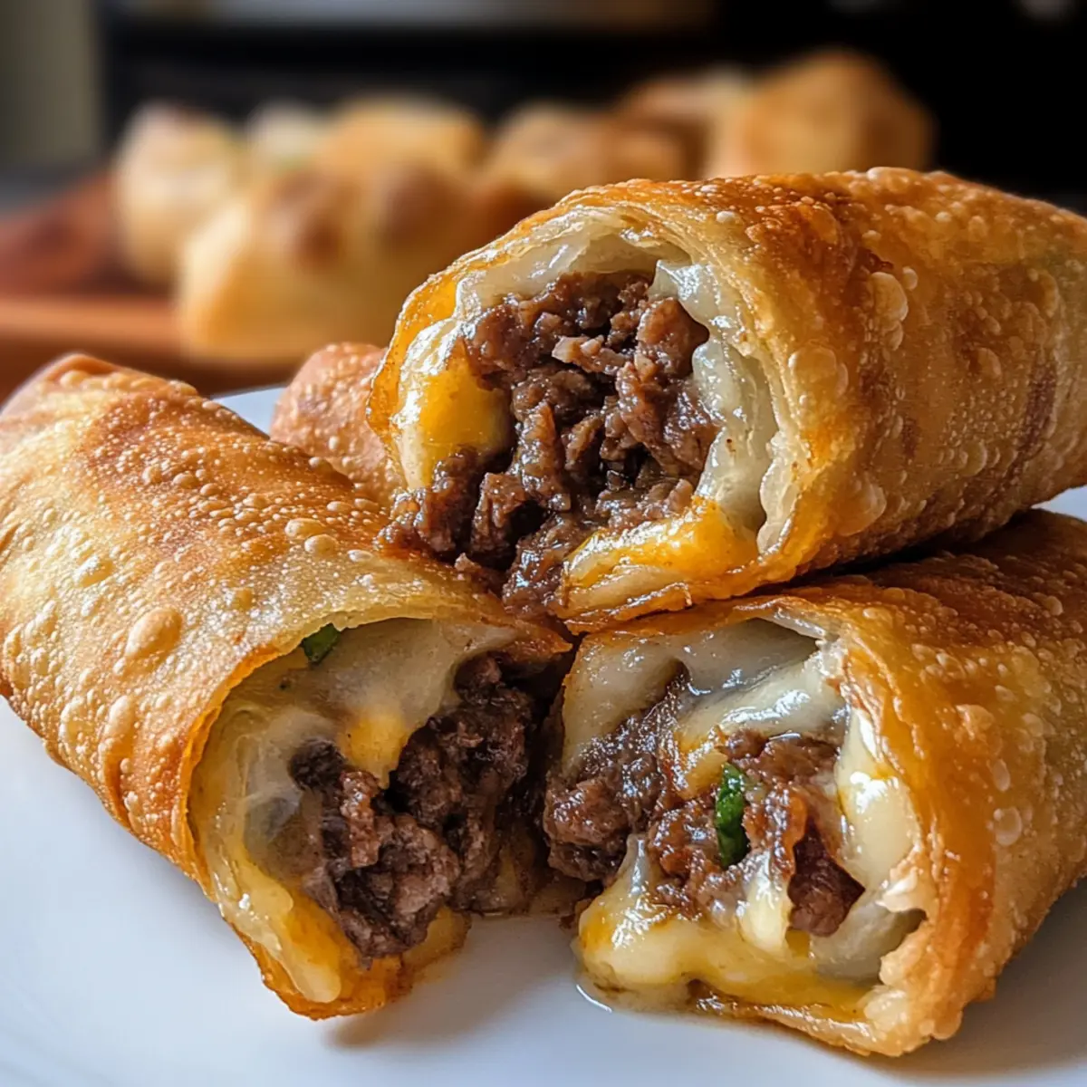 Ein knuspriger Biss, gefüllt mit der Wärme des klassischen Philadelphia Cheesesteaks – das sind die Philly Cheesesteak Frühlingsrollen! Diese genussvollen Happen vereinen zartes Rindfleisch, aromatisch angebratene Paprika und Zwiebeln sowie geschmolzenen Käse, eingehüllt in eine goldene, knusprige Hülle. Perfekt für gesellige Abende oder ein schnelles Abendessen, bieten diese Frühlingsrollen eine herzhafte Alternative zum alltäglichen Fast Food. Egal, ob du sie frittierst, backst oder in der Heißluftfritteuse zubereitest, die einfache Zubereitung macht sie für Köche aller Erfahrungsstufen zugänglich. Ich kann es kaum abwarten, wie du diese einfache, aber köstliche Fusion zweier beliebter Gerichte in deiner Küche zum Leben erweckst – bereit für ein paar kreative Variationen? Warum solltest du diese Frühlingsrollen lieben? Köstliche Fusion: Die Kombination aus zartem Rindfleisch, pikanten Paprika und geschmolzenem Käse bietet die gewohnte Geschmacksexplosion eines Philadelphia Cheesesteaks in jedem Bissen. Vielseitige Zubereitung: Egal, ob frittieren, backen oder in der Heißluftfritteuse – diese Frühlingsrollen passen sich deinen Vorlieben an! Schnell zubereitet: Mit einfachem Rezept und gängigen Zutaten sind sie schnell auf dem Tisch. Perfekt für Parties: Als Fingerfood sind sie der Star bei jeder geselligen Runde – ideal kombiniert mit Käse-Soße oder knusprigen Pommes. Überraschender Twist: Sie sind nicht die typischen Frühlingsrollen – diese Version sorgt für Gesprächsstoff und eindrucksvolle Genussmomente! Philly Cheesesteak Frühlingsrollen Zutaten • Kein Besuch in Philadelphia wäre vollständig ohne die legendären Cheesesteak Aromen – und jetzt kannst du sie genießen! Für die Füllung Zartes Rindfleisch – sorgt für die authentische Textur und den Geschmack der klassischen Philadelphia Cheesesteaks; Ribeye ist die beste Wahl, aber auch Sirloin ist geeignet. Zwiebeln – bringen Süße und Tiefe; karamellisiere sie für zusätzlichen Geschmack. Paprika – optional für mehr Farbe und Geschmack; ganz nach Belieben hinzufügen oder weglassen. Käse (Provolone oder amerikanischer Käse) – fügt eine cremige, schmelzende Komponente hinzu; experimentiere mit deiner Lieblingskäsesorte für den persönlichen Touch. Frühlingsrollenteig – sorgt dafür, dass die Füllung gut hält und beim Garen knusprig wird; achte darauf, die Teigblätter während des Füllens abzudecken, um Austrocknen zu vermeiden. Öl (zum Kochen) – unerlässlich für das Frittieren oder als Zutat beim Backen; alternativ kann auch Kokosöl verwendet werden. Grundgewürze (Salz, Pfeffer, Knoblauchpulver) – heben den Gesamtschmack hervor; passe die Gewürze nach deinem persönlichen Geschmack an. Für die Dips Käse-Soße – ideal zum Dippen und verstärkt den Käsegeschmack. Scharfe Soße – gibt den Frühlingsrollen einen würzigen Kick; perfekt für die Liebhaber scharfer Speisen. Knoblauch-Aioli – bringt eine cremige, aromatische Begleitung zu diesen herzhaften Happen. Entdecke die köstlichen Aromen der Philly Cheesesteak Frühlingsrollen und lass dich von ihrer Vielseitigkeit begeistern! Step-by-Step Instructions für Philly Cheesesteak Frühlingsrollen Step 1: Füllung vorbereiten Erhitze eine große Pfanne bei mittlerer Hitze und füge etwas Öl hinzu. Gib die gewürfelten Zwiebeln und Paprika hinzu und brate sie etwa 5-7 Minuten an, bis sie weich und leicht karamellisiert sind. Rühre häufig um, damit nichts anbrennt. Dies verleiht deiner Füllung die nötige Süße und Tiefe. Step 2: Rindfleisch hinzufügen Sobald die Zwiebeln und Paprika gar sind, füge die dünn geschnittenen Rindfleischstücke hinzu. Brate diese für etwa 3-5 Minuten, bis sie gerade durchgegart sind. Würze die Mischung mit Salz, Pfeffer und Knoblauchpulver, um den Geschmack der Philly Cheesesteak Frühlingsrollen zu intensivieren. Rühre gut um, damit sich die Aromen verbinden. Step 3: Käse einarbeiten Nimm die Pfanne vom Herd und mische den gewählten Käse (Provolone oder amerikanischer Käse) in die Fleischmischung. Rühre, bis der Käse geschmolzen und gleichmäßig verteilt ist. Lasse die Füllung 5-10 Minuten abkühlen, damit sie beim Verpacken in die Frühlingsrollen nicht zu heiß ist. Step 4: Frühlingsrollen zusammenstellen Nimm ein Frühlingsrollenteigblatt und lege es mit einer Spitze zu dir. Platziere etwa 2-3 Esslöffel der Füllung in der Mitte des Blattes. Klappe die Seiten über die Füllung und rolle die Frühlingsrolle von der unteren Spitze auf. Verwende ein wenig Wasser, um die Kanten zu versiegeln, damit nichts ausläuft. Step 5: Frühlingsrollen garen Wähle eine Zubereitungsmethode: Du kannst die Frühlingsrollen in heißem Öl bei 190 °C für etwa 3-4 Minuten frittieren, bis sie goldbraun und knusprig sind. Alternativ kannst du sie im Ofen bei 200 °C ca. 15-18 Minuten backen oder in der Heißluftfritteuse bei 190 °C für 8-10 Minuten garen. Achte darauf, dass sie gleichmäßig goldgelb werden. Step 6: Servieren und genießen Sobald die Philly Cheesesteak Frühlingsrollen fertig sind, lasse sie kurz abkühlen, bevor du sie servierst. Sie passen hervorragend zu Käse-Soße, scharfer Soße oder Knoblauch-Aioli als Dip. Bereite dich darauf vor, von ihren köstlichen Aromen und der knusprigen Textur begeistert zu sein! Was passt gut zu Philly Cheesesteak Frühlingsrollen? Genieße diese köstlichen Frühlingsrollen, die zu einem unvergesslichen Geschmackserlebnis einladen, während du die perfekte Beilagenkombination entdeckst. Käse-Soße: Eine cremige Sauce, die den Käsegeschmack verstärkt und perfekt zum Dippen ist. Sie fügt zusätzliche Cremigkeit und Geschmack hinzu. Scharfe Soße: Ideale Ergänzung für Liebhaber von würzigen Speisen; der pikante Kick hebt das gesamte Geschmackserlebnis der Frühlingsrollen an. Frische Coleslaw: Knackige, frische Komponente, die die reichhaltigen Frühlingsrollen ausgleicht. Die Süße und Säure der Coleslaw sorg