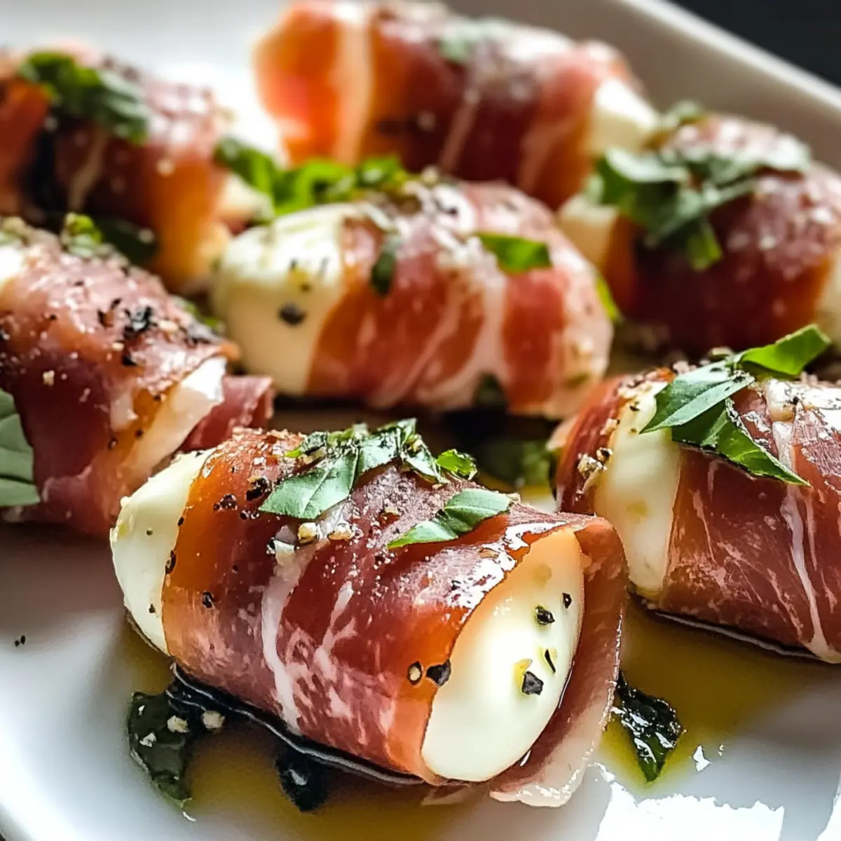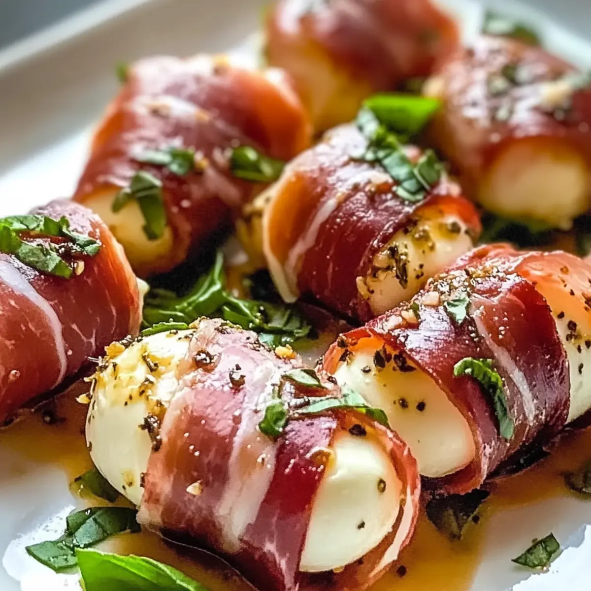 Frisch aus der italienischen Küche entspringt eine wahre Geschmacksexplosion: die Rindfleisch-Prosciutto-Mozzarella-Häppchen. Wenn die knusprige Salzigkeit des Rinderprosciuttos auf das cremige, schmelzende Innere der Mozzarella-Bällchen trifft, entsteht ein Appetithäppchen, das nicht nur einfach zuzubereiten ist, sondern auch in weniger als 30 Minuten auf dem Tisch steht! Diese elegant anmutenden Häppchen sind die perfekte Wahl für gesellige Abende oder festliche Anlässe – sie überzeugen mit ihrer ansprechenden Präsentation und sind zudem glutenfrei! Möchten Sie herausfinden, wie Sie diesen italienischen Klassiker ganz schnell selbst zubereiten können? Warum sind diese Häppchen so unwiderstehlich? Einfachheit: Die Zubereitung dieser Rindfleisch-Prosciutto-Mozzarella-Häppchen ist kinderleicht und benötigt keine komplizierten Kochtechniken – perfekt für jeden Kochliebhaber! Köstlicher Geschmack: Die Kombination aus salzigem Rinderprosciutto und cremiger Mozzarella begeistert garantiert jeden Gaumen und sorgt für ein wahres Geschmackserlebnis. Elegante Präsentation: Diese Häppchen sehen auf jeder Party ausgesprochen ansprechend aus und machen sich hervorragend als stilvolle Vorspeise oder Fingerfood. Zeitersparnis: In weniger als 30 Minuten sind diese Snacks fertig und bereit, serviert zu werden – ideal für spontane Einladungen! Entdecken Sie neben diesen Häppchen auch ähnliche Rezepte für Ihre nächsten Feierlichkeiten. Familienfreundlich: Egal, ob beim gemütlichen Abendessen zu Hause oder bei einem festlichen Buffet, diese Häppchen sind bei Groß und Klein beliebt! Rindfleisch-Prosciutto-Mozzarella-Häppchen Zutaten Für die Häppchen: Mini-Mozzarella-Bällchen – Achten Sie darauf, dass sie gut abgetropft sind, um eine matschige Konsistenz zu vermeiden. Rinderprosciutto – Dünn geschnitten ist wichtig für das richtige Einwickeln und gibt den Häppchen den salzigen Geschmack. Frische Basilikumblätter – Wählen Sie Blätter in geeigneter Größe, um die Häppchen geschmacklich zu perfektionieren. Für das Finish: Hochwertiges Olivenöl – Verleiht den Häppchen einen zusätzlichen Geschmacksakzent, verwenden Sie am besten extra natives Olivenöl. Balsamico-Glasur – Gibt den Häppchen einen süßen und würzigen Abschluss; ein Balsamico-Reduktion ist eine gute Alternative. Genießen Sie die Zubereitung dieser Rindfleisch-Prosciutto-Mozzarella-Häppchen und bringen Sie italienischen Flair auf Ihren Esstisch! Schritt-für-Schritt-Anleitung für Rindfleisch-Prosciutto-Mozzarella-Häppchen Step 1: Mozzarella abtropfen lassen Beginnen Sie, indem Sie die Mini-Mozzarella-Bällchen gut abtropfen lassen. Legen Sie sie auf ein Papiertuch und tupfen Sie sie vorsichtig trocken, um überschüssige Feuchtigkeit zu entfernen. Dies verhindert, dass die Häppchen matschig werden und sorgt für einen knusprigen Biss. Achten Sie darauf, dass sie vollständig trocken sind, während Sie die nächsten Schritte vorbereiten. Step 2: Basilikumblätter vorbereiten Waschen Sie die frischen Basilikumblätter gründlich und trocknen Sie sie vorsichtig mit einem Küchentuch ab. Wählen Sie Blätter, die groß genug sind, um um die Mozzarella-Bällchen gewickelt zu werden. Diese aromatischen Blätter bringen eine frische Note in Ihre Rindfleisch-Prosciutto-Mozzarella-Häppchen und sind essenziell für den Geschmack. Step 3: Rinderprosciutto anpassen Nehmen Sie die dünn geschnittenen Rinderprosciutto-Scheiben zur Hand und schneiden Sie sie bei Bedarf in kleinere Stücke, die sich leicht um die Mozzarella-Bällchen wickeln lassen. Die richtige Größe ist entscheidend, um sicherzustellen, dass der Prosciutto die Käsefüllung gut umschließt und gleichzeitig seine Aromen entfaltet. Step 4: Häppchen zusammenstellen Platzieren Sie ein Basilikumblatt auf einem Mozzarella-Bällchen und wickeln Sie es fest mit einer Scheibe Rinderprosciutto ein. Drücken Sie leicht, um sicherzustellen, dass der Prosciutto gut haftet. Wiederholen Sie diesen Vorgang, bis alle Zutaten verwendet sind. Ihre Rindfleisch-Prosciutto-Mozzarella-Häppchen nehmen nun Gestalt an und sind bereit zum Kochen. Step 5: Häppchen kochen Erhitzen Sie eine beschichtete Pfanne bei mittlerer Hitze. Legen Sie die vorbereiteten Häppchen vorsichtig in die Pfanne und braten Sie sie 1-2 Minuten auf jeder Seite, bis der Rinderprosciutto knusprig und goldbraun ist. Alternativ können Sie sie im vorgeheizten Backofen bei 180°C (356°F) 5-7 Minuten backen, bis die Rinde schön knusprig ist. Step 6: Anrichten und servieren Nach dem Kochen nehmen Sie die Rindfleisch-Prosciutto-Mozzarella-Häppchen aus der Pfanne oder dem Ofen und geben Sie sie sofort auf einen Servierteller. Beträufeln Sie die Häppchen mit hochwertigem Olivenöl und einer Balsamico-Glasur für einen zusätzlichen Geschmacksakzent. Garnieren Sie nach Belieben mit frisch gemahlenem schwarzem Pfeffer und genießen Sie die Häppchen sofort warm. Rindfleisch-Prosciutto-Mozzarella-Häppchen Variationen Lassen Sie Ihrer Kreativität freien Lauf und passen Sie diese köstlichen Häppchen nach Ihrem Geschmack an! Käse-Alternativen: Verwenden Sie Bocconcini oder herben Käse, um den Häppchen eine neue Geschmacksrichtung zu geben. Ein kräftiger Käse kann die Aromen intensivieren. Kräuterwechsel: Statt Basilikum probieren Sie Thymian oder Rucola aus. Die verschiedenen Kräuter verleihen frische und überraschende Geschmacksnuancen. Zusätzliche Aromen: Fügen Sie einen Löffel gehackte getrocknete Tomaten oder Oliven vor dem Wickeln hinzu. Das steigert den Geschmack und bringt italienische Notes mit sich. Würzige Note: Geben Sie einen Hauch von Chili oder Cayennepfeffer in die Pfanne während des Bratens. Damit werden die Häppchen schön pikant und sorgen für ein Geschmackserlebnis. Fruchtige Note: Kombinieren Sie die Häppchen mit frischen Feigen oder einer Quittensauce für eine süßlich-fruchtige Balance. Es bringt einen unerwarteten, köstlichen Kontrast. Vegeta