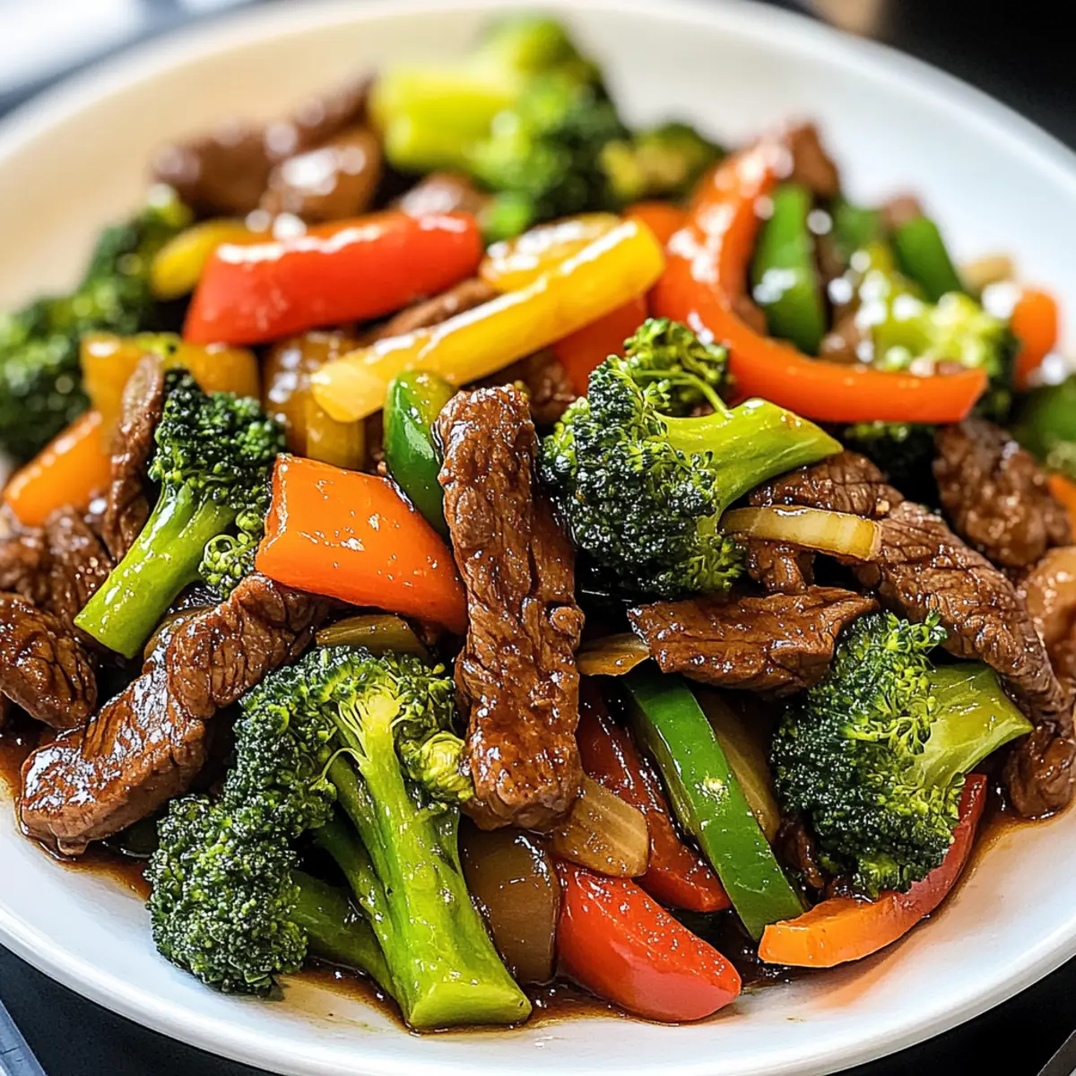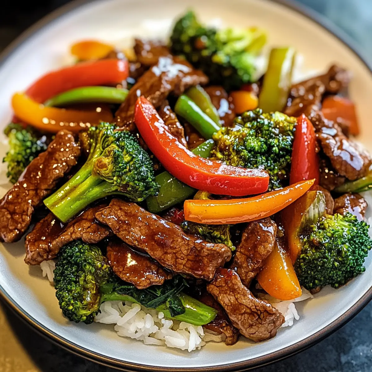 Die Wok-Session war in vollem Gange, als ich beschloss, etwas Gesundes und Schnelles auf den Tisch zu bringen. Es gibt Tage, an denen selbst die besten Kochideen an die eigene Geduld grenzen – genau an solchen Tagen kommt die Rindfleischpfanne ins Spiel. Diese leckere Rindfleischpfanne begeistert mit zartem, mariniertem Rindfleisch und einer bunten Vielfalt an knackigem Gemüse. Perfekt für hektische Wochentage, lässt sie sich im Handumdrehen zubereiten und verwandelt jede Mahlzeit in ein Fest für die Sinne. Ganz gleich, ob Sie Rindfleisch, Hühnchen, Garnelen oder sogar Tofu verwenden möchten, die Möglichkeiten sind nahezu grenzenlos. Ich verspreche Ihnen, dieser schnelle Genuss wird nicht nur freie Minuten bieten, sondern auch dafür sorgen, dass der Rest der Familie begeistert aufblickt. Bereit, Ihre Kochkünste aufzupeppen? Warum lieben Sie Rindfleischpfanne? Einfachheit, Diese Rindfleischpfanne ist im Handumdrehen zubereitet und benötigt nur grundlegende Kochfähigkeiten. Vielseitigkeit, Ob Rindfleisch, Hühnchen oder Tofu – die Wahl des Proteins liegt ganz bei Ihnen, was die Rezeptgestaltung aufregend macht. Frische, Die Kombination aus knackigem Gemüse wie Paprika und Brokkoli sorgt für eine lebendige Präsentation. Geschmacksexplosion, Die ausgewogene Mischung aus Sojasauce und Sesamöl verleiht jedem Bissen eine intensive Geschmackstiefe. Familienfreundlich, Diese Mahlzeit ist perfekt für große und kleine Esser gleichermaßen geeignet und wird sicherlich alle begeistern! Wenn Sie mehr über Tipps zur perfekten Zubereitung erfahren möchten, schauen Sie sich meine anderen Rezepte an! Rindfleischpfanne Zutaten • Ein schnelles und einfaches Rezept für Ihre nächste Mahlzeit! Für das Gemüse Paprika (rot, gelb, grün) – Bringen süße Aromen und eine schöne Farbvielfalt in die Rindfleischpfanne. Brokkoli-Röschen – Diese liefern wichtigen Crunch und Nährstoffe. Knoblauch – Frisch gehackt sorgt er für eine aromatische Tiefe. Für das Rindfleisch Rinderfilet – Zart und saftig, ideal für diese schnelle Zubereitung. Alternativ: Flanksteak oder Hühnchen sind auch lecker. Sojasauce (low sodium) – Für umami und salzige Tiefe in jedem Bissen. Ersatz: Tamari für eine glutenfreie Option. Sesamöl – Verleiht eine nussige Note und sorgt für ein geschmackliches Highlight. Substitution: Verwenden Sie Olivenöl für einen anderen Geschmack. Speisestärke – Für eine glatte Marinade, die das Rindfleisch zart macht. Für das Kochen Rapsöl – Hoch erhitzbar und perfekt für das schnelle Anbraten. Alternativ: Gemüseöl funktioniert auch gut. Verwandeln Sie Ihre Woche mit dieser köstlichen Rindfleischpfanne! Step-by-Step Instructions für Rindfleischpfanne Step 1: Zutaten vorbereiten Schneiden Sie das Rinderfilet dünn gegen die Faser in Streifen. Waschen und schneiden Sie die Paprika in mundgerechte Stücke und zerteilen Sie den Brokkoli in Röschen. Hacken Sie den Knoblauch fein. Diese Vorbereitung ist wichtig, um alle Aromen gleichmäßig freizusetzen und die Kochzeit zu optimieren. Step 2: Rindfleisch marinieren Vermengen Sie in einer Schüssel die Sojasauce, das Sesamöl und die Speisestärke zu einer glatten Marinade. Geben Sie die geschnittenen Rinderstreifen hinzu und mischen Sie alles gut durch. Lassen Sie das Rindfleisch mindestens 15 Minuten ziehen, damit die Gewürze eindringen und das Fleisch zart wird. Step 3: Wok erhitzen Erhitzen Sie einen Wok oder eine große Pfanne auf hohe Hitze, bis er zu rauchen beginnt. Fügen Sie dann das Rapsöl hinzu und lassen Sie es heiß werden. Ein gut erhitzter Wok ist entscheidend für das Anbraten des Rindfleischs, damit es schön bräunt und nicht kocht. Step 4: Rindfleisch anbraten Geben Sie das marinierte Rindfleisch gleichmäßig in den heißen Wok. Braten Sie es etwa 2 Minuten lang an, bis es goldbraun ist, und wenden Sie es zwischendurch, um eine gleichmäßige Bräunung zu erreichen. Achten Sie darauf, das Fleisch nicht zu überladen, damit es perfekt angebraten wird. Step 5: Gemüse hinzufügen Nach dem Anbraten des Rindfleischs fügen Sie die Paprika, den Brokkoli und den Knoblauch zum Wok hinzu. Braten Sie alles unter ständigem Rühren 3 Minuten lang an, bis das Gemüse zart, aber noch knackig ist. Diese Methode bewahrt die Farbe und Nährstoffe des Gemüses für die perfekte Rindfleischpfanne. Step 6: Anrichten und Servieren Legen Sie die fertige Rindfleischpfanne auf einen Servierteller und beträufeln Sie sie nach Wunsch mit der restlichen Marinade aus dem Wok. Servieren Sie die Rindfleischpfanne heiß, vielleicht zusammen mit gedämpftem Jasminreis oder Soba-Nudeln für ein vollmundiges Essen. Variationen der Rindfleischpfanne Lassen Sie Ihrer Kreativität beim Kochen freien Lauf und zaubern Sie Ihre eigene köstliche Variante dieser Rindfleischpfanne! Hühnchen: Ersetzen Sie das Rindfleisch durch zartes Hühnchen für eine hellere, aber ebenso schmackhafte Variante. Achten Sie darauf, die Garzeit anzupassen! Shrimp: Probieren Sie Garnelen für eine maritime Note aus. Diese benötigen weniger Kochzeit und verleihen der Pfanne eine besondere Frische. Tofu: Für eine vegetarische Option nutzen Sie festen Tofu, der die Marinade gut aufnimmt und für eine tolle Textur sorgt. Saisonalität: Variieren Sie das Gemüse je nach Saison; Karotten und Zucchini sind ebenso hervorragende Alternativen. Sie bringen eine zusätzliche Süße! Würzige Note: Fügen Sie Chili oder Cayennepfeffer hinzu, um Ihrer Rindfleischpfanne eine gewisse Schärfe zu verleihen. Perfekt für Fans von feurigem Essen! Andere Soßen: Experimentieren Sie mit Teriyaki- oder Hoisin-Soße für aufregende Geschmacksrichtungen und eine süßere Note. Eine einfache Veränderung, die den Unterschied macht! Nudeln statt Reis: Servieren Sie die Pfanne auf einem Bett aus Soba-Nudeln oder Reisnudeln für ein anderes Geschmackserlebnis und eine tolle Textur. Gemüse-Mix: Fügen Sie zusätzlich Pak Choi oder Zuckerschoten hinzu, um Ihre Rindfleisc