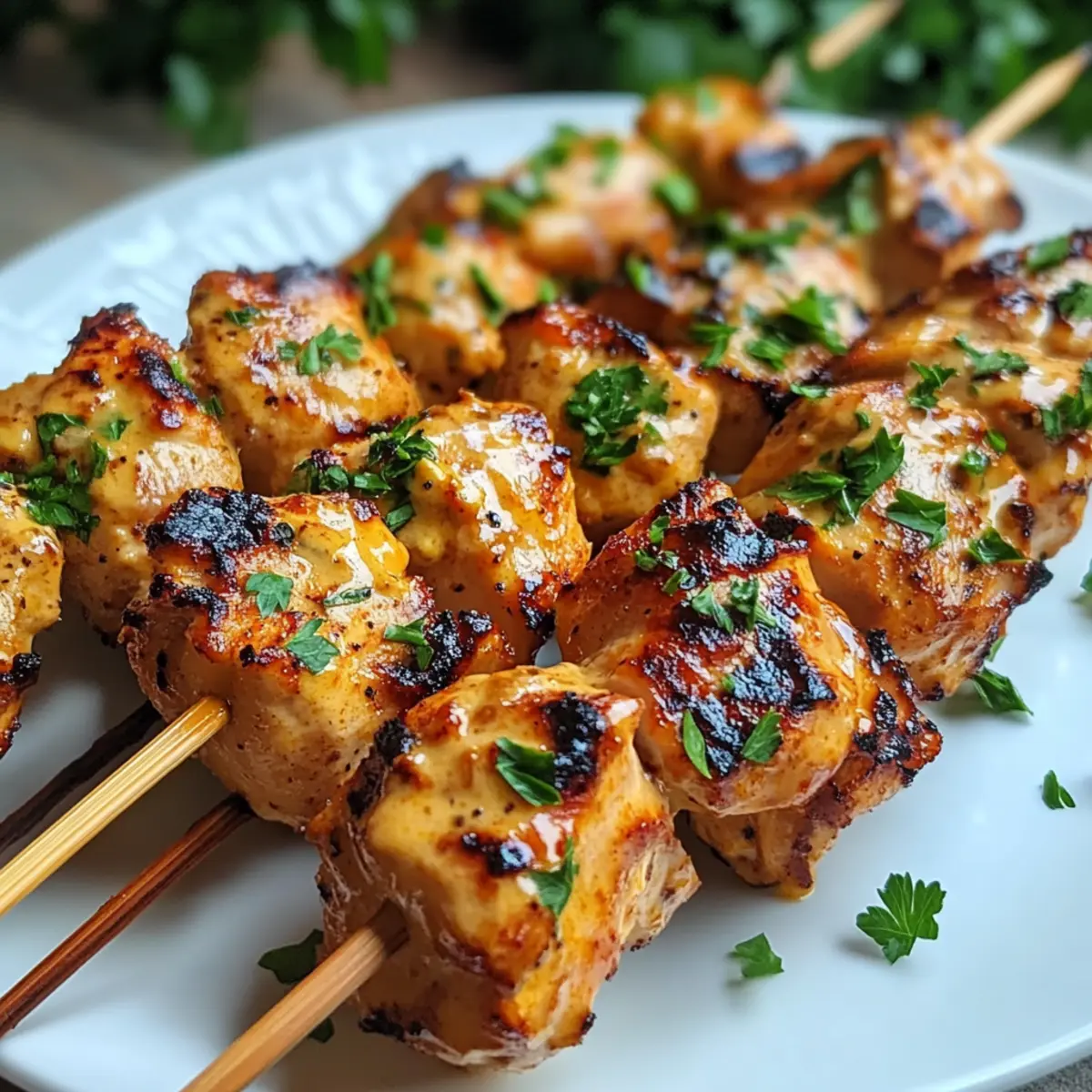 Entdecken Sie saftige Hähnchenspieße, die durch eine würzige Marinade aus Mayonnaise und Chili bestechen – perfekt für Ihren Grillabend.