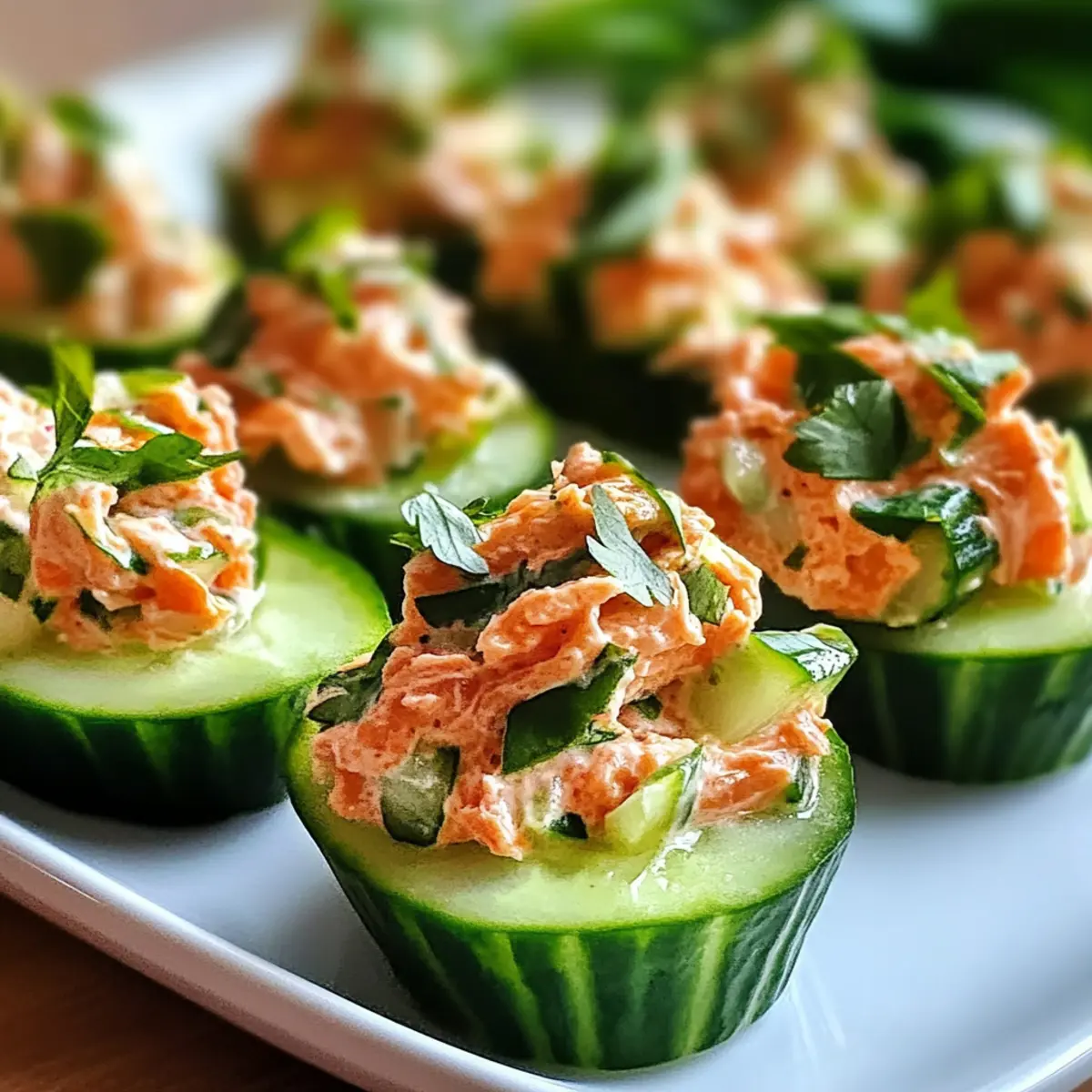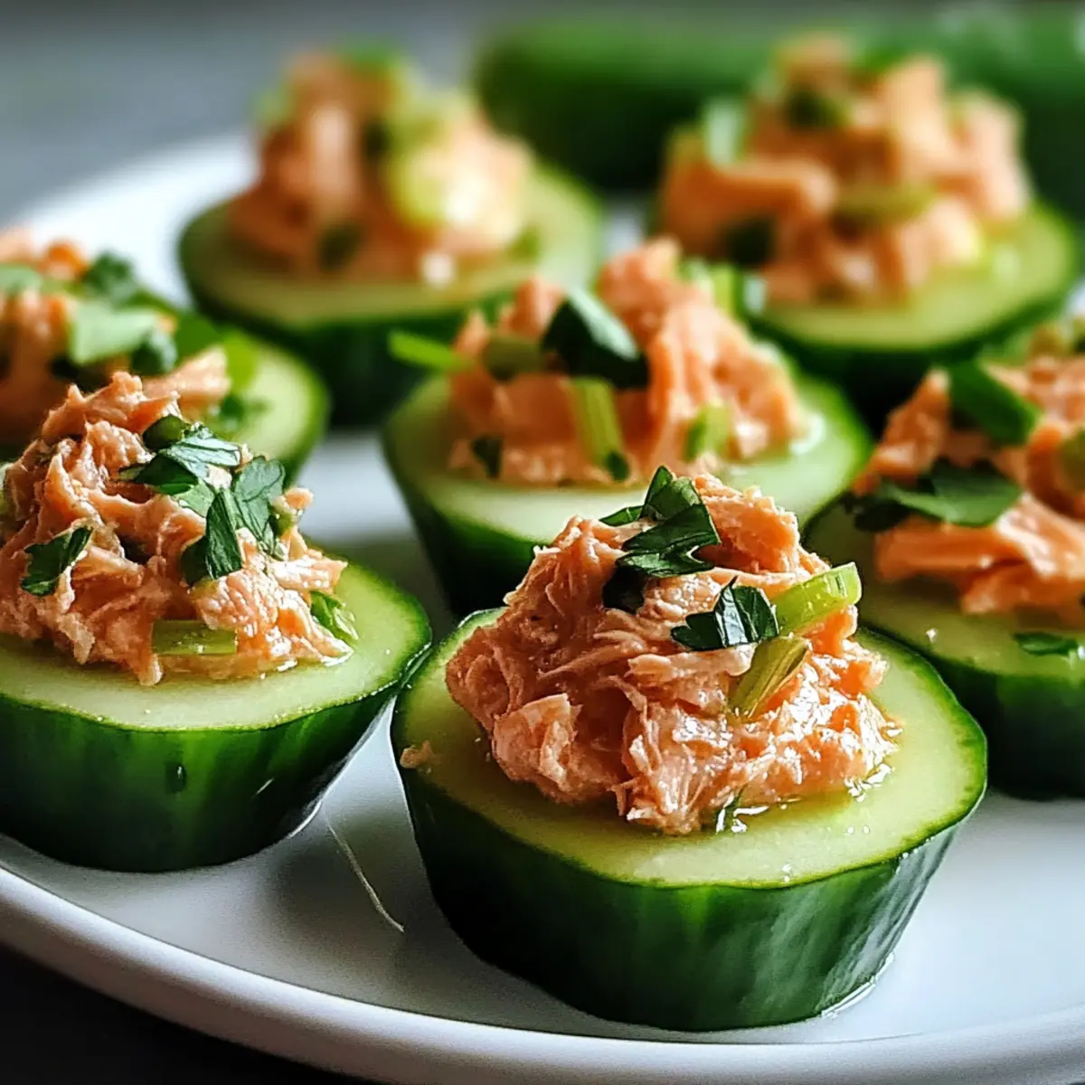 Eines der besten Dinge am Kochen ist die Möglichkeit, in nur wenigen Minuten ein köstliches Gericht zuzubereiten. Mit diesen scharfen Thunfischsalat-Häppchen kannst du ganz einfach einen aufregenden Snack kreieren, der sowohl gesund als auch schmackhaft ist. Dieses Rezept verlangt nur etwa 10 Minuten deiner Zeit und bietet dank der Kombination von cremigem Thunfisch und der pikanten Note von Sriracha auf knackigen Gurkenscheiben oder Endivienblättern eine wahre Geschmacksexplosion. Zudem sind diese Häppchen nicht nur kohlenhydratarm und proteinreich, sondern auch perfekt für spontane Zusammenkünfte oder schnelle Snacks während eines hektischen Tages. Bereit, deinen Gästen etwas Einzigartiges und Leckeres zu servieren? Lass uns loslegen! Warum du diese Häppchen lieben wirst? Schnelligkeit: In nur 10 Minuten kannst du diese köstlichen Häppchen zubereiten – perfekt für spontane Lust auf einen Snack oder wenn Gäste vorbeikommen. Vielseitigkeit: Egal, ob du eine glutenfreie, low-carb Variante suchst oder einfach einen gesunden Appetit stillen möchtest – diese Häppchen passen in jede Diät und sind anpassbar! Erfrischende Basis: Die knackigen Gurkenscheiben oder Endivienblätter sorgen für einen leichten Crunch, der hervorragend zum cremigen, würzigen Thunfischsalat passt. Gesunde Alternative: Diese Snacks sind nicht nur proteinreich, sondern enthalten auch weniger Kohlenhydrate als traditionelle Snacks. Und wenn du nach einer anderen cremigen Basis suchst, teste doch einmal griechischen Joghurt anstelle von Mayonnaise. Unvergesslicher Geschmack: Die Kombination aus Sriracha, Limette und frischen Kräutern bietet ein Geschmackserlebnis, das jede Geschmacksnase begeistert! Scharfe Thunfischsalat-Häppchen Zutaten • Um die perfekte Grundlage für diese köstlichen Snacks zu schaffen, sind hier die Zutaten, die du benötigst: Für den Thunfischsalat Thunfisch – Verwende gut abgetropften Dosen-Thunfisch für einen proteinreichen Snack; dabei ist es wichtig, ihn gut abtropfen zu lassen, um matschige Häppchen zu vermeiden. Mayonnaise – Sie verleiht dem Salat eine cremige Textur; für eine gesündere Option kannst du auch griechischen Joghurt verwenden. Sriracha – Die Schärfe wird durch die Sriracha bestimmt; passe die Menge je nach deinem Schärfewunsch an. Limettensaft – Er bringt Frische und Balance; frischer Zitronensaft ist eine gleichwertige Substitution. Geröstetes Sesamöl – Fügt eine nussige Tiefe hinzu; kannst es weglassen, wenn du es nicht zur Hand hast, aber es wird empfohlen. Sellerie – Sorgt für einen knackigen Biss; kann durch gewürfelte grüne Paprika ersetzt werden. Rote Zwiebel/Schalotten – Sie verleihen eine scharfe Note; für einen milderen Geschmack kannst du Frühlingszwiebeln verwenden. Koriander – Bringt Frische; optional für diejenigen, die andere Kräuter wie Petersilie bevorzugen. Salz und schwarzer Pfeffer – Zum Abschmecken der Aromen; nach Belieben anpassen. Für die Basis Gurken/Endivienblätter – Dienen als knackige, kohlenhydratarme Grundlage für deine Häppchen und ersetzen traditionelle Cracker. Entdecke, wie diese leckeren Scharfen Thunfischsalat-Häppchen deine Snack-Optionen aufpeppen können! Schritt-für-Schritt-Anleitung für Scharfe Thunfischsalat-Häppchen Step 1: Thunfisch vorbereiten Öffne zwei Dosen Thunfisch (je 150 g) und lasse sie gut abtropfen. Das ist wichtig, um matschige Häppchen zu vermeiden. Verwende eine Gabel, um den Thunfisch in eine mittelgroße Schüssel zu flaken. Achte darauf, dass keine Flüssigkeit in der Schüssel bleibt, um die Konsistenz des Salats zu verbessern. Step 2: Zutaten vermischen Füge in die Schüssel mit dem Thunfisch 60 g Mayonnaise, 15–30 ml Sriracha, 15 ml Limettensaft, 5 ml geröstetes Sesamöl, 30 g gewürfelten Sellerie, 30 g gewürfelte rote Zwiebel und 15 g gehackten Koriander hinzu. Misch alles gründlich mit einer Gabel oder einem Löffel, bis die Zutaten gut miteinander vermengt sind. Schmecke die Mischung mit Salz und Pfeffer ab. Step 3: Kühlen Decke die Schüssel mit Frischhaltefolie ab und stelle sie für 10–15 Minuten in den Kühlschrank. Dies ermöglicht es den Aromen, sich zu entfalten und miteinander zu verschmelzen. Nutze die Zeit, um die Gurken oder Endivienblätter vorzubereiten; wasche sie gründlich und schneide die Gurken in etwa 1 cm dicke Scheiben. Step 4: Anrichten Nimm die Schüssel mit dem Thunfischsalat aus dem Kühlschrank. Löffle etwa 15 ml der Thunfischsalat-Mischung auf jede Gurkenscheibe oder jedes Endivienblatt, direkt vor dem Servieren. Achte darauf, die Häppchen sanft zu beladen, damit die Grundlage nicht zerbricht. Step 5: Servieren Richte die Scharfen Thunfischsalat-Häppchen auf einer schönen Platten an und serviere sie sofort. Diese appetitlichen Snack-Optionen sorgen für einen köstlichen, frischen Biss und sind perfekt für gesellige Zusammenkünfte oder als schneller Snack für zwischendurch. Was passt zu Scharfen Thunfischsalat-Häppchen? Diese köstlichen Häppchen sind ein verlockender Snack, der auch eine vollständige Mahlzeit abrunden kann. Cremige Avocado-Scheiben: Die weiche Textur der Avocado ergänzt die Würze des Thunfischsalats und bietet eine seidenweiche Kontrastnote. Frischer gemischter Salat: Ein leichter, frischer Salat mit Kräutern und Zitrus ist der perfekte Begleiter. So bekommst du eine knackige und vitale Ergänzung. Würzige Quinoa: Quinoa als proteinreicher, nussiger Beilagen-Salat bringt eine herzhaft-gesunde Note in dein Menü, die hervorragend harmoniert. Knusprige Tortilla-Chips: Diese bieten einen zusätzlichen Crunch und servieren die Häppchen mit einer leckeren Dip-Option – perfekt für gesellige Abende. Erfrischende Zitronenlimonade: Ein spritziges Getränk rundet das Ganze ab und erleichtert die Schärfe, während es eine zusätzliche Frische einbringt. Himmlische Schokoladenmousse: Beende das Festmahl mit einem leichten, schokoladigen Dessert. Die Süße wirkt als schöner Kontra