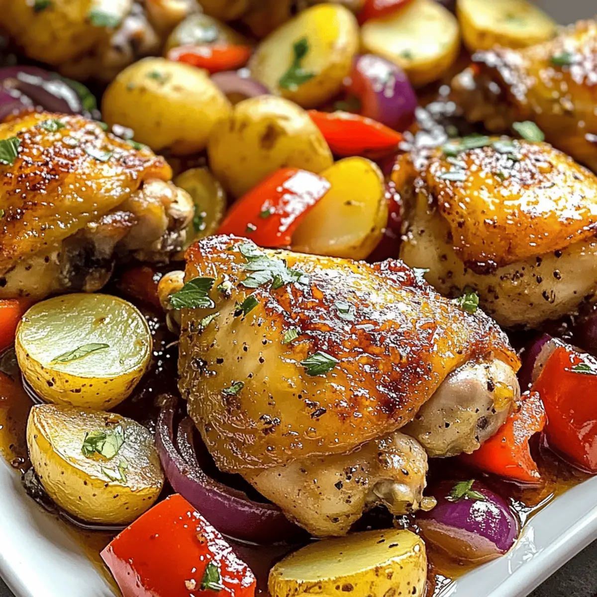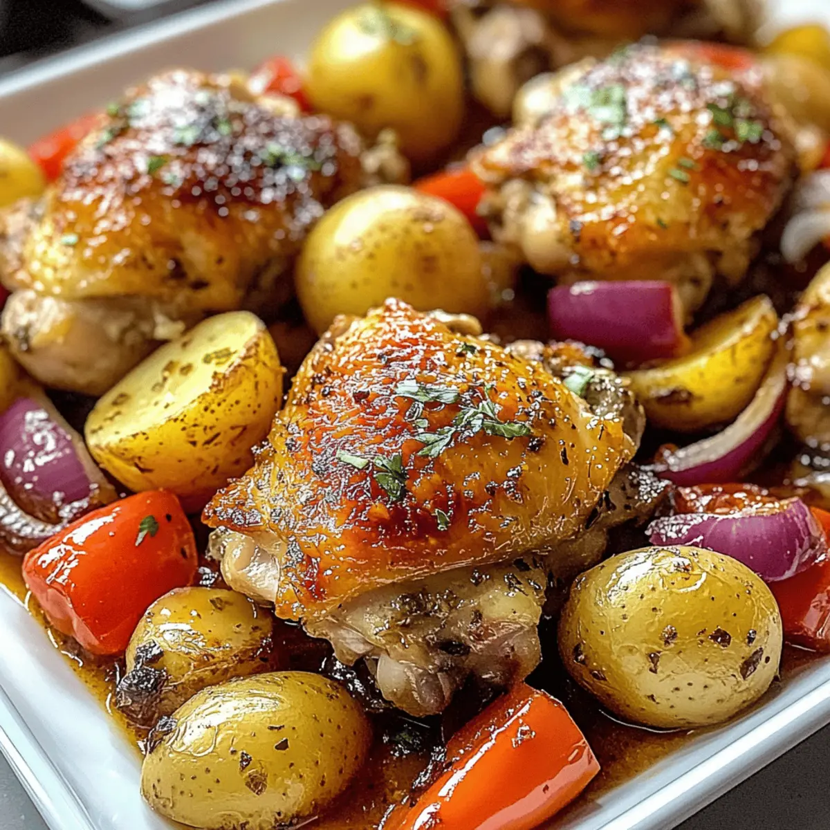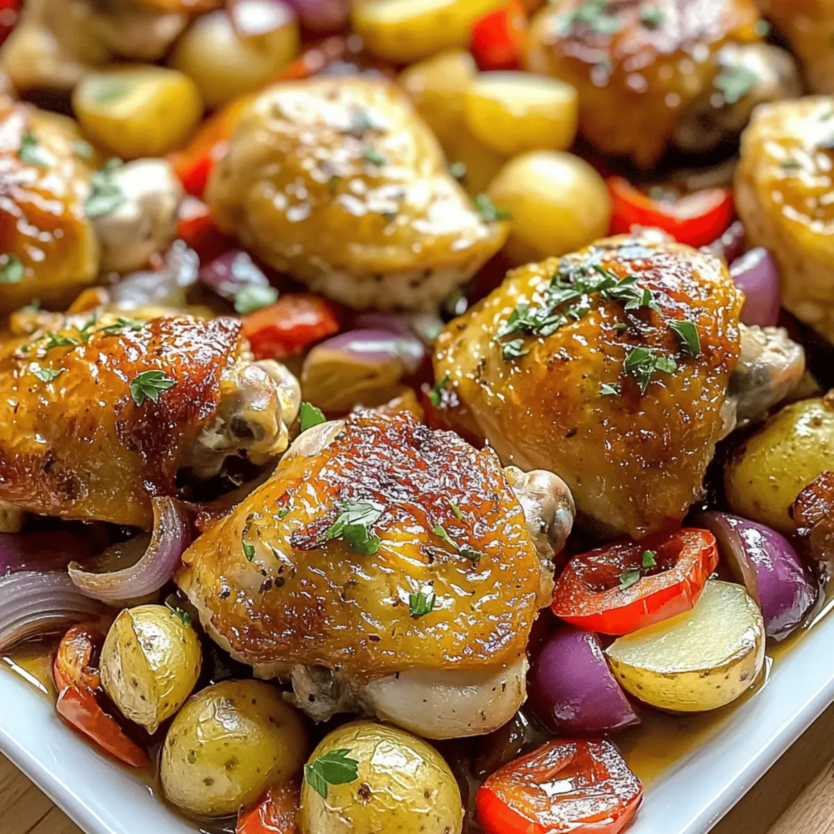Die Vorbereitung des Schmackhaftes Blechpfannen-Griechisches Hähnchen & Kartoffeln Rezepts ist eine großartige Möglichkeit, Zeit zu sparen und den Stress an hektischen Wochentagen zu minimieren! Du kannst die Hähnchenschenkel bis zu 24 Stunden im Voraus marinieren und die Mischung aus Zitronensaft, Knoblauch, Oregano und Gewürzen darauf auftragen, um den Geschmack zu intensivieren. Das Gemüse, bestehend aus Babykartoffeln, Paprika und Zwiebeln, kannst du ebenfalls bis zu 3 Tagen im Voraus schneiden und in einem luftdichten Behälter im Kühlschrank aufbewahren. Achte darauf, das Gemüse mit etwas Olivenöl und Gewürzen zu vermengen, um die Frische zu bewahren. Wenn du bereit bist zu servieren, lege das marinierte Hähnchen und das Gemüse auf ein Backblech und backe alles zusammen für 35-40 Minuten. So genießt du ein schmackhaftes und gesundes Gericht mit minimalem Aufwand!