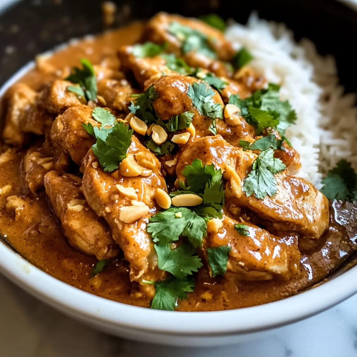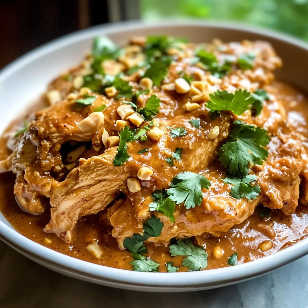 Während ich neulich durch einen kleinen Straßenmarkt in Chiang Mai schlenderte, erinnerten mich die verführerischen Aromen des Essens an Zuhause. Diese Erinnerung brachte mich dazu, das Rezept für ein köstliches Schmortopf Erdnuss Hähnchen zu kreieren, das die Sinne verführt und einfach zuzubereiten ist. Dieser slow cooker Klassiker kombiniert die perfekt ausbalancierten Aromen von süß, salzig und würzig und macht ihn zu einem unvergesslichen, komfortablen Abendessen nach einem langen Tag. Mit minimalem Aufwand zauberst du ein Gericht, das gut zu einem entspannten Abend oder zu einem geselligen Essen mit Freunden passt. Ob du nun frisches Gemüse hinzufügen oder das Hähnchen gegen Garnelen oder Tofu ersetzen möchtest, dieses Rezept bietet eine Vielzahl von Möglichkeiten. Bist du bereit, die Geschmäcker Thailands in deiner Küche zu erleben? Lass uns anfangen! Warum solltest du dieses Rezept ausprobieren? Einfachheit: Die Zubereitung ist denkbar leicht, ideal für kochbegeisterte Einsteiger und Profis. Vielfältig: Du kannst das Hähnchen ganz einfach durch Tofu, Garnelen oder sogar Steak ersetzen. Aromenexplosion: Die harmonische Mischung aus Erdnussbutter, Gewürzen und Kräutern sorgt für ein echtes Geschmackserlebnis. Zeitersparnis: Perfekt für hektische Wochentage, denn der Schmortopf erledigt praktisch alles für dich. Gesellig: Dieses Gericht trifft garantiert den Geschmack deiner Gäste und wird sie begeistern! Probier auch unser Rezept für die Bombastische Spitzkohl Hackfleisch Pfanne, um noch mehr Abwechslung in die Küche zu bringen. Schmortopf Erdnuss Hähnchen Zutaten Für dieses köstliche Gericht benötigst du nur einige einfache Zutaten, die eine Geschmacksexplosion im Schmortopf garantieren. Für das Hähnchen Hähnchenbrust oder -schenkel – Boneless und skinless für beste Ergebnisse. Für die Sauce Erdnussbutter – Sorgt für Cremigkeit und reichhaltigen Geschmack; für eine nussfreie Variante verwende Seedbutter. Sojasauce – Liefert Umami und Salzgeschmack; nutze Tamari für glutenfreie Option. Honig – Süßt und balanciert die Schärfe; ahornsirup ist eine vegane Alternative. Essig oder Limettensaft – Bringt Säure und Frische; Reisessig ist besonders passend. Sesamöl – Verleiht Tiefe im Geschmack; bei Allergien kann Olivenöl verwenden werden. Knoblauch & Ingwer – Unerlässliche Aromen; frisch ist am besten, aber Pulver geht auch. Chili-Flocken – Für die nötige Schärfe; passe die Menge nach deinem Geschmack an. Für die zusätzliche Cremigkeit Kokosmilch (optional) – Macht die Sauce besonders reichhaltig; kann für eine leichtere Variante weggelassen werden. Für das Garnieren Gehackte Erdnüsse & frische Kräuter (z.B. Koriander, Frühlingszwiebeln) – Geben dem Gericht Textur und Geschmack; unbedingt zu empfehlen! Mit diesen Zutaten zauberst du ein unvergessliches Schmortopf Erdnuss Hähnchen, das Freude und Wärme in deine Küche bringt. Step-by-Step Instructions for Schmortopf Erdnuss Hähnchen Step 1: Sauce zubereiten In einer Schüssel die Erdnussbutter, Sojasauce, Honig, Essig oder Limettensaft, Sesamöl, Knoblauch, Ingwer und Chili-Flocken gut miteinander verrühren. Füge nach Belieben Brühe oder Kokosmilch hinzu, bis die Mischung glatt und cremig wird. Diese aromatische Sauce wird die Grundlage für dein Schmortopf Erdnuss Hähnchen sein und den würzigen, süßen Geschmack perfekt ausbalancieren. Step 2: Hähnchen schichten Lege die Hähnchenbrust oder -schenkel in den Schmortopf und sorge dafür, dass das Hähnchen gleichmäßig verteilt ist. Gieße die vorbereitete Erdnuss-Sauce über das Hähnchen, sodass es gründlich bedeckt ist. Achte darauf, dass die Sauce alle Stücke gut umhüllt, um ein gleichmäßiges Garen und vollen Geschmack zu gewährleisten. Step 3: Garen Schließe den Schmortopf und stelle ihn auf niedrige Stufe für 4-6 Stunden oder auf hohe Stufe für 2-3 Stunden. Du weißt, dass das Hähnchen fertig ist, wenn es außen goldbraun ist und innen zart und saftig. Zu diesem Zeitpunkt kannst du die köstlichen Aromen in deiner Küche schon fast riechen. Step 4: Hähnchen zerkleinern Sobald das Schmortopf Erdnuss Hähnchen gar ist, nimm die Stücke vorsichtig heraus und zerreiße sie mit zwei Gabeln. Mische das zerkleinerte Hähnchen zurück in den Schmortopf, sodass es gleichmäßig mit der reichen Sauce umhüllt ist. Dieser Schritt sorgt dafür, dass jedes Stück von den köstlichen Aromen profitiert und das Gericht saftiger wird. Step 5: Servieren Serviere das Schmortopf Erdnuss Hähnchen heiß, garniert mit gehackten Erdnüssen und frischen Kräutern wie Koriander oder Frühlingszwiebeln. Diese zusätzlichen Zutaten verleihen nicht nur Textur, sondern auch eine Farbenvielfalt, die das Gericht noch ansprechender macht. Genieße es mit duftendem Jasminreis oder knackigem Gemüse für ein rundum gelungenes Abendessen. Variationen für Schmortopf Erdnuss Hähnchen Entdecke, wie du dein Schmortopf Erdnuss Hähnchen ganz nach deinem Geschmack anpassen kannst! Lass deiner Kreativität freien Lauf und finde neue, aufregende Möglichkeiten. Meeresfrüchte: Ersetze das Hähnchen durch Garnelen, die in der köstlichen Sauce schmelzen. Garnelen sind blitzschnell gekocht und bringen einen schönen Meeresgeschmack mit. Vegane Option: Tausche das Hähnchen gegen Tofu aus und verwende Ahornsirup anstelle von Honig. Dieses Gericht bleibt vollmundig und nahrhaft, ideal für Veganer und Freunde der pflanzlichen Küche. Steak bites: Verwende zarte Steakstücke für eine herzhaftere Version. Diese Kombination bringt eine saftige Textur und intensiven Geschmack, die jedem Fleischliebhaber gefallen wird. Nudelvariation: Statt Reis serviere flache Reisnudeln oder Kokosreis als Beilage. Der Wechsel zu Nudeln sorgt für ein anderes Esserlebnis und hebt die Aromen der Sauce hervor. Frischer Twist: Füge frisches Gemüse wie Brokkoli oder Paprika in den Schmortopf hinzu. Das Gemüse nimmt die Aromen auf und bringt zusätzliche