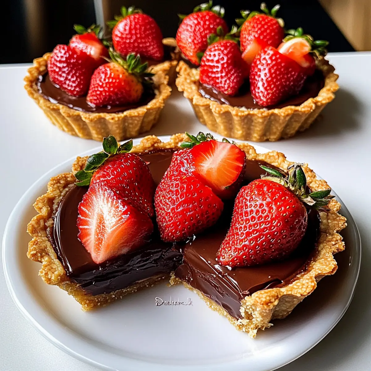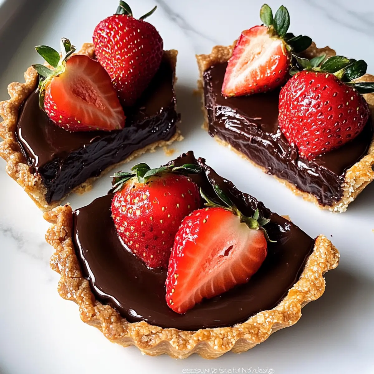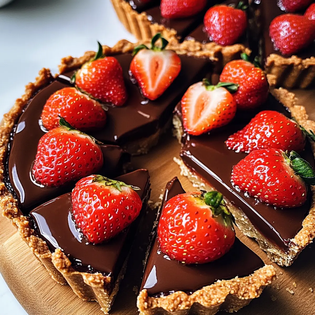 Rund um den Tisch höre ich die Löffel klirren und das belustigte Lachen meiner Freunde, während sie in die zarten Schokoladen-Erdbeer-Tarteletts beißen. Diese kleinen Köstlichkeiten sind mehr als nur eine Nachspeise; sie sind ein Erlebnis, das herzliche Momente schafft. Die Kombination aus cremiger Schokolade und frischen, saftigen Erdbeeren in einem buttrigen Tarteschalen ist einfach unwiderstehlich. Leicht zuzubereiten und dennoch beeindruckend genug für jede Feier, eignen sich diese Tarteletts perfekt für romantische Dinner, Geburtstagspartys oder einfach, um sich selbst etwas Gutes zu tun. Wer kann schon bei dieser süßen Versuchung widerstehen? Lass uns gemeinsam in die Welt der Schokoladen-Erdbeer-Tarteletts eintauchen! Warum werden diese Tarteletts Ihre Gäste begeistern? Harmonie aus Aromen: Diese Schokoladen-Erdbeer-Tarteletts kombinieren die süße Cremigkeit von Schokolade mit der Frische saftiger Erdbeeren – ein himmlischer Genuss! Einfache Zubereitung: Die Rezeptur ist unkompliziert und erfordert keine besonderen Backkünste; perfekt für jeden Hobbykoch. Vielseitigkeit: Variieren Sie ganz nach Belieben, ob mit dunkler Schokolade oder veganer Füllung, jeder findet seine Lieblingsversion! Ideal für Anlässe: Ob romantisches Dinner oder Geburtstag – sie sind ein echter Hingucker und ein Gesprächsstarter auf jeder Feier. Schnell zubereitet: Mit nur wenigen Zutaten und notwendiger Kühlzeit sind diese leckeren Tarteletts schnell in Vorbereitung und bieten dennoch ein luxuriöses Geschmackserlebnis. Schokoladen-Erdbeer-Tarteletts Zutaten Für den Teig Allzweckmehl – sorgt für die Struktur der Tarteletts; kann durch glutenfreies Mehl ersetzt werden. Puderzucker – verleiht dem Teig Süße und eine leichte Textur; in einer Notlage kann auch Kristallzucker verwendet werden. Ungesalzene Butter – sorgt für Reichhaltigkeit und Flakigkeit; muss kalt und gewürfelt verwendet werden. Eigelb – erhöht die Reichhaltigkeit und bindet den Teig; kann für eine vegane Version durch einen Flachs-Ei-Ersatz ersetzt werden. Kaltes Wasser – dient zur Befeuchtung des Teigs; nur nach Bedarf verwenden. Für die Füllung Halbbitterschokolade – ist die Hauptzutat für die Füllung und verleiht den Tarteletts ihren reichen Geschmack; dunkle Schokolade sorgt für einen intensiveren Geschmack. Sahne – verleiht der Schokoladenfüllung Cremigkeit; kann durch Kokoscreme für eine milchfreie Alternative ersetzt werden. Vanilleextrakt – hebt den Geschmack der Schokoladenfüllung hervor; reine Vanille ist für das beste Aroma empfehlenswert. Für die Garnitur Frische Erdbeeren – bringen natürliche Süße und Frische in die Tarteletts; können je nach Vorliebe durch andere Beeren ersetzt werden. Aprikosenmarmelade – optional für eine Glasur der Erdbeeren, die deren Aussehen und Süße verstärkt; auch durch andere Fruchtmarmeladen austauschbar. Lass dich von den Schokoladen-Erdbeer-Tarteletts verzaubern und genieße ihre köstliche Kombination aus Aromen und Texturen! Schritt-für-Schritt-Anleitung für Schokoladen-Erdbeer-Tarteletts Schritt 1: Teig zubereiten In einer Schüssel das Allzweckmehl mit Puderzucker vermischen. Kalte, gewürfelte Butter hinzufügen und mit einem Teigmischer oder den Fingern so lange bearbeiten, bis die Mischung krümelig ist. Dann das Eigelb sowie gerade so viel kaltes Wasser hinzugeben, bis ein homogener Teig entsteht. Den Teig in Frischhaltefolie wickeln und für 30 Minuten im Kühlschrank kühl stellen. Schritt 2: Tarteschalen backen Den gekühlten Teig auf einer leicht bemehlten Fläche etwa 3 mm dick ausrollen. Die Teigplatte in Tartletformen legen und gleichmäßig an den Rändern andrücken. Mit einer Gabel einige Löcher in den Boden stechen, um ein Aufblähen während des Backens zu verhindern. Die Schalen im vorgeheizten Ofen bei 180 °C 15-20 Minuten backen, bis sie goldbraun sind. Nach dem Backen vollständig abkühlen lassen. Schritt 3: Füllung vorbereiten In einem kleinen Topf die Sahne erhitzen, bis sie gerade zu köcheln beginnt. Diese dann über die grob gehackte Halbbitterschokolade gießen und circa 5 Minuten ruhen lassen, damit die Schokolade schmelzen kann. Anschließend alles gut umrühren, bis eine glatte, cremige Masse entsteht. Den Vanilleextrakt hinzufügen und unterrühren, um das Aroma zu intensivieren. Schritt 4: Tarteletts füllen Sobald die Tarteschalen abgekühlt sind, die Schokoladenfüllung gleichmäßig darin verteilen, bis sie zu den Rändern hin gefüllt sind. Die fertigen Tarteletts für mindestens 2 Stunden in den Kühlschrank stellen, damit die Füllung fest wird und einen schönen, glatten Abschluss bildet. Schritt 5: Mit Erdbeeren garnieren Die frischen Erdbeeren in Scheiben schneiden und dekorativ auf der fest gewordenen Schokoladenfüllung anrichten. Optional kann Aprikosenmarmelade leicht erwärmt und über die Erdbeeren gestrichen werden, um ihnen Glanz und zusätzliche Süße zu verleihen. Die Schokoladen-Erdbeer-Tarteletts am besten sofort servieren, damit die Erdbeeren frisch bleiben. Was passt zu Schokoladen-Erdbeer-Tarteletts? Diese leichten, süßen Köstlichkeiten lassen sich wunderbar mit verschiedenen Beilagen und Getränken kombinieren, um ein unvergessliches Geschmackserlebnis zu schaffen. Schlagsahne: Die fluffige, süße Schlagsahne ergänzt perfekt die cremige Schokoladenfüllung und rundet den Genuss ab. Einfach ein Klecks auf die Tarteletts geben und genießen! Vanilleeis: Eine Kugel vanille Eis sorgt für eine kühle Erfrischung, die die Schokoladennoten verstärkt. Die Kombination von warmen und kalten Texturen ist besonders verlockend. Erdbeersoße: Frische Erdbeersoße verleiht den Tarteletts eine zusätzliche fruchtige Note. Ein einfacher Spritzer sorgt für eine aufregende Geschmackssteigerung. Kaffee: Ein freundlicher Espresso oder ein milder Kaffee bieten die perfekte Balance zur Süße der Tarteletts. Diese Kombination regt den Gaumen an und sorgt für ein rundum genussvolles E