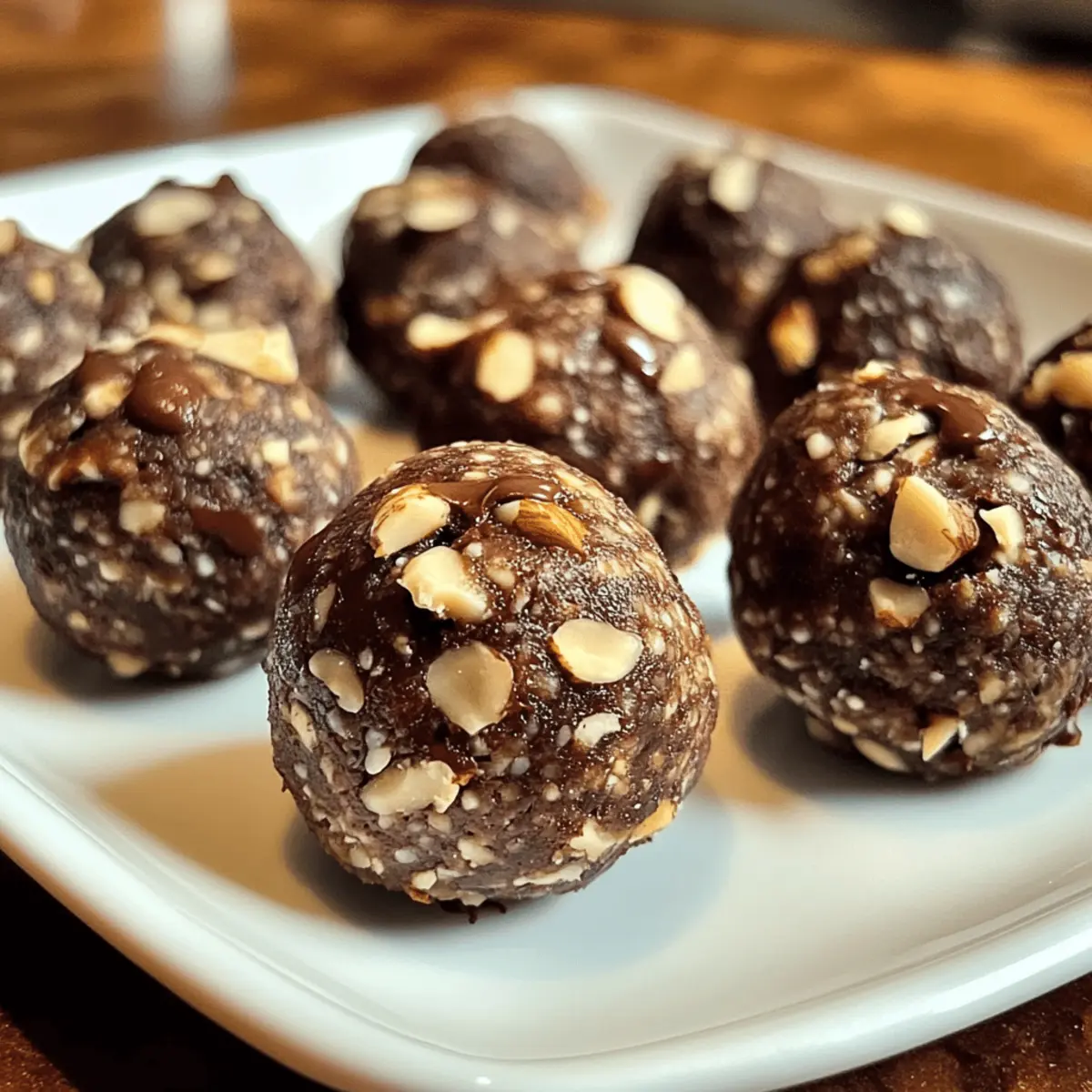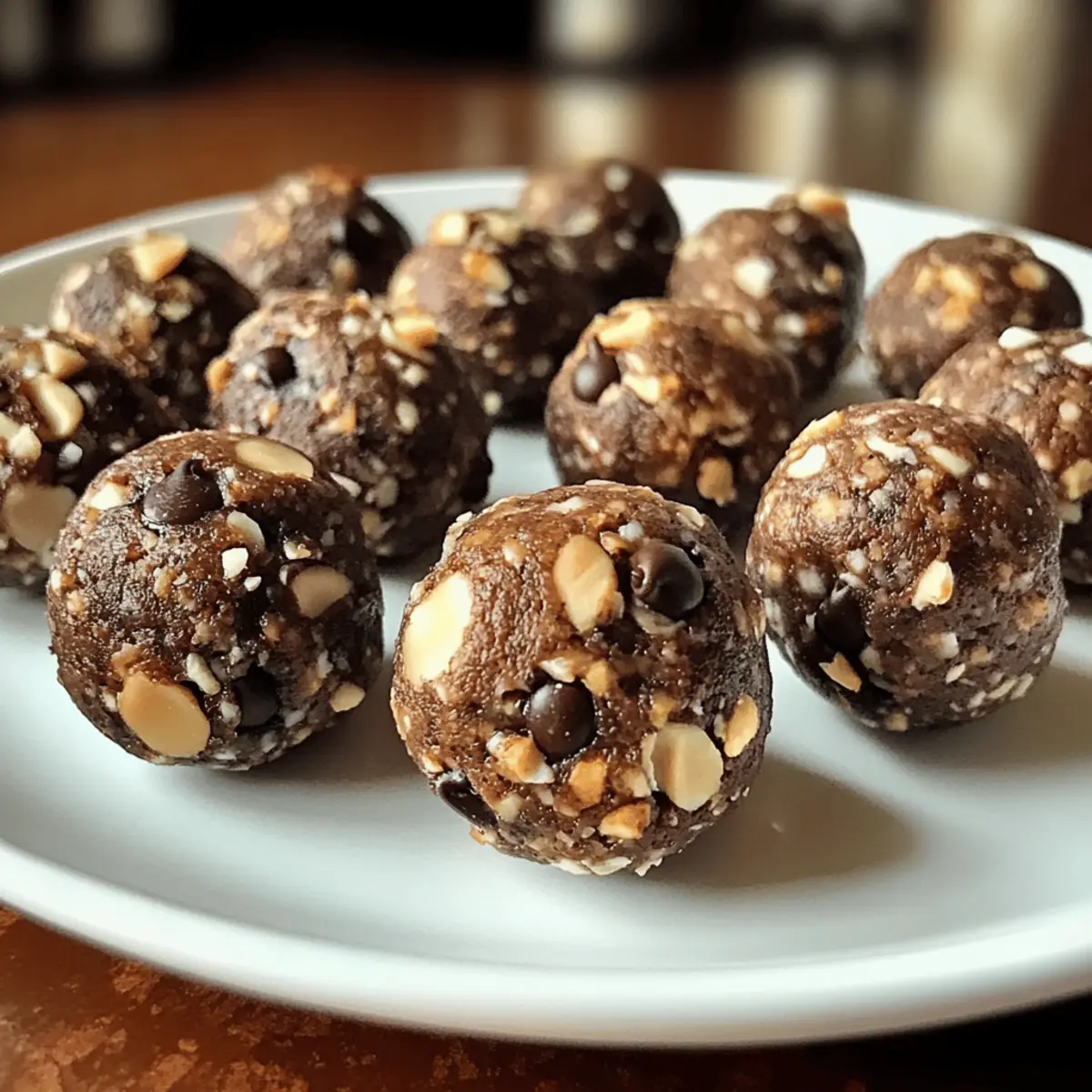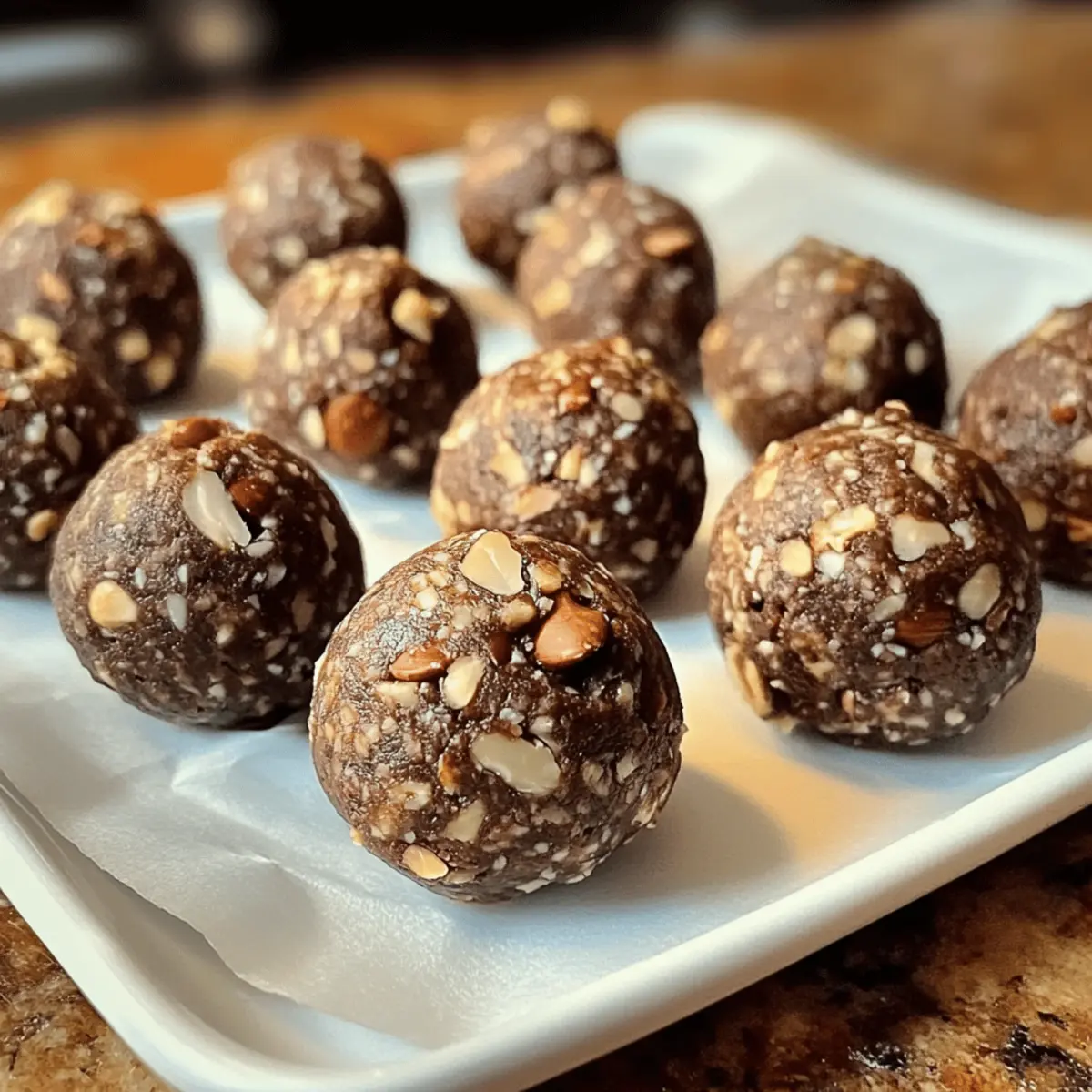 Als ich das Geräusch der Kaffeebohnen hörte, die bei der Zubereitung meines morgendlichen Espresso gemahlen wurden, kam mir die Idee, etwas Besonderes zu kreieren: Schokoladen-Espresso-Energiebällchen, ein kraftvoller Snack, der sowohl die Sinne belebt als auch den Körper mit Energie versorgt. Diese kleinen Leckerbissen sind nicht nur ein gesunder Ersatz für ungesunde Snacks, sondern auch blitzschnell zubereitet – perfekt für hektische Tage, wenn ich einen schnellen Energieschub benötige. Mit der Vielseitigkeit, verschiedene Nussbutter und Süßungsmittel auszuprobieren, wird jedes Mal ein neues Geschmackserlebnis geboten. Wer könnte da widerstehen? Lass uns gemeinsam entdecken, wie einfach und befriedigend es ist, diese köstlichen Energiebällchen zuzubereiten! Warum werden Sie diese Energiebällchen lieben? Einfachheit, die Zubereitung ist im Handumdrehen erledigt – perfekt für vielbeschäftigte Kochliebhaber! Vielseitigkeit, Sie können verschiedene Nussbutter und Süßungsmittel nutzen, um die Energiebällchen nach Ihrem Geschmack anzupassen. Gesunde Zutaten sorgen dafür, dass Sie sich gut fühlen, während Sie genießen – ideal für ein schnelles Energietief oder als Snack für unterwegs. Einzigartiger Geschmack, die Kombination von Schokolade und Espresso macht jeden Bissen zu einem Geschmackserlebnis. Für noch mehr Geschmack, probieren Sie diese Gefüllte Pizza Röllchen oder die Knusprigen Zimt Bananenchips als Ergänzung zu Ihrem Snack-Repertoire! Zutaten für Schokoladen-Espresso-Energiebällchen • Diese köstlichen Energiebällchen sind nicht nur einfach zuzubereiten, sondern auch vollgepackt mit gesunden Zutaten, die Ihnen Energie für den Tag geben! Für die Basis: 1 Tasse Haferflocken – Sorgt für Struktur und ist reich an Ballaststoffen für anhaltende Energie. 1/2 Tasse Mandelbutter – Fügt gesunde Fette und Cremigkeit hinzu; können Sie auch durch Erdnuss- oder Cashewbutter ersetzen für andere Geschmäcker. 1/4 Tasse Honig oder Ahornsirup – Wirk als natürlicher Süßstoff; verwenden Sie Agavensirup für eine vegane Option. 1/4 Tasse ungesüßtes Kakaopulver – Verleiht Schokoladengeschmack und Antioxidantien; Carobpulver kann für eine süßere Note genutzt werden. 1 Esslöffel Instant-Espressopulver – Verstärkt den Geschmack und gibt einen Kaffeekick. 1/4 Tasse Zartbitterschokoladenstückchen – Fügt Süße und eine schokoladige Note hinzu; ersetzen Sie sie durch weiße oder Vollmilch-Schokolade, wenn gewünscht. 1/4 Teelöffel Meersalz – Balanciert die Süße und verstärkt die Aromen. 1/4 Tasse gehackte Nüsse (z.B. Mandeln oder Walnüsse) – Bietet Crunch und zusätzliche Nährstoffe. Optional: 1/2 Teelöffel Vanilleextrakt – Erhöht die Geschmacksvielfalt. Die Vorbereitung dieser Schokoladen-Espresso-Energiebällchen kann der erste Schritt sein, um Ihren Alltag mit gesunden Snacks zu bereichern, die leicht zu lagern und einfach zuzubereiten sind! Schritt-für-Schritt-Anleitung für Schokoladen-Espresso-Energiebällchen Step 1: Zutaten vermengen In einer großen Rührschüssel kombinieren Sie die Haferflocken, Mandelbutter, Honig, ungesüßtes Kakaopulver, Instant-Espressopulver und das Meersalz. Wenn Sie Vanilleextrakt verwenden möchten, fügen Sie ihn jetzt hinzu. Vermengen Sie die Zutaten gründlich mit einem Holzlöffel oder einem Spatel, bis eine klebrige Masse entsteht, die gut zusammenhält. Step 2: Schokoladenstückchen und Nüsse hinzufügen Fügen Sie nun die Zartbitterschokoladenstückchen und die gehackten Nüsse in die Schüssel hinzu. Mischen Sie alles sorgfältig, bis die Schokoladenstückchen und Nüsse gleichmäßig in der klebrigen Basis verteilt sind. Achten Sie darauf, dass jeder Bissen der späteren Energiebällchen gut schmeckt und die Zutaten gut miteinander verbunden sind. Step 3: Bällchen formen Verwenden Sie Ihre Hände, um etwa einen Esslöffel der Mischung zu entnehmen und diese zu kleinen Bällchen zu rollen. Stellen Sie sicher, dass die Bällchen gleichmäßig geformt sind, damit sie beim Essen eine einheitliche Textur bieten. Achten Sie darauf, diese in einer angenehmen Größe zu formen, die leicht zu snacken ist. Step 4: Auf dem Backblech anrichten Legen Sie die gerollten Bällchen auf ein mit Backpapier ausgelegtes Backblech. Achten Sie darauf, genügend Platz zwischen den Bällchen zu lassen, damit sie nicht zusammenkleben. Diese Anordnung hilft dabei, die Form zu bewahren, während sie im Kühlschrank fest werden. Step 5: Kühlen zur Festigung Legen Sie das Backblech mit den Schokoladen-Espresso-Energiebällchen für mindestens 30 Minuten in den Kühlschrank. Dies sorgt dafür, dass die Bällchen fest werden und ihre Form beibehalten, während sie ihre Aromen durchziehen können. Schauen Sie nach der halben Stunde nach, ob sie die gewünschte Konsistenz erreicht haben. Step 6: Aufbewahrung und Genuss Nachdem die Bällchen gekühlt sind, können Sie sie in einem luftdichten Behälter im Kühlschrank aufbewahren, wo sie bis zu einer Woche frisch bleiben. Alternativ können Sie sie auch für bis zu drei Monate im Gefrierfach lagern. Diese Schokoladen-Espresso-Energiebällchen sind nun bereit, Ihnen als kraftvoller Snack zu dienen! Tipps für die besten Schokoladen-Espresso-Energiebällchen Frische Zutaten: Verwenden Sie immer frische Zutaten, um das volle Aroma und den besten Geschmack Ihrer Schokoladen-Espresso-Energiebällchen zu gewährleisten. Einheitliche Größe: Achten Sie darauf, die Bällchen gleichmäßig zu formen. Das sorgt für eine gleichmäßige Textur und macht das Snacken einfacher und angenehmer. Anpassungen vornehmen: Wenn die Mischung zu trocken erscheint, fügen Sie mehr Mandelbutter hinzu. Ist sie zu feucht, einfach ein wenig mehr Haferflocken unterrühren. Kühlen nicht vergessen: Kühlen Sie die Bällchen im Kühlschrank für mindestens 30 Minuten, damit sie ihre Form behalten und die Aromen besser durchziehen können. Variationen erkunden: Experimentieren Sie mit versch