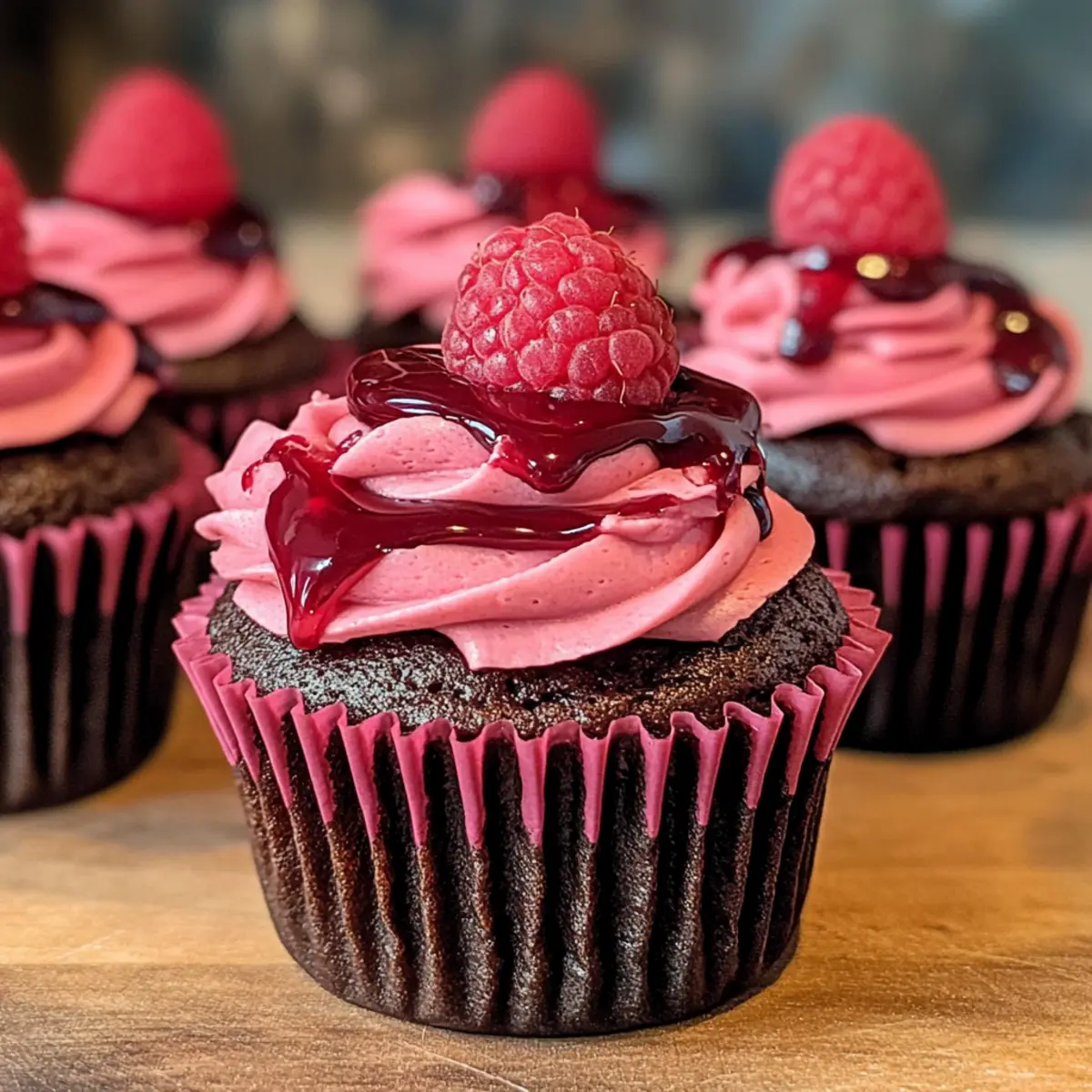 „Kann ich um ein Stück bitten?“ hörte ich meinen Freund sagen, als ich die frischen Schokoladen-Himbeeren-Cupcakes auf den Tisch stellte. Bei ihrem Anblick wird einem sofort das Wasser im Mund zusammenlaufen! Diese feuchten Schokoladencupcakes mit einem köstlichen Himbeerganache-Füllung sind nicht nur ein wahrer Hochgenuss, sondern auch eine wunderbare Möglichkeit, um seine Liebsten an besonderen Anlässen wie dem Valentinstag zu verwöhnen. Mit der perfekten Balance aus süß und leicht herb sind sie ein echter Publikumsliebling und dafür geschaffen, Herzen zu erobern. Bereitet euch auf ein unvergessliches Geschmackserlebnis vor – und wer könnte da widerstehen? Seid ihr bereit, die Künste des Backens auf das nächste Level zu bringen? Warum werden diese Cupcakes dein Herz erobern? Köstlicher Genuss: Die Kombination aus feuchtem Schokoladenteig und fruchtiger Himbeerganache bietet ein unvergessliches Geschmackserlebnis. Einfach zuzubereiten: Die klaren Anweisungen machen das Backen selbst für Anfänger zum Kinderspiel. Perfekte Baleance: Die Harmonie zwischen süß und herb wird deine Geschmacksnerven jubeln lassen! Für jeden Anlass: Ob zum Valentinstag oder bei Feiern, diese Cupcakes sind ein Hit und werden überall bewundert. Tolle Aufbewahrung: Länger frisch bleiben sie einfach in einem luftdichten Behälter – ideal für spontane Naschereien oder überraschende Gäste. Erlebe selbst, wie Schokoladen-Himbeeren-Cupcakes der Star deiner nächsten Feier werden können! Schokoladen-Himbeeren-Cupcakes Zutaten • Um sicherzustellen, dass deine Schokoladen-Himbeeren-Cupcakes perfekt gelingen, findest du hier die wichtigen Zutaten und einige hilfreiche Tipps! Für den Teig Allzweckmehl – sorgt für die Struktur der Cupcakes; genaues Abmessen ist wichtig, um trockene Cupcakes zu vermeiden. Dutch Process Kakaopulver – verleiht einen tiefen Schokoladengeschmack; kann bei Bedarf durch normales Kakaopulver ersetzt werden. Backpulver & Natron – fördern das Aufgehen der Cupcakes; stelle sicher, dass sie frisch sind für die besten Ergebnisse. Salz – hebt die Süße hervor; unerlässlich für den Geschmack. Espressopulver (optional) – intensiviert den Schokoladengeschmack, ohne den Cupcake kaffeeartig zu machen. Ungesalzene Butter – sorgt für Feuchtigkeit und Reichtum; sollte weich sein für einfaches Mischen. Zucker – süßt und trägt zur Textur der Cupcakes bei. Ei & Eidotter – spenden Feuchtigkeit und Reichtum, wichtig für die Struktur. Vanilleextrakt – fügt Geschmacksdimensionen hinzu; verwende hochwertige Vanille für die besten Ergebnisse. Vollmilch & Saure Sahne – sorgt für Feuchtigkeit und Zartheit; beide Zutaten sollten Raumtemperatur haben. Für die Ganache Halbbitterschokolade – wird für die Füllung verwendet; kann bei Bedarf durch Zartbitter-Schokolade ersetzt werden. Schlagsahne – kreiert eine luxuriöse Ganache-Textur. Himbeermarmelade – fügt Süße und Himbeergeschmack zur Ganache hinzu. Für das Frosting Ungesalzene Butter (für das Frosting) – Basis für die Himbeer-Buttercreme; sollte weich sein. Puderzucker – süßt und stabilisiert die Frosting-Textur. Eingefrorene Himbeeren – sorgen für konzentrierten Himbeergeschmack und Farbe im Frosting; können zu Pulver gemahlen werden. Zusätzliche Himbeermarmelade (für das Frosting) – intensiviert den Himbeergeschmack. Erlebe die Freude, diese köstlichen Schokoladen-Himbeeren-Cupcakes zu backen und verführe deine Gäste mit jedem Bissen! Schritt-für-Schritt-Anleitung für Saftige Schokoladen-Himbeeren-Cupcakes Step 1: Ofen vorheizen Heize den Ofen auf 180 °C (350 °F) vor und lege ein Muffinblech mit Cupcake-Förmchen aus. Dies sorgt für eine gleichmäßige Wärmeverteilung und garantiert, dass die Schokoladen-Himbeeren-Cupcakes optimal gebacken werden. Step 2: Trockene Zutaten mischen Siebe das Allzweckmehl, Kakaopulver, Backpulver, Natron, Salz und das optionale Espressopulver in eine große Schüssel. Mische die trockenen Zutaten gut, damit kein Klumpen entsteht, und stelle die Mischung beiseite, während du die nassen Zutaten vorbereitest. Step 3: Butter und Zucker cremig schlagen Schlage die weiche, ungesalzene Butter zusammen mit dem Zucker in einer großen Schüssel mit einem Handmixer oder einer Küchenmaschine, bis die Mischung fluffig und hell ist, normalerweise etwa 3-5 Minuten. Dies sorgt für eine luftige Textur deiner Schokoladen-Himbeeren-Cupcakes. Step 4: Eier und Milch hinzufügen Füge das ganze Ei, den Eidotter, den Vanilleextrakt, die Vollmilch und die saure Sahne zu der cremigen Butter-Zucker-Mischung hinzu. Mische alles gründlich, bis es gut kombiniert ist, etwa 1-2 Minuten, und achte darauf, dass es eine homogene Masse ergibt. Step 5: Trockene und nasse Zutaten kombinieren Gib die zuvor gesiebten trockenen Zutaten nach und nach zur feuchten Mischung und rühre vorsichtig, bis alles gerade so kombiniert ist. Übermische den Teig nicht, um sicherzustellen, dass deine Schokoladen-Himbeeren-Cupcakes schön zart bleiben. Step 6: Backen Fülle die Cupcake-Förmchen bis zu 3/4 voll mit dem Teig und backe sie im vorgeheizten Ofen für 17-20 Minuten. Die Cupcakes sind fertig, wenn ein Zahnstocher sauber herauskommt. Achte darauf, die Teigfülle gleichmäßig zu verteilen, damit sie gleichmäßig aufgehen. Step 7: Abkühlen lassen Lass die gebackenen Cupcakes 10 Minuten lang im Blech abkühlen, bevor du sie vorsichtig auf ein Kuchengitter transferierst. Dies verhindert, dass sie an den Förmchen kleben bleiben und sorgt dafür, dass sie gleichmäßig abkühlen. Step 8: Ganache zubereiten Erhitze die Schlagsahne in einem kleinen Topf, bis sie dampft, und gieße sie über die gehackte halbbittersüße Schokolade. Rühre die Mischung gut um, bis die Schokolade vollständig geschmolzen ist, und füge dann die Himbeermarmelade hinzu. Lass die Ganache etwas abkühlen. Step 9: Frosting herstellen Schlage die weiche Butter in einer Schüssel mit einem Handmixer, bi