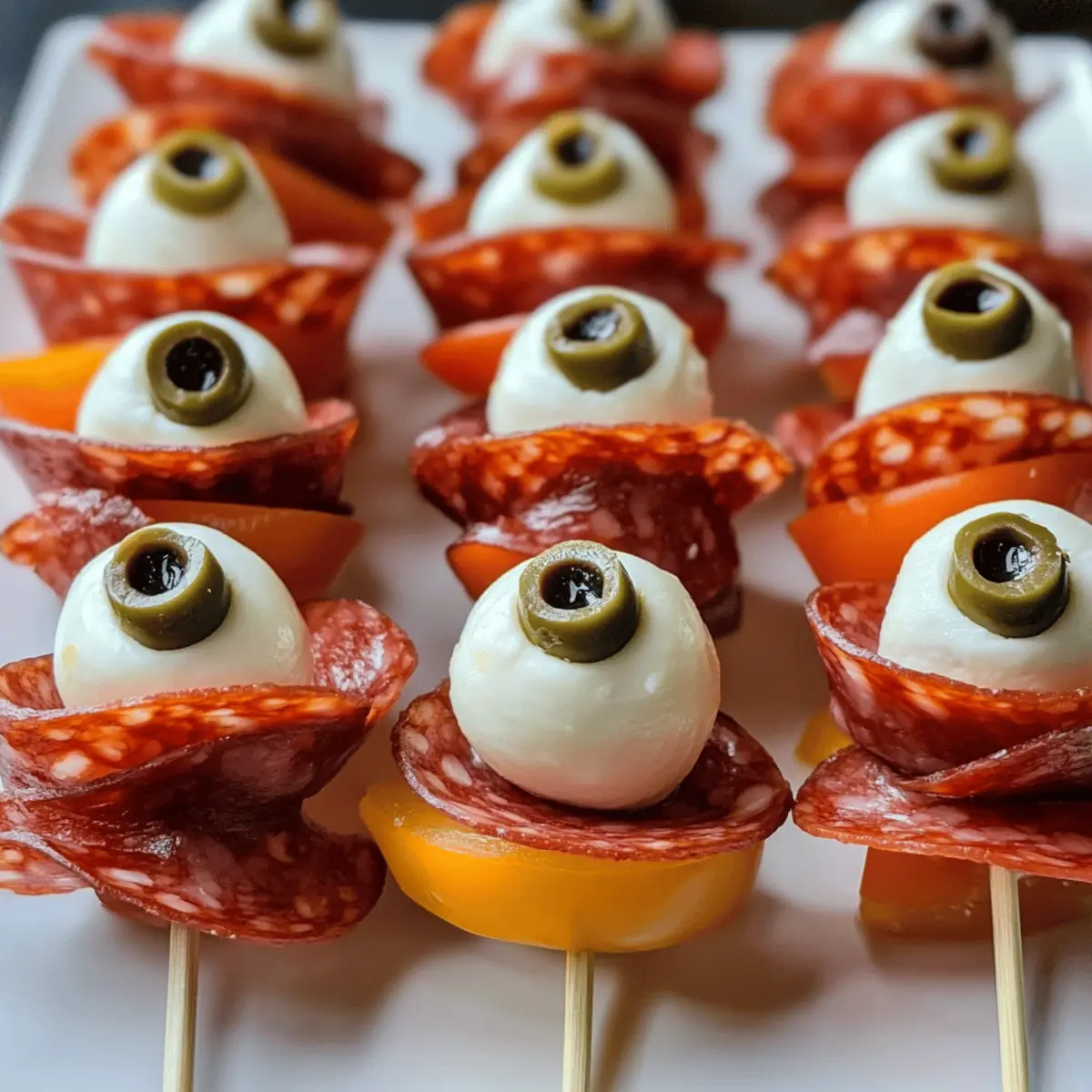 Spaßig und Kreativ: Diese Spießigen Salami-Augen bringen nicht nur ein Lächeln auf die Gesichter deiner Gäste, sondern sind auch ein Augenschmaus für jede Halloween-Feier.