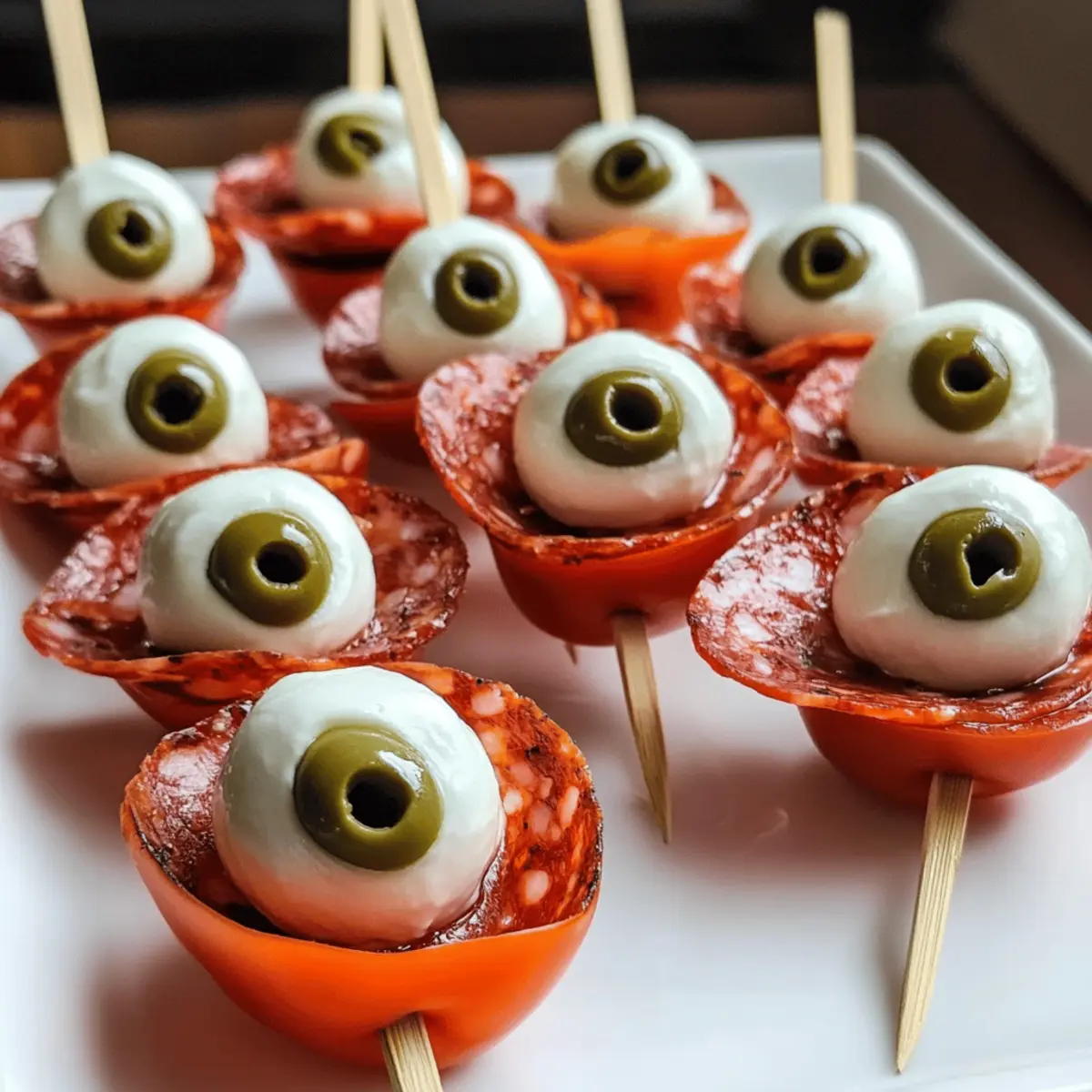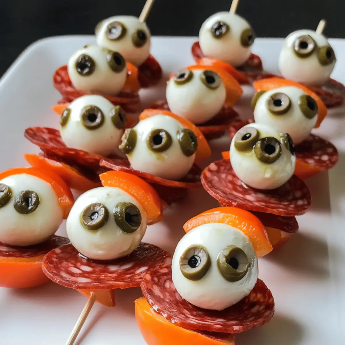 Gruselig und Lecker: Die Kombination aus cremigem Mozzarella und herzhaftem Pfefferoni sorgt für einen unerwarteten Geschmacksschock, während die Oliven den grusligen Look perfektionieren.