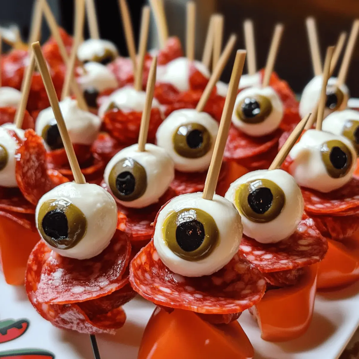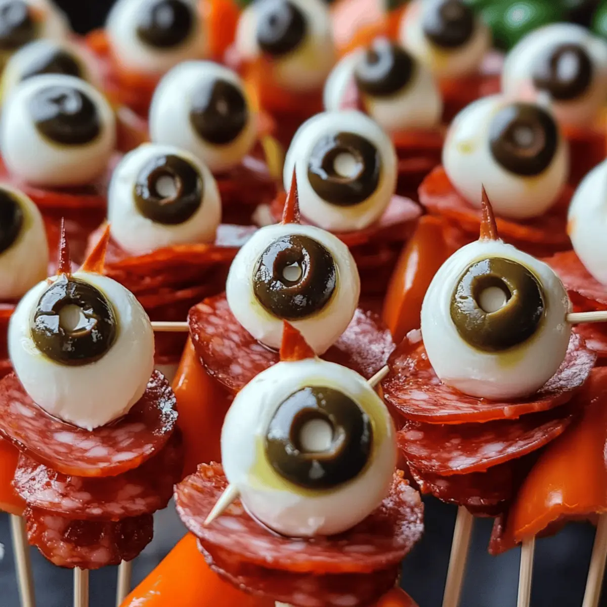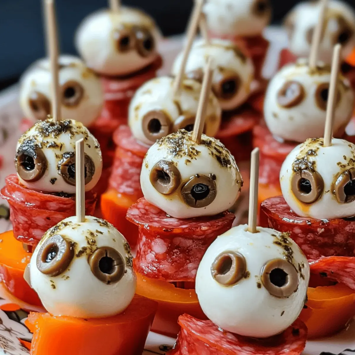 Es ist der Abend von Halloween, und während ich in der Küche stehe, fange ich an, originelle Snacks für meine Gäste zu kreieren. Dabei kommen mir die Spießigen Salami-Augen in den Sinn – eine aufregende und kreative Art, den festlichen Abend zu feiern! Diese schaurigen Appetizer sind nicht nur ein echter Hingucker auf jedem Tisch, sondern auch schnell und einfach zuzubereiten. Mit der köstlichen Kombination aus cremiger Mozzarella, würziger Salami und der unheimlichen Olive, die als „Augen“ fungiert, sind sie ein absolutes Must-Have für jede Halloween-Feier. Bereite dich auf das Staunen deiner Gäste vor – wer könnte diesen spielerischen Snack schon widerstehen? Bist du bereit, deinen eigenen gruseligen Leckerbissen zu zaubern? Warum sind Spießige Salami-Augen ein Hit? Einfachheit ist Trumpf: Die Zubereitung dieser schaurigen Snacks ist kinderleicht und benötigt nur wenige Zutaten, die jeder in seiner Küche hat. Ein Fest für die Augen: Die kreative Präsentation mit Oliven als “Augen” wird deine Gäste verblüffen und sorgt für ein echtes Gesprächsthema! Vielseitige Variationen: Du kannst die Zutaten nach deinem Geschmack anpassen – probiere zum Beispiel verschiedenfarbige Paprika oder Grillkäse aus! Mini Quiches Mit Gemüse sind ebenfalls eine tolle Ergänzung für dein Buffet. Savory und lecker: Der kombinierte Geschmack von salziger Salami und cremiger Mozzarella sorgt für einen unvergesslichen Genussbiss. Perfekt für Partys: Diese kleinen Häppchen lassen sich einfach vorbereiten und machen sich großartig auf jedem Halloween-Tisch – auch perfekt für dein nächstes Fest! Zutaten für Spießige Salami-Augen • Bereite diese aufregenden Halloween-Snacks mit Leichtigkeit zu! Für die Augen Mozzarella-Bällchen – Diese cremigen Bällchen bilden die perfekte Basis für deine Spießigen Salami-Augen. Kalamata-Oliven – Diese salzigen Oliven fungieren als die “Augen” und verleihen jedem Biss einen köstlichen Kick. Für die Dekoration Rote Paprika – Sorgt nicht nur für einen gruseligen Effekt, sondern bringt auch eine süße Note ins Spiel. Für den Geschmack Salami – Diese würzige Wurst ist der Hauptgeschmacksträger und gibt den Spießen einen herzhaften Biss. Variationen Grüne Oliven – Eine tolle Alternative zu Kalamata-Oliven, die ebenfalls einen grimmigen Look bietet. Jalapeños – Füge diese für einen feurigen Twist hinzu, wenn du es schärfer magst! Schritt-für-Schritt-Anleitung für Spießige Salami-Augen Step 1: Mozzarella vorbereiten Schneide vorsichtig kleine Vertiefungen in jede Mozzarella-Kugel. Dieser Schritt dauert etwa 5 Minuten und hilft, Platz für die Olivenaugen zu schaffen. Die Kugeln sollten dabei ganz bleiben und leicht glänzen, um die Frische zu zeigen. Step 2: Augen vorbereiten Hacke die Kalamata-Oliven fein und platziere sie in den vorbereiteten Vertiefungen der Mozzarella-Kugeln. Dies verleiht den Spießigen Salami-Augen ihr gruseliges Aussehen. Nimm dir hierfür ca. 5 Minuten Zeit. Achte darauf, dass die Oliven gut geschichtet sind, um den Effekt zu verstärken. Step 3: Salami schneiden Schneide die Salami in kleine Stücke und dünne Streifen, die einfach auf den Spießen gestapelt werden können. Dies sollte etwa 5 Minuten dauern. Die Salami sollte frisch und gut gewürzt aussehen, um den herzhaften Geschmack der Spieße zu gewährleisten. Step 4: Paprika schneiden Schneide die rote Paprika in kleine, gruselige Stücke, etwa so groß wie die Mozzarella-Kugeln. Dies gibt deinem Snack nicht nur Farbe, sondern auch einen süßen Geschmack. Plane dafür etwa 5 Minuten ein. Die Stücke sollten frisch und knackig aussehen, bereit für die Dekoration. Step 5: Spieße zusammenstellen Beginne mit dem Zusammenbauen der Spieße. Stecke ein Stück rote Paprika auf den Spieß, gefolgt von einem Stück Salami und dann einer Mozzarella-Kugel mit der Olive obendrauf. Wiederhole diesen Prozess für ca. 15 Minuten. Achte darauf, dass die Spieße stabil sind und die Zutaten gut zusammenhalten. Step 6: Kühlen und Servieren Lege die fertig gestalteten Spieße auf ein großes, Halloween-Themen-Brett und stelle sie für mindestens 30 Minuten in den Kühlschrank. Dies sorgt dafür, dass die Spießigen Salami-Augen erfrischend und ansprechend präsentiert werden. Serviere sie auf einem hübschen Tablett, um das gruselige Fest zu perfektionieren. Tipps für die besten Spießigen Salami-Augen Frische Zutaten wählen: Achte darauf, frische Mozzarella-Bällchen und knackige Paprika zu verwenden, um den besten Geschmack und die beste Präsentation zu garantieren. Oliven präparieren: Zerkleinere die Kalamata-Oliven sorgfältig, um sicherzustellen, dass sie gut in die Vertiefungen der Mozzarella passen und den gruseligsten Effekt erzielen. Stabilität ist wichtig: Verwende einen stabilen Spieß, um sicherzustellen, dass die Zutaten gut zusammenhalten. Schichte die Zutaten in der richtigen Reihenfolge für mehr Stabilität. Vorbereitung: Bereite die Spießigen Salami-Augen im Voraus vor, damit die Aromen gut durchziehen können. Vergiss jedoch nicht, sie kurz vor dem Servieren zu kühlen. Variationen ausprobieren: Experimentiere mit verschiedenen Zutaten wie Jalapeños oder verschiedenen Olivensorten, um diesem Halloween-Snack eine persönliche Note zu verleihen. Lagerungstipps für Spießige Salami-Augen Kühlschrank: Halte die vorbereiteten Spieße im Kühlschrank, wo sie bis zu 3 Stunden frisch bleiben. Dies sorgt dafür, dass die Spießigen Salami-Augen kaltem und ansprechend serviert werden. Gefrierschrank: Diese Snacks eignen sich nicht ideal zum Einfrieren, da die Textur von Mozzarella und Oliven nach dem Auftauen beeinträchtigt werden kann. Vermeide daher das Einfrieren, um die Qualität zu erhalten. Wiederverschließen: Wenn du Reste hast, lagere die Spieße in einem luftdichten Behälter im Kühlschrank, um eine optimale Frische zu gewährleisten. Aufwärmen: Solltest du Reste aufwärmen wollen, tun dies am besten im Ofen be