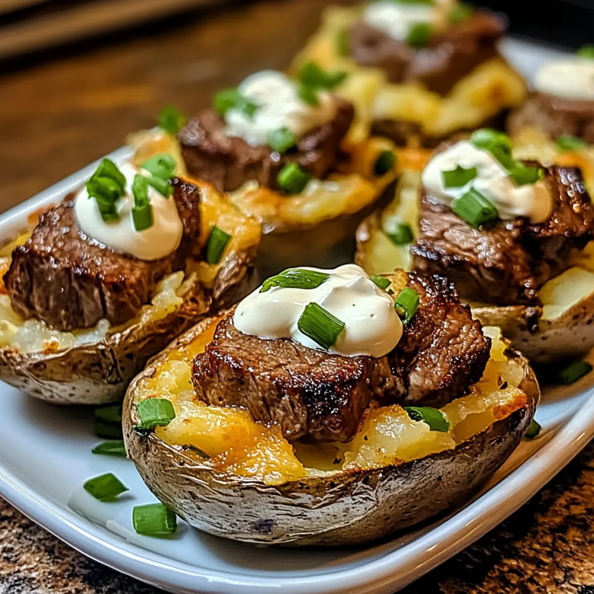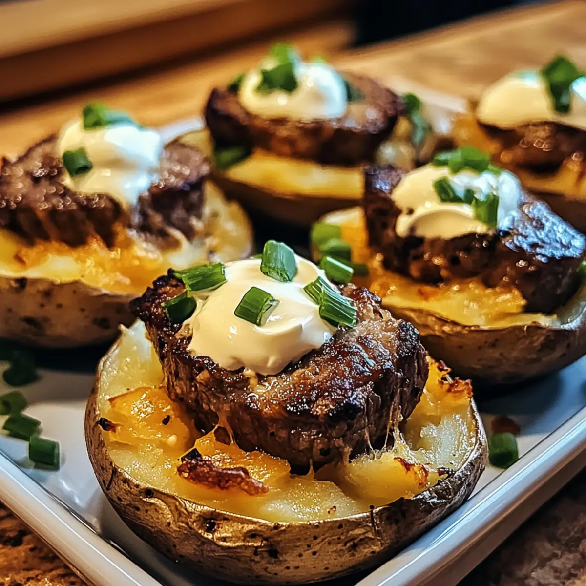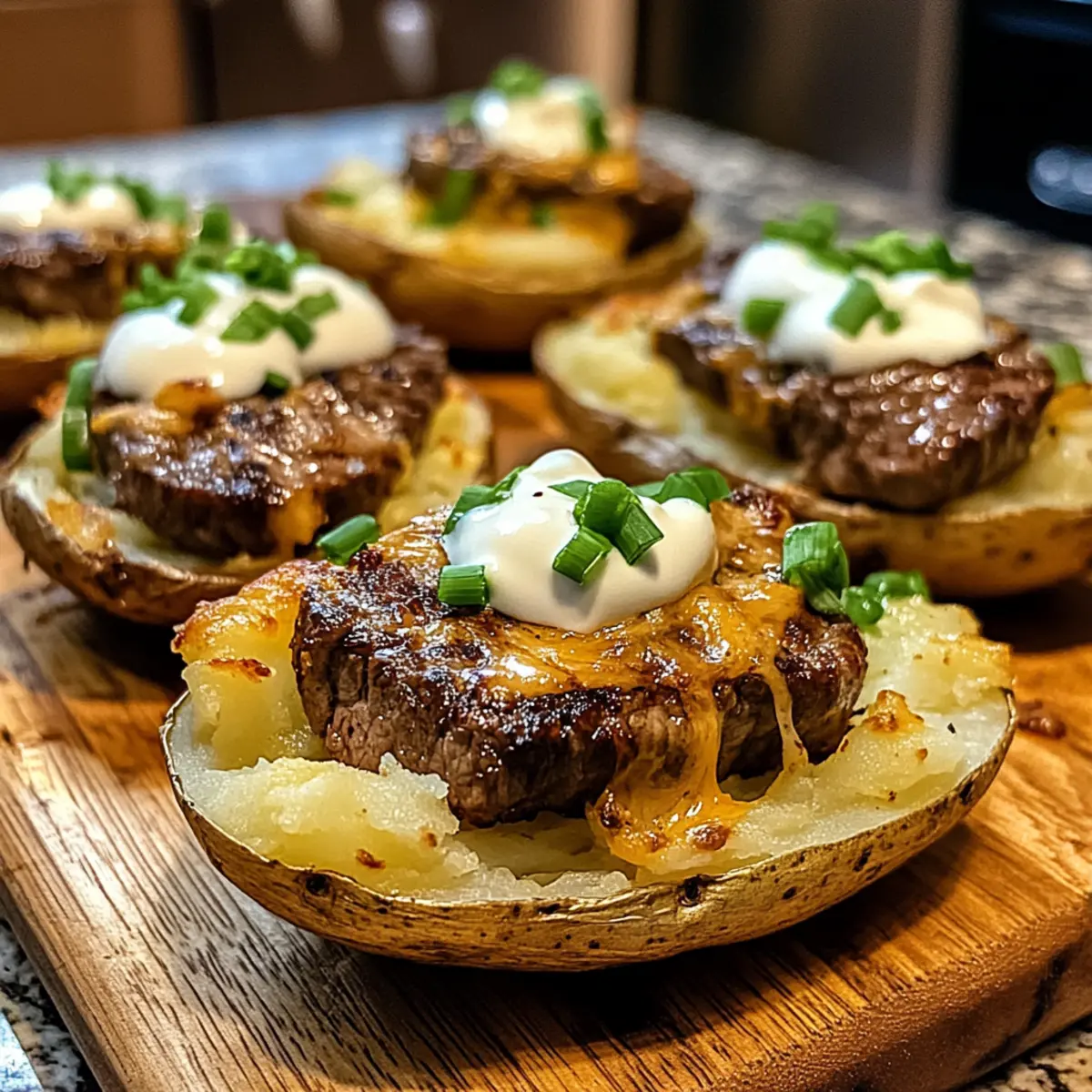 Es gibt Momente, in denen man einfach nach etwas Herzhaftem und Seelenwärmendem verlangt. Die Steakstückchen auf beladenen Ofenkartoffeln bringen genau dieses Gefühl auf den Teller. Diese köstliche Kombination aus saftigen Steakstückchen auf frisch gebackenen Kartoffeln bietet eine wunderbare Mischung aus knuspriger Textur und zufriedener Fülle. Ein großes Plus: Dieses Rezept ist nicht nur einfach zuzubereiten, sondern lässt sich auch vielseitig anpassen – ob mit zartem Hähnchen statt Steak oder einer veganen Variante mit pflanzlichen Käsealternativen. Perfekt für gesellige Abende oder einen entspannten Kochabend zu Hause, sind die Steakstückchen auf beladenen Ofenkartoffeln der Inbegriff von Comfort Food. Und was wird dein persönlicher Topping-Hit sein? Lass dich inspirieren! Warum wirst du dieses Rezept lieben? Einfachheit: Die Zubereitung ist unkompliziert und erfordert nur grundlegende Kochfähigkeiten, sodass jeder mit Hilfe von einfachen Anleitungen schnell ein Gericht zaubern kann. Herzhafter Geschmack: Die Kombination aus saftigen Steakstückchen und lecker geschmolzenem Käse sorgt für einen robusten Geschmack, der jeden begeistert. Vielseitigkeit: Du kannst die Toppings nach deinem Geschmack anpassen – von klassischen Zutaten wie Sauerrahm und frischen Kräutern bis hin zu kreativen Ergänzungen wie Jalapeños oder Guacamole, um das Gericht zu personalisieren. Meal-Prep-freundlich: Perfekt für die Vorbereitung im Voraus – einfach die Kartoffeln und Steakstückchen zubereiten und bei Bedarf schnell aufwärmen! Crowd-Pleaser: Egal, ob beim Familienessen oder einer geselligen Zusammenkunft, diese beladenen Ofenkartoffeln werden garantiert alle begeistern! Steakstückchen auf beladenen Ofenkartoffeln Zutaten Hinweis: Diese Zutatenliste wird dir helfen, die köstlichen Steakstückchen auf beladenen Ofenkartoffeln schnell und einfach zuzubereiten! Für die Kartoffeln: Große Russet-Kartoffeln – Die Basis für ein herzhaftes Gericht. Hinweis: Gut waschen und schruppen. Olivenöl – Verleiht den Kartoffeln einen reichen Geschmack und hilft, die Schale knusprig zu machen. Butter kann hier ebenfalls verwendet werden. Meersalz – Verstärkt den Geschmack der Kartoffeln. Verwende stattdessen auch gerne grobes Salz. Schwarzer Pfeffer – Fügt eine milde Schärfe hinzu. Frisch gemahlener Pfeffer sorgt für ein intensiveres Aroma. Für die Steakstückchen: Rindersteak (z. B. Sirloin oder Ribeye) – Die proteinreiche Hauptzutat, die für Sättigung sorgt. Alternativ kann Hähnchenbrust verwendet werden. Knoblauchpulver – Gibt eine herzhafte Tiefe. Frischer, gehackter Knoblauch sorgt für ein anderes Geschmacksprofil. Räucherpaprika – Fügt eine rauchige Geschmacksnote hinzu. Bei Bedarf kann auch normale Paprika verwendet werden. Worcestershire-Sauce – Bringt Umami und intensiviert den Steakgeschmack. Sojasauce ist eine gute Alternative. Butter (für zusätzliche Reichhaltigkeit) – Optional für cremigere Kartoffeln. Für die vegane Variante weglassen. Für die Toppings: Geriebener Cheddar-Käse – Macht das Gericht geschmolzen und herzhaft. Für eine laktosefreie Option einen pflanzlichen Käse verwenden. Sauerrahm – Gibt eine cremige Note und zusätzlichen Geschmack. Griechischer Joghurt ist eine gesunde Alternative. Gekochte Speckstückchen (optional) – Fügen Textur und zusätzlichen Geschmack hinzu. Für eine vegetarische Variante weglassen. Frisch gehackte grüne Zwiebeln – Bringen Frische und Farbe ins Gericht. Chives sind eine gute Alternative. Nun bist du bereit, deine Steakstückchen auf beladenen Ofenkartoffeln zuzubereiten und deine Lieben mit diesem köstlichen Gericht zu verwöhnen! Schritt-für-Schritt-Anleitungen für Steakstückchen auf beladenen Ofenkartoffeln Step 1: Kartoffeln backen Heize den Ofen auf 200 °C vor. Wasche die großen Russet-Kartoffeln gründlich, steche sie mehrmals mit einer Gabel ein und reibe sie mit Olivenöl, Meersalz und schwarzem Pfeffer ein. Lege die Kartoffeln auf ein Backblech und backe sie 50-60 Minuten lang, bis die Schale knusprig und das Innere weich ist. Step 2: Steakstückchen vorbereiten Während die Kartoffeln backen, schneide das Rindersteak in kleine Würfel und mariniere sie mit Knoblauchpulver, Räucherpaprika, Worcestershire-Sauce, Salz und Pfeffer. Lass die Steakstückchen etwa 10 Minuten ruhen, damit sie die Aromen aufnehmen. In der Zwischenzeit kannst du eine Pfanne auf mittlerer Hitze vorheizen. Step 3: Steakstückchen braten Erhitze etwas Olivenöl in der vorgeheizten Pfanne und füge die marinierten Steakstückchen hinzu. Brate sie 2-3 Minuten pro Seite, bis sie goldbraun sind, aber innen noch saftig bleiben. Achte darauf, die Steakstückchen nicht zu überkochen, um eine zarte Textur zu gewährleisten. Step 4: Ofenkartoffeln direkt belegen Sobald die Kartoffeln fertig gebacken sind, nimm sie aus dem Ofen und schneide sie der Länge nach auf. Fluffe das Innere der Kartoffeln mit einer Gabel und füge etwas Butter hinzu. Achte darauf, den Kartoffeln genügend Platz zu lassen, um die köstlichen Toppings aufzunehmen. Step 5: Kartoffeln belegen Verteile den geriebenen Cheddar-Käse gleichmäßig auf den aufgeschnittenen Kartoffeln, sodass der Käse langsam schmelzen kann. Setze dann die heißen Steakstückchen auf die Kartoffeln und dekoriere sie abschließend nach Belieben mit Sauerrahm, Speckstückchen und gehackten grünen Zwiebeln. Step 6: Servieren und genießen Serviere die Steakstückchen auf beladenen Ofenkartoffeln sofort, solange alles warm ist. Diese Herzhaftigkeit wird deine Familie und Freunde begeistern. Lass sie die verschiedenen Toppings nach ihrem Geschmack anpassen und genieße dieses köstliche Comfort Food! Was passt gut zu Steakstückchen auf beladenen Ofenkartoffeln? Ein perfektes Abendessen erfordert die richtige Balance an Beilagen, um die köstlichen Steakstückchen auf beladenen Ofenkartoffeln zu ergänzen. Frischer Grüner Salat: Ein leicht gewürzter Salat mit kn
