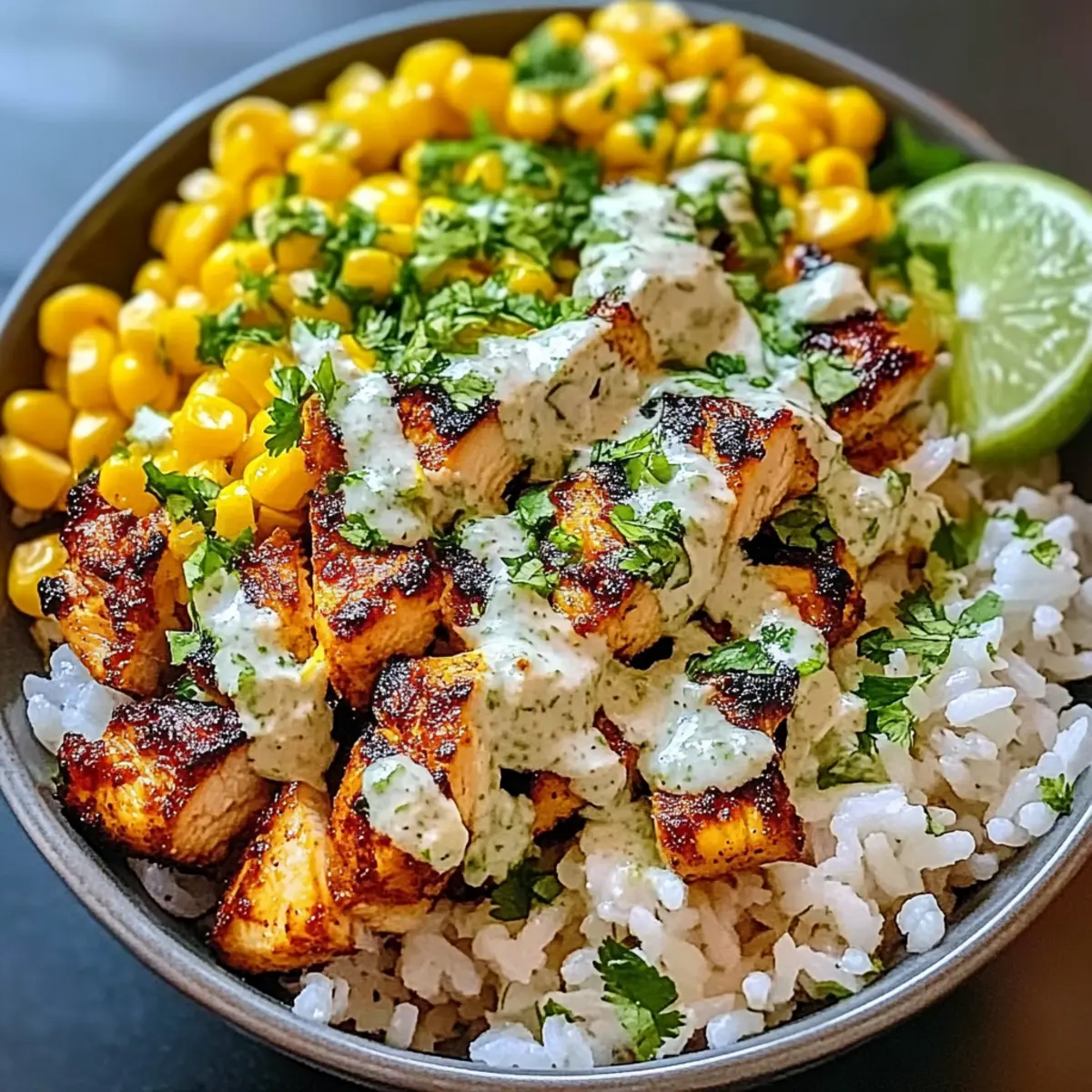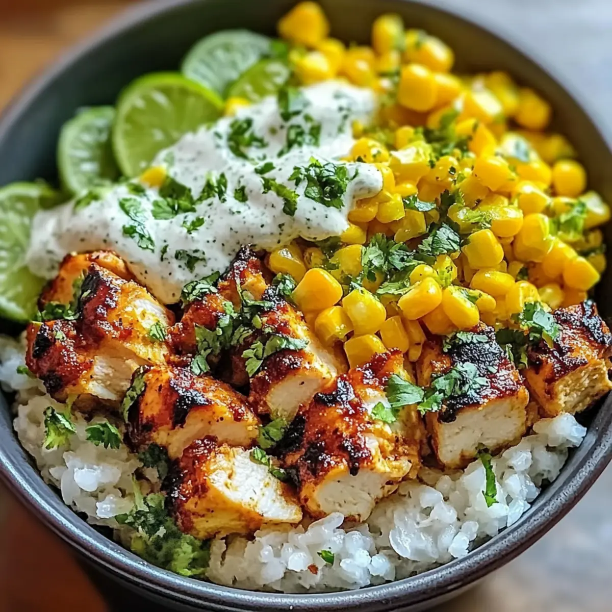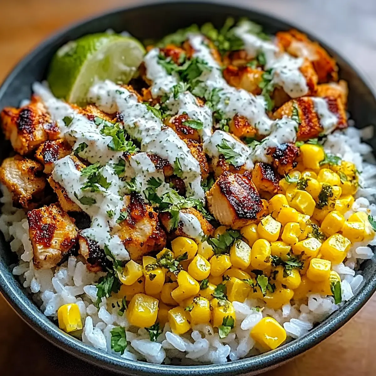 Jedes Mal, wenn ich an die bunten Stände der Straßenverkäufer in Mexiko denke, überkommt mich ein Gefühl von Vorfreude auf die köstlichen Speisen, die dort angeboten werden. Die Straßenmais Hähnchen Reis Schüssel bringt genau dieses Flair direkt in meine Küche. Dieses Gericht kombiniert saftiges Hähnchen, gegrillten Mais und einen cremigen Koriander-Limetten-Dressing zu einem schnellen, gesunden Mahl, das perfekt für Meal Prep geeignet ist. Es schmeckt nicht nur unglaublich gut, sondern wird auch zu einem echten Hit beim Abendessen mit Freunden oder der Familie. Das Beste daran? Du kannst die Zutaten nach deinem Geschmack anpassen, um neue Variationen zu kreieren. Bist du bereit, deine Geschmacksknospen auf eine kleine Reise mitzunehmen? Lass uns gemeinsam loslegen! Warum wird diese Schüssel dein Favorit? Vielseitigkeit: Egal, ob du Hähnchen, Tofu oder sogar Garnelen verwendest, dieses Rezept lässt sich leicht an deine Vorlieben anpassen! Schnell zubereitet: In weniger als 30 Minuten hast du ein köstliches und gesundes Gericht für jede Gelegenheit. Gesunde Zutaten: Mit frischem Gemüse und gesunden Fetten ist diese Schüssel nicht nur lecker, sondern nährt auch deinen Körper. Lebendige Aromen: Die Kombination aus gegrilltem Mais, Limette und Koriander bringt den Geschmack von Mexiko direkt zu dir nach Hause. Perfekt für Meal Prep: Die einzelnen Komponenten können im Voraus zubereitet und schnell zusammengestellt werden, ideal für stressige Wochentage! Familientauglich: Dieses Rezept kommt immer gut an und bringt die ganze Familie am Tisch zusammen – ein echtes Highlight für deine nächsten Zusammenkünfte! Zutaten für Straßenmais Hähnchen Reis Schüssel • Für das Hähnchen Hähnchenbrust – Hauptproteinquelle, die saftigen Geschmack und Sättigung bietet. Gewürze – Verwende eine Mischung aus Paprika, Kreuzkümmel und Knoblauchpulver, um dem Hähnchen extra Geschmack zu verleihen. • Für den Reis Reis – Ideale Basis für die Schüssel, sorgt für Kohlenhydrate und Textur. Alternativen – Quinoa oder Blumenkohlreis können für eine kohlenhydratarme Option verwendet werden. • Für den Straßenmais Frischer Mais – Bringt Süße und Knusprigkeit; gegrillt, um Aromen zu intensivieren. Alternativen – Canned corn ist erlaubt, achte darauf, sie gut abzuspülen. • Für das Dressing Koriander – Frisch und aromatisch, verleiht dem Dressing eine herrliche Brise. Limette – Sorgt für die nötige Säure und hebt die Aromen hervor; frischer Limettensaft ist hier ideal. • Für Toppings Avocado – Fügt gesundes Fett hinzu und sorgt für eine cremige Konsistenz. Jalapeños – Für einen zusätzlichen Schärfekick, wenn gewünscht; einfach nach Geschmack hinzufügen. Mit dieser Kombination aus Zutaten kreierst du eine Straßenmais Hähnchen Reis Schüssel, die nicht nur gesund, sondern auch unglaublich schmackhaft ist! Step-by-Step Instructions für Straßenmais Hähnchen Reis Schüssel Step 1: Hähnchen vorbereiten Verteile die Gewürze gleichmäßig über die Hähnchenbrüste und reibe sie gut ein. Erhitze eine Grillpfanne auf mittlerer Hitze und lege die Hähnchenbrüste hinein. Grillen sie für etwa 6-7 Minuten pro Seite, bis das Fleisch vollständig durchgegart ist und die Säfte klar herauslaufen. Nimm das Hähnchen vom Grill und lasse es kurz ruhen. Step 2: Straßenmais Salsa zubereiten Schneide den gegrillten Mais von den Kolben und lege ihn in eine Schüssel. Füge frisch gehackten Koriander, den Saft einer Limette und eine Prise Salz hinzu. Vermische alles gut, bis der Mais gleichmäßig gewürzt ist. Die Salsa sollte frisch und farbenfroh wirken, um der Straßenmais Hähnchen Reis Schüssel Lebendigkeit zu verleihen. Step 3: Reis kochen Koche den Reis gemäß den Anweisungen auf der Verpackung in einem Topf mit leicht gesalzenem Wasser. Bringe das Wasser zum Kochen und lasse den Reis bei niedriger Hitze für etwa 15 Minuten köcheln, bis er weich ist. Überprüfe, ob das Wasser aufgenommen wurde und der Reis locker und fluffig aussieht, bevor du ihn abgießt. Step 4: Schüssel zusammenstellen Nimm eine große Schüssel und gebe eine Schicht gekochten Reis als Base hinein. Schneide das Hähnchen in Scheiben und lege es über den Reis. Füge die Straßenmais Salsa hinzu und lasse die Farben förmlich miteinander verschmelzen. Step 5: Dressing hinzufügen und servieren Zum Schluss träufel das Koriander-Limetten-Dressing über die Schüssel und garniere sie nach Wunsch mit Avocado und Jalapeños. Serviere die Straßenmais Hähnchen Reis Schüssel sofort, um die besten Aromen und Texturen zu genießen. Was passt gut zur Straßenmais Hähnchen Reis Schüssel? Lass uns deinen Essensplan mit köstlichen Beilagen ergänzen, die die Aromen dieser bunten Schüssel noch weiter zur Geltung bringen. Cremige Guacamole: Diese zarte Avocado-Creme ergänzt die Texturen und füllt die Schüssel mit zusätzlichen gesunden Fetten. Sie bringt eine frische Note, die harmoniert! Eisberg-Salat: Knackig und frisch, bietet er eine erfrischende Abwechslung zu den anderen warmen Komponenten. Ein einfacher Salat ist ideal zum Abrunden des Gerichts. Tortilla-Chips: Diese sorgen für einen knusprigen Kontrast und machen das Essen noch spaßiger. Dipp sie in das Dressing für das ultimative Geschmackserlebnis! Gegrillte Paprika: Süß und rauchig, verleihen sie dem Gericht eine neue Dimension an Geschmack. Einfach grillen und als bunte Beilage servieren. Ein spritziger Limetten-Minz-Smoothie: Dieser erfrischende Drink erfrischt und ist perfekt, um die intensiven Aromen der Schüssel zu ergänzen. Fruchtiger Obstsalat: Mit saftigen Früchten wie Ananas und Mango kannst du den perfekten süßen Abschluss finden. Eine wahre Freude für deinen Gaumen! Mexikanischer Bohnensalat: Eine proteinreiche Beilage, die die Aromen verstärkt und als ideale Ergänzung zu den Aromen der Straße dient. Diese Beilagen sorgen für ein Rundum-Erlebnis, bei dem jeder Biss Freude bereitet! Tip
