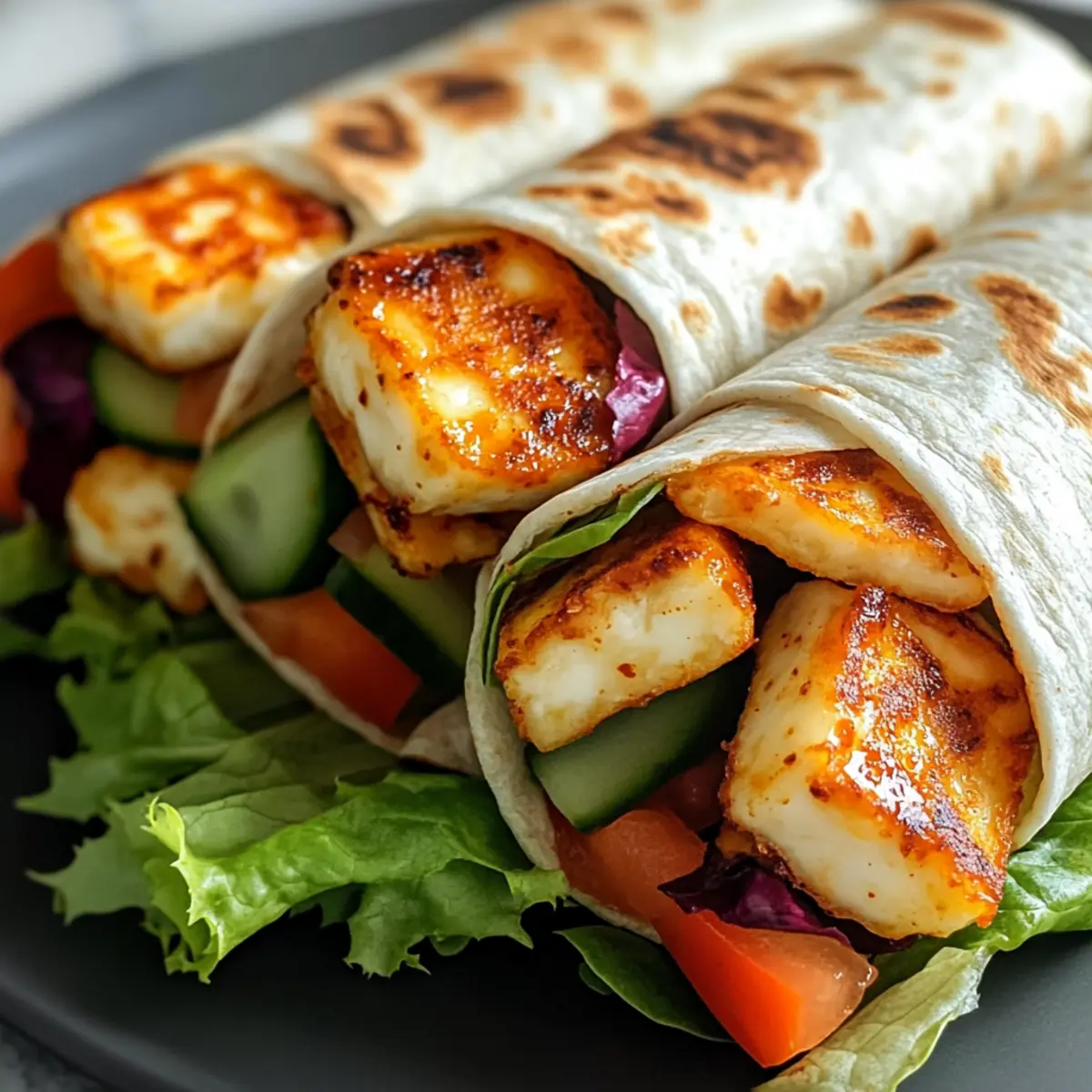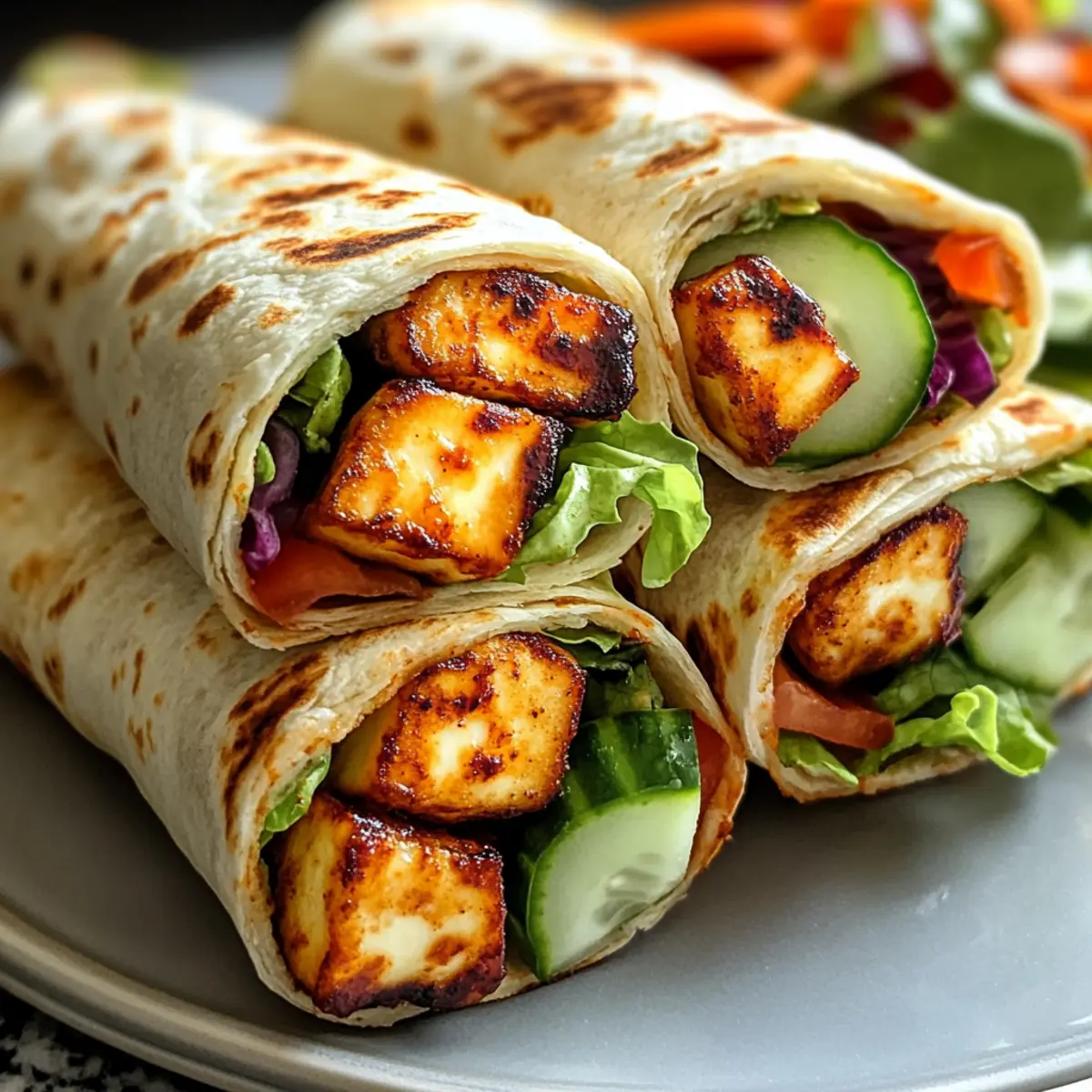Während ich in der Küche stehe und den verführerischen Duft von frisch gebratenem Halloumi einatme, weiß ich, dass etwas Besonderes auf uns wartet. Diese Süße Chili Halloumi Wraps sind nicht nur ein einfaches Rezept – sie sind ein echtes Geschmackserlebnis, das die Sinne belebt. Mit ihrem knusprigen, goldbraunen Halloumi und der perfekten Balance aus süßer Chili-Sauce, bringen sie das Flair eines Gourmetgerichts auf den Tisch, ohne dass Sie stundenlang kochen müssen. Die Kombination von weichen Tortillas und knackigen frischen Gemüsen sorgt für eine Abwechslung, die das Mittagessen zum Vergnügen macht. Ideal für schnelle Mahlzeiten oder als herzhaften Snack – wer kann da widerstehen? Sind Sie bereit, in die Welt der einfachen, aber raffinierten Küche einzutauchen? Warum werden Sie dieses Rezept lieben? Einfachheit: Dieses Rezept ist schnell und unkompliziert und benötigt nur grundlegende Kochfähigkeiten, was es perfekt für hektische Tage macht. Vielfalt: Die Möglichkeiten sind endlos! Experimentieren Sie mit verschiedenen Gemüse- und Aufstrichvariationen, wie z.B. Avocado oder Tzatziki, um Ihren persönlichen Stil zu kreieren. Würziger Genuss: Die Kombination von süßer Chili-Sauce und goldrichtigem Halloumi liefert einen unverwechselbaren Geschmack, der Ihre Geschmacksknospen verzaubert. Schnelle Zubereitung: Mit diesem Rezept können Sie in weniger als 30 Minuten eine köstliche Mahlzeit zaubern, ideal für Sontagsbrunch oder schnelle Abendessen. Gesund und nahrhaft: Füllen Sie Ihre Wraps mit frischem Gemüse, das nicht nur Farbe, sondern auch wertvolle Vitamine bringt. Dieses Gericht ist perfekt, um ein schnelles und nahrhaftes Essen zu genießen. Zutaten für Süße Chili Halloumi Wraps Für den Halloumi Halloumi Käse – sorgt für einen herzhaften Geschmack und knusprige Textur beim Braten. Achten Sie darauf, ihn vor dem Kochen gut abzutrocknen. Für die Sauce Süße Chili Sauce – verleiht den Wraps eine angenehme Süße und eine leichte Schärfe. Zum Verfeinern können Sie etwas Limette oder Ingwer hinzufügen. Für die Tortilla Mehl Tortillas – dienen als Basis für die Wraps; wärmen Sie sie kurz auf, um die Flexibilität zu erhöhen. Für die frischen Gemüse Frisches Gemüse (Salat, Gurke, Paprika) – bringt Crunch und Frische; dünn schneiden für die beste Textur. Für den Aufstrich Griechischer Joghurt oder Hummus – bietet eine cremige Komponente, die die Aromen ausgleicht; wählen Sie Vollfett-Joghurt für mehr Reichhaltigkeit. Für die frischen Kräuter Frische Kräuter (Minze oder Koriander) – intensiviert den Geschmack; die Blätter besser reißen als schneiden, um ein lebendigeres Aroma zu erhalten. Schritt-für-Schritt-Anleitung für Süße Chili Halloumi Wraps Step 1: Halloumi vorbereiten Den Halloumi gut abtrocknen und in 1,5 cm dicke Scheiben schneiden. Dies sorgt dafür, dass der Käse beim Braten schön knusprig wird. Step 2: Halloumi braten Eine antihaftbeschichtete Pfanne bei mittlerer bis hoher Hitze erhitzen und einen Schuss Öl hinzufügen. Die Halloumi-Scheiben für 2-3 Minuten braten, bis sie goldbraun sind. Drehen Sie die Scheiben vorsichtig um, um auch die andere Seite gleichmäßig zu bräunen. Step 3: Chili-Sauce auftragen Sobald die Halloumi-Scheiben gewendet sind, sofort die süße Chili-Sauce großzügig auf die heiße Seite pinseln. Dadurch erhält der Käse zusätzliches Aroma und eine köstliche Glasur. Step 4: Tortillas erwärmen In einer separaten Pfanne die Mehl-Tortillas für etwa 15 Sekunden ohne Öl erhitzen, bis sie weich und geschmeidig sind. Dies erleichtert das Rollen und Falten der Wraps. Step 5: Basis auftragen Aus jeder Tortilla einen Esslöffel griechischen Joghurt oder Hummus in die Mitte geben. Dies sorgt für eine cremige Textur, die den Geschmack der süßen Chili Halloumi Wraps perfekt ergänzt. Step 6: Gemüse schichten Die Tortillas mit frischem, dünn geschnittenem Gemüse wie Salat, Gurke und Paprika belegen. Achten Sie darauf, die Zutaten gleichmäßig zu verteilen, um jeden Bissen geschmackvoll zu gestalten. Step 7: Halloumi platzieren Die glasierten Halloumi-Scheiben diagonal auf das Gemüse legen. Dies gibt dem Wrap nicht nur Struktur, sondern sorgt auch für einen ansprechenden Anblick. Step 8: Wraps rollen Die Tortilla straff rollen und dabei die Seiten einklappen, um die Füllung sicher zu verschließen. So bleiben die köstlichen Aromen in jedem Biss erhalten und Ihre Süße Chili Halloumi Wraps sind bereit zum Genießen. Expertentipps für Süße Chili Halloumi Wraps Crispy Texture: Achten Sie darauf, den Halloumi gut abzutrocknen, bevor Sie ihn braten, um eine perfekte Knusprigkeit zu erreichen. Saucen-Variation: Experimentieren Sie mit verschiedenen Saucen wie Sriracha oder einer Joghurtsauce, um den Wraps unterschiedliche Geschmäcker zu verleihen. Gemüse-Vielfalt: Schneiden Sie das Gemüse dünn für die beste Textur; zusätzlich können Sie auch geröstete Zucchini oder Karotten hinzufügen. Wraps Frisch Halten: Lagern Sie die Zutaten getrennt und stellen Sie die Wraps erst kurz vor dem Servieren zusammen, um die Frische zu gewährleisten. Richtig Erhitzen: Wenn Sie übrig gebliebene Halloumi-Wraps aufwärmen, verwenden Sie eine trockene Pfanne für 1-2 Minuten, um die Knusprigkeit zurückzubringen. Variationen & Alternativen für Süße Chili Halloumi Wraps Lassen Sie Ihrer Kreativität freien Lauf und passen Sie dieses Rezept nach Ihrem Geschmack an. Die Möglichkeiten sind schier endlos! Protein-Vielfalt: Ersetzen Sie den Halloumi durch gegrilltes Hähnchen oder Tofu, um eine andere Proteinquelle anzubieten. Jedes hat seine eigenen Geschmäcker und Texturen, die diesem Wrap eine neue Note geben können. Köstliche Aufstriche: Nutzen Sie ein Avocado-Püree oder Tzatziki als Aufstrich für eine cremige Abwechslung. Diese Varianten bringen nicht nur andere Aromen mit, sondern erhöhen auch den Nährstoffgehalt. Gemüsevariationen: Fügen Sie statt Salat Rucola oder geraspel