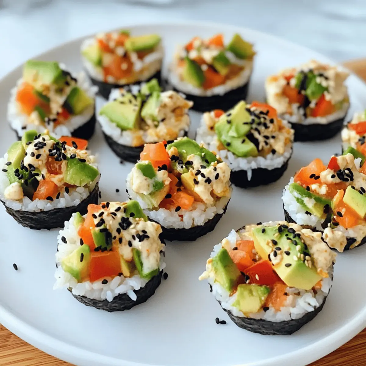 Ich habe kürzlich einen gemütlichen Abend mit Freunden verbracht, als wir über die besten Snacks für unsere nächste Zusammenkunft nachdachten. Plötzlich kam mir die Idee, Sushi-Tassen zuzubereiten – eine perfekte Wahl, die den Geschmack von Sushi in einem einfach zuzubereitenden Format bietet! Diese köstlichen Sushi-Tassen sind nicht nur ein echter Hingucker, sondern auch ideal für alle, die frische, knackige Zutaten lieben und auf unnötigen Aufwand verzichten möchten. Mit ihrem zarten Reisboden, gefüllt mit bunten, knackigen Gemüsen und einer cremigen Avocado, sind sie blitzschnell zubereitet und benötigen kein Backen. Diese vielseitigen Snacks eignen sich hervorragend als kleine Mahlzeit oder als raffinierter Appetitanreger für Partys. Wer hätte gedacht, dass man so viel Spaß und Nährstoffe in einem Gericht vereinen kann? Lass uns gemeinsam entdecken, wie du diese köstlichen Sushi-Tassen zubereitest! Warum sind Sushi-Tassen so beliebt? Einfachheit pur: Die Zubereitung ist ein Kinderspiel und erfordert keine speziellen Kochkünste. Jeder kann mitmachen und seine eigenen Kreationen schaffen. Gesunde Wahl: Vollgepackt mit frischem Gemüse und Avocado, sind diese Sushi-Tassen nicht nur lecker, sondern auch nährstoffreich. Vielseitig: Du kannst die Füllungen nach Belieben variieren – ob mit verschiedenen Gemüsesorten oder Würzsaucen, die Möglichkeiten sind endlos! Perfekt für Partys: Sie sind kleine Kunstwerke, die jeden Tisch aufpeppen und garantiert Gesprächsthemen sind. Wenn du nach weiteren tollen Snacks suchst, schau dir auch meine Sieben Schichten Huehnchen an! Schnell zubereitet: Ideal für einen Last-Minute-Snack oder ein schnelles Mittagessen – schnell mixen, schichten und genießen! Erfrischend: Jeder Biss ist eine Geschmacksexplosion, die dich an die köstlichen Aromen von traditionellem Sushi erinnert. Sushi-Tassen Zutaten • Für die Basis: Sushi-Reis – Grundbaustein der Sushi-Tassen, der für Struktur und Textur sorgt. Vor dem Kochen gründlich abspülen, um überschüssige Stärke zu entfernen. Wasser – Wird zum Kochen des Sushi-Reis verwendet. Achte darauf, dass der Reis vollständig gekocht ist und das Wasser gut aufgenommen wird, um die beste Konsistenz zu erzielen. • Für die Füllung: Fein gehacktes Gemüse – Sorgt für Frische und Crunch. Dazu gehören Karotten, Gurken, Paprika oder Sprossen. Verwende rohverzehrbare Gemüse für die besten Ergebnisse. Gedämpfte Mukimame (geschälte Edamame) – Fügt Protein und einen leicht nussigen Geschmack hinzu. Kann durch normale Edamame ersetzt werden, wenn Mukimame nicht verfügbar ist. Gewürfelte Avocado – Bringt Cremigkeit und Reichhaltigkeit. Verwende etwa die Hälfte einer kleinen Avocado pro Rezept. Soße nach Wahl – Verbessert den Geschmack, Optionen sind Sojasoße, Tamari oder Kokosaminos. An die persönlichen diätetischen Vorlieben anpassen. • Für die spicy Mayo: Mayonnaise – Basis für die spicy Mayo, sorgt für Cremigkeit. Kann durch vegane Mayo ersetzt werden, um eine milchfreie Option zu bieten. Sriracha-Soße – Gibt der Mayo Schärfe. Nach Geschmack anpassen, um die gewünschte Schärfe zu erreichen. Honig – Fügt der spicy Mayo eine süße Note hinzu. Kann durch Agavendicksaft ersetzt werden, um eine vegane Option zu erhalten. Sesamöl – Bringt einen reichhaltigen, nussigen Geschmack in die spicy Mayo. Schwarze Sesamsamen – Dienen als Garnitur für eine attraktive Optik und einen Crunch. Genieße die Zubereitung der Sushi-Tassen, die nicht nur köstlich, sondern auch unglaublich anpassungsfähig sind! Schritt-für-Schritt-Anleitung für Sushi-Tassen Step 1: Reis kochen In einem mittelgroßen Topf den gründlich abgespülten Sushi-Reis mit der entsprechenden Menge Wasser vermischen. Bring das Wasser zum Kochen, reduziere dann die Hitze, decke den Topf ab und lasse den Reis 20 Minuten lang bei schwacher Hitze köcheln, bis er weich und das Wasser vollständig absorbiert ist. Achte darauf, dass der Reis nicht anbrennt. Step 2: Reis abkühlen lassen Nachdem der Sushi-Reis gekocht ist, nimm den Topf vom Herd und lasse den Reis etwas abkühlen. Dies dauert etwa 10 Minuten. Verteile den Reis gleichmäßig in einem großen Behälter, damit er schneller abkühlen kann. Achte darauf, dass er nicht zu schnell abkühlt, damit die Konsistenz erhalten bleibt. Step 3: Reisformen Nimm etwa zwei gehäufte Esslöffel des abgekühlten Reises und drücke ihn fest in jede Muffinform, um kleine Tassen zu bilden. Verwende am besten Silikonmuffinformen, um ein einfaches Entnehmen zu ermöglichen. Stelle die Formen für mindestens 20 Minuten in den Kühlschrank, damit die Reis-Tassen fest werden. Step 4: Füllung vorbereiten In einer großen Schüssel die fein gehackten Gemüsesorten, die gedämpften Mukimame, die gewürfelte Avocado und die Soße deiner Wahl gut vermischen. Achte darauf, die Mischung sanft zu wenden, damit die Avocado nicht zerdrückt wird. Dieser frische Füllmix bringt Crunch und zusätzlichen Geschmack in die Sushi-Tassen. Step 5: Spicy Mayo zubereiten In einer kleinen Schüssel die Mayonnaise mit Sriracha, Honig und Sesamöl gründlich verrühren, bis eine glatte Konsistenz entsteht. Probiere die Mischung und passe die Schärfe nach deinem Geschmack an. Dies gibt den Sushi-Tassen das besondere Etwas und sorgt für eine cremige Note. Step 6: Sushi-Tassen zusammenstellen Sobald die Reis-Tassen fest sind, fülle jede Form großzügig mit der vorbereiteten Gemüsefüllung. Träufle die spicy Mayo darüber und garniere die Tassen mit schwarzen Sesamsamen für einen knackigen Abschluss. Achte darauf, jeden Bissen gut mit Mayo zu versehen für den perfekten Sushi-Tassen-Genuss. Meal Prep für Sushi-Tassen leicht gemacht Diese Sushi-Tassen sind perfekt für vielbeschäftigte Köche, die Zeit sparen möchten! Du kannst die Reis-Tassen bis zu 24 Stunden im Voraus zubereiten und im Kühlschrank aufbewahren, um ihr Aroma und ihre Textur zu bewahren. Drücke dazu den geko
