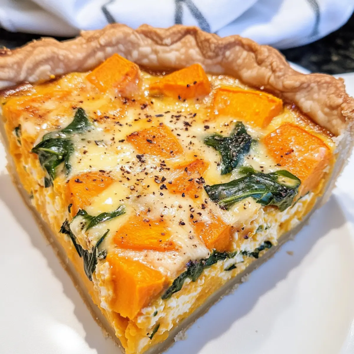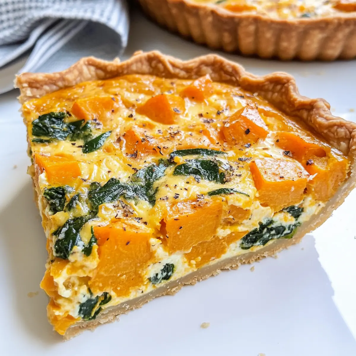 „Konnte das wirklich so einfach sein?“ fragte ich mich, während ich die frischen, bunten Zutaten für meine Süßkartoffel-Quiche schnitt. Dieser herzhafte Auflauf kombiniert zarte Süßkartoffeln und knackigen Spinat in einer goldbraunen Kruste – perfekt für ein entspanntes Brunch oder ein gemütliches Abendessen. Die Süßkartoffel-Quiche ist nicht nur leicht zuzubereiten, sondern auch unglaublich anpassbar: Füge saisonales Gemüse hinzu, um neue Geschmackserlebnisse zu kreieren. Dieses Rezept ist ein wahrer Publikumsmagnet und bereitet Freude auf dem Tisch, ganz ohne kulinarische Hochleistungen. Neugierig, wie einfach der Prozess ist? Lass uns gleich loslegen! Warum ist diese Quiche so besonders? Einfachheit: Die Zubereitung dieser Süßkartoffel-Quiche ist spielend leicht – auch für Anfänger in der Küche! Einfach die Zutaten zusammenstellen und genießen. Anpassungsfähig: Diese Quiche ermutigt dich, kreativ zu sein! Experimentiere mit verschiedenen saisonalen Gemüsesorten oder passe die Gewürze nach deinem Geschmack an. Reichhaltiger Geschmack: Die Kombination aus süßen, gebackenen Süßkartoffeln und herzhaftem Käse sorgt für ein geschmackliches Erlebnis, das alle begeistert. Perfekte Konsistenz: Der leicht cremige Füllung harmoniert fantastisch mit der knackigen Kruste, was für jeden Bissen Freude bereitet. Gesundheitlich wertvoll: Diese Quiche ist nicht nur lecker, sondern auch nahrhaft, reich an Vitamin A und eine großartige Proteinquelle – ideal für ein leichtes Mittagessen oder Brunch. Süßkartoffel-Quiche Zutaten • Wenn du bereit bist, diese köstliche Süßkartoffel-Quiche zuzubereiten, hier sind die Zutaten, die du benötigst: Für die Füllung Süßkartoffeln – geben der Quiche ihren Hauptgeschmack und eine wundervolle Textur. Substitution: Stattdessen kannst du auch Butternut-Kürbis oder Zucchini verwenden. Frischer Spinat – sorgt für Farbe und eine Extraportion Nährstoffe. Hinweis: Kann durch Grünkohl ersetzt oder weggelassen werden, wenn eine dichte Füllung gewünscht ist. Olivenöl – wird verwendet, um das Gemüse anzubraten und Geschmack hinzuzufügen. Substitution: Butter oder ein neutrales Öl sind ebenfalls geeignet. Tiefkühl-Pie- oder Blätterteig – dient als Basis für die Quiche. Hinweis: Vorgefertigte Teige sparen Zeit; du kannst aber auch selbstgemachten verwenden. Vollmilch – hilft der Füllung beim Festwerden. Substitution: Pflanzliche Alternativen wie Mandelmilch sind möglich, aber die Konsistenz könnte variieren. Große Eier – verleihen der Füllung Struktur und Reichhaltigkeit. Hinweis: Unverzichtbar, ein Ersatz würde die Textur stark beeinträchtigen. Geriebener Gruyère-Käse – fügt Cremigkeit und Geschmack hinzu. Substitution: Kann durch einen reifen Cheddar ersetzt oder ganz weggelassen werden für eine vegane Version. Geriebener Parmesan (optional) – verstärkt den Umami-Geschmack. Hinweis: Für eine strenge vegetarische Ernährung weglassen. Knoblauch (frisch oder Pulver) – verleiht der Quiche zusätzliche Tiefe im Geschmack. Hinweis: Optional, je nach Vorliebe. Salz und schwarzer Pfeffer – unverzichtbare Gewürze zur Geschmacksverbesserung. Rauchiger Paprika – sorgt für einen warmen, rauchigen Geschmack. Substitution: Verwende normalen Paprika, wenn es weniger scharf sein soll. Getrockneter Thymian, Rosmarin und Salbei – bieten herzhafte Noten. Hinweis: Italienische Kräutermischung kann ebenfalls verwendet werden. Viel Spaß beim Kochen und Experimentieren mit dieser köstlichen Süßkartoffel-Quiche! Schritt-für-Schritt-Anleitung für die Süßkartoffel-Quiche Step 1: Gemüse anbraten Erhitze in einer Pfanne Olivenöl bei mittlerer Hitze. Gib die gewürfelten Süßkartoffeln hinzu, würze sie mit Salz und lasse sie abgedeckt für etwa 15 Minuten garen, bis sie zart sind. Rühre gelegentlich um, damit sie gleichmäßig gegart werden. Übertrage die gekochten Süßkartoffeln in eine Schüssel und lasse den Spinat in der gleichen Pfanne kurz zusammenfallen, bevor du ihn zu den Süßkartoffeln gibst. Step 2: Ofen vorheizen Heize deinen Ofen auf 190°C (375°F) vor. Während der Ofen aufheizt, rolle den kurzen Teig in einer gefetteten 25 cm (10 Zoll) Quiche- oder Pie-Form aus. Achte darauf, dass der Teig gleichmäßig in der Form verteilt ist und die Ränder gut anliegen. Die Vorbereitung des Teigs ist entscheidend für die Basis deiner köstlichen Süßkartoffel-Quiche. Step 3: Füllung zubereiten In einer großen Schüssel verquirlst du die Vollmilch, die Eier, getrocknete Kräuter, Rauchpaprika, Knoblauch, Salz und Pfeffer. Vergewissere dich, dass alles gut vermischt ist, damit die Aromen gleichmäßig verteilt sind. Diese Mischung wird die cremige Basis deiner Süßkartoffel-Quiche bilden und verleiht ihr den reichen Geschmack, den alle lieben werden. Step 4: Quiche zusammenstellen Platziere die Süßkartoffeln und den Spinat gleichmäßig auf dem Teigboden. Streue den geriebenen Gruyère-Käse darüber und gieße die vorbereitete Eier-Milch-Mischung vorsichtig darauf. Achte darauf, die Füllung nicht über den Rand des Teigs hinaus zu füllen, damit sie beim Backen nicht überläuft und du eine schöne, goldbraune Oberfläche erhältst. Step 5: Backen Backe die Süßkartoffel-Quiche für 30-35 Minuten im vorgeheizten Ofen. Die Quiche ist fertig, wenn die Oberfläche goldbraun ist und die Füllung leicht wackelt, aber nicht mehr flüssig ist. Lass die Quiche nach dem Backen für 10-15 Minuten abkühlen, damit sich die Aromen setzen und die Füllung stabiler wird, bevor du sie in Stücke schneidest und servierst. Was passt gut zur Süßkartoffel-Quiche? Die perfekte Ergänzung zu einem köstlichen Brunch kann so einfach sein und deine Geschmacksknospen erfreuen. Frischer Gartensalat: Ein leichter, knackiger Salat mit saisonalen Gemüsen sorgt für frische Akzente und harmoniert wunderbar mit der herzhafter Quiche. Cremige Avocado-Toast: Das cremige, buttrige Gefühl der Avocado zusamm