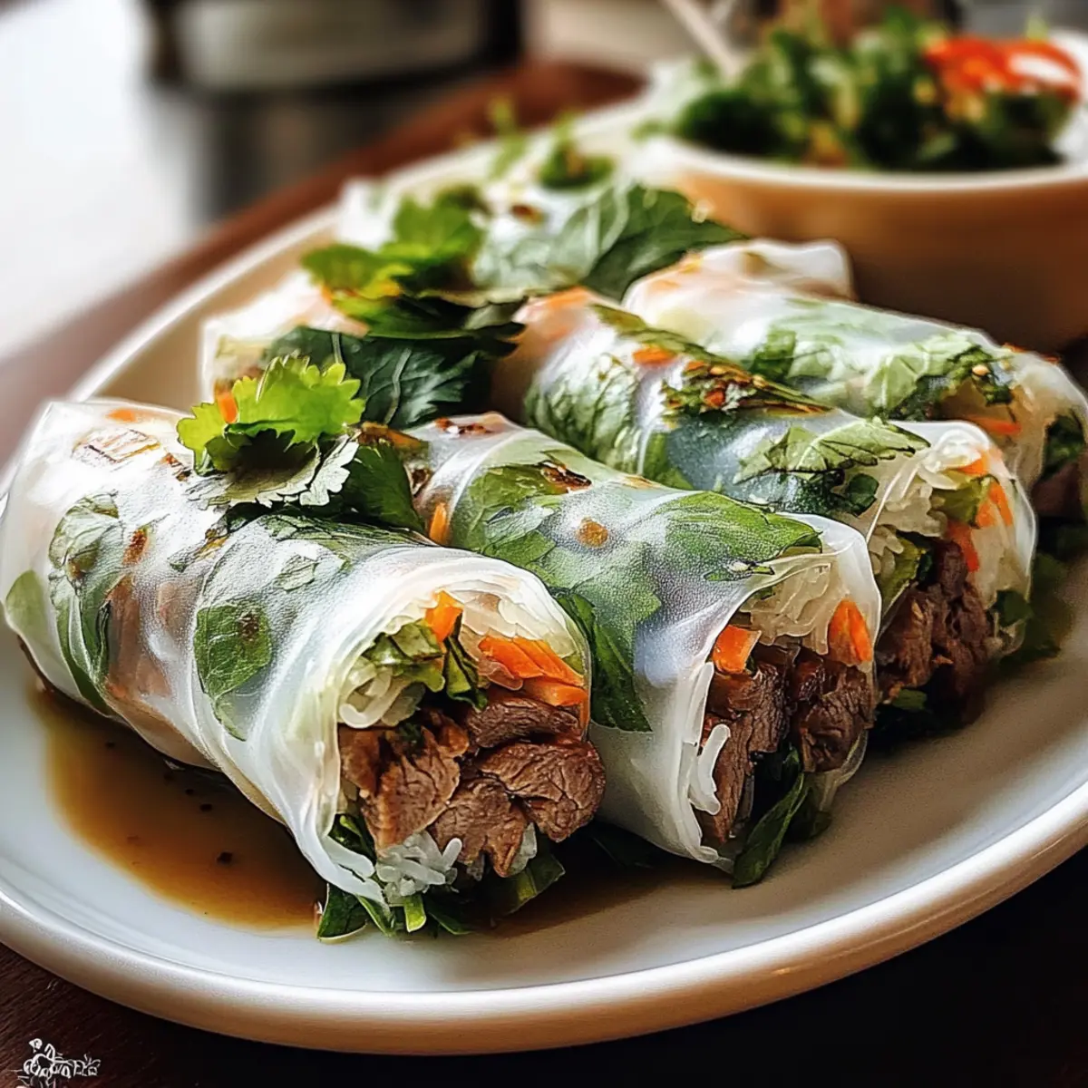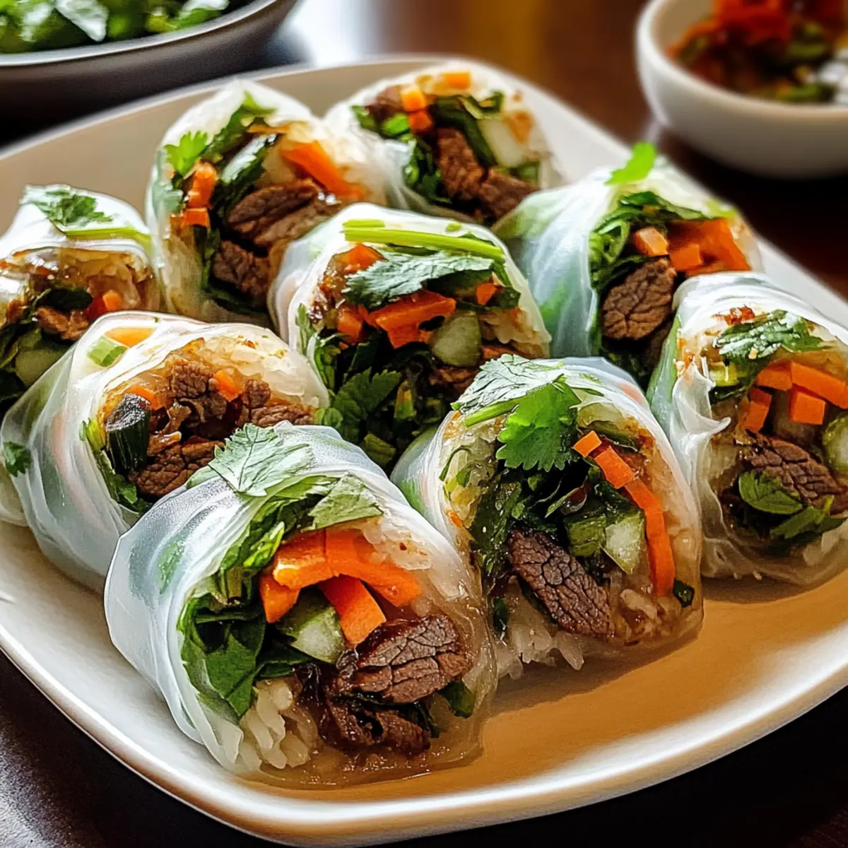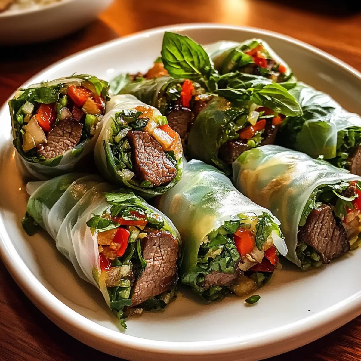 Als ich das erste Mal die Straßen von Bangkok entlang schlenderte, wurden meine Sinne von einem köstlichen Aroma verzaubert. Die Thai-Basilikum-Rinderrollen sind genau das Gericht, das mir in den Sinn kam – frisch, würzig und unglaublich einladend! Diese glutenfreien Snacks bieten nicht nur eine schnelle Zubereitungszeit von etwa 30 Minuten, sondern sind auch vollkommen anpassbar, ideal für jedes Familienessen oder einen entspannten Abend mit Freunden. Egal, ob Sie nach einem gesunden Snack oder einem beeindruckenden Gericht für Ihre nächste Dinnerparty suchen, diese Rinderrollen sind die Antwort. Neugierig, wie Sie Ihren eigenen perfekten Biss kreieren können? Lassen Sie uns gleich loslegen! Warum sind Thai-Basilikum-Rinderrollen so beliebt? Schnelle Zubereitung: In nur 30 Minuten sind diese Rinderrollen fertig, perfekt für geschäftige Tage oder überraschende Gäste! Gesundes Vergnügen: Mit frischen Kräutern und proteinreichem Rindfleisch sind sie ein nahrhafter Snack oder eine leichte Mahlzeit. Anpassbare Kreationen: Variieren Sie die Füllung nach Ihrem Geschmack – probieren Sie statt Rindfleisch auch Geflügel oder vegetarische Alternativen! Einzigartiger Geschmack: Die Kombination aus würzigem Fleisch, frischem Basilikum und einer süß-sauren Sauce ist ein Gaumenschmaus. Gesellige Unterhaltung: Ob für eine Dinnerparty oder einen entspannten Abend mit Freunden, diese Rolls bringen alle zusammen. Eine wahre Gaumenfreude, die leicht nachzubereiten ist! Zutaten der Thai-Basilikum-Rinderrollen • Die perfekten Zutaten für ein gesundes und schnelles Gericht! Für die Füllung: Gemüseöl – Fügt Feuchtigkeit hinzu und hilft beim Kochen. Substitution: Verwenden Sie neutrales Öl wie Raps- oder Traubenkernöl. Knoblauch – sorgt für ein aromatisches Geschmackserlebnis. Prep-Hinweis: Frisch gehackten Knoblauch verwenden für die besten Ergebnisse. Schalotte – liefert einen milden, süßen Geschmack. Substitution: Zwiebel kann ebenfalls verwendet werden, falls Schalotten nicht verfügbar sind. Rinderhackfleisch (85/15) – Hauptquelle für Protein, bringt reichhaltigen Geschmack. Substitution: Mageres Rindfleisch oder Alternativen wie Putenhack, Pilze, Tofu oder Tempeh sind möglich. Sojasauce – verleiht Tiefe und salzigen Geschmack. Hinweis: Wählen Sie glutenfreie Sojasauce, falls erforderlich. Austernsauce – bietet Süße und herzhaften Geschmack; bereichert das Fleisch-Aroma. Substitution: Vegane Austernsauce oder eine soja-basierte Bratensoße eignen sich für eine vegetarische Variante. Brauner Zucker – balanciert die Aromen mit Süße. Substitution: Honig oder Ahornsirup funktionieren ebenfalls, wobei die gewünschte Konsistenz zu beachten ist. Frisch gepresster Limettensaft – bringt Helligkeit und verstärkt die Aromen. Hinweis: Frisch gepresst ist am besten für den authentischen Geschmack. Chili-Flocken oder Thai-Chili – sorgt für Schärfe und Würze. Hinweis: Passen Sie die Menge je nach Vorliebe für Schärfe an. Frische Thai-Basilikumblätter – bringt aromatische Frische und Geschmack. Substitution: Minze oder Koriander können für unterschiedliche Geschmacksrichtungen verwendet werden. Für die Hülle: Reispapier – umschließt die Füllung und sorgt für eine zarte Textur. Hinweis: Verwenden Sie dünnere vietnamesische Blätter für die besten Ergebnisse. Gemüse-Zusätze (optional) – Karotten, Gurken und Frühlingszwiebeln sorgen für Crunch und frische Aromen. Schritt-für-Schritt-Anleitung für Thai-Basilikum-Rinderrollen Schritt 1: Öl erhitzen und aromatische Basis schaffen Erhitzen Sie 1 Esslöffel Gemüseöl in einer großen Pfanne bei mittlerer Hitze. Fügen Sie 2 gehackte Zehen Knoblauch und 1 gewürfelte Schalotte hinzu und braten Sie sie für etwa 1 Minute, bis sie duften und leicht goldbraun sind. Achten Sie darauf, die Hitze nicht zu hoch zu stellen, um ein Anbrennen zu vermeiden. Schritt 2: Rinderhackfleisch anbraten Geben Sie 454 g Rinderhackfleisch in die Pfanne und braten Sie es an, bis es vollständig durchgegart und braun ist, was etwa 5-7 Minuten dauert. Zerbrechen Sie das Fleisch mit einem Holzlöffel, während es kocht, um eine gleichmäßige Bräunung zu gewährleisten und Klumpen zu vermeiden. Schritt 3: Soßen und Gewürze hinzufügen Rühren Sie 2 Esslöffel Sojasauce, 1 Esslöffel Austernsauce, 1 Teelöffel braunen Zucker und eine Prise Chili-Flocken in die Pfanne. Lassen Sie die Mischung 2-3 Minuten köcheln, bis die Aromen gut miteinander verschmolzen sind und die Füllung leicht glänzend aussieht. Entfernen Sie die Pfanne dann vom Herd. Schritt 4: Kräuter und Limettensaft einrühren Fügen Sie den Saft von 1 frischen Limette und eine Handvoll frisch gehackte Thai-Basilikumblätter zur Fleischmischung hinzu. Rühren Sie alles gut um und lassen Sie die Füllung leicht abkühlen, während Sie die Reispapierplatten vorbereiten. Dies verhindert, dass die Füllung die Blätter durchweicht. Schritt 5: Reispapier vorbereiten Füllen Sie eine große flache Schüssel mit warmem Wasser. Tauchen Sie die Reispapierblätter 5-10 Sekunden lang ein, bis sie leicht weich sind, und legen Sie sie dann vorsichtig auf eine saubere Arbeitsfläche. Stellen Sie sicher, dass die Blätter nicht zu lange im Wasser bleiben, um ein Reißen zu vermeiden. Schritt 6: Füllung einfüllen Platzieren Sie 2-3 Esslöffel der Rinderfüllung am unteren Drittel des Reispapiers. Wenn gewünscht, fügen Sie zusätzlich frisches Gemüse wie Karotten oder Gurken hinzu, um Geschmack und Crunch zu bieten. Achten Sie darauf, dass genug Platz zum Falten bleibt. Schritt 7: Rollen der Rinderrollen Falten Sie das untere Ende des Reispapiers über die Füllung, tucken Sie die Seiten ein und rollen Sie die Rolle vorsichtig, aber straff auf. Achten Sie darauf, dass alles gut verpackt ist, damit nichts herausfällt. Wiederholen Sie diesen Schritt mit den restlichen Reispapierblättern und der Füllung. Schritt 8: Servieren und genießen Nach dem Rollen kön