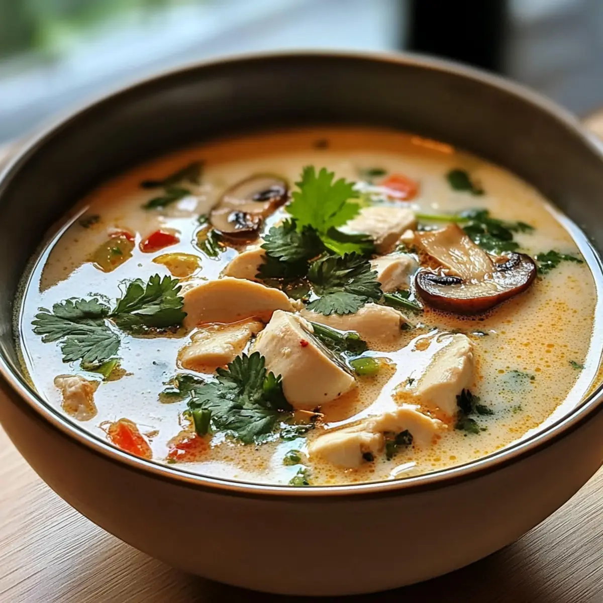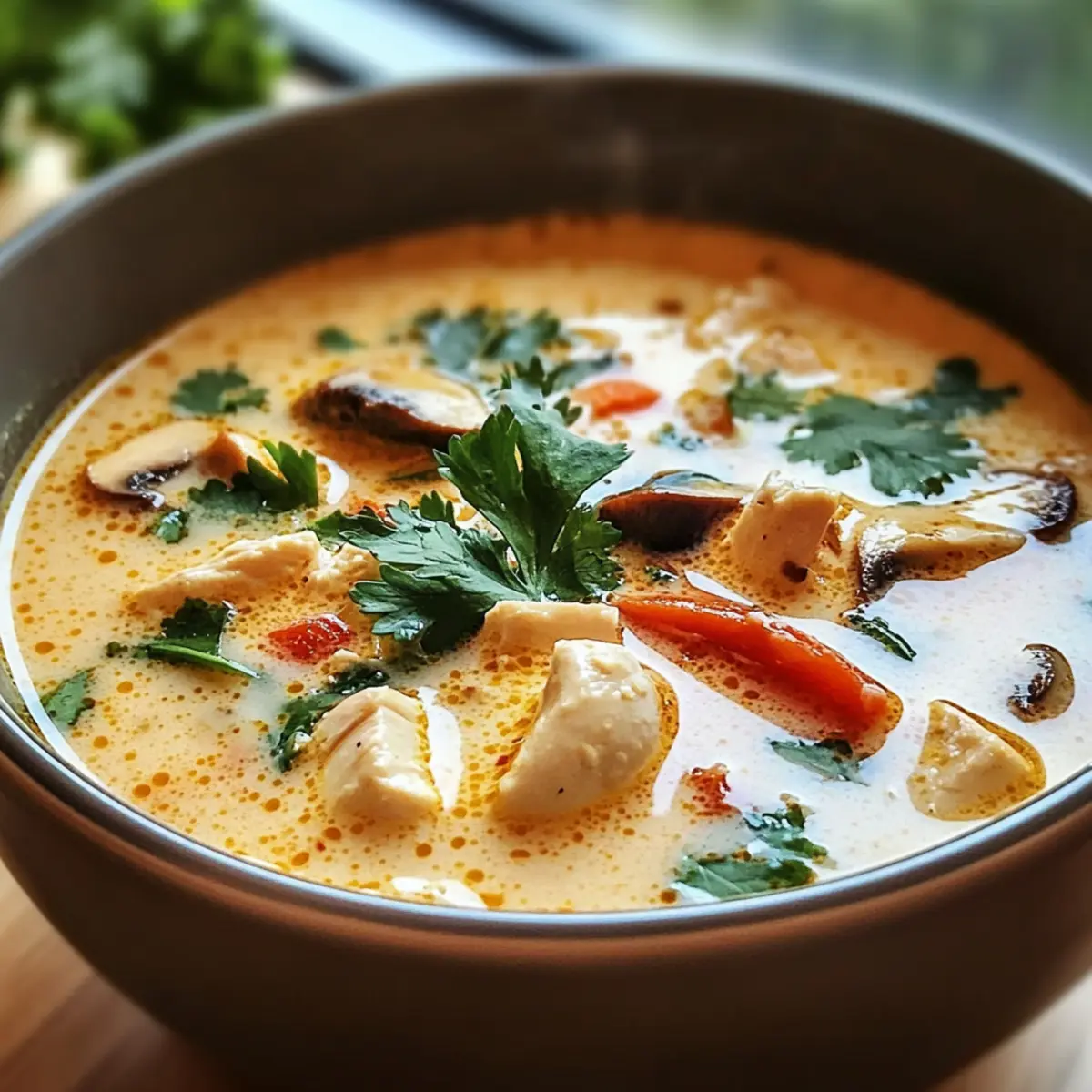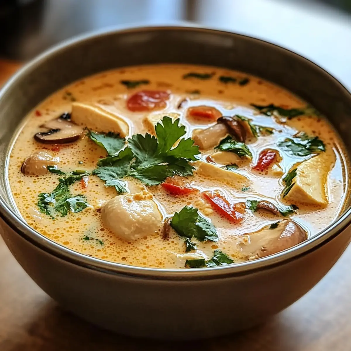 Es war ein lauer Abend, als der einladende Duft von frisch zubereiteter Tom Kha Gai Suppe durch meine Küche zog. Diese aromatische thailändische Kokosnuss-Hühnersuppe ist nicht nur ein Komfortessen, sondern auch eine wahrhaft geschmackliche Umarmung für die Seele. Mit einer perfekt abgestimmten Kombination aus scharfen Chilis, erfrischendem Zitronengras und zartem Hühnchen in einer cremigen Kokosmilchbasis ist sie der ideale Begleiter nach einem langen Tag. Die Vorteile dieser Suppe sind dennoch nicht nur der Geschmack und die Wärme – sie lässt sich auch schnell zubereiten und ist förderlich für verschiedene diätetische Vorlieben. Egal, ob Sie sich für F:Schrimps oder Tofu entscheiden, die Tom Kha Gai Suppe wird immer begeistern. Neugierig, wie Sie diese herrliche Suppe selbst zaubern können? Warum ist Tom Kha Gai Suppe ein Muss? Aromatischer Genuss: Die Tom Kha Gai Suppe ist ein Fest für die Sinne, das Sie in die thailändische Küche entführt. Schnelle Zubereitung: In nur 30 Minuten können Sie diese köstliche, cremige Suppe zaubern. Vielseitigkeit: Egal, ob Sie Hähnchen, Scampi oder Tofu bevorzugen, diese Suppe passt sich ganz Ihren Wünschen an. Gesunde Zutaten: Reich an gesunden Fetten aus der Kokosmilch und vollgepackt mit frischen Kräutern, ist es nicht nur schmackhaft, sondern auch nahrhaft. Perfekte Wärme: Die harmonische Balance aus süß, sauer und scharf macht jede Schale zu einer warmen Umarmung nach einem langen Tag. Finden Sie hier mehr über weitere köstliche Kokosmilch-Rezepte. Tom Kha Gai Suppe Zutaten Für die Brühe Kokosmilch – sorgt für eine cremige Basis und verleiht der Suppe einen reichen Geschmack. Hähnchenbrust – dient als Hauptproteinquelle und macht die Suppe herzhaft. Fischsoße – verstärkt die umami Tiefe; verwenden Sie glutenfreie Fischsoße für eine glutenfreie Variante. Für die Aromen Zitronengras – bringt einen frischen, zitronigen Duft; alternativ können Sie Limettenabrieb verwenden. Chili – fügt der Suppe Wärme und Geschmack hinzu, passen Sie die Menge je nach Schärfewunsch an. Koriander – sorgt für frische Kräuternoten und ist ideal als Garnitur. Für die Füllung Pilze (z.B. Champignons) – geben der Suppe Textur und erdige Aromen; Sie können jede frische Pilzvariante verwenden. Optional Tofu oder Scampi – nutzen Sie diese als Alternative zur Hähnchenbrust, um die Suppe anzupassen und verschiedene Geschmacksrichtungen zu erzielen. Die Tom Kha Gai Suppe ist ein kulinarisches Erlebnis, das Ihren Gaumen verwöhnt und gleichzeitig anpassbar für diätetische Bedürfnisse ist. Schritt-für-Schritt-Anleitung für Tom Kha Gai Suppe Step 1: Vorbereitung Beginnen Sie mit dem Schneiden der Hähnchenbrust in dünne Scheiben und den Champignons in Scheiben. Hacken Sie das Zitronengras in kleine Stücke und schneiden Sie den Koriander grob. Diese Vorbereitungen sind entscheidend, um sicherzustellen, dass die Aromen in der Tom Kha Gai Suppe gleichmäßig verteilt sind und schnell beim Kochen weitergegeben werden. Step 2: Brühe zubereiten Erhitzen Sie in einem großen Topf bei mittlerer Hitze die Kokosmilch. Fügen Sie die geschnittene Hähnchenbrust und das Zitronengras hinzu und bringen Sie alles zum Kochen. Reduzieren Sie die Hitze auf niedrig und lassen Sie die Brühe 10-15 Minuten köcheln, bis das Hähnchen vollständig durchgegart und zart ist. Step 3: Aromen hinzufügen Nachdem das Hähnchen gar ist, rühren Sie die gehackten Chilis und die Pilze in den Topf. Kochen Sie alles für weitere 5-7 Minuten, bis die Pilze weich sind und ihre Aromen entfalten können. Diese Zeit hilft der Tom Kha Gai Suppe, ihren charakteristischen Geschmack zu entwickeln und die perfekten Texturen zu erreichen. Step 4: Würzen Geben Sie die Fischsoße in die Suppe und schmecken Sie die Mischung ab; passen Sie die würzigen Komponenten nach Ihrem Geschmack an. Lassen Sie die Suppe 2-3 Minuten weiter köcheln, damit sich alle Aromen zu einem harmonischen Erlebnis vereinen können. Dies trägt zur vollmundigen Tiefe der Tom Kha Gai Suppe bei. Step 5: Fertigstellen und Servieren Nehmen Sie den Topf vom Herd und rühren Sie den grob gehackten Koriander unter die heiße Suppe. Servieren Sie die Tom Kha Gai Suppe sofort in tiefen Schalen und garnieren Sie sie mit zusätzlichen frischen Kräutern für einen farbenfrohen und einladenden Look. Genießen Sie die Wärme und Aromen dieser thailändischen Köstlichkeit! Lagerungstipps für Tom Kha Gai Suppe Kühlschrank: Bewahren Sie die Tom Kha Gai Suppe in einem luftdichten Behälter für bis zu 3-4 Tage auf. Gently reheaten before serving, avoiding boiling to keep the coconut milk creamy. Gefrierschrank: Stellen Sie sicher, dass die Suppe vollständig abgekühlt ist, bevor Sie sie in einem gefrierfesten Behälter für bis zu 2-3 Monate einfrieren. Lassen Sie etwas Platz, da sich die Flüssigkeit ausdehnt. Wiederv Erwärmen: Stellen Sie sicher, dass Sie die Suppe langsam erwärmen, um die Aromen zu bewahren. Verwenden Sie dazu eine niedrige Hitze auf dem Herd oder die Mikrowelle in kurzen Intervallen. Vorbereitung: Sie können alle Zutaten im Voraus vorbereiten, bis zur letzten Kochphase, und dann die Suppe frisch zubereiten, wenn Sie bereit sind, sie zu genießen. Expert Tips für Tom Kha Gai Suppe Kokosmilch schonend behandeln: Vermeiden Sie es, die Kokosmilch zu kochen, da sie sonst gerinnen kann. Simmern Sie sie sanft, um die cremige Textur zu bewahren. Abschmecken nicht vergessen: Probieren Sie die Suppe während des Kochens; passen Sie die Mengen des Fischsoße und der Chilis nach Ihrem Geschmack an, um die perfekte Balance zu finden. Aromen entfalten lassen: Lassen Sie die Tom Kha Gai Suppe nach dem Kochen ein paar Minuten ruhen. Das sorgt dafür, dass sich die Aromen optimal miteinander verbinden. Variationen ausprobieren: Experimentieren Sie mit verschiedenen Proteinen wie Tofu oder Scampi, um die Suppe an Ihre Vorlieben anzupassen. Frische Kräuter für den Kick: Garnieren Sie die S