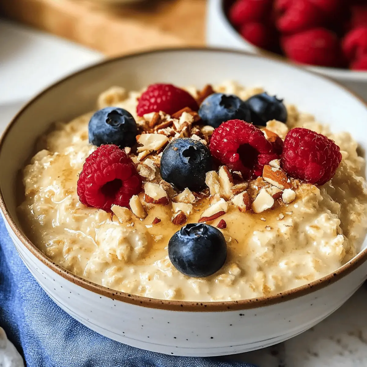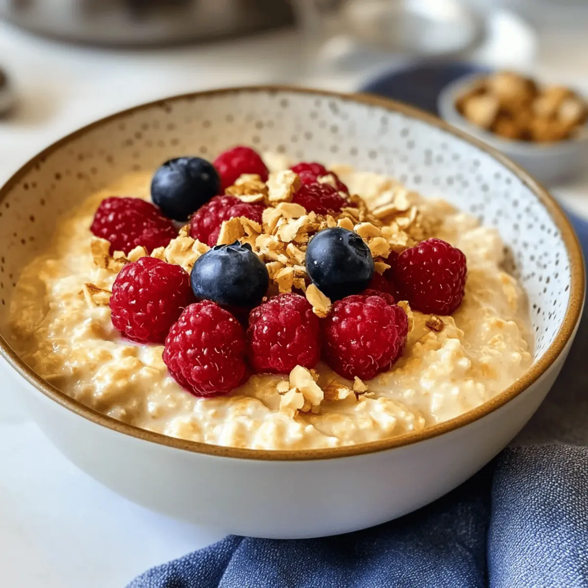 Als ich letztens in der Küche stand und nach einer schnellen, leckeren Frühstücksidee suchte, fiel mir die Kombination von Hafer und Vanillepudding ein – perfekt für all jene, die es eilig haben, aber nicht auf Genuss verzichten möchten! Die Vanillepudding Hafer sind eine verlockende Möglichkeit, um in den Tag zu starten. Mit nur drei Zutaten zubereitet, sind sie nicht nur in unter 10 Minuten fertig, sondern auch ein wunderbares, gesundes Frühstück, das ganz ohne Zucker auskommt. Diese cremige Mischung vereint die herzhaften Aromen von Haferflocken mit dem süßen Geschmack von Vanillepudding und sorgt so für ein Frühstück, das sowohl tröstend als auch befriedigend ist. Welches Topping würden Sie ausprobieren? Warum sind diese Hafer so besonders? Einfachheit: Mit nur drei Zutaten ist dieses Rezept super unkompliziert und ideal für alle, die wenig Zeit haben. Cremige Konsistenz: Die Kombination aus Hafer, Milch und Vanillepudding-Pulver sorgt für eine herrlich cremige Textur, die Sie lieben werden. Vielseitigkeit: Ob mit frischen Früchten, einem Klecks Joghurt oder Nüssen – diese Vanillepudding Hafer können ganz nach Ihrem Geschmack angepasst werden. Gesund und Sättigend: Vollgepackt mit Ballaststoffen, macht dieses Frühstück lange satt und liefert wertvolle Nährstoffe. Keine Zuckerzusätze: Genießen Sie die natürliche Süße ohne zusätzliche Zuckerzusätze, ideal für eine ausgewogene Ernährung. Schnell zubereitet: Perfekt für hektische Morgen oder als schneller Snack – in weniger als 10 Minuten bereit! Mit solch einem Rezept macht Frühstück gleich viel mehr Spaß. Probieren Sie auch unsere Tipps für kreative Toppings! Vanillepudding Hafer Zutaten Optional Notiz: Diese cremigen Vanillepudding Hafer sind nicht nur lecker, sondern auch schnell zubereitet und benötigen lediglich drei Hauptzutaten! Für die Basis Haferflocken – liefern die Grundlage mit wertvollen Ballaststoffen; für eine glutenfreie Variante verwenden Sie glutenfreie Haferflocken. Milch – sorgt für eine cremige Konsistenz; verwenden Sie Mandelmilch oder pflanzliche Milch für eine vegane Option. Vanillepudding-Pulver – fügt Süße hinzu und verdickt die Haferflocken für eine puddingartige Konsistenz; beachten Sie, dass keine Zuckerzusätze notwendig sind, die Süße kann jedoch angepasst werden. Schritt-für-Schritt-Anleitung für Cremige Vanillepudding Hafer Schritt 1: Hafer kochen Kombinieren Sie 50 g Haferflocken mit 200 ml Milch in einem kleinen Topf. Bringen Sie die Mischung bei mittlerer Hitze zum Kochen, während Sie gelegentlich umrühren. Nach etwa 3-5 Minuten sollte die Milch leicht kochen und die Haferflocken weich werden, was eine cremige Grundbasis für Ihre Vanillepudding Hafer schafft. Schritt 2: Pudding-Pulver mischen In einer separaten Schüssel vermengen Sie 20 g Vanillepudding-Pulver mit 50 ml Milch. Rühren Sie die Mischung kräftig um, bis sie vollständig glatt und klumpenfrei ist. Diese Mischung wird dazu beitragen, Ihre Haferflocken in eine süße, puddingartige Konsistenz zu verwandeln, die das Frühstück besonders lecker macht. Schritt 3: Kombinieren und eindicken Reduzieren Sie die Hitze des Topfes auf niedrig und geben Sie langsam die Pudding-Mischung in die kochenden Haferflocken. Rühren Sie ständig um, um sicherzustellen, dass sich die beiden Mischungen gut verbinden. Kochen Sie die Mischung für weitere 2-3 Minuten, bis sie dick und cremig wird, mit einer Konsistenz, die an Vanillepudding erinnert. Schritt 4: Servieren und genießen Gießen Sie die fertigen Vanillepudding Hafer in eine Schüssel und passen Sie die Süße nach Belieben an. Fügen Sie optional Ihre Lieblings-Toppings wie frische Früchte, Nüsse oder einen Klecks Joghurt hinzu. Genießen Sie das cremige Frühstück warm oder lassen Sie es abkühlen und genießen Sie es als Snack spätnachmittags. Tipps für die besten Vanillepudding Hafer Konsistenz anpassen: Wenn die Mischung nach dem Kochen zu dick ist, fügen Sie einen Schuss Milch hinzu, um die gewünschte Cremigkeit zu erreichen. Variationen des Puddingpulvers: Probieren Sie verschiedene Geschmacksrichtungen von Puddingpulver, um das Rezept mit neuen Aromen zu bereichern. Vorbereiten & Kühlen: Diese Hafer können im Voraus zubereitet und im Kühlschrank aufbewahrt werden; sie dicke dann wunderbar und sind perfekt für ein schnelles Frühstück. Toppings Wahl: Experimentieren Sie mit saisonalen Früchten oder einem Klecks Joghurt für zusätzliche Nährstoffe und Geschmack zu Ihren Vanillepudding Hafer. Vermeidung von Klumpen: Achten Sie darauf, das Puddingpulver gründlich mit der Milch zu vermischen, damit keine Klumpen entstehen und die Mischung schön glatt bleibt. Variationen für Vanillepudding Hafer Lassen Sie Ihrer Kreativität freien Lauf und passen Sie dieses Rezept nach Ihrem Geschmack an! Fruchtige Toppings: Fügen Sie frische Beeren oder Bananen hinzu, um Ihrem Frühstück einen fruchtigen Kick zu geben. Vegane Variante: Ersetzen Sie die Milch durch Mandel- oder Hafermilch für eine pflanzliche Version. Proteinschub: Geben Sie einen Löffel griechischen Joghurt oder Quark dazu, um den Proteingehalt zu erhöhen. Verschiedene Pudding-Pulver: Experimentieren Sie mit Schokoladen- oder Karamellpudding für neue Geschmackserlebnisse. Nussige Note: Streuen Sie einige geröstete Nüsse oder Mandeln darüber für einen knusprigen Biss. Gewürz-Upgrade: Ein Prise Zimt oder Vanilleextrakt kann die Aromen wunderbar ergänzen. Süßungsmöglichkeiten: Anstelle von Zucker, probieren Sie Honig oder Ahornsirup für eine natürliche Süße. Kühle Snacks: Lassen Sie die Mischung abkühlen, um sie als erfrischenden Snack an heißen Tagen zu genießen. Vergessen Sie nicht, die Vanillepudding Hafer mit Ihren Lieblingszutaten zu verfeinern und Ihr Frühstück zu einem unwiderstehlichen Genuss zu machen! Probieren Sie auch, die Hafer über Nacht im Kühlschrank zuzubereiten – perfekt für hektische Morgen und leicht zu genießen, w