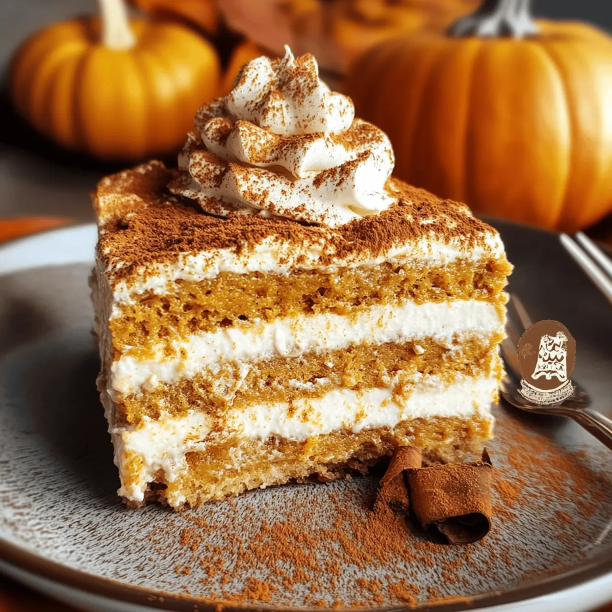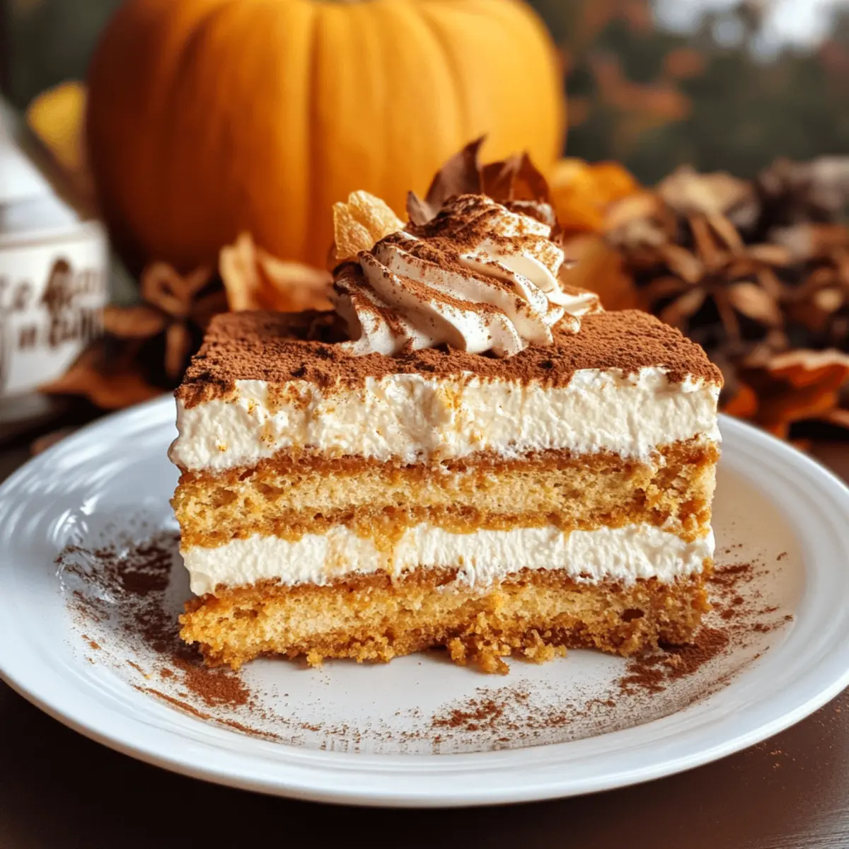 Veganes Kürbisgewürz-Tiramisu, eine köstliche Neuinterpretation des klassischen Desserts, perfekt für den Herbst.