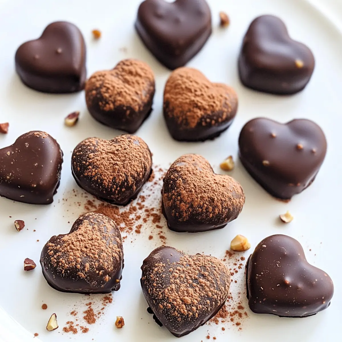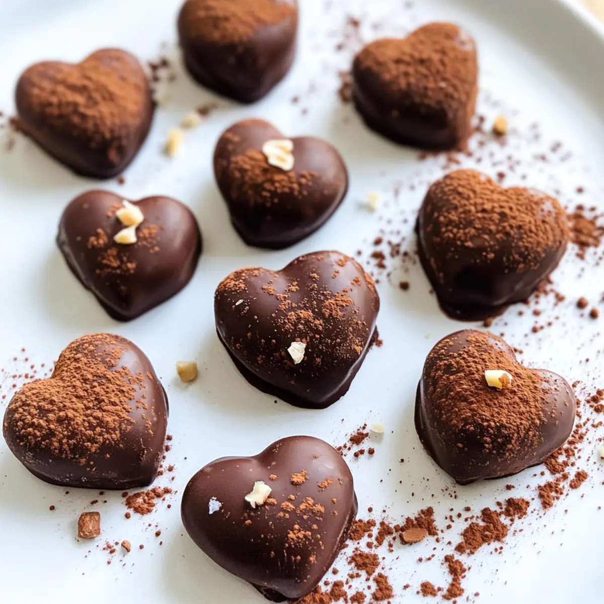 Beim Schauen von Kochvideos fiel mir auf, wie viele Menschen von süßen Leckereien begeistert sind – und nicht wahr? Ein wahres Highlight sind vegane Schokoladentrüffel, die nicht nur himmlisch schmecken, sondern auch ohne Backen und ganz einfach zuzubereiten sind. Diese Easy Vegan Chocolate Hazelnut Truffles sind der perfekte Genuss für jeden Anlass, besonders für Valentinstag, wenn Liebe in der Luft liegt. Mit nur sechs gesunden Zutaten verführen sie mit einer cremigen Konsistenz und einer perfekten Balance zwischen Süße und intensiven Schokoladennoten. Außerdem lassen sie sich hervorragend vorbereiten und sind glutenfrei. Abgesehen von ihrer köstlichen Mischung sind die herzförmigen Trüffel in einer hübschen Verpackung das ideale Geschenk für diejenigen, die du liebst. Hast du schon Lust bekommen, in die Schokoladenwelt einzutauchen? Warum sind vegane Schokoladentrüffel ein Muss? Einfachheit pur: Diese Trüffel erfordern kein Backen und sind in weniger als 30 Minuten zubereitet. Wunderbarer Geschmack: Die Kombination aus dunkler Schokolade und gerösteten Haselnüssen sorgt für ein unvergleichliches Geschmackserlebnis. Vielseitig: Du kannst die Nüsse je nach Vorliebe austauschen oder mit verschiedenen Aromen experimentieren, wie zum Beispiel Mandel oder Minze. Perfekte Geschenke: Die herzförmige Form macht sie ideal für besondere Anlässe oder als liebevolles Geschenk. Gesund und lecker: Mit nur sechs Zutaten sind diese Trüffel glutenfrei und enthalten natürliche Süßungsmittel, sodass sie ein guilt-free Genuss sind. Probiere auch deine eigenen Varianten aus, indem du von unseren Rezepten wie Vegane Kuerbisburger Veganer und Veganer Flammkuchen Mit inspirieren lässt! Vegane Schokoladentrüffel Zutaten Hinweis: Hier findest du alles, was du für die Zubereitung dieser köstlichen veganen Schokoladentrüffel benötigst. Für die Mischung Haselnüsse – Sie sorgen für einen nussigen Geschmack und Textur; röste sie vorher, um das Aroma zu intensivieren. Dunkle Schokolade – Hauptzutat für den schokoladigen Geschmack; wähle mindestens 70% Kakao für mehr Tiefe. Achte darauf, dass sie milchfrei ist, um vegan zu bleiben. Ahornsirup – Dient als natürliche Süßungsquelle; kann durch Honig ersetzt werden, wenn du nicht vegan bist. Kakaopulver – Verleiht den Trüffeln eine traditionelle Beschichtung und zusätzliche Fülle; ungesüßtes Kakaopulver ist empfehlenswert. Vanilleextrakt – Verstärkt das Schokoladenaroma; unbedingt verwenden! Feines Meersalz – Balanciert die Süße und intensiviert die Aromen; ein essentielles Element in deinem Rezept. Für die Dekoration Zusätzliche Schokolade – Zum Überziehen der Trüffel; sorgt für einen glänzenden Finish. Hakkete Haselnüsse oder Streusel – Für einen crunchy Topping; verleiht dem Ganzen eine hübsche Note und zusätzlichen Geschmack. Mit diesen Zutaten bereitest du im Handumdrehen deine eigenen veganen Schokoladentrüffel zu und verwöhnst dich und deine Lieben mit einem delikaten Genuss! Schritt-für-Schritt-Anleitung für Vegane Schokoladentrüffel Schritt 1: Schokolade schmelzen Breche die dunkle Schokolade in kleine Stücke und gib sie in eine hitzebeständige Schüssel. Schmelze die Schokolade über einem Wasserbad, wobei du darauf achtest, dass die Schüssel das Wasser nicht berührt. Alternativ kannst du die Schokolade in der Mikrowelle in kurzen Intervallen von 20 Sekunden schmelzen und dabei regelmäßig umrühren, bis sie vollständig geschmolzen und glatt ist. Schritt 2: Trüffelmischung herstellen Gebe die gerösteten Haselnüsse, das Kakaopulver, den Ahornsirup, die geschmolzene Schokolade, den Vanilleextrakt und das feine Meersalz in eine Küchenmaschine. Mische alles, bis eine klebrige Masse entsteht, die zusammenhält. Achte darauf, dass die Haselnüsse gut zermahlen sind, um eine cremige Textur zu erhalten; dies sollte etwa 1-2 Minuten dauern. Schritt 3: Mixtur ausbreiten und kühlen Lege zwei Blätter Backpapier auf eine saubere Oberfläche und gib die Trüffelmischung zwischen die Blätter. Verwende ein Nudelholz oder deine Hände, um die Mischung gleichmäßig auf etwa 1 cm Dicke zu verteilen. Wenn die Mischung zu weich ist, stelle sie für etwa 30 Minuten in den Kühlschrank, damit sie fester wird und sich leichter formen lässt. Schritt 4: Formen der Trüffel Nehme die gekühlte Mischung aus dem Kühlschrank und verwende einen herzförmigen Ausstecher, um die Trüffel Herzen auszustechen. Lege die ausgeschnittenen Herztrüffel auf ein mit Backpapier ausgelegtes Backblech und stelle sie für weitere 5-10 Minuten in das Gefrierfach, damit sie fest bleiben. Schritt 5: Mit Schokolade überziehen Schmelze zusätzlich etwas Schokolade nach Wahl, um die Trüffel zu überziehen. Tauche jede gekühlte Trüffel herzhafter in die geschmolzene Schokolade, bis sie vollständig bedeckt ist. Nach Belieben mit gehackten Haselnüssen, einer Prise Meersalz oder bunten Streuseln garnieren und auf ein Backblech legen, um sie gut aushärten zu lassen. Schritt 6: Kühlen und servieren Lasse die überzogenen veganen Schokoladentrüffel bei Raumtemperatur etwas abkühlen und stelle sie dann in den Kühlschrank, bis die Schokolade fest ist. Nach etwa 30 Minuten sind die Trüffel bereit zum Genießen. Serviere sie gekühlt oder bei Zimmertemperatur für das beste Geschmackserlebnis! Tipps für die besten veganen Schokoladentrüffel Dunkle Schokolade wählen: Achte darauf, mindestens 70% Kakaoanteil zu verwenden, um den vollen Schokoladengeschmack zu genießen. Es sorgt für Tiefe und köstliche Bitterkeit. Haselnüsse rösten: Röste die Haselnüsse bei 175°C für 8 Minuten, um ihr Aroma zu verstärken. Dies schafft ein nussigeres und reichhaltigeres Geschmackserlebnis. Vorsicht beim Schmelzen: Achte darauf, die Schokolade langsam zu schmelzen, um ein Verbrennen zu vermeiden. Rühre regelmäßig um, insbesondere in der Mikrowelle. Kühlen ist entscheidend: Stelle sicher, dass die Mischung vor dem Auss