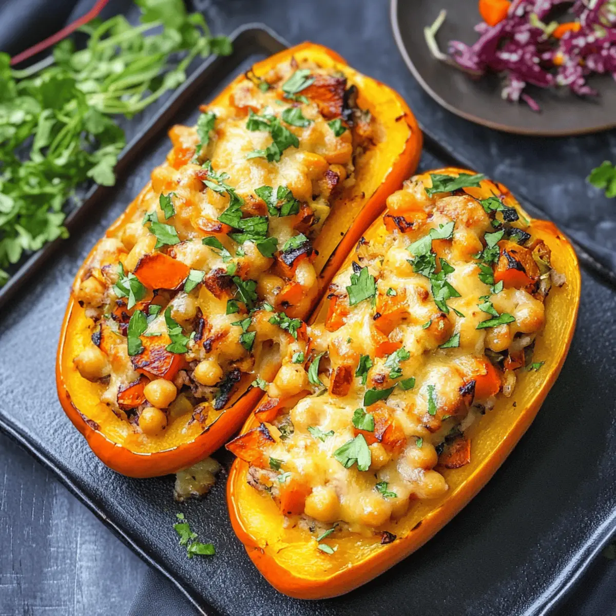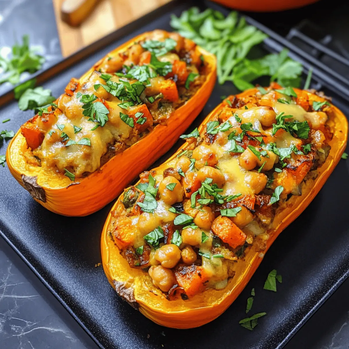 Die Tage werden kürzer und die Luft kühler – der perfekte Zeitpunkt, um den Ofen vorzuheizen und mit der Zubereitung von tröstlichen Köstlichkeiten zu beginnen. Heute lade ich euch ein, einen veganen gefüllten Butternutkürbis aus dem Ofen zu entdecken. Dieses Rezept vereint die herrlich süße Note des gerösteten Kürbisses mit einer herzhaften Füllung aus Gemüse und Kichererbsen, die nicht nur schnell zubereitet ist, sondern auch ein echtes Wohlfühlessen für die ganze Familie bietet. Mit seiner glutenfreien und kohlenhydratreduzierten Variante ist es zudem eine schmackhafte Option für all jene, die auf ihre Ernährung achten möchten. Seid ihr bereit, die Aromen des Herbstes zu genießen und euren Abend mit dieser bunten und gesunden Mahlzeit zu bereichern? Warum lieben alle diesen Kürbis? Herbstliches Vergnügen: Dieser vegane gefüllte Butternutkürbis aus dem Ofen bringt die köstlichen Aromen der Saison direkt auf euren Tisch. Einfach zuzubereiten: Mit minimalem Aufwand zaubert ihr ein herzhaftes Gericht, das auch weniger erfahrene Köche begeistert. Vielseitig: Ob mit verschiedenen Gemüsesorten oder Gewürzen – eurer Kreativität sind keine Grenzen gesetzt. Gesund und nahrhaft: Dank der Kichererbsen und des gemüsereichen Füllung ist es eine proteinreiche, nährstoffreiche Mahlzeit. Schlemmen ohne Reue: Mit glutenfreien und low-carb Optionen passt dieses Rezept perfekt für bewusst ernährte Genießer! Zutaten für den veganen gefüllten Butternutkürbis • Hier sind die Zutaten, die ihr für diesen köstlichen veganen gefüllten Butternutkürbis aus dem Ofen benötigt. Für den Kürbis Butternutkürbis – das Hauptzutat, die Süße und natürlichen Geschmack liefert. Olivenöl – ideal zum Anbraten der Zutaten; neutrales Öl kann auch verwendet werden. Salz & Pfeffer – unverzichtbare Gewürze für die Geschmacksverstärkung. Für die Füllung Rote Zwiebel – bringt Süße und Tiefe; gelbe Zwiebel kann als Substitute verwendet werden. Knoblauch – verleiht aromatische Reichhaltigkeit; benutze Knoblauchpulver als Alternative. Zucchini – fügt Feuchtigkeit und Textur hinzu; kann durch gelben Kürbis oder Spinat ersetzt werden. Paprika – sorgt für milde Süße und lebendige Farbe; geräucherte Paprika bietet eine interessante Geschmacksvariation. Dose Kichererbsen – bietet Protein und Herzhaftigkeit; linsen oder Bohnen können als Alternative dienen. Tomatenmark – intensiviert den Geschmack und bindet die Zutaten. Tomatensauce kann ebenfalls verwendet werden. Weißweinessig – bringt die Aromen ins Gleichgewicht; Ersetze es durch Zitronensaft für eine frischere Note. Süßes Paprikapulver – verleiht dem Gericht Wärme; Chili-Pulver bringt etwas Schärfe. Hafercreme – sorgt für Cremigkeit und bindet die Füllung; Kokosmilch ist auch eine gute Alternativoption. Petersilie – frische Kräuter, die die Aromen aufhellen; kann durch Koriander oder Schnittlauch ersetzt werden. Vegane Käsealternative – sorgt für eine cremige Schicht obendrauf; Nährhefe gibt eine käsige Note ohne Milchprodukte. Mit dieser Auswahl an Zutaten zaubert ihr mühelos ein köstliches und gesundes Gericht, das alle begeistert! Step-by-Step Instructions für den veganen gefüllten Butternutkürbis aus dem Ofen Step 1: Ofen vorheizen Heize den Ofen auf 180°C (356°F) im Umluftmodus vor. Diese Temperatur sorgt dafür, dass der Butternutkürbis gleichmäßig gegart wird. Während der Ofen aufheizt, kannst du die weiteren Schritte vorbereiten und den köstlichen Duft des Herbstes in deiner Küche erahnen. Step 2: Kürbis vorbereiten Wasche den Butternutkürbis gründlich, halbiere ihn der Länge nach und entferne die Kerne mit einem Löffel oder einer speziellen Küchenschaufel. Das herausgenommene Fruchtfleisch in kleine Würfel schneiden; diese werden später für die Füllung verwendet. Achte darauf, die Kanten sauber zu halten, damit der Kürbis stabil bleibt. Step 3: Zwiebel und Knoblauch anbraten Schneide die rote Zwiebel und den Knoblauch fein. Erhitze ein Esslöffel Olivenöl in einer großen Pfanne bei mittlerer Hitze und gebe die Zwiebel sowie den Knoblauch hinzu. Brate sie circa 3-4 Minuten lang an, bis sie glasig und duftend sind. Die aromatische Basis sorgt für zusätzlichen Geschmack in deinem veganen gefüllten Butternutkürbis aus dem Ofen. Step 4: Gemüse hinzufügen Füge die gewürfelte Zucchini, Paprika und die Kichererbsen in die Pfanne hinzu. Koche alles zusammen für etwa 5-7 Minuten, bis das Gemüse weich wird und die Farben lebendig strahlen. Rühre gut um, damit sich die Aromen vermischen und das Gemüse gleichmäßig gart. Step 5: Füllung verfeinern Gib das Tomatenmark, den Weißweinessig und das süße Paprikapulver in die Pfanne. Rühre alles gründlich um und lasse die Mischung noch weitere 2 Minuten köcheln. Füge anschließend die Hafercreme hinzu und würze die Füllung mit Salz, Pfeffer und frisch gehackter Petersilie. Diese cremige Mischung wird die Herzen deiner Gäste erfreuen. Step 6: Kürbis füllen Nehme die vorbereiteten Kürbishälften und fülle jede Hälfte großzügig mit der Gemüsemischung. Streue etwas vegane Käsealternative obenauf für eine köstliche, cremige Kruste. Platziere die gefüllten Kürbishälften auf einem mit Backpapier ausgelegten Blech, um das Ankleben zu vermeiden. Step 7: Kürbis backen Schiebe das Backblech in den vorgeheizten Ofen und backe den veganen gefüllten Butternutkürbis aus dem Ofen für 30 bis 40 Minuten. Der Kürbis ist fertig, wenn er weich und leicht karamellisiert ist. Ein einfacher Test: Stich mit einer Gabel hinein – sie sollte leicht hinein gleiten. Step 8: Servieren und genießen Nehme die gefüllten Kürbishälften aus dem Ofen und lasse sie kurz abkühlen, bevor du sie servierst. Du kannst sie als Hauptgericht oder mit einem frischen Salat kombinieren. Nimm dir Zeit, um die wunderbare Geschmackskombination zu genießen und die Aromen des Herbstes zu schätzen! Expertentipps für 