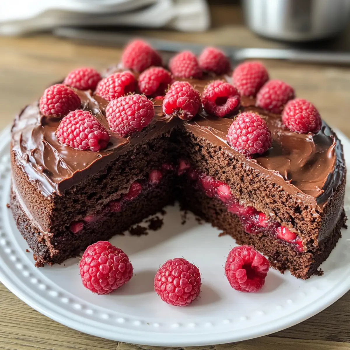 Es war ein regnerischer Sonntagmorgen, als ich die Idee für meinen veganen Schokoladen-Himbeerkuchen hatte. Der Himmel war grau, aber der Duft von frisch gebackenem Kuchen sollte alles erhellen. Diese verlockende Kombination aus schokoladiger Fülle und frischen, saftigen Himbeeren hat meine Küche in eine wahre Genuss-Oase verwandelt. Mein Rezept für den veganen Schokoladen-Himbeerkuchen ist nicht nur unglaublich einfach zuzubereiten, sondern trägt auch zur guten Laune bei – perfekt für gesellige Runden oder einfach als süße Belohnung nach einem langen Tag. Zudem ist dieser Kuchen zuckerfrei und kann mit verschiedenen Früchten oder Nüssen angepasst werden, sodass jeder Biss zu einem individuellen Geschmackserlebnis wird! Neugierig, wie ihr diesen köstlichen Kuchen selbst backen könnt? Dann lasst uns loslegen! Warum wirst du diesen Kuchen lieben? Einfache Zubereitung: Die Zubereitung ist so unkompliziert, dass selbst Backanfänger in kürzester Zeit zum Erfolg kommen. Vielfältige Anpassungsmöglichkeiten: Mit der Option, Frucht-Kombinationen oder Nüsse hinzuzufügen, kannst du deinen eigenen individuellen Kuchen kreieren. Fantastischer Geschmack: Die Kombination aus intensivem Schokoladengeschmack und den fruchtigen Himbeeren macht jeden Bissen zu einem Hochgenuss. Gesunde Zutaten: Dieser vegane Kuchen kommt ganz ohne tierische Produkte aus und ist dennoch ein echtes Geschmackserlebnis. Perfekt für jeden Anlass: Ob für feierliche Anlässe oder einfach als süßer Snack – dieser Kuchen stellt in jeder Situation eine schmackhafte Wahl dar. Wenn du nach mehr Backinspiration suchst, schau dir doch auch unseren veganen Apfelkuchen an! Zutaten für den Veganen Schokoladen-Himbeerkuchen • Hier sind die köstlichen Zutaten, die du für diesen schokoladigen Leckerbissen benötigst. Für den Teig Weizenmehl – Das Fundament des Kuchens, das für Struktur sorgt. Ersatz: Verwende eine glutenfreie Mehlmischung für eine glutenfreie Version. Zucker – Fügt Süße hinzu und balanciert die Bitterkeit des Kakaos. Kakaopulver – Sorgt für den reichen Schokoladengeschmack. Nutze hochwertiges Kakaopulver für ein intensiveres Aroma. Backsoda – Wirkt als Treibmittel, damit der Kuchen aufgeht. Salz – Balanciert die Süße und hebt den Gesamtgeschmack hervor. Mandelmilch – Hält den Kuchen schön feucht. Ersatz: Jede pflanzliche Milch (z.B. Soja, Hafer) funktioniert ebenfalls gut. Pflanzenöl – Für zusätzlichen Reichtum und Feuchtigkeit im Kuchen. Apfelessig – Hilft dem Kuchen beim Aufgehen und sorgt für eine fluffige Textur. Wichtig: Dieses Zutaten nicht vergessen. Vanilleextrakt – Verleiht dem Kuchen eine wärmende Geschmacksnote. Frische Himbeeren – Sorgt für saftige Fruchtexplosionen. Halte sie ganz für das beste Ergebnis. Vegane Schokoladenstückchen (optional) – Für zusätzlichen schokoladigen Genuss. Mehr Schokolade ist immer besser! Für die Garnitur Puderzucker – Für eine elegante, süße Note beim Servieren. Vegane Schokoladenglasur (optional) – Macht den Kuchen noch köstlicher und dekadenter. Mit diesen Zutaten wird dein Veganer Schokoladen-Himbeerkuchen zum absoluten Hit! Schritt-für-Schritt-Anleitung für Veganer Schokoladen-Himbeerkuchen Step 1: Ofen vorheizen und Backform vorbereiten Heize den Ofen auf 175°C vor und bereite eine 20 cm große Kuchenform vor. Fette die Form sorgfältig ein oder lege sie mit Backpapier aus, damit der Kuchen später leicht herausgenommen werden kann. Das Vorheizen des Ofens ist entscheidend, damit der Vegane Schokoladen-Himbeerkuchen gleichmäßig gebacken wird. Step 2: Trockene Zutaten vermengen Nimm eine große Schüssel und gib das Weizenmehl, Kakaopulver, Zucker, Backsoda und Salz hinein. Mit einem Schneebesen alles gut vermischen, bis keine Klumpen mehr vorhanden sind. Es ist wichtig, dies gründlich zu tun, damit die trockenen Zutaten gleichmäßig im gesamten Teig verteilt sind. So erhältst du eine perfekte Basis für den Kuchen. Step 3: Feuchte Zutaten hinzufügen Füge nun die Mandelmilch, das Pflanzenöl, den Apfelessig und den Vanilleextrakt zu den trockenen Zutaten hinzu. Rühre alles vorsichtig durch, bis eine glatte Masse entsteht. Vermeide jedoch das Übermixen, um einen saftigen und lockeren Veganen Schokoladen-Himbeerkuchen zu gewährleisten. Der Teig sollte schön glänzen und keine Klumpen mehr enthalten. Step 4: Himbeeren unterheben Jetzt ist es an der Zeit, die frischen Himbeeren vorsichtig unter den Teig zu heben. Achte darauf, die Himbeeren ganz zu lassen, damit sie beim Backen saftige Fruchtexplosionen im Kuchen verursachen. Verwende einen Spatel, um die Frucht sanft unterzuheben, ohne sie zu zerdrücken und so ihren frischen Geschmack zu bewahren. Step 5: Teig in die Form gießen Gieße den vorbereiteten Teig gleichmäßig in die vorbereitete Kuchenform. Verwende einen Spatel, um die Oberfläche glatt zu streichen, damit der Vegane Schokoladen-Himbeerkuchen beim Backen gleichmäßig aufgeht. Achte darauf, dass keine Luftblasen im Teig sind, damit der Kuchen fluffig wird. Step 6: Kuchen backen Schiebe die Kuchenform in den vorgeheizten Ofen und backe den Kuchen für etwa 30 bis 35 Minuten. Überprüfe nach 30 Minuten mit einem Zahnstocher, ob der Kuchen fertig ist; er sollte sauber herauskommen, wenn der Kuchen fertig gebacken ist. Achte darauf, den Kuchen nicht zu lange zu backen, um ein Austrocknen zu vermeiden. Step 7: Abkühlen lassen Sobald der Kuchen gebacken ist, nimm ihn aus dem Ofen und lasse ihn für etwa 10 Minuten in der Form abkühlen. Anschließend kannst du den Kuchen vorsichtig auf ein Kuchengitter stürzen, um ihn vollständig auskühlen zu lassen. Dies hilft, die Textur des Veganen Schokoladen-Himbeerkuchens perfekt zu bewahren. Step 8: Dekorieren und servieren Der letzte Schritt: Bestäube den abgekühlten Kuchen mit Puderzucker oder verteile eine vegane Schokoladenglasur darauf. So erhält dein Veganer Schokoladen-Himbeerkuchen eine besondere Note. Serviere ihn frisch