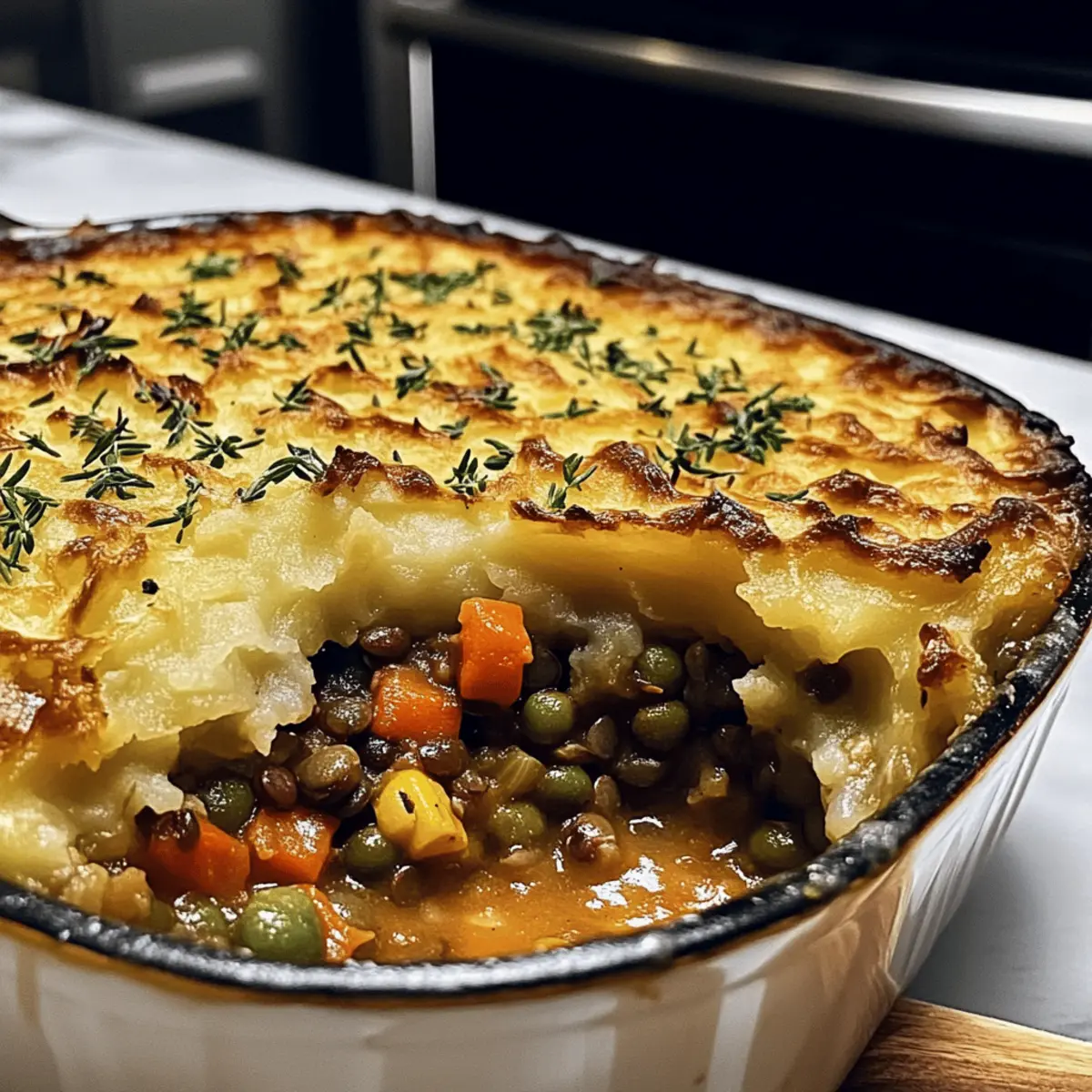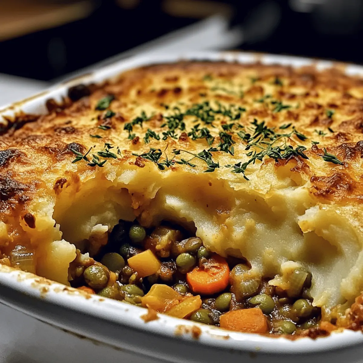 In einer kalten Winternacht, als der Wind vor dem Fenster heult, ist es Zeit für etwas Warmes und Wohltuendes. Die Einfache Vegetarische Hirtenpastete mit Herzhaftem Gemüse und Cremigem Kartoffelpüree ist genau das, was ich mir wünsche! Diese vegetarische Variante des klassischen Comfort Foods zaubert nicht nur ein Lächeln auf dein Gesicht, sondern erwärmt auch dein Herz. Mit liebevoll geschichteten aromatischen Gemüsen und einer himmlischen Kartoffelpüree-Krone ist sie nicht nur einfach zuzubereiten, sondern auch perfekt für die ganze Familie. Wenn du nach einer schnellen und gesunden Mahlzeit suchst, die sowohl sättigend als auch nahrhaft ist, dann ist diese Hirtenpastete genau das Richtige für dich. Ziehe dich in die Küche zurück und lass uns gemeinsam diese Köstlichkeit kreieren – wer könnte da schon widerstehen? Was denkst du, welche zusätzlichen Zutaten könnten wir ausprobieren? Warum ist diese Hirtenpastete besonders? Hausgemacht: Diese vegetarische Hirtenpastete vereint das Beste aus frischem Gemüse und cremigem Kartoffelpüree – perfekt um deine Küche mit einem unverwechselbaren Duft zu erfüllen. Vielseitig: Du kannst die Zutaten nach der Saison oder deinem Geschmack variieren, von Linsen zu Kichererbsen und mehr. Familienfreundlich: Ein echtes Wohlfühlgericht, das sowohl Kinder als auch Erwachsene begeistert! Schnell zubereitet: Mit nur wenigen Schritten hast du in kürzester Zeit eine schmackhafte Mahlzeit auf dem Tisch. Warum nicht dazu einen frischen Salat als Beilage genießen? Schau dir auch unsere Variationen für mehr Ideen an! Vegetarische Hirtenpastete Zutaten • Entdecke die Vielfalt der Aromen! Für die Füllung Olivenöl – sorgt für Feuchtigkeit und Geschmack, du kannst aber auch Pflanzenöl oder Kokosöl verwenden. Zwiebel (1 Stück, gewürfelt) – verleiht Süße und Tiefe; Schalotten sind eine gute Alternative für einen milderen Geschmack. Karotten (2 Stück, gewürfelt) – tragen zur Süße und Textur bei; Pastinaken sind eine schmackhafte Substitution. Knoblauch (2 Zehen, fein gehackt) – verstärkt die Geschmacksvielfalt; frischer Knoblauch ist optimal. Champignons (1 Tasse, gehackt) – fügen Umami und Volumen hinzu; Auberginen oder Zucchini sind ebenfalls möglich. Gefrorene Erbsen (1 Tasse) – bieten Süße und Farbe; frische Erbsen sind in der Saison besonders lecker. Gekochte Linsen (1 Tasse) – liefern Protein und Substanz; Kichererbsen oder schwarze Bohnen sind tolle Alternativen. Tomatenmark (2 Esslöffel) – fügt Reichhaltigkeit hinzu; die Menge kannst du je nach Vorliebe anpassen. Getrockneter Thymian (1 Teelöffel) – sorgt für aromatische Noten; frischer Thymian kann in größeren Mengen verwendet werden. Für das Kartoffelpüree Kartoffelpüree (4 Tassen) – bildet die cremige Kruste; Süßkartoffeln bieten eine gesündere Option. Schritt-für-Schritt-Anleitungen für die Einfache Vegetarische Hirtenpastete mit Herzhaftem Gemüse und Cremigem Kartoffelpüree Step 1: Ofen Vorheizen Heize deinen Ofen auf 200°C vor und bereite eine geeignete Backform vor, indem du sie leicht mit Olivenöl einfettest. Während der Ofen vorheizt, hast du genug Zeit, um die frischen Zutaten für deine vegetarische Hirtenpastete zu schneiden und vorzubereiten. Step 2: Gemüse Anbraten In einer großen, beschichteten Pfanne erhitze etwa zwei Esslöffel Olivenöl bei mittlerer Hitze. Füge die gewürfelte Zwiebel und die Karotten hinzu und brate sie für 5-7 Minuten an, bis die Zwiebel weich und leicht glasig ist. Dies ist der perfekte Moment, um den süßen Duft von gebratenem Gemüse in deiner Küche zu genießen. Step 3: Knoblauch und Champignons Hinzufügen Gib den fein gehackten Knoblauch und die gehackten Champignons in die Pfanne und brate sie weitere 5 Minuten, bis die Champignons ihren Saft freigeben und leicht gebräunt sind. Achte darauf, die Mischung gut umzurühren, damit sich die Aromen gleichmäßig verteilen können. Step 4: Erbsen und Linsen Einrühren Füge die gefrorenen Erbsen und die gekochten Linsen in die Pfanne hinzu und erhitze alles für 2-3 Minuten. Rühre die Mischung gut um, bis alles gut vermischt ist und die Erbsen aufgetaut und warm sind. Dies verleiht deiner Füllung zusätzliche Farbe und Nährstoffe. Step 5: Gewürze und Tomatenmark Hinzufügen Rühre nun das Tomatenmark sowie den getrockneten Thymian in die Gemüsemischung ein und schmecke die Füllung mit Salz und Pfeffer ab. Lass die Mischung weitere 2 Minuten köcheln, bis alles gut kombiniert ist und eine köstliche, aromatische Basis für deine Hirtenpastete bildet. Step 6: Füllung In Die Backform Geben Verteile die fertige Füllung gleichmäßig in der vorbereiteten Backform. Achte darauf, die Mischung gut zu zerstreuen, sodass die gesamte Fläche abgedeckt ist. Dies sorgt für eine gleichmäßige Garung und hilft, dass jeder Bissen deiner vegetarischen Hirtenpastete voll von Geschmack ist. Step 7: Kartoffelpüree Verteilen Verteile das cremige Kartoffelpüree gleichmäßig über die Füllung in der Backform. Verwende einen Löffel oder einen Spatel, um das Püree glatt zu streichen und eventuell kleine Spitzen zu formen, die beim Backen knusprig werden. So erhält deine Hirtenpastete eine ansprechende Textur und Präsentation. Step 8: Backen im Ofen Schiebe die Backform in den vorgeheizten Ofen und backe die vegetarische Hirtenpastete für 30-35 Minuten. Achte darauf, dass die Oberseite goldbraun und schön knusprig wird. Der verlockende Duft, der während des Backens durch deine Küche zieht, ist einfach unwiderstehlich. Step 9: Abkühlen Lassen Nimm die Hirtenpastete nach dem Backen aus dem Ofen und lasse sie 10-15 Minuten abkühlen, bevor du sie servierst. Dieser Schritt ist wichtig, um die Aromen zu setzen und das Schneiden zu erleichtern. Deine Familie wird die Freude und den Komfort dieser köstlichen vegetarischen Hirtenpastete sicher genießen. Step 10: Optional Garnieren Vor dem Servieren kannst du die fertige vegetarische Hirten