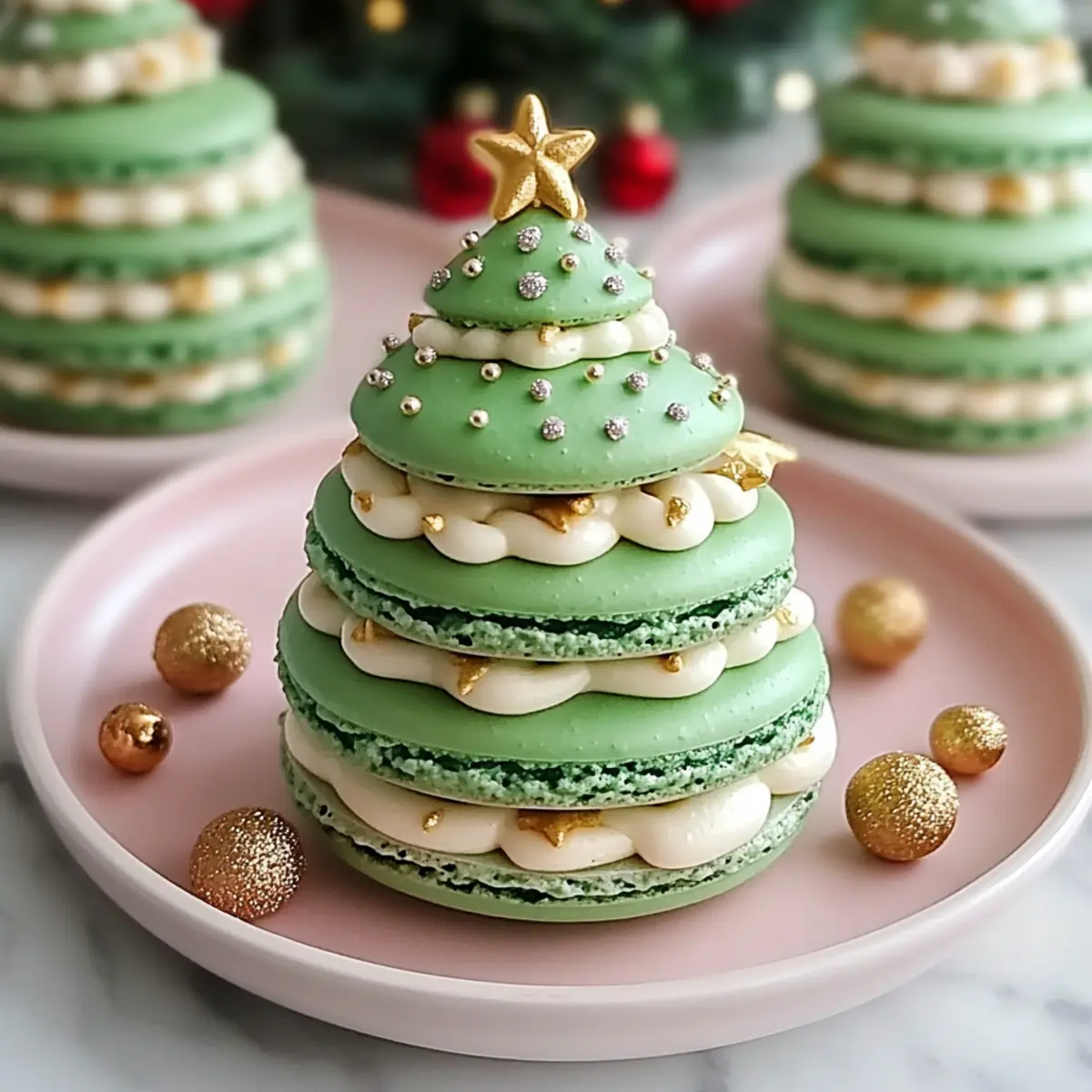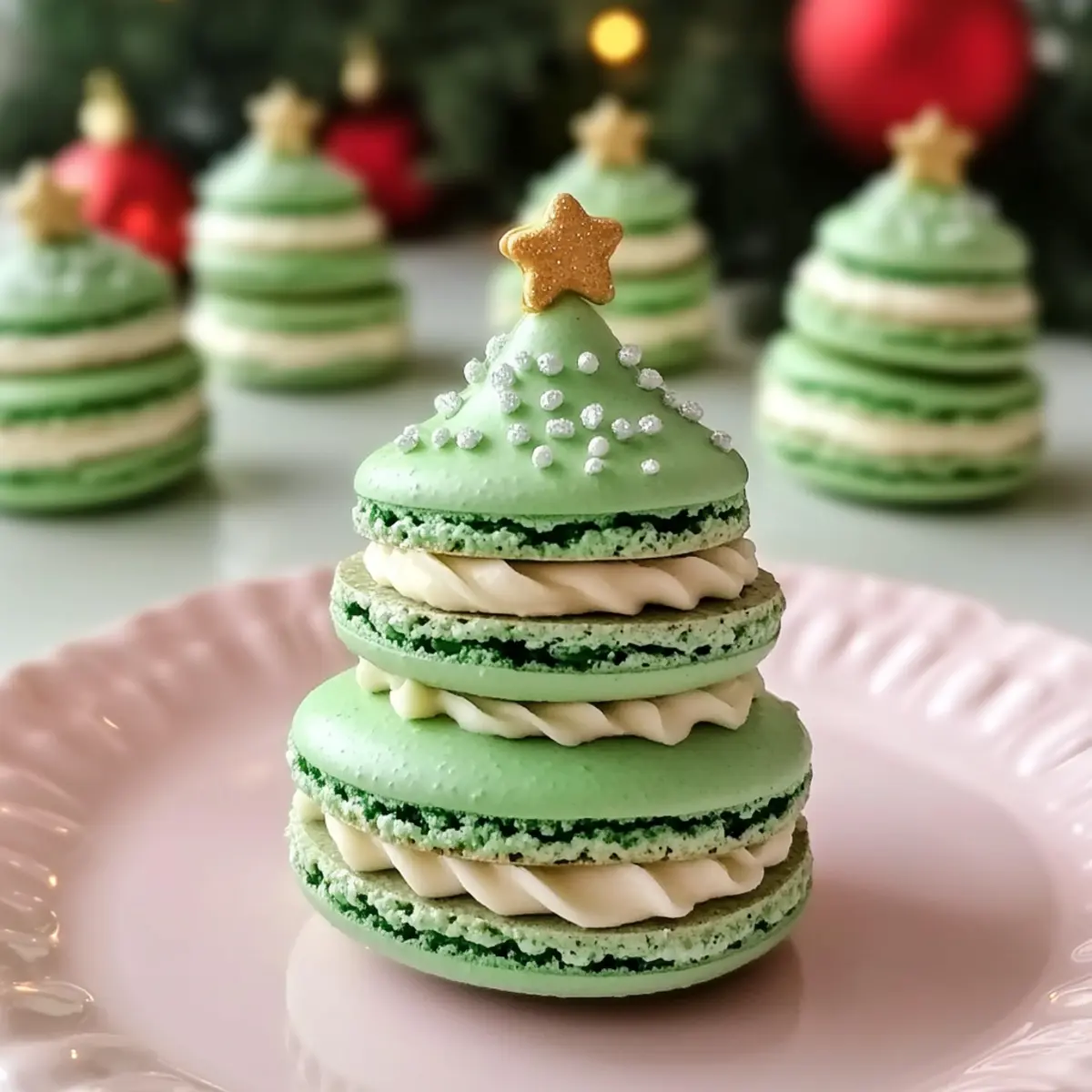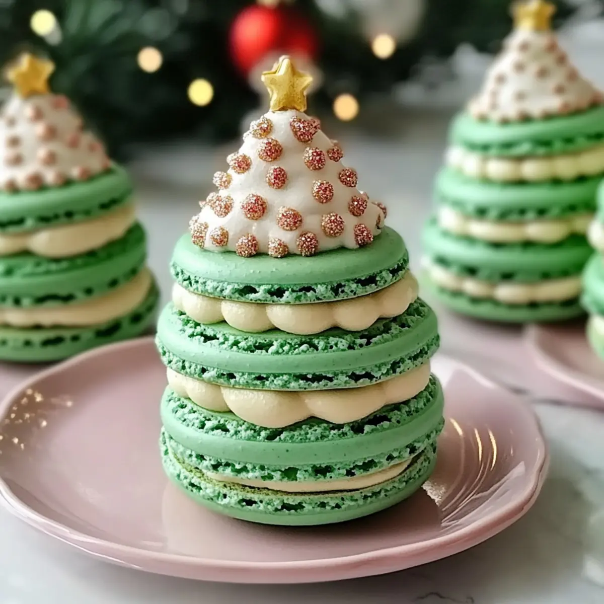 Als ich das erste Mal die Anleitung für die Verspielten Weihnachtsbaum Kuchen Macarons sah, konnte ich mir das Lächeln auf meinem Gesicht nicht verkneifen. Diese glutenfreien Köstlichkeiten sind nicht nur optisch ein Traum, sondern auch einfach zuzubereiten – in weniger als zwei Stunden verwandelst du deine Küche in eine festliche Backstube! Ideal für gesellige Runden oder als persönliches Geschenk, bringen diese Macarons die Magie der Feiertage direkt zu dir nach Hause. Ob du nun klassisch grünes Topping oder farbenfrohe Varianten bevorzugst, die Möglichkeiten sind endlos und machen jedes Stück zu einem kleinen Meisterwerk. Bist du bereit, mit mir in die Welt der süßen Weihnachtsüberraschungen einzutauchen? Warum wirst du diese Macarons lieben? Verspielte und visuelle Freude: Diese Weihnachtsbaum Kuchen Macarons sind nicht nur ein Genuss für den Gaumen, sondern auch ein echter Hingucker auf jedem Festtagstisch. Einfach zu machen: Mit nur wenigen Zutaten und einer unkomplizierten Anleitung hast du schnell ein festliches Dessert gezaubert. Vielseitige Variationen: Du kannst die Farben und Aromen nach Lust und Laune anpassen – von traditionellem Grün bis hin zu bunten Überraschungen! Glutenfrei und lecker: Genießen ohne Kompromisse – diese Macarons sind für jeden geeignet und bringen alle in Weihnachtsstimmung. Perfekte Geschenke: Ideal für Freunde und Familie, diese Macarons sind das perfekte persönliche Geschenk, das immer gut ankommt. 🍰 Verspielte Weihnachtsbaum Kuchen Macarons Zutaten • Hinweis: Diese Macarons sind nicht nur lecker, sondern auch glutenfrei und ideal für die Feiertage! Für den Teig Puderzucker – sorgt für Süße und eine feine Textur; du kannst Kokoszucker verwenden, um eine zuckerfreie Variante zu erhalten. Mandelmehl – die Hauptzutat für die Struktur; ersetze es durch Sonnenblumenmehl oder feingemahlene Haferflocken, wenn du eine nussfreie Alternative suchst. Eiklar – verleiht dem Teig die notwendige Luftigkeit; frische, zimmerwarme Eier bringen die besten Ergebnisse. Kristallzucker – unerlässlich für die richtige Meringue-Konsistenz. Weinstein – stabilisiert die Meringue; du kannst auch weißen Essig oder Zitronensaft als Alternativen verwenden. Grüner Gel-Farbstoff – macht die Macarons festlich und bunt; verwende natürliche Lebensmittelfarben, wenn du es bevorzugst. Für die Füllung Ungesalzene Butter – sorgt für eine cremige Füllung; veganisierte Butter ist eine großartige Option für eine milchfreie Variante. Schlagsahne – verleiht der Füllung Reichhaltigkeit; Kokoscreme ist eine hervorragende Alternative. Vanilleextrakt – hebt den Geschmack; ideal ist die Verwendung von reinem Vanilleextrakt. Kuchenkrümel – gibt der Füllung Textur und nostalgischen Geschmack; nutze Reste von Kuchen oder zerbrochene Kekse. Schritt-für-Schritt-Anleitung für Verspielte Weihnachtsbaum Kuchen Macarons Step 1: Puderzucker und Mandelmehl sieben Beginne damit, den Puderzucker und das Mandelmehl zusammen in einer Schüssel zu sieben. Dies sorgt für eine feine Textur und verhindert Klumpen. Setze die Mischung beiseite, während du die Eiklar vorbereitest. Step 2: Eiklar aufschlagen Schlage die Eiklar mit einem elektrischen Mixer in einer sauberen Schüssel, bis sie schaumig sind. Füge dann den Weinstein und den Kristallzucker langsam hinzu und schlage weiter, bis steife Spitzen entstehen. Dies kann etwa 5–7 Minuten dauern und ist entscheidend für die luftige Konsistenz der Verspielten Weihnachtsbaum Kuchen Macarons. Step 3: Lebensmittelfarbe und Mandelmischung falten Falte vorsichtig den grünen Gel-Farbstoff in die steif geschlagenen Eiklar ein, bis die Farbe gleichmäßig verteilt ist. Anschließend die gesiebte Mandelmehlmischung in mehreren Portionen hinzufügen und sanft unterheben. Der Teig sollte eine geschmeidige Konsistenz erreichen, die wie Lava fließt, aber nicht zu flüssig sein. Step 4: Macarons ausstechen Legen Sie Backpapier auf ein Backblech und fülle eine Spritztüte mit dem Teig. Spritze mit einem runden Rohr die Form von Weihnachtsbaum-Macarons auf das Backpapier. Achte darauf, gleichmäßige kleine Hügel zu spritzen, und klopfe das Blech leicht, um Luftblasen zu entfernen. Step 5: Ruhezeit einhalten Lass die gespritzten Macarons für 30–60 Minuten ruhen, bis sich eine leicht klebrige Schicht bildet. Dies ist wichtig, damit die Macarons beim Backen nicht reißen und eine glatte Oberfläche erhalten. Step 6: Ofen vorheizen und backen Heize den Ofen auf 150 °C vor und backe die Macarons 14–16 Minuten lang. Die Oberflächen sollten fest und leicht glänzend sein, während die Unterseite einen kleinen Fuß bildet. Lasse sie danach vollständig abkühlen, bevor du sie vom Backpapier nimmst. Step 7: Füllung zubereiten Schlage die zimmerwarme ungesalzene Butter mit einem Handmixer schaumig und füge dann nach und nach den Puderzucker, die Schlagsahne, den Vanilleextrakt und die Kuchenkrümel hinzu. Mische alles gut durch, bis die Füllung luftig und cremig ist. Step 8: Macarons zusammensetzen Nehme einen Macaron-Schale und spritze eine großzügige Portion der Füllung auf die Innenseite. Setze dann eine zweite Schale obenauf und drücke sie vorsichtig zusammen, um die Füllung gleichmäßig zu verteilen. Step 9: Macarons kühlen Lasse die zusammengestellten Verspielten Weihnachtsbaum Kuchen Macarons für mindestens 24 Stunden im Kühlschrank ruhen. Dies lässt die Aromen intensivieren und sorgt dafür, dass die Konsistenz der Füllung perfekt wird, bevor du sie servierst. Aufbewahrungstipps für Verspielte Weihnachtsbaum Kuchen Macarons Zimmertemperatur: Ungefüllte Macarons können bis zu 3 Tage bei Zimmertemperatur aufbewahrt werden. Lagere sie in einer luftdichten Box, um ihre Frische zu bewahren. Kühlschrank: Zusammengebaute Macarons halten sich im Kühlschrank etwa eine Woche. Verpacke sie gut in einer luftdichten Box, um das Aroma und die Textur zu erhalten. Gefriertruhe: Wenn du die Verspi