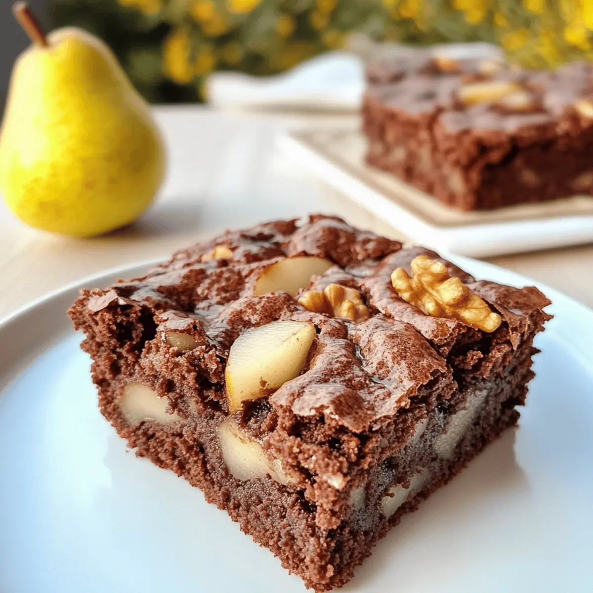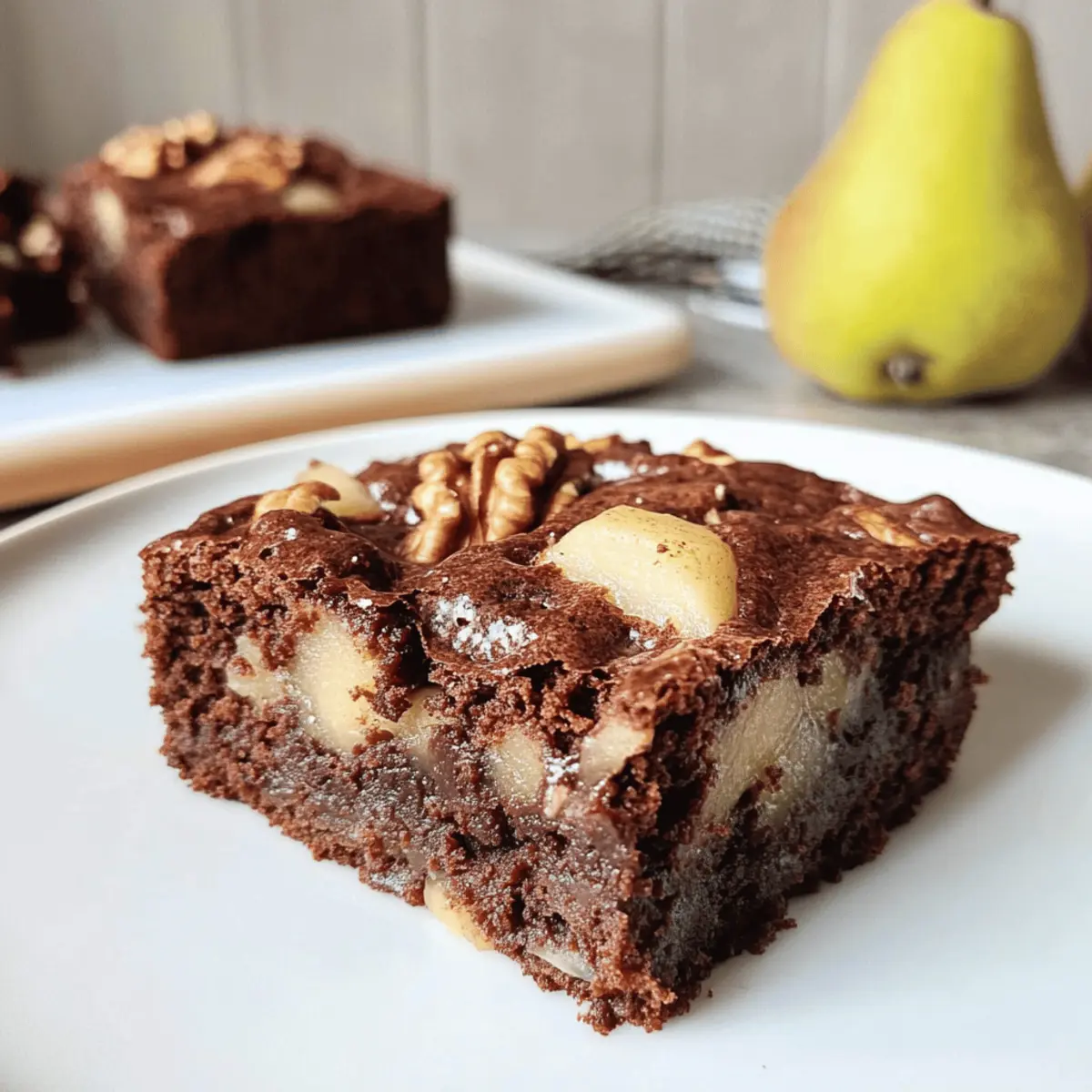 Fudgy Genuss: Die perfekte Kombination aus saftigen Birnen und schokoladigen Brownies sorgt für ein unvergleichliches Geschmackserlebnis.