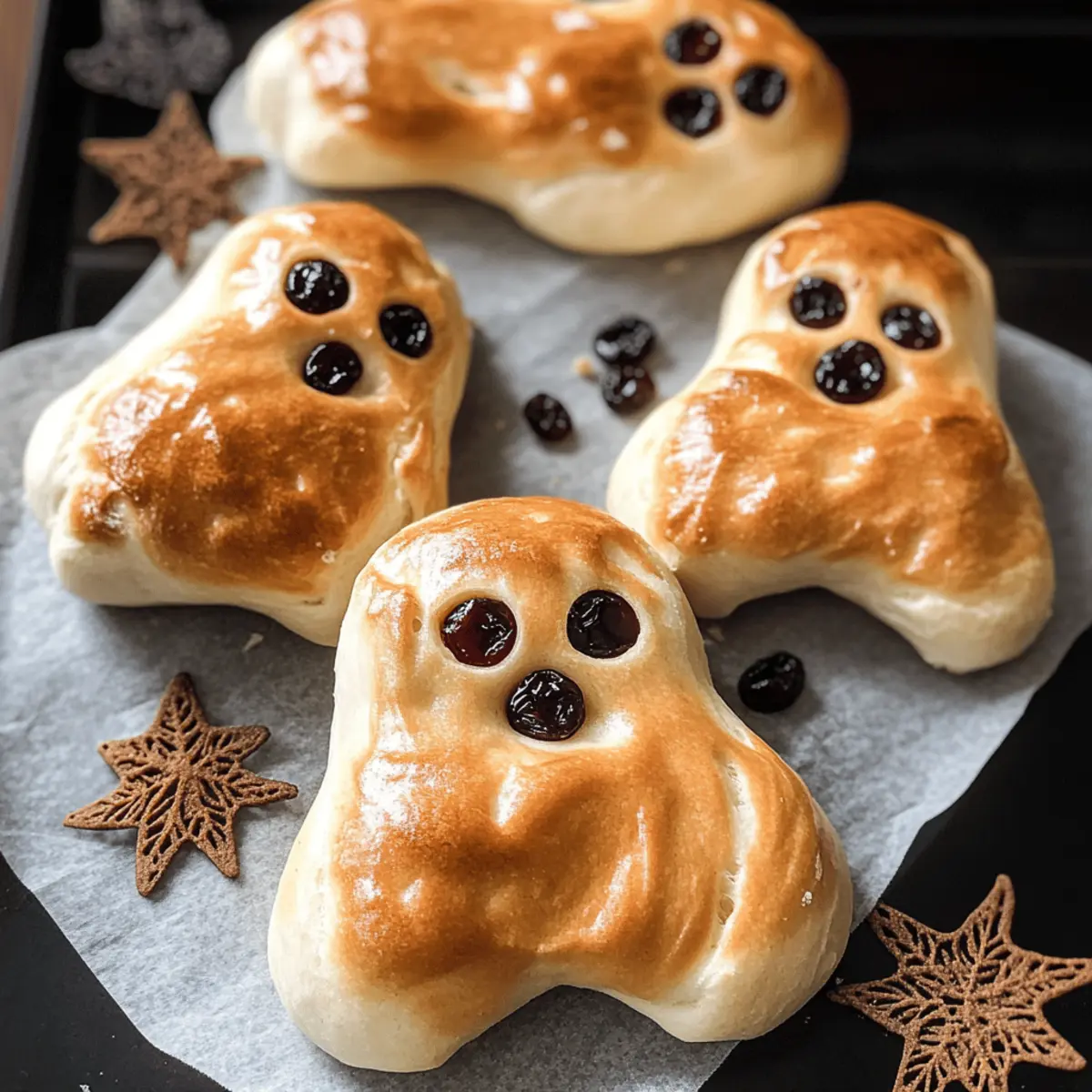 Die Wohnzimmer-Kürbisdeko ist aufgehängt, die Luft ist frisch und kühl – es ist Zeit für eine schaurig schön festliche Leckerei! Dieses Jahr habe ich mich entschieden, mit meinen Kindern etwas Besonderes zu zaubern: flauschige Weckgespenster. Diese schaurigen, gespenstischen Brotgestalten sind nicht nur eine tolle Aktivität für Groß und Klein, sondern auch eine zuckerfreie und weizenfreie Köstlichkeit, die sich perfekt für Halloween eignet. Die Zubereitung ist kinderleicht und sorgt garantiert für strahlende Augen, denn mit Rosinen als Augen und getrockneten Sauerkirschen als Mund werden die kleinen Brote auch zu einem hübschen Hingucker auf jeder Halloween-Party. Wer könnte da widerstehen? Macht euch bereit, die Geister zu aktivieren – welches Gesicht werdet ihr euren Weckgespenstern geben? Warum sind Weckgespenster so besonders? Verführerische Kombination: Diese Weckgespenster sind nicht nur schaurig anzusehen, sondern auch unglaublich lecker und kinderfreundlich. Einfaches Rezept: Die Zubereitung ist ein Kinderspiel und erfordert keine besonderen Backkenntnisse – ideal für gemeinsame Aktivitäten mit den Kleinen! Zucker- und weizenfrei: Perfekt für gesundheitsbewusste Naschkatzen, bieten sie eine süße Versuchung ohne schlechtes Gewissen. Kreative Freiheit: Lass deiner Fantasie freien Lauf, während du die Gesichter der Geister mit Rosinen und Kirschen verzierst! Diese Brote sind ebenso köstlich wie dekorativ und sorgen auf jeder Halloween-Feier für Begeisterung. Ein Stück Tradition: Mit einem Hauch von deutscher Tradition bringen sie nicht nur Geschmack, sondern auch Kultur in deine Küche. Probier auch unsere anderen zuckerfreien Rezepte, um festliche Moments zu genießen! Weckgespenster Zutaten • Diese Weckgespenster sind eine unterhaltsame und gesunde Halloween-Leckerei, die die ganze Familie anspricht! Hefe – Essenziell für das Aufgehen des Teiges und die fluffige Textur; Backpulver kann in der Not verwendet werden, führt aber zu weniger fluffigen Ergebnissen. Mehl (weizenfreie Alternative) – Liefert Struktur für den Teig; ein glutenfreies Mehlgemisch kann für Zöliakie-Betroffene verwendet werden. Butter – Sorgt für eine reiche Textur und zarte Krume; Kokosöl ist eine gute Ersatzoption für eine milchfreie Variante. Salz – Verstärkt den Geschmack und stärkt den Teig. Rosinen – Ideal für die Augen; sie bieten Süße ohne Zuckerzusatz. Schokoladenstückchen können für einen anderen Geschmack verwendet werden. Getrocknete Sauerkirschen – Bilden den Mund und verleihen eine fruchtige, säuerliche Note, die den Gesamtgeschmack verbessert. Schritt-für-Schritt-Anleitung für Weckgespenster Step 1: Teig zubereiten In einer Rührschüssel die Hefe mit lauwarmem Wasser (ca. 37°C) vermengen und einige Minuten aktivieren lassen. Nach dem Auflösen nach und nach das weizenfreie Mehl, die geschmolzene Butter und das Salz hinzufügen. Alles gut vermischen, bis ein leichter Teig entsteht. Step 2: Kneten Den Teig auf eine bemehlte Arbeitsfläche geben und etwa 10 Minuten kräftig durchkneten, bis er glatt und elastisch ist. Hierbei sollten die Hände leicht bemehlt sein, damit er nicht kleben bleibt. Der Teig sollte beim Dehnen Widerstand leisten und eine schöne Oberfläche bilden. Step 3: Erste Gehzeit Den Teig in eine leicht eingeölte Schüssel legen, abdecken und an einem warmen Ort etwa 1 Stunde gehen lassen. Der Teig sollte sich dabei verdoppeln und an Volumen gewinnen. Nach dieser Zeit sollte er schön luftig sein und sich leicht verarbeiten lassen. Step 4: Formen Sobald der Teig aufgegangen ist, diesen kurz durchkneten und in gleich große Portionen teilen. Jede Portion zu einer Gespensterform formen und auf ein mit Backpapier ausgelegtes Blech legen. Die Geister können lustige Formen und Größen haben, um jeder den eigenen Charakter zu verleihen. Step 5: Augen und Mund hinzufügen Die Rosinen und getrockneten Sauerkirschen in die geformten Teigeinschnitte drücken, um die Augen und den Mund der Weckgespenster zu gestalten. Achten Sie darauf, kreativ zu sein! Jeder Geist kann eine lustige und einzigartige Gesichtszüge bekommen. Step 6: Zweite Gehzeit Die geformten Geister abdecken und weitere 30 Minuten ruhen lassen. Dies gibt den Weckgespenstern Zeit, noch etwas aufzugehen, sodass sie beim Backen schön luftig werden. Der Teig sollte an der Oberfläche leicht schimmern und sich leicht anfühlen. Step 7: Backen Den Backofen auf 180°C vorheizen. Die Weckgespenster für 20-25 Minuten backen oder bis sie goldbraun sind und beim Klopfen auf den Boden hohl klingen. Achten Sie darauf, dass sie gleichmäßig gebräunt sind, um eine tolle Textur zu erzielen. Step 8: Abkühlen Nach dem Backen die Weckgespenster auf einem Kuchengitter abkühlen lassen. Dies sorgt dafür, dass die Luftzirkulation gut ist und die Brote nicht weich werden. Ideal, um sie warm und frisch zu servieren und die schaurigen Geister zu genießen. Weckgeister & Stutengespenster Varianten Lass deiner Kreativität freien Lauf und passe dieses Rezept nach deinem Geschmack an – es wird deine Familie begeistern! Glutenfrei: Verwende ein glutenfreies Mehlgemisch, um eine ebenso köstliche Variante zu schaffen, die alle genießen können. Kakaogeister: Füge 2 Esslöffel ungesüßten Kakaopulver zum Teig hinzu, um schokoladige Weckgeister mit einem Hauch von Süße zu kreieren. Obstvielfalt: Ersetze die Rosinen durch getrocknete Aprikosen oder Datteln für einen fruchtig-frischen Twist – die kleinen Geister erhalten einen ganz neuen Charakter! Nusspower: Mische zur Teigbasis eine Handvoll gehackte Nüsse, etwa Walnüsse oder Mandeln, für eine knackige Textur. Der natürliche Geschmack verleiht dem Brot eine tolle Fülle. Kreuzkümmel-Touch: Für eine herzhaftere Note kannst du eine Prise Kreuzkümmel oder getrocknete italienische Kräuter hinzufügen – ein spannendes Geschmacksabenteuer! Käse-Überraschung: Füge in die Teigmitte kleine Käsewürfel hinzu, damit beim B