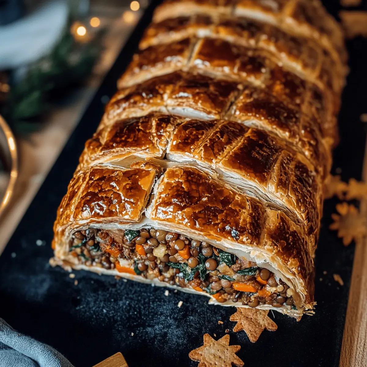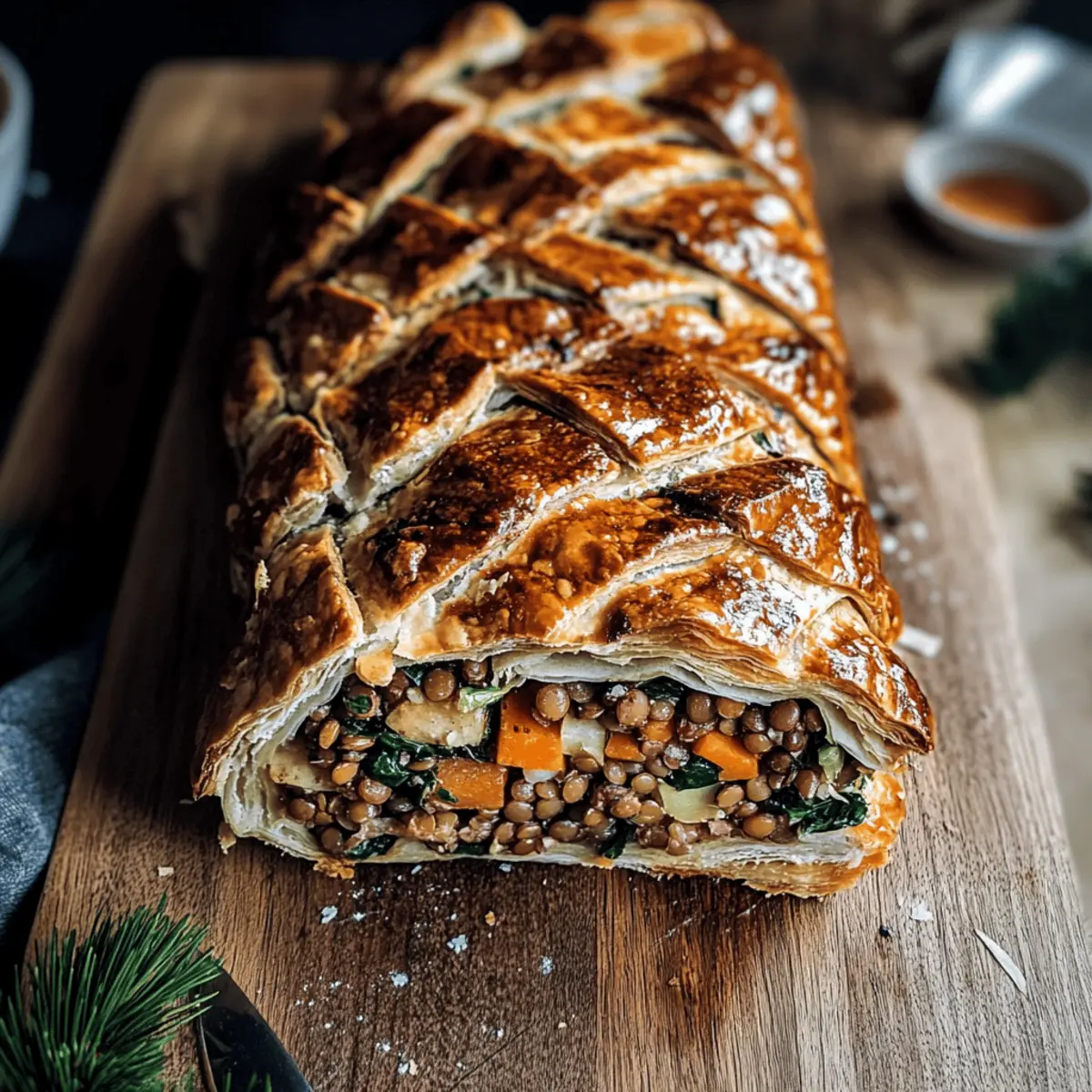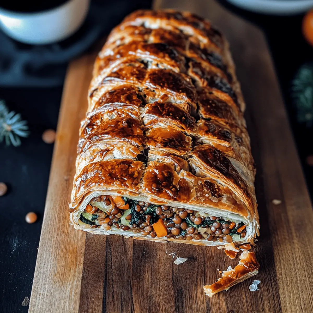 Die festlichen Tischdecken sind ausgebreitet, die Lichter funkeln und der Duft von frisch gebackenem Brot liegt in der Luft – es ist Weihnachtszeit! In diesem magischen Moment stelle ich dir mein Geheimrezept für den Weihnachtsbraten im Blätterteigmantel vegetarisch vor, auch bekannt als Veggie Wellington. Dieses Herzstück des Festessens bringt nicht nur einen Hauch von Eleganz auf deinen Tisch, sondern erfüllt auch die Sehnsucht nach einem herzhaften und befriedigenden Gericht, das Vegetarier und Fleischliebhaber gleichermaßen begeistert. Mit seiner bezaubernden Kombination aus saftigen Linsen, buntem Gemüse und einer goldenen, knusprigen Blätterteighülle ist dieser Braten eine friedliche Umarmung für deinen Gaumen und eine großartige Möglichkeit, gesunde Zutaten auf die Festtafel zu bringen. Bist du bereit für einen köstlichen Twist auf traditionelle Feiertagsgerichte? Warum Veggie Wellington ein Festtagsfavorit ist? Vielfalt: Mit verschiedenen Linsen, Nüssen oder Gemüse kannst du diesen Weihnachtsbraten ganz nach deinem Geschmack anpassen. Das macht ihn besonders anpassungsfähig für jedes Festessen. Zeitsparend: Bereite die Füllung am Vortag vor und genieße stressfreie Feiertage, während du deinen Gästen ein schmackhaftes Gericht servierst. Festliche Optik: Der goldene Blätterteig und die kreativen Verzierungen verleihen deiner Tischdekoration einen eleganten Look. Herzhafter Genuss: Dank der Kombination aus Linsen und Gemüse bietet der Wellington einen vollmundigen Geschmack, der sowohl Vegetarier als auch Fleischliebhaber begeistert. Gesunde Zutaten: Dieses Gericht ist nicht nur ein Genuss, sondern auch reich an pflanzlichem Protein und Ballaststoffen, ideal für eine gesunde Festtagsmahlzeit. Wenn du noch mehr über die Zubereitung von festlichen Gerichten erfahren möchtest, schau dir auch meinen Artikel über vegetarische Weihnachtsrezepte an. Weihnachtsbraten im Blätterteigmantel vegetarisch Zutaten • Mach dich bereit für einen geschmackvollen Genuss mit diesen köstlichen Zutaten! Für die Füllung Linsen – die Hauptquelle für pflanzliches Protein; verwende grüne oder braune Linsen für eine bessere Textur. Haferflocken – sorgen für Struktur und Bindung; können durch Semmelbrösel ersetzt werden, wenn gewünscht. Gemüse – Karotten, Sellerie und Champignons verbessern den Geschmack; ersetze sie durch saisonales Gemüse deiner Wahl. Nüsse – geben dem Gericht einen knusprigen Biss; optional für Allergiker, ersetze sie durch Samen oder lasse sie weg. Getrocknete Tomaten – sorgen für eine würzige Geschmacksexplosion; alternativ frische Kräuter verwenden, um den Geschmack aufzulockern. Blätterteig – der Geschmacksträger, der das Ganze saftig hält; lade dir beim Kauf einen fertigen Teig ein, um Zeit zu sparen. Frischkäse – verleiht der Füllung eine cremige Note; für eine vegane Variante verwende pflanzlichen Frischkäse oder lasse ihn ganz weg. Spinat – bringt Farbe und Nährstoffe; kann durch gekochten Grünkohl oder Mangold ersetzt werden. Genieße diesen Weihnachtsbraten im Blätterteigmantel vegetarisch und fühle, wie er dein Festessen verzaubert! Schritt-für-Schritt-Anleitung für den Weihnachtsbraten im Blätterteigmantel vegetarisch Schritt 1: Füllung zubereiten Kochen Sie die Linsen in Salzwasser für etwa 25 Minuten, bis sie weich sind. In einer Pfanne das gewürfelte Gemüse, wie Karotten, Sellerie und Champignons, in etwas Öl anbraten, bis es weich ist. Mischen Sie das abgetropfte Gemüse mit den Linsen, Haferflocken, Nüssen und Gewürzen. Lassen Sie die Mischung abkühlen, bevor Sie mit der nächsten Phase fortfahren. Schritt 2: Wellington zusammenstellen Den Blätterteig auf einer leicht bemehlten Fläche aufrollen und auf ein Backblech legen. Platzieren Sie die abgekühlte Linsenfüllung in der Mitte des Teigs und verteilen Sie eine Schicht Spinat und Frischkäse darüber. Falten Sie den Blätterteig über die Füllung, sodass sie vollständig eingewickelt ist, und drücken Sie die Ränder fest zusammen, um sicherzustellen, dass nichts ausläuft. Schritt 3: Verz decoration Verwenden Sie die Teigresten, um festliche Formen wie Sterne oder Blätter auszuschneiden. Diese Formen darauf legen, um Ihrer Kreation einen eleganten Look zu verleihen. Bestreichen Sie die gesamte Oberfläche des Wellington mit einer Mischung aus Eigelb und etwas Wasser oder mit pflanzlicher Milch für eine vegane Variante, um eine goldene Farbe zu erhalten. Schritt 4: Backen Heizen Sie den Ofen auf 200 Grad Celsius vor. Backen Sie den Weihnachtsbraten im Blätterteigmantel für etwa 40 Minuten, bis der Teig goldbraun und knusprig ist. Überwachen Sie während des Backens den Bräunungsgrad, um ein Überbrennen zu vermeiden, und genießen Sie den köstlichen Duft, wenn er im Ofen gart. Schritt 5: Sauce zubereiten Einige Stunden oder am Tag zuvor, Gemüsebrühe mit frischen Kräutern und Gewürzen in einem Topf zum Kochen bringen und etwa 20 Minuten köcheln lassen. Lassen Sie die Flüssigkeit eindicken, damit Sie eine reichhaltige Sauce für den Weihnachtsbraten im Blätterteigmantel haben. Dadurch entwickeln sich die Aromen und die Sauce kann zu einem festlichen Highlight, wenn Sie servieren, werden. Schritt 6: Servieren Lassen Sie den Veggie Wellington nach dem Backen einige Minuten ruhen, bevor Sie ihn in dicke Scheiben schneiden. Servieren Sie ihn zusammen mit traditionellen Beilagen wie Rotkohl und Kartoffelknödel. Diese Kombination ist perfekt, um die geschmackvollen Aromen des Weihnachtsbratens im Blätterteigmantel vegetarisch zu ergänzen. Nützliche Tipps für Weihnachtsbraten im Blätterteigmantel vegetarisch Vorbereitung im Voraus: Bereite die Füllung mindestens einen Tag vorher vor. So entfaltet sich der Geschmack optimal und du vermeidest Stress am Feiertag. Teig richtig behandeln: Achte darauf, dass der Blätterteig gut versiegelt ist, um ein Auslaufen während des Backens zu verhindern. Ein Druck mit den Fingern an de