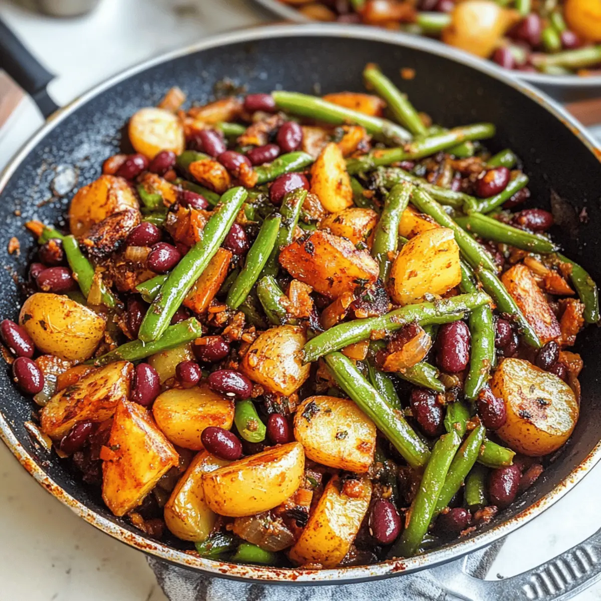 Diese herzhafte Westernpfanne ist besonders ideal für die Meal Prep! Sie können die Drilling-Kartoffeln bis zu 24 Stunden im Voraus vorbereiten, indem Sie sie waschen, schneiden und mit Olivenöl sowie Gewürzen vermengen – so schützen Sie sie vor dem Braunwerden. Darüber hinaus können auch die grünen Bohnen blanchiert und im Kühlschrank für bis zu 3 Tage aufbewahrt werden. Am Abend des Servierens müssen Sie nur die Zwiebeln und den Knoblauch anbraten, die restlichen Zutaten kombinieren und das Ganze in der Pfanne erwärmen. Dies spart nicht nur Zeit, sondern die Gemüse bleiben frisch und behalten ihre Knackigkeit. Ihre Familie wird diese einfache Zubereitung schätzen und die Qualität des Gerichts bleibt genau so köstlich wie frisch zubereitet!