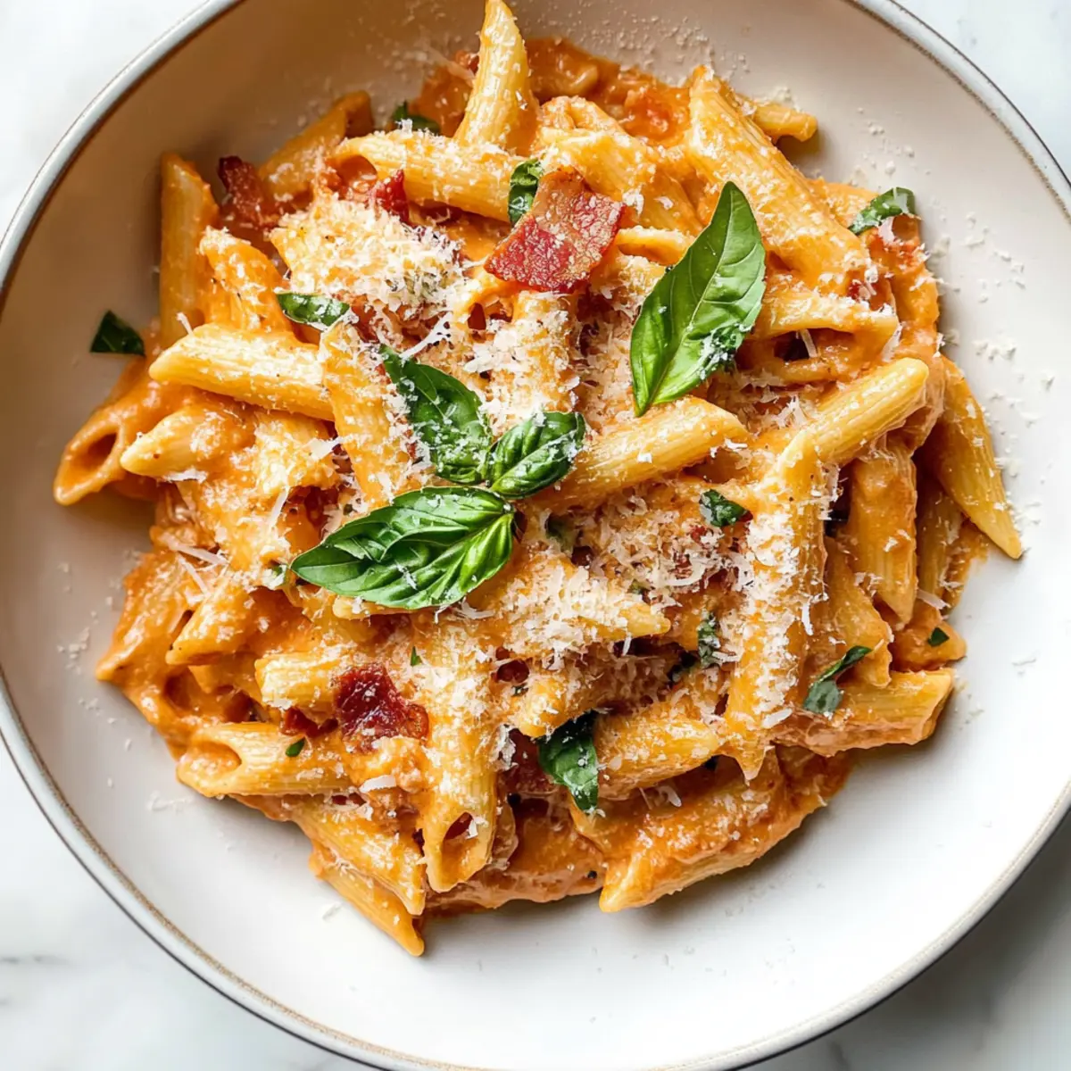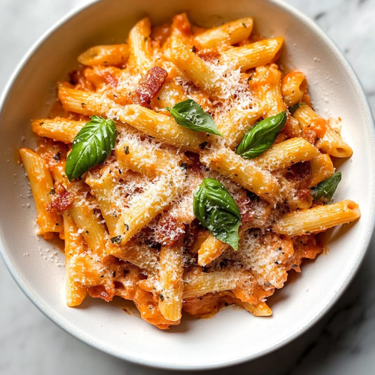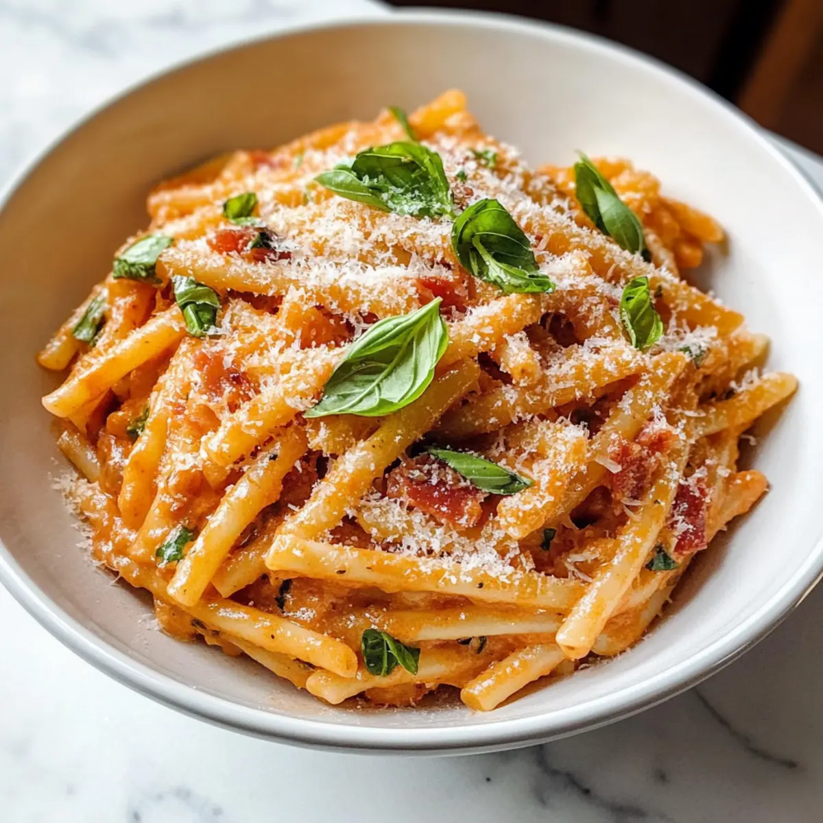 In der geschäftigen Küche herrschte ein würziger Duft, der mich sofort an meine liebsten italienischen Restaurantbesuche erinnerte. Die Würzige Bacon Tomaten Pasta ist das perfekte Rezept für alle, die in der Hektik des Alltags eine köstliche Mahlzeit zubereiten möchten. Mit einer sahnigen Tomatensauce, verfeinert mit frischem Basilikum und Parmesan, zaubert diese Pasta in nur 30 Minuten ein Gefühl von Gemütlichkeit auf den Tisch. Sie ist nicht nur ein wahrer Publikumsliebling, sondern auch ein schnelles Gericht, das sich wunderbar für stressige Wochentage eignet. Wer kann da Nein sagen? Bereit, Ihre Küche mit diesem einfachen, aber raffinierten Rezept zu verwöhnen? Lassen Sie uns gemeinsam loslegen! Warum ist dieses Rezept so beliebt? Einfachheit: Die Zubereitung ist kinderleicht und benötigt nur 30 Minuten, perfekt für hektische Abende. Würziger Geschmack: Die Kombination aus knusprigem Bacon, frischen Tomaten und einer cremigen Sauce begeistert jeden. Vielfältig einsetzbar: Diese Pasta lässt sich leicht anpassen – für Vegetarier einfach den Bacon weglassen und mehr Gemüse hinzufügen! Perfekte Textur: Die Kombination von weicher Pasta und einer sämigen Sauce macht jede Gabel zu einem Genuss. Lieblingsgericht für alle: Ob für Familienessen oder Dinnerpartys, diese Würzige Bacon Tomaten Pasta zieht garantiert alle in ihren Bann! Würzige Bacon Tomaten Pasta Zutaten • Entdecken Sie die Geheimnisse dieser köstlichen Speise! Für die Pasta Ungekochte Pasta – Die Basis des Gerichts, ideal mit Penne oder Fusilli für beste Soßenhaftung. Für die Sauce Dicker Bacon – Sorgt für einen rauchigen Geschmack und Reichhaltigkeit; wechseln Sie zu Pancetta oder Truthahnbacon für eine leichtere Option. Zwiebel – Bringt Süße und Tiefe in die Sauce; nutzen Sie Schalotten für einen milderen Geschmack. Knoblauch – Verfeinert das Gesamtaroma; als Ersatz verwenden Sie bei Bedarf Knoblauchpulver (1/8 Teelöffel pro Zehe). Trockener Weißwein – Fügt Säure und Komplexität hinzu; verwenden Sie Hühner- oder Gemüsebrühe als alkoholfreie Alternative. Tomatenmark – Bietet konzentrierten Tomatengeschmack und Dicke; doppelt konzentriertes Tomatenmark bringt einen intensiveren Geschmack. Schlagsahne – Schafft eine cremige Textur in der Sauce; Ersatz mit Halbrahm für eine leichtere Variante. Italienische Gewürzmischung – Eine Mischung aus Kräutern für Geschmack; alternativ kombinieren Sie Basilikum, Oregano und Thymian. Zerkleinerte rote Pfefferflocken – Fügen Sie Würze hinzu; passen Sie die Menge nach Ihrem Schärfewunsch an oder lassen Sie sie ganz weg. Parmesan – Für Cremigkeit und herzhaften Geschmack; verwenden Sie Pecorino Romano für eine intensivere Note. Frisches Basilikum – Bringt Frische; nutzen Sie getrocknetes Basilikum, wenn kein frisches verfügbar ist. Salz & Pfeffer – Unverzichtbar zum Würzen; nach Geschmack anpassen. Für das Finish Extra frisches Basilikum – Als Garnierung für zusätzlichen Geschmack und Farbe. Schritt-für-Schritt-Anleitung für Würzige Bacon Tomaten Pasta Step 1: Pasta kochen Bringen Sie in einem großen, gesalzenen Topf Wasser zum Kochen und fügen Sie die Ungekochte Pasta hinzu. Kochen Sie die Pasta gemäß den Anweisungen auf der Verpackung al dente, was normalerweise etwa 8-10 Minuten dauert. Gelegentlich umrühren, damit die Pasta nicht zusammenklebt. Sobald die Pasta gar ist, abgießen und etwas vom Kochwasser aufbewahren. Step 2: Bacon anbraten Erhitzen Sie eine große Pfanne auf mittelhoher Stufe und fügen Sie die dicken Baconstücke hinzu. Braten Sie den Bacon, bis er knusprig und goldbraun ist, was ungefähr 5-7 Minuten dauert. Verwenden Sie eine Zange, um den Bacon während des Bratens zu wenden. Nehmen Sie die knusprigen Baconstücke aus der Pfanne und legen Sie sie auf ein mit Küchenpapier ausgelegtes Teller, um das überschüssige Fett abtropfen zu lassen. Step 3: Zwiebel sautieren Reduzieren Sie die Hitze auf mittlere Stufe und geben Sie die Zwiebel in die verbleibende Fett in der Pfanne. Sauté die Zwiebel für etwa 5-7 Minuten, bis sie weich und durchscheinend ist. Rühren Sie gelegentlich um, damit sie nicht anbrennt. Die Zwiebel wird eine goldene Farbe annehmen und einen verführerischen Duft verströmen. Step 4: Knoblauch und Wein hinzufügen Fügen Sie den gehackten Knoblauch in die Pfanne und braten Sie ihn kurz an, bis er aromatisch ist – etwa 30 Sekunden. Gießen Sie dann den trockenen Weißwein in die Pfanne und lassen Sie ihn für eine weitere halbe Minute sprudeln. Dies bringt den Geschmack der Sauce auf die nächste Ebene und reduziert ein wenig den Alkohol. Step 5: Sauce zubereiten Mischen Sie das Tomatenmark in die Pfanne und rühren Sie gut um. Fügen Sie anschließend die Schlagsahne, italienische Gewürzmischung und die zerdrückten roten Pfefferflocken hinzu. Lassen Sie die Sauce bei mittlerer Hitze köcheln, bis sie leicht eingedickt und cremig ist, etwa 5 Minuten lang. Achten Sie darauf, die Sauce gut zu vermengen, damit sie eine homogene Konsistenz erhält. Step 6: Bacon und Basilikum einrühren Holen Sie die knusprigen Baconstücke zurück in die Pfanne und fügen Sie das frische Basilikum hinzu. Rühren Sie die Mischung gut durch, um das Aroma des Basilikums freizusetzen. Nehmen Sie die Pfanne von der Hitze und mischen Sie geriebenen Parmesan ein, bis er geschmolzen ist und die Sauce schön cremig wird. Step 7: Sauce anpassen Falls die Sauce zu dick ist, geben Sie einen Schuss vom aufbewahrten heißen Pasta-Wasser hinein, um die Konsistenz zu verbessern. Rühren Sie die Sauce gut um, bis alles gut vermischt ist und eine samtige Textur erreicht wird. Die Würzige Bacon Tomaten Pasta sollte eine lebendige, cremige Farbe haben. Step 8: Pasta kombinieren Gießen Sie die abgetropfte Pasta in die Pfanne mit der Sauce und werfen Sie alles sanft zusammen, bis die Pasta gleichmäßig mit der würzigen Sauce überzogen ist. Prüfen Sie den Geschmack und passen Sie das Salz un